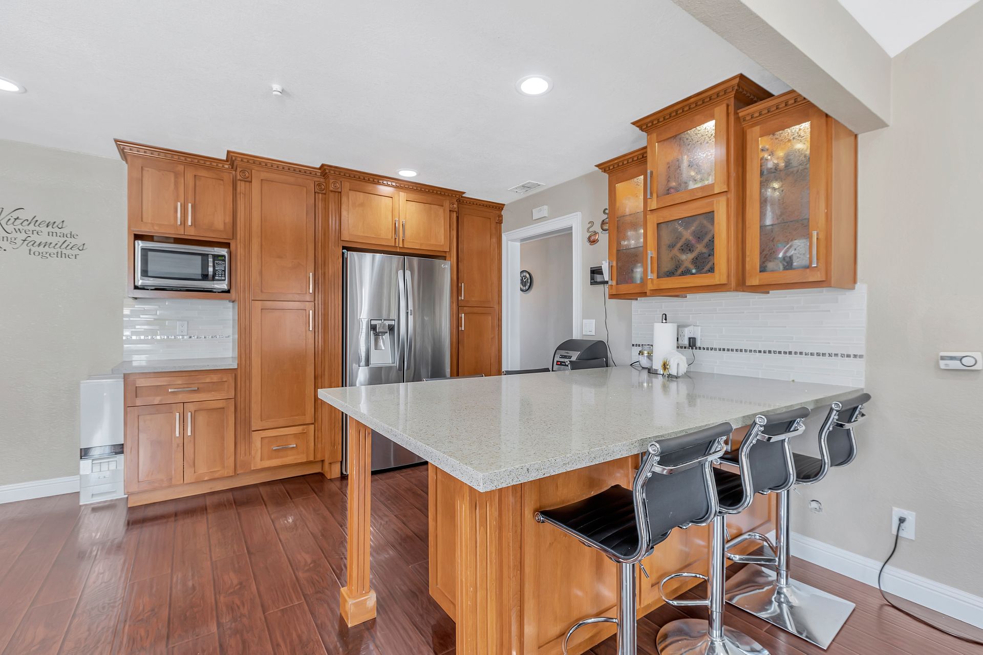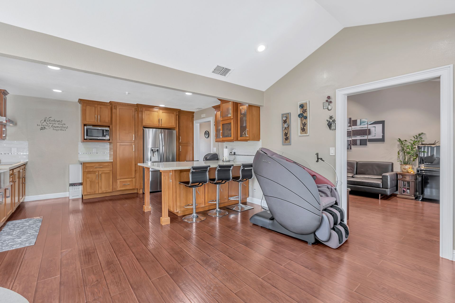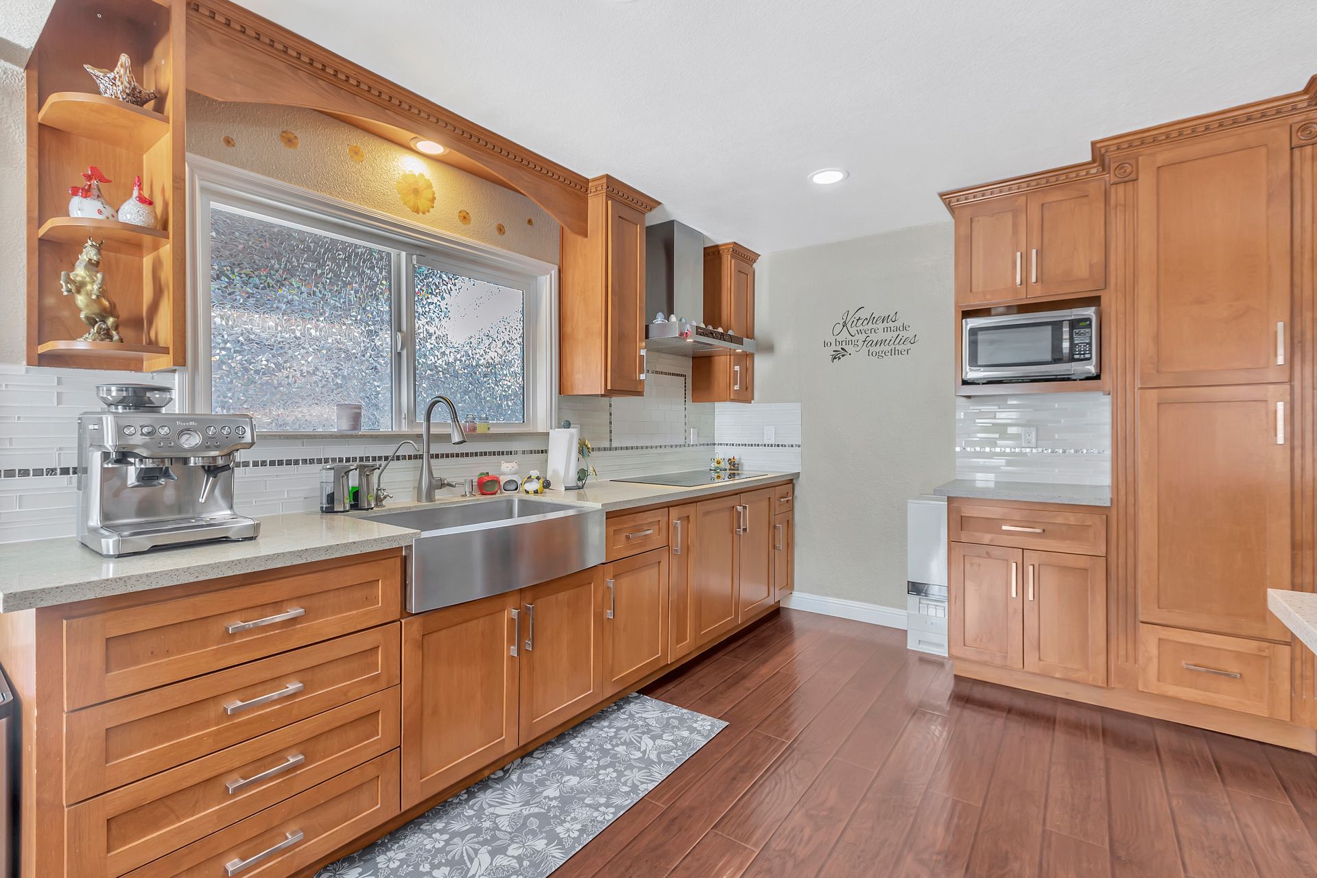 Located in the quiet highly desired neighborhood of Evergreen! This beautifully updated and professionally landscaped home welcomes you with a lush front yard and patio filled with lots of plants and trees. You’ll enjoy abundance of natural light throughout with recessed lighting, high ceilings in the living areas, double pane windows and gorgeous hardwood floors throughout with an open concept floor plan. The kitchen features a large sink, big island with ample of custom cabinetry, tiled backsplash, beautiful countertops and stainless-steel appliances. Bedrooms and bathrooms have been nicely updated with spacious closets. The fully cemented backyard offers a storage shed, some fruit trees, and a large gazebo with fan, perfect for outdoor entertaining. Close to Evergreen Village Square, schools, shops and easy access to Highway 101/280/680.