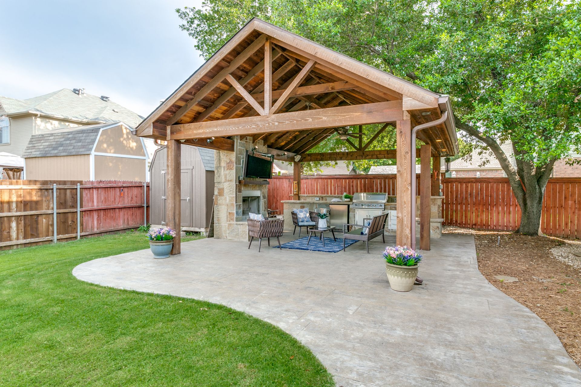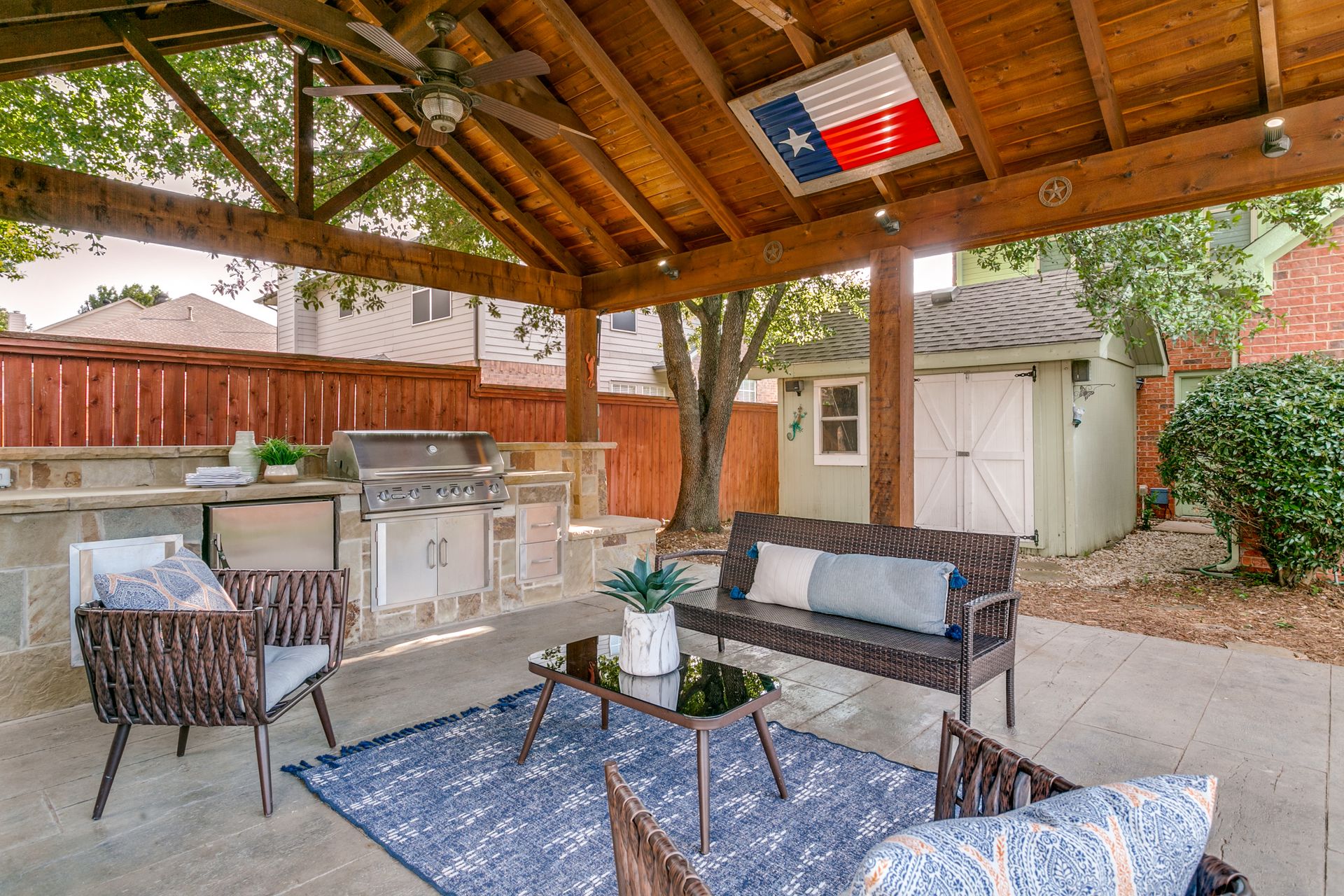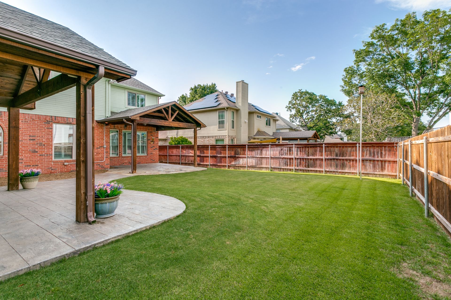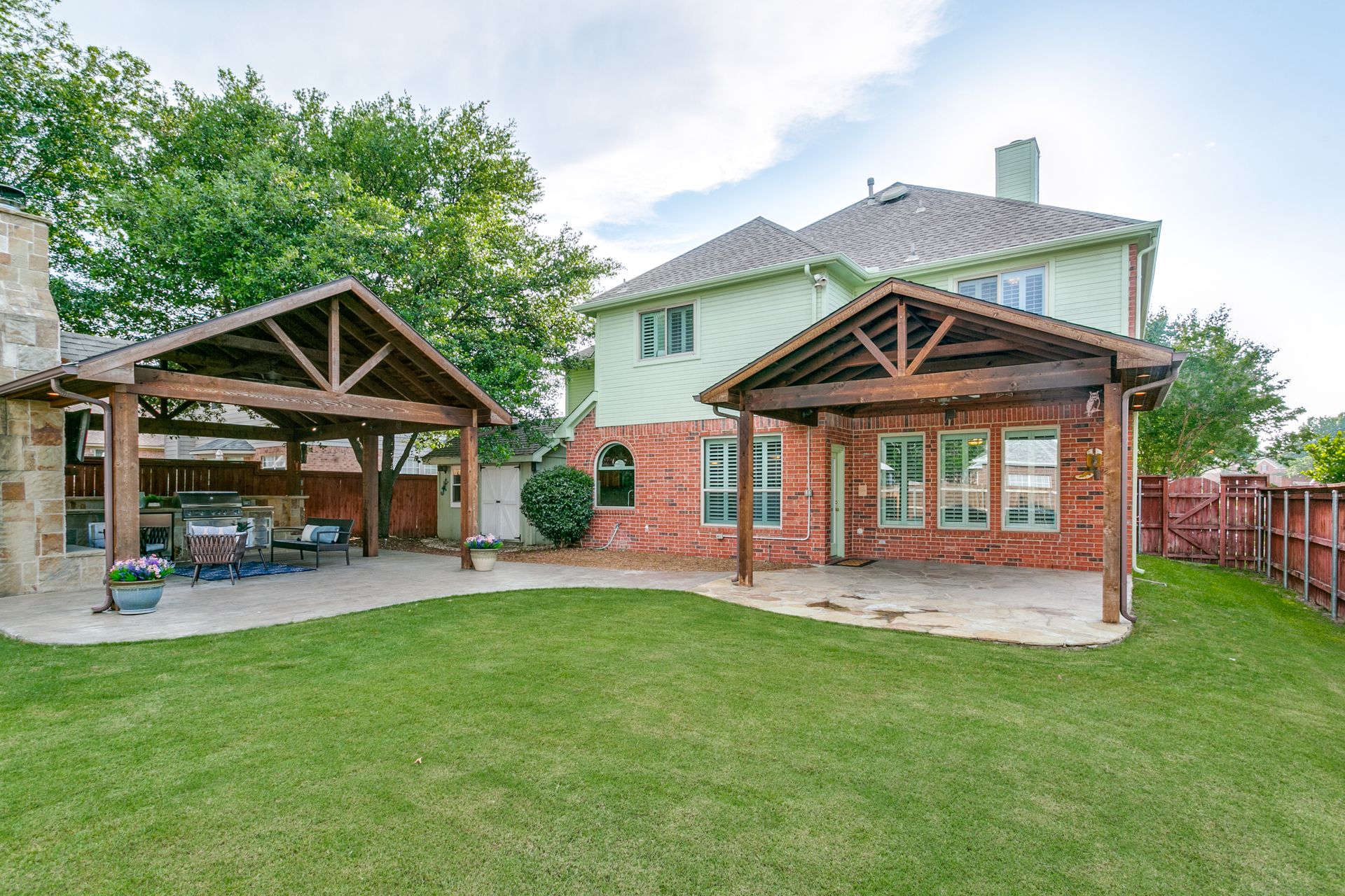 This wonderful home offers an exceptional living experience with its elegant design, spacious interiors and desirable location. Situated in a friendly neighborhood, this property presents an ideal opportunity for those seeking a comfortable and luxurious lifestyle. Enter inside the front door and you'll be greeted by a grand foyer that sets the tone for the entire residence. The open-concept floor plan seamlessly connects the main living areas, creating a perfect space for entertaining. The gourmet kitchen is a true masterpiece, featuring stainless steel appliances, granite countertops, custom cabinetry and a center island that provides ample space for culinary creations. Adjacent to the kitchen, there is a cozy breakfast nook where you can enjoy your morning coffee while overlooking the beautiful backyard. The spacious family room is bathed in natural light and boasts a stunning fireplace, creating a warm and inviting atmosphere. Just off the family room, you'll find a formal dining area, ideal for hosting elegant dinner parties or enjoying special meals. The primary suite is a true retreat with a luxurious ensuite bathroom featuring a soaking tub, a separate shower, dual vanities and a large custom walk-in closet. Three additional bedrooms offer comfort and privacy, and there is an additional full bathroom for convenience. Head outside onto the covered patio and discover an outdoor oasis perfect for relaxation and entertainment. The expansive backyard provides plenty of space for outdoor activities and features lush greenery and mature trees, ensuring privacy and tranquility. Situated in Flower Mound, this home is conveniently located near excellent schools, shopping centers, dining options and recreational amenities. With easy access to major highways, you'll enjoy a quick and effortless commute to nearby cities and attractions.