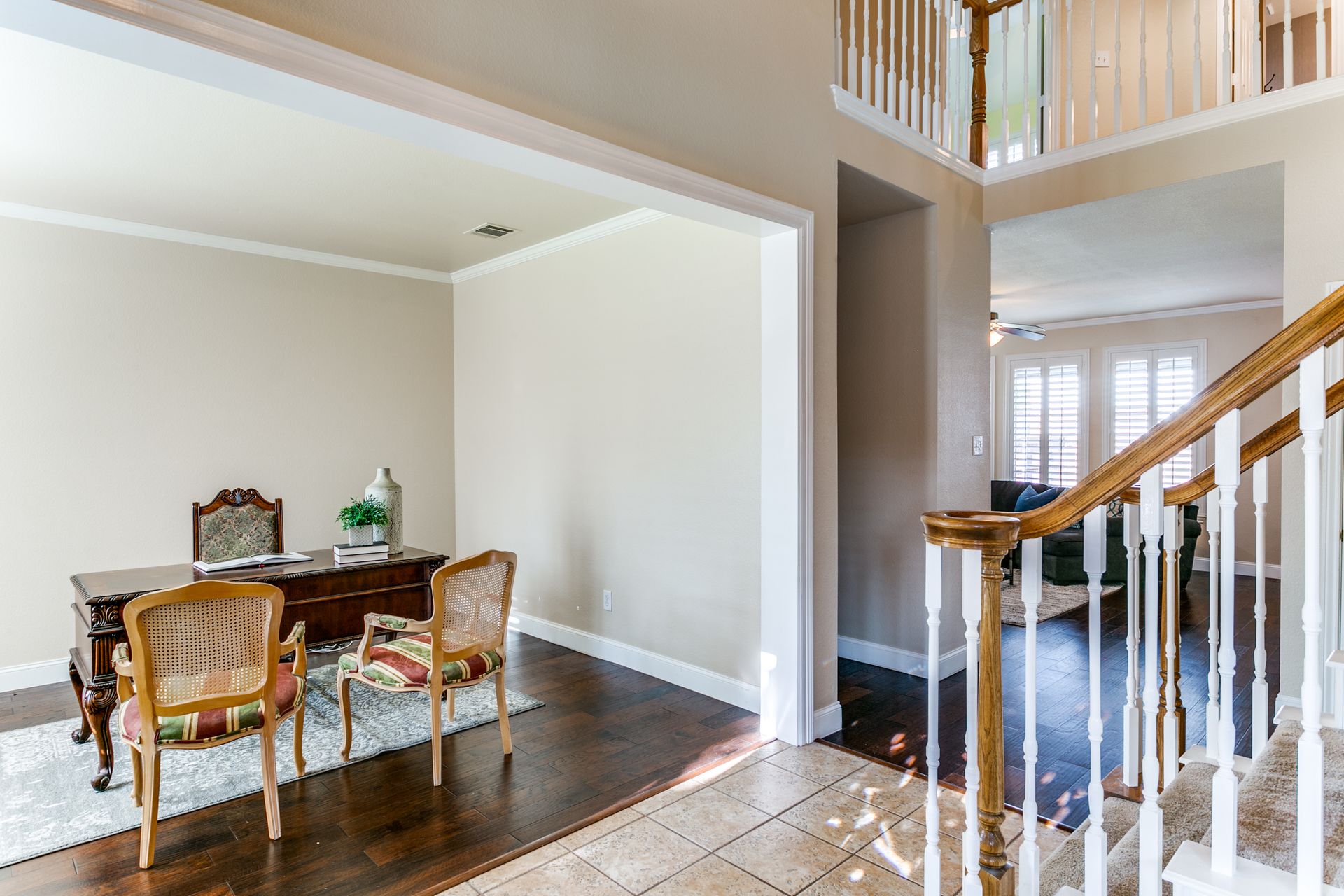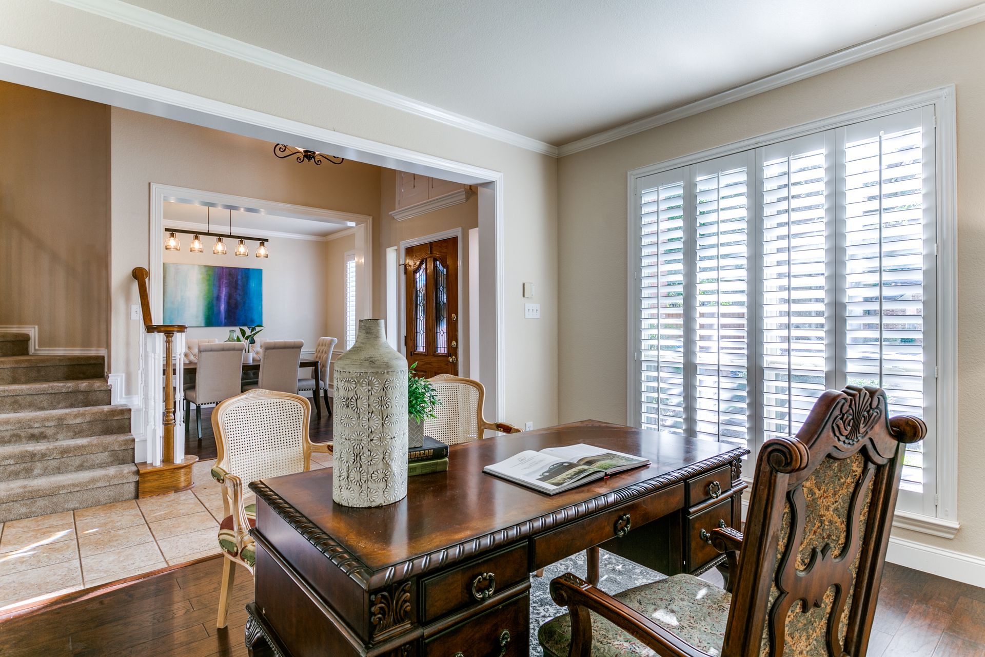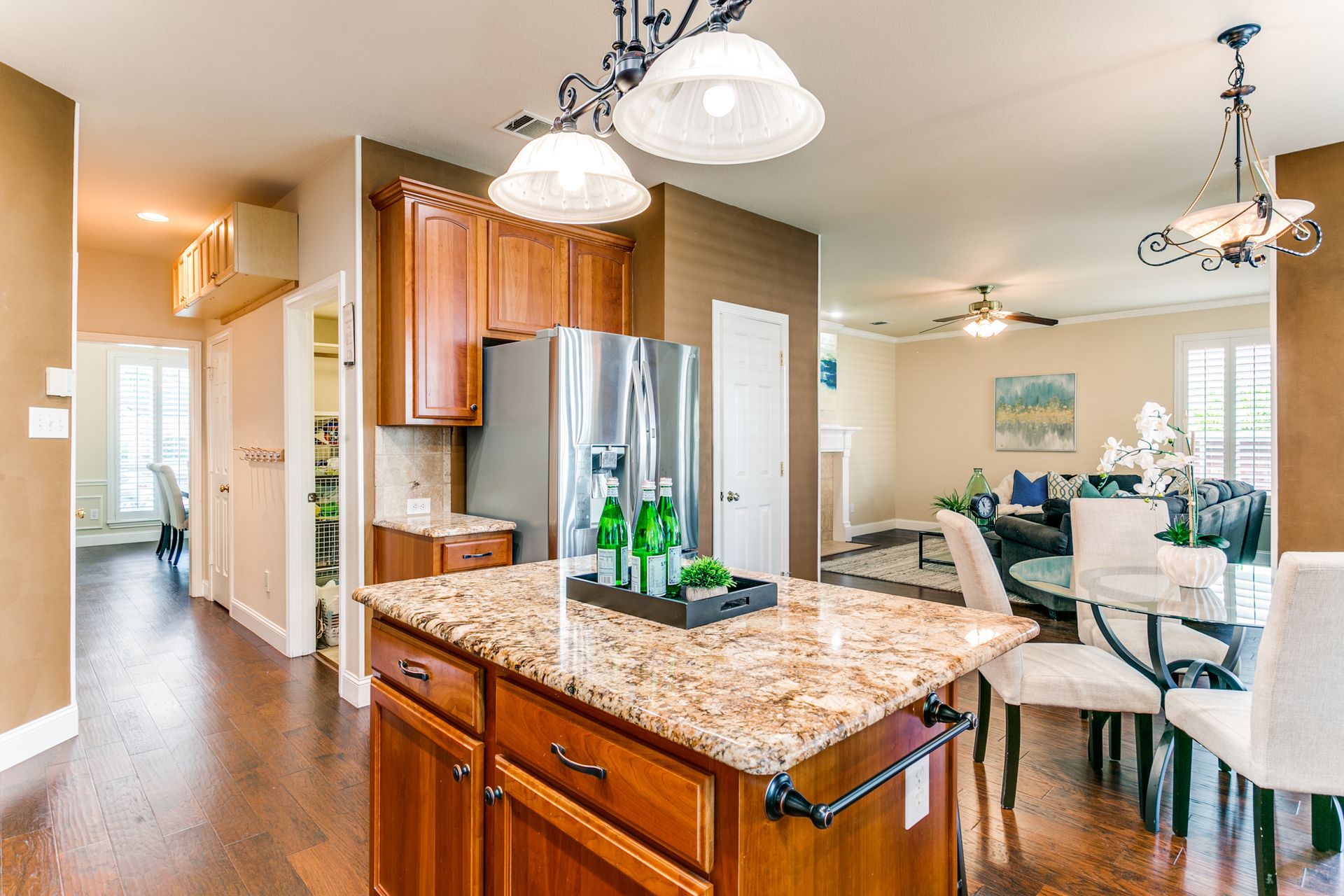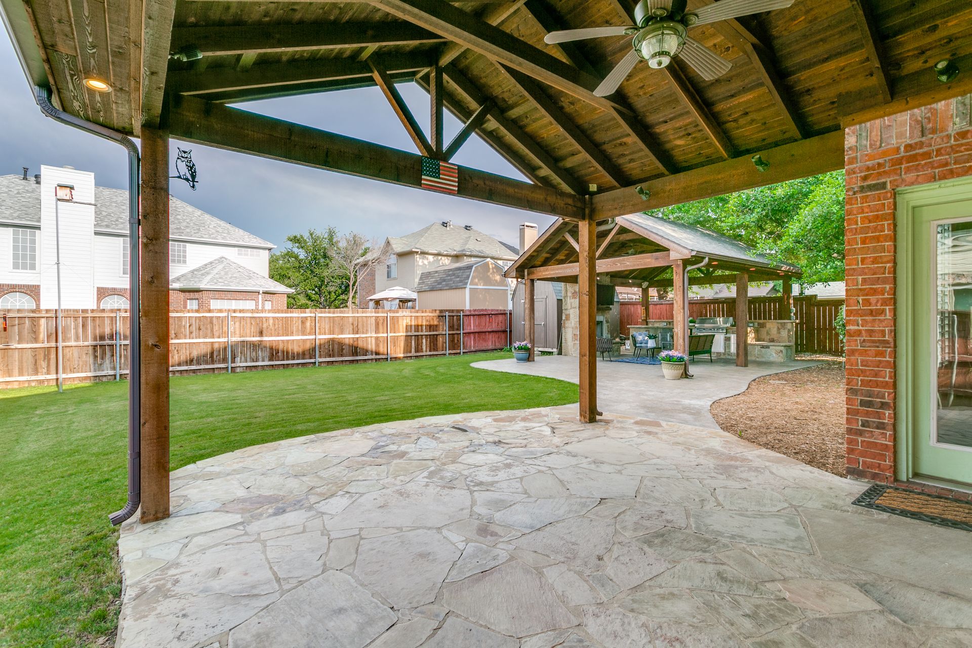 This wonderful home offers an exceptional living experience with its elegant design, spacious interiors and desirable location. Situated in a friendly neighborhood, this property presents an ideal opportunity for those seeking a comfortable and luxurious lifestyle. Enter inside the front door and you'll be greeted by a grand foyer that sets the tone for the entire residence. The open-concept floor plan seamlessly connects the main living areas, creating a perfect space for entertaining. The gourmet kitchen is a true masterpiece, featuring stainless steel appliances, granite countertops, custom cabinetry and a center island that provides ample space for culinary creations. Adjacent to the kitchen, there is a cozy breakfast nook where you can enjoy your morning coffee while overlooking the beautiful backyard. The spacious family room is bathed in natural light and boasts a stunning fireplace, creating a warm and inviting atmosphere. Just off the family room, you'll find a formal dining area, ideal for hosting elegant dinner parties or enjoying special meals. The primary suite is a true retreat with a luxurious ensuite bathroom featuring a soaking tub, a separate shower, dual vanities and a large custom walk-in closet. Three additional bedrooms offer comfort and privacy, and there is an additional full bathroom for convenience. Head outside onto the covered patio and discover an outdoor oasis perfect for relaxation and entertainment. The expansive backyard provides plenty of space for outdoor activities and features lush greenery and mature trees, ensuring privacy and tranquility. Situated in Flower Mound, this home is conveniently located near excellent schools, shopping centers, dining options and recreational amenities. With easy access to major highways, you'll enjoy a quick and effortless commute to nearby cities and attractions.