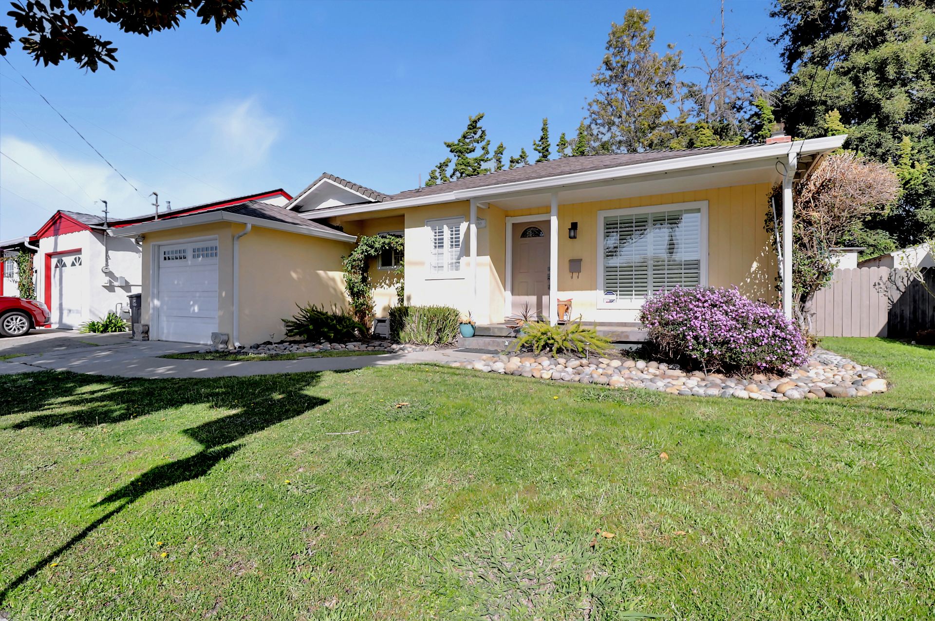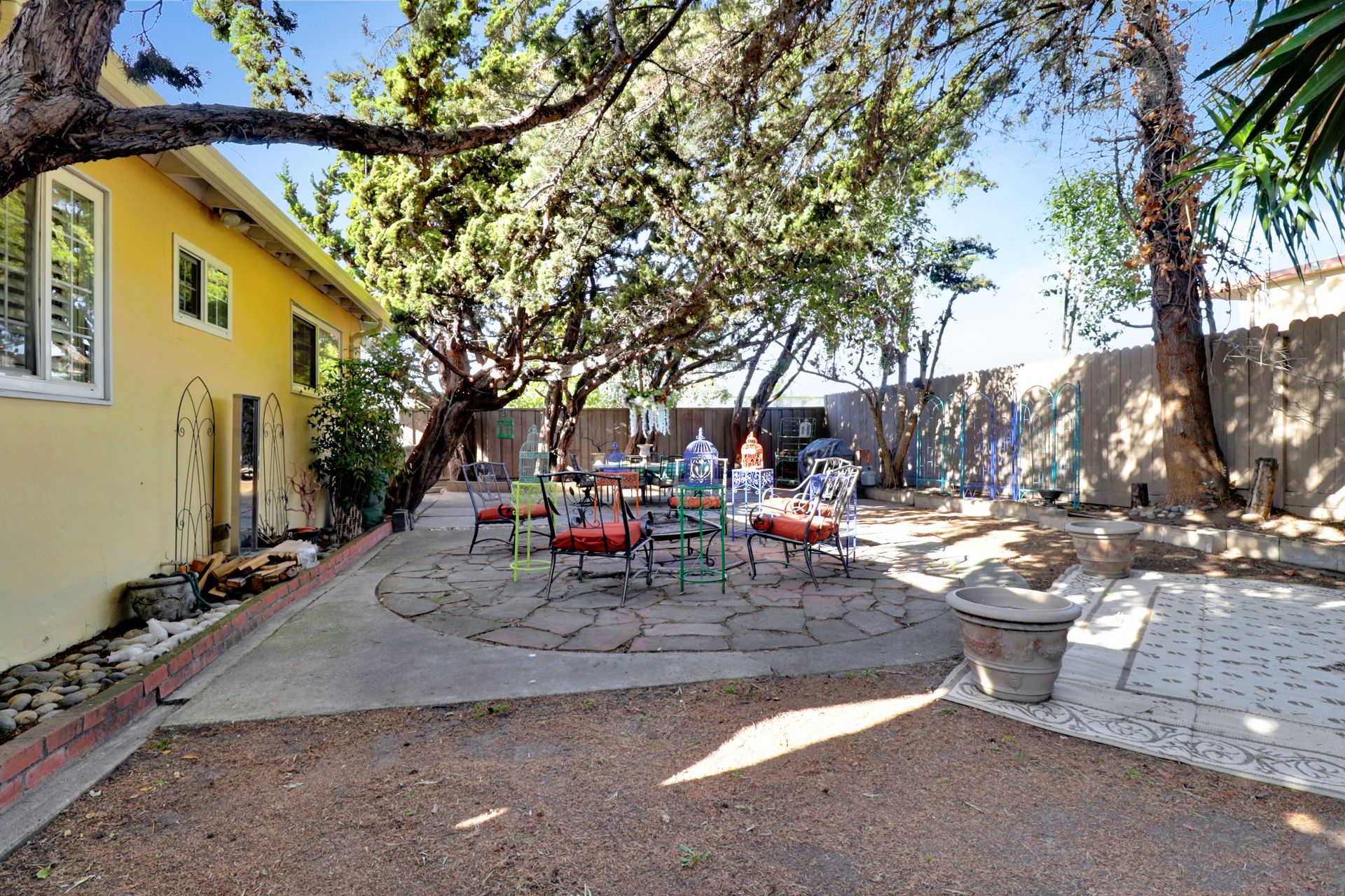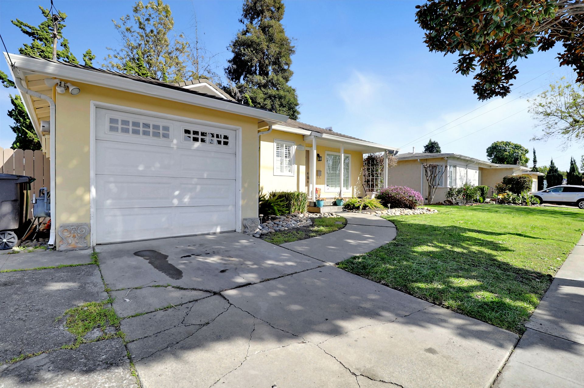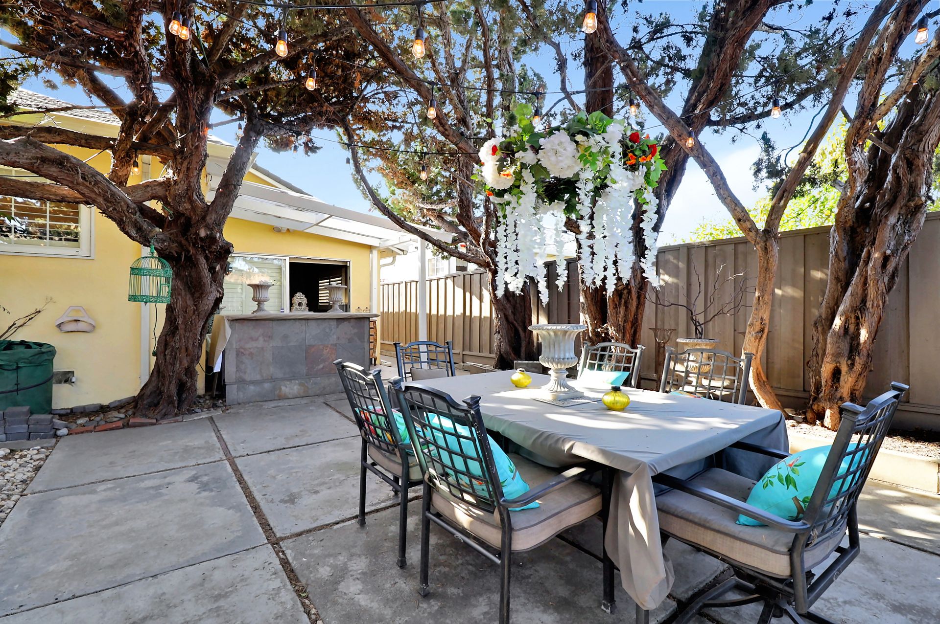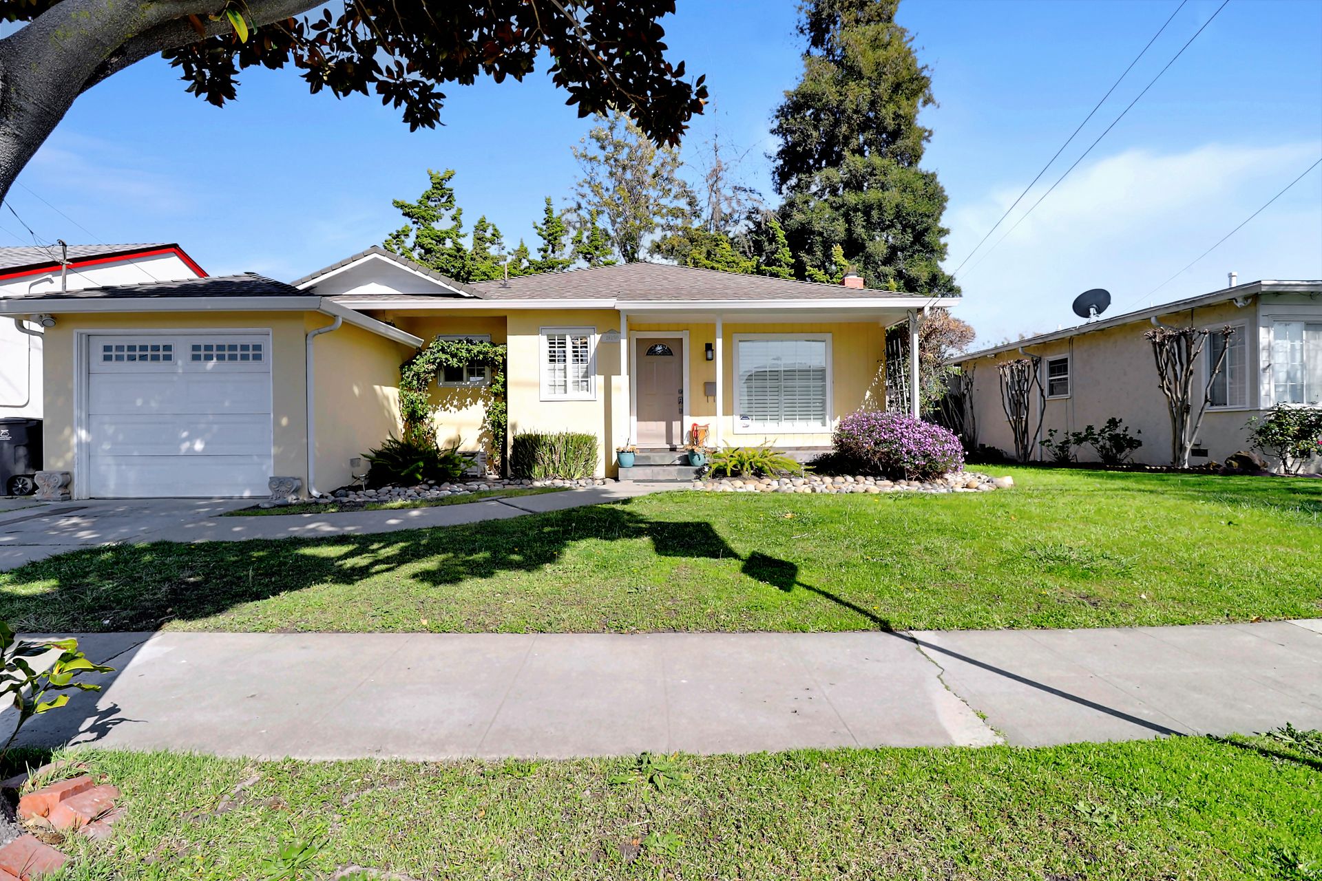 Enter into this home with its beautiful decorator touches throughout. Begin with the landscaped front yard, the living room with canned ceiling lights, Travertine tiled fireplace and mantel and a bumped-out wall giving architectural interest. Crown molding in living area. Dual pane windows with plantation shutters throughout the home. Remodeled kitchen with granite counters and tile floors. Breakfast nook. The main home has bamboo hardwood floors that are in great shape. The first bedroom has been turned into a formal dining room with steps to a lovely family room addition, flooring is a laminate with a slider to the back yard (family room has no permits). Slider also has plantation shutters. Bathroom has been beautifully remodeled with the stately grey colored tile. Notice the master bedroom has an Ikea closet with incredible space saving features. Ceiling fans throughout the home helping you stop stay cool. Beautifully shaded backyard for your summertime entertainment including a built-in bar. Garage walls and ceiling are sheet rocked and textured with canned ceiling lights allowing you to use this area as a garage or as a work area or additional space, a wall air conditioner in this space keeping it cool during our warmer days in the bay. Roof line has been raised for a proper pitch allowing for a composition shingle roof.