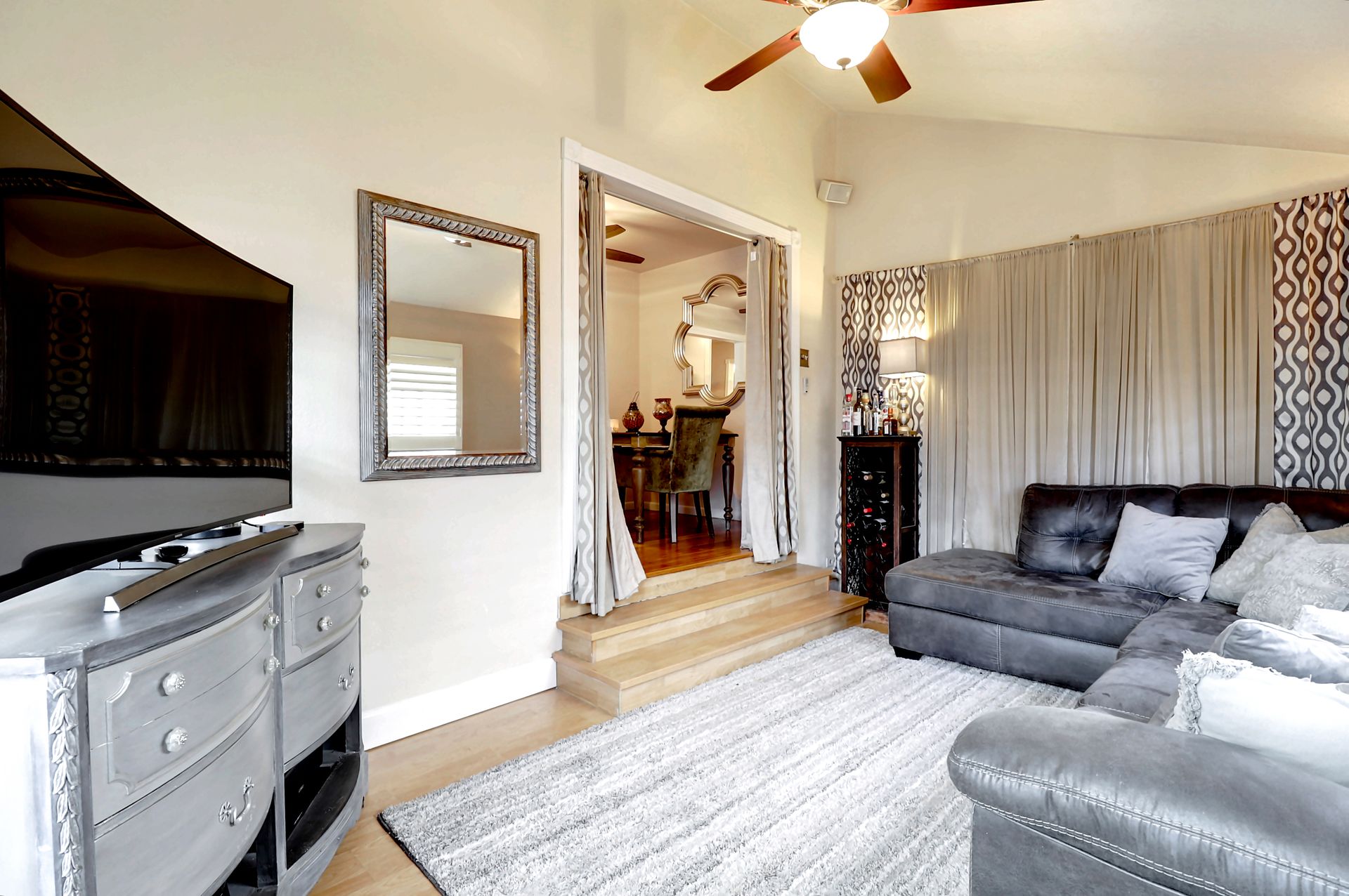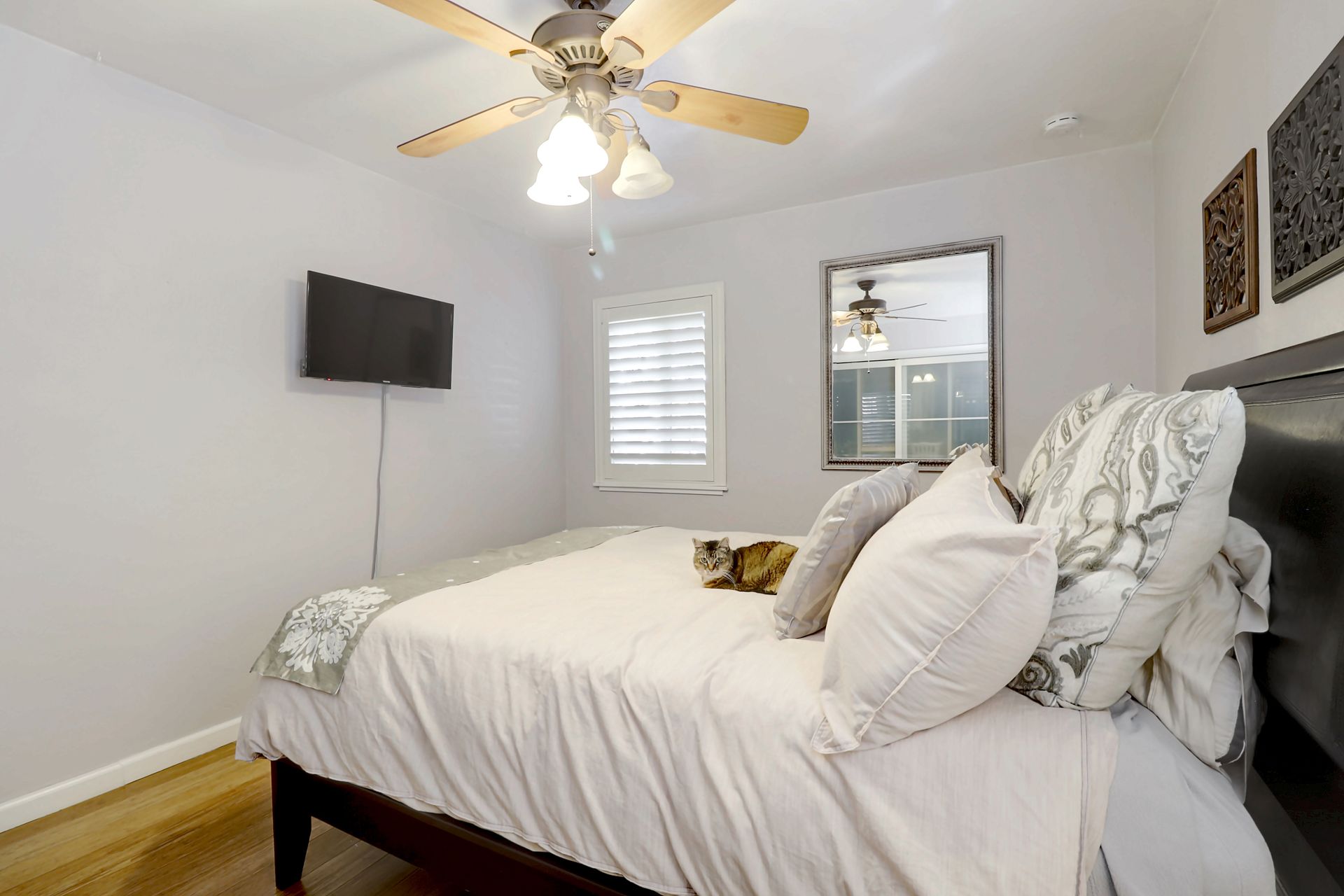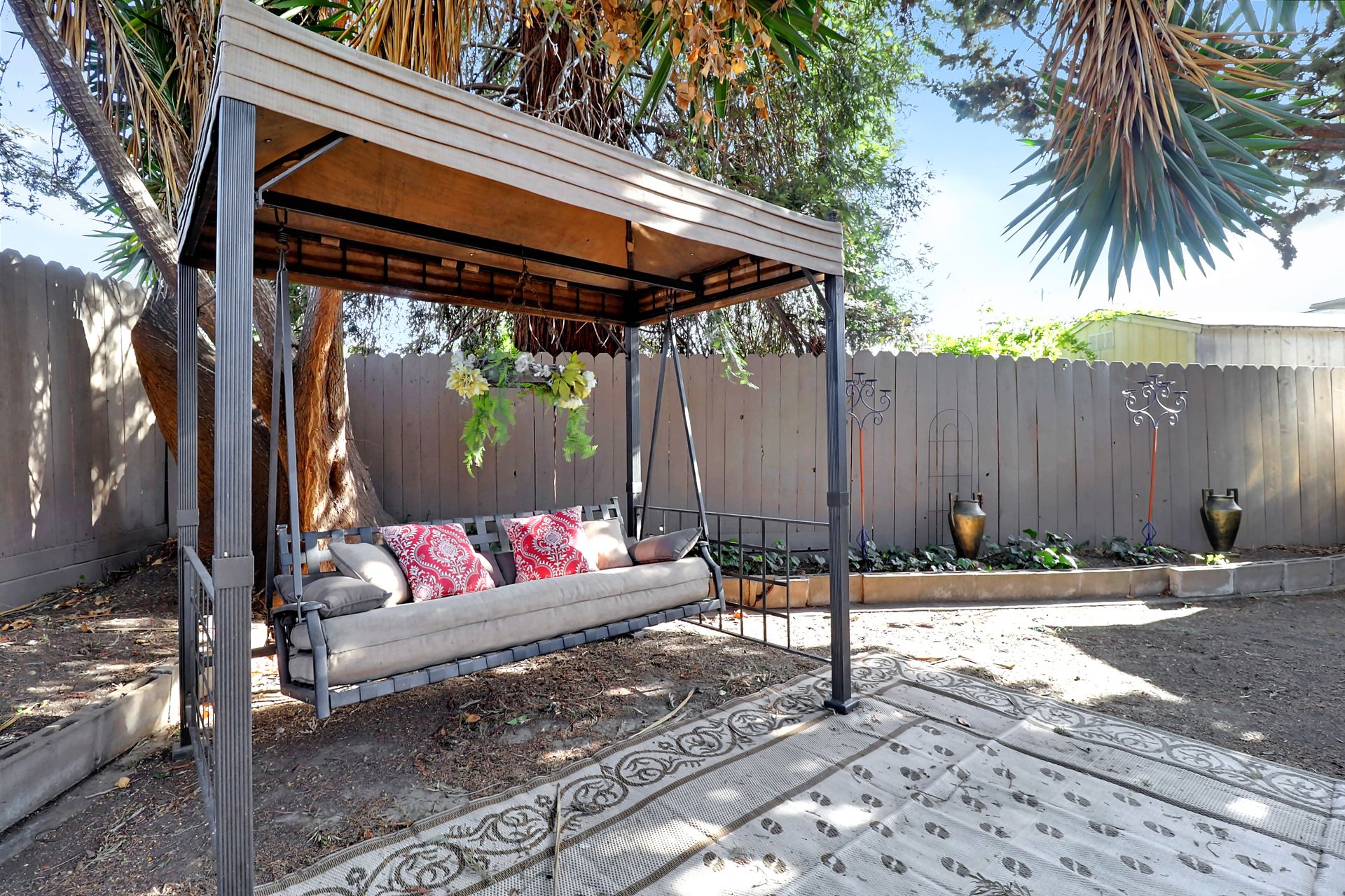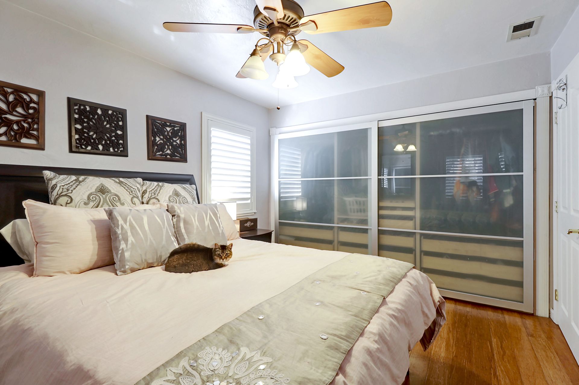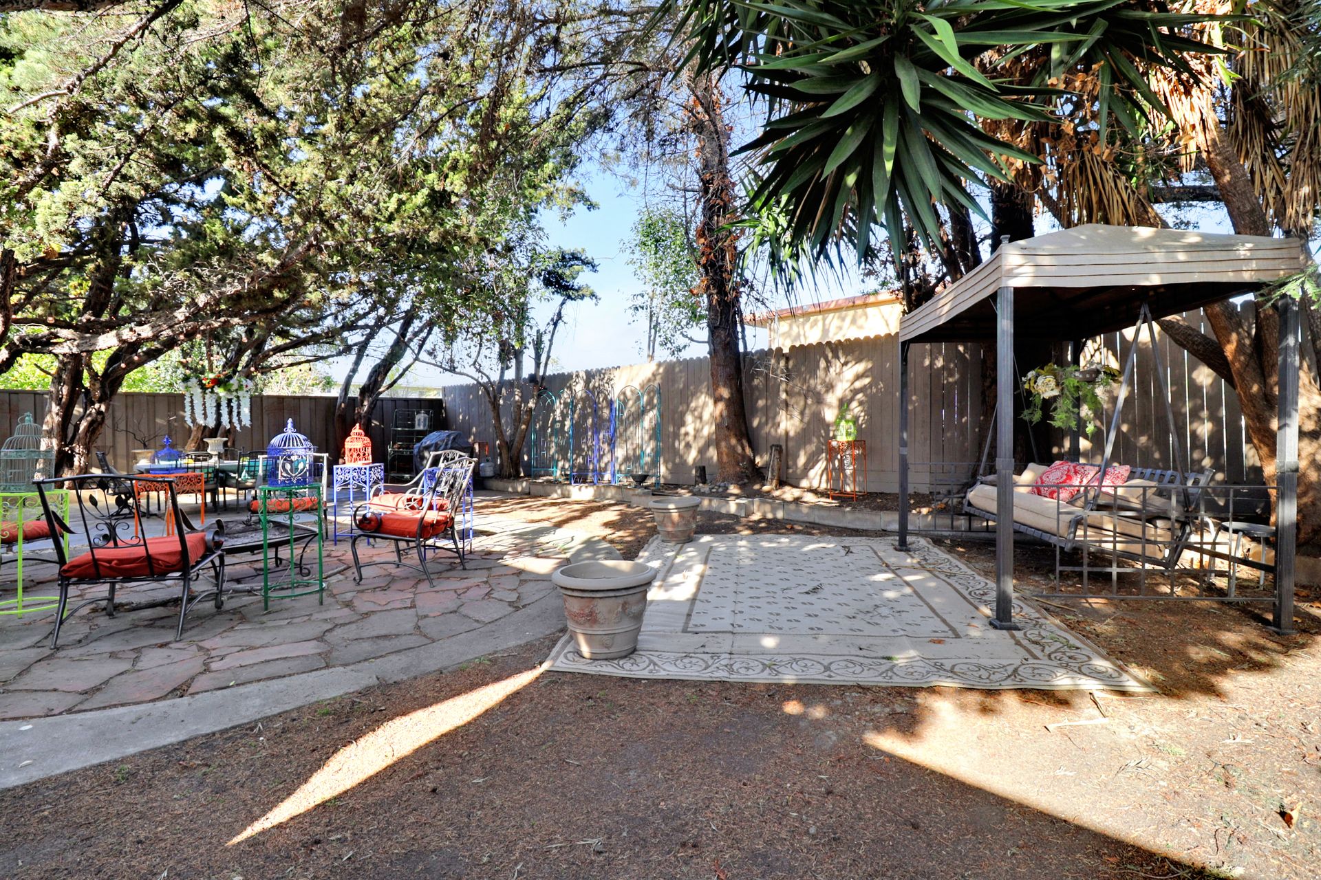 Enter into this home with its beautiful decorator touches throughout. Begin with the landscaped front yard, the living room with canned ceiling lights, Travertine tiled fireplace and mantel and a bumped-out wall giving architectural interest. Crown molding in living area. Dual pane windows with plantation shutters throughout the home. Remodeled kitchen with granite counters and tile floors. Breakfast nook. The main home has bamboo hardwood floors that are in great shape. The first bedroom has been turned into a formal dining room with steps to a lovely family room addition, flooring is a laminate with a slider to the back yard (family room has no permits). Slider also has plantation shutters. Bathroom has been beautifully remodeled with the stately grey colored tile. Notice the master bedroom has an Ikea closet with incredible space saving features. Ceiling fans throughout the home helping you stop stay cool. Beautifully shaded backyard for your summertime entertainment including a built-in bar. Garage walls and ceiling are sheet rocked and textured with canned ceiling lights allowing you to use this area as a garage or as a work area or additional space, a wall air conditioner in this space keeping it cool during our warmer days in the bay. Roof line has been raised for a proper pitch allowing for a composition shingle roof.