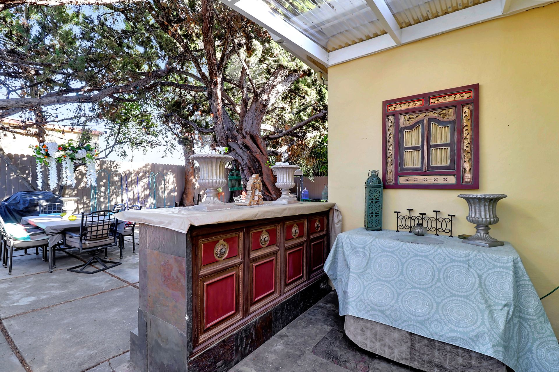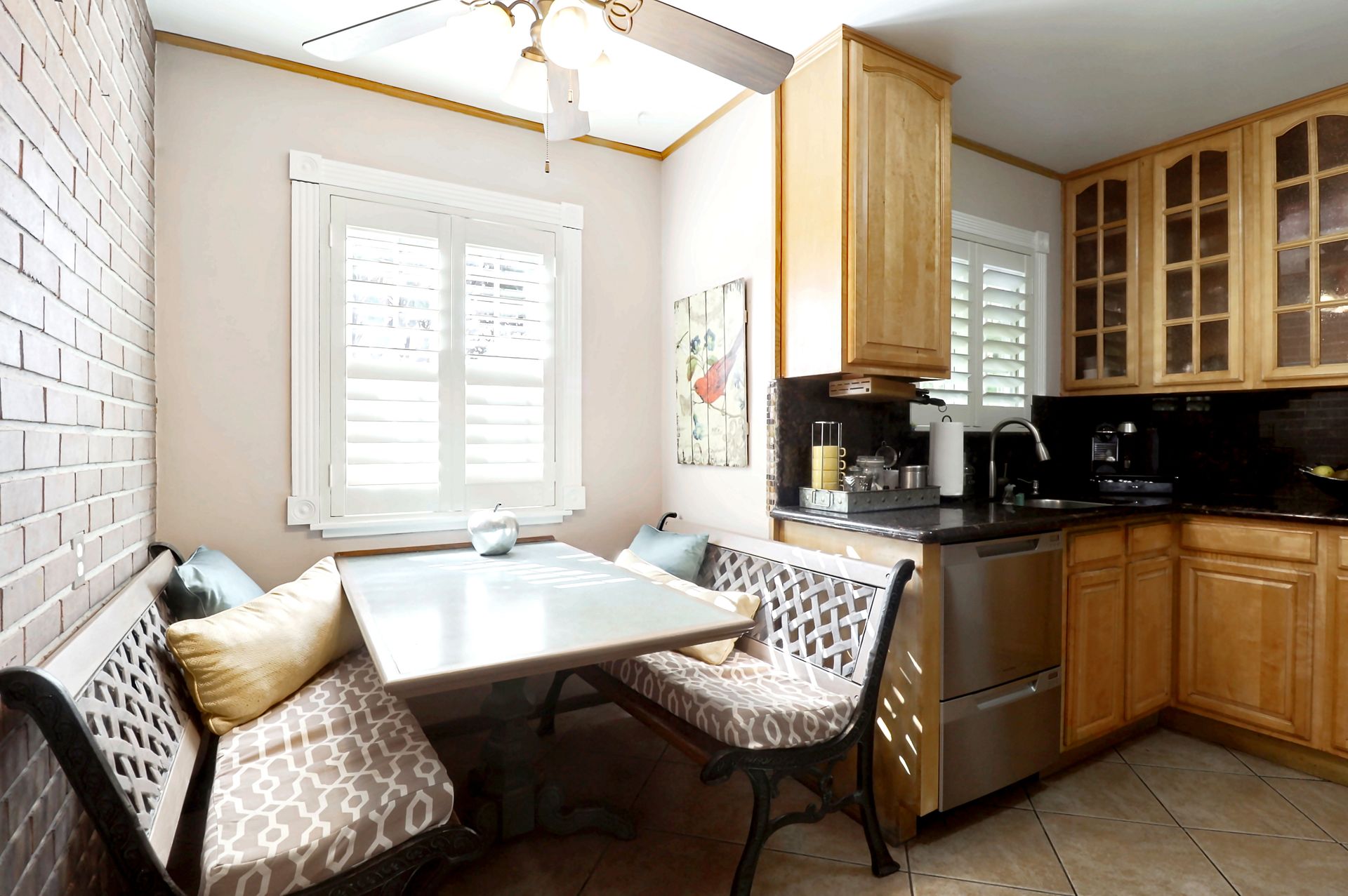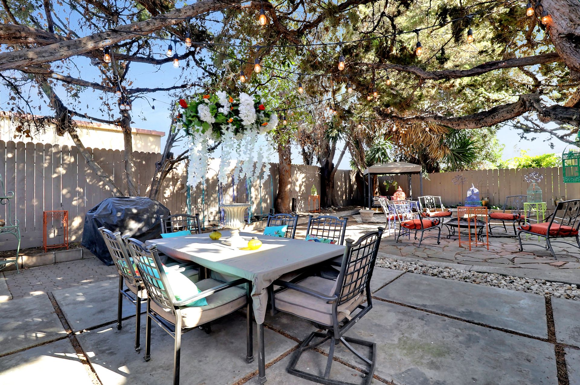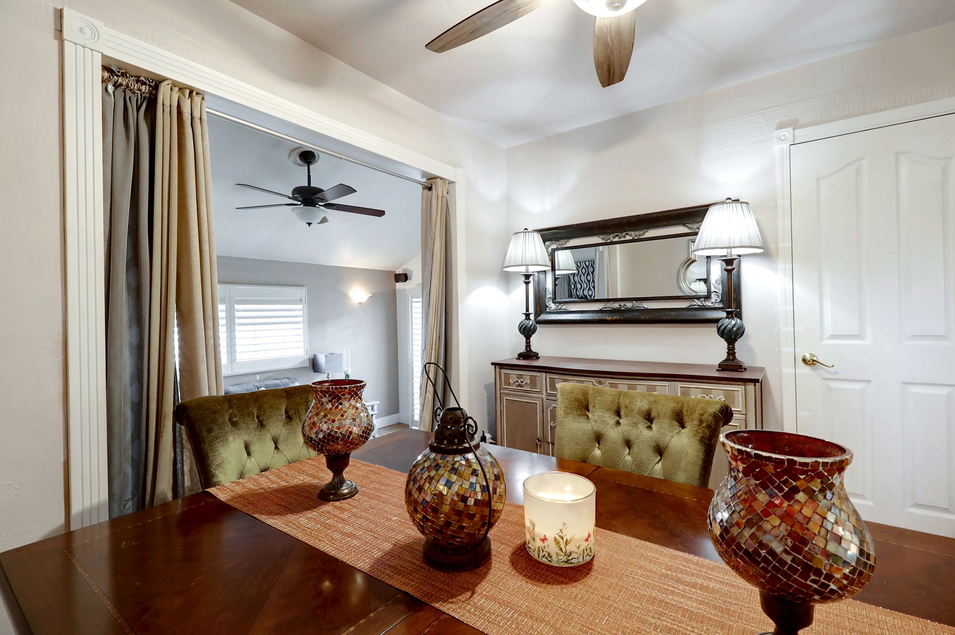 Enter into this home with its beautiful decorator touches throughout. Begin with the landscaped front yard, the living room with canned ceiling lights, Travertine tiled fireplace and mantel and a bumped-out wall giving architectural interest. Crown molding in living area. Dual pane windows with plantation shutters throughout the home. Remodeled kitchen with granite counters and tile floors. Breakfast nook. The main home has bamboo hardwood floors that are in great shape. The first bedroom has been turned into a formal dining room with steps to a lovely family room addition, flooring is a laminate with a slider to the back yard (family room has no permits). Slider also has plantation shutters. Bathroom has been beautifully remodeled with the stately grey colored tile. Notice the master bedroom has an Ikea closet with incredible space saving features. Ceiling fans throughout the home helping you stop stay cool. Beautifully shaded backyard for your summertime entertainment including a built-in bar. Garage walls and ceiling are sheet rocked and textured with canned ceiling lights allowing you to use this area as a garage or as a work area or additional space, a wall air conditioner in this space keeping it cool during our warmer days in the bay. Roof line has been raised for a proper pitch allowing for a composition shingle roof.
