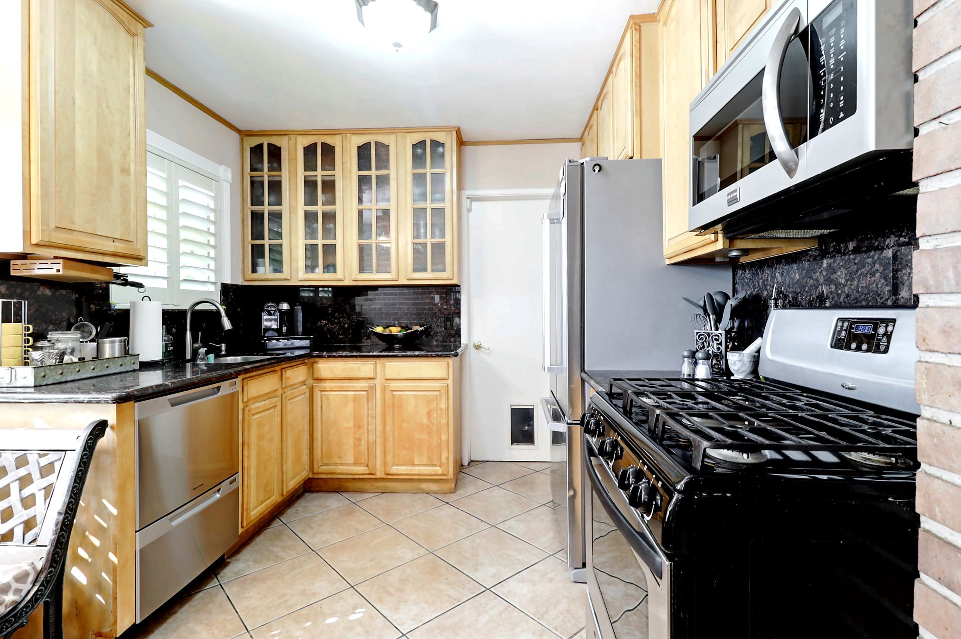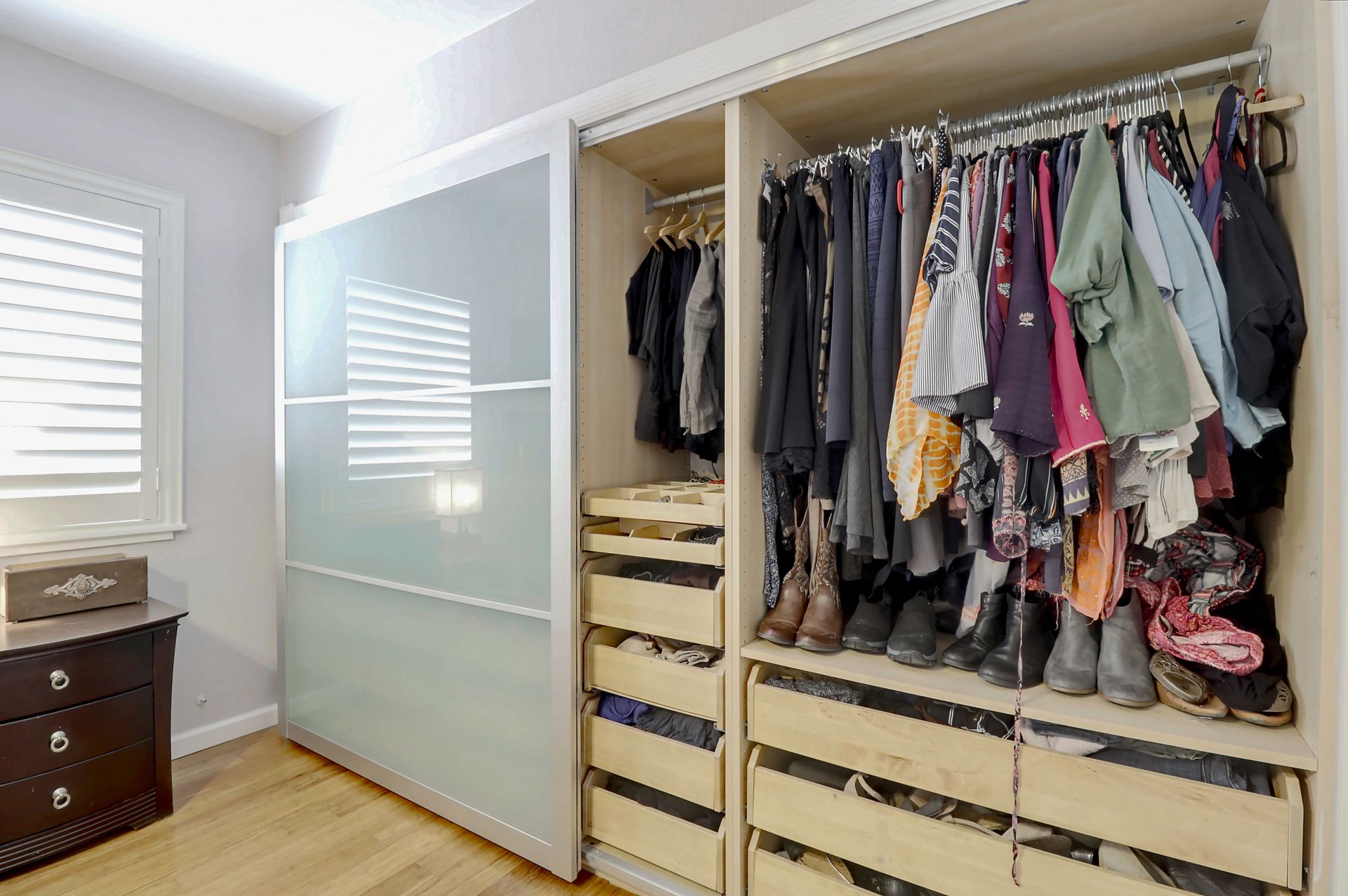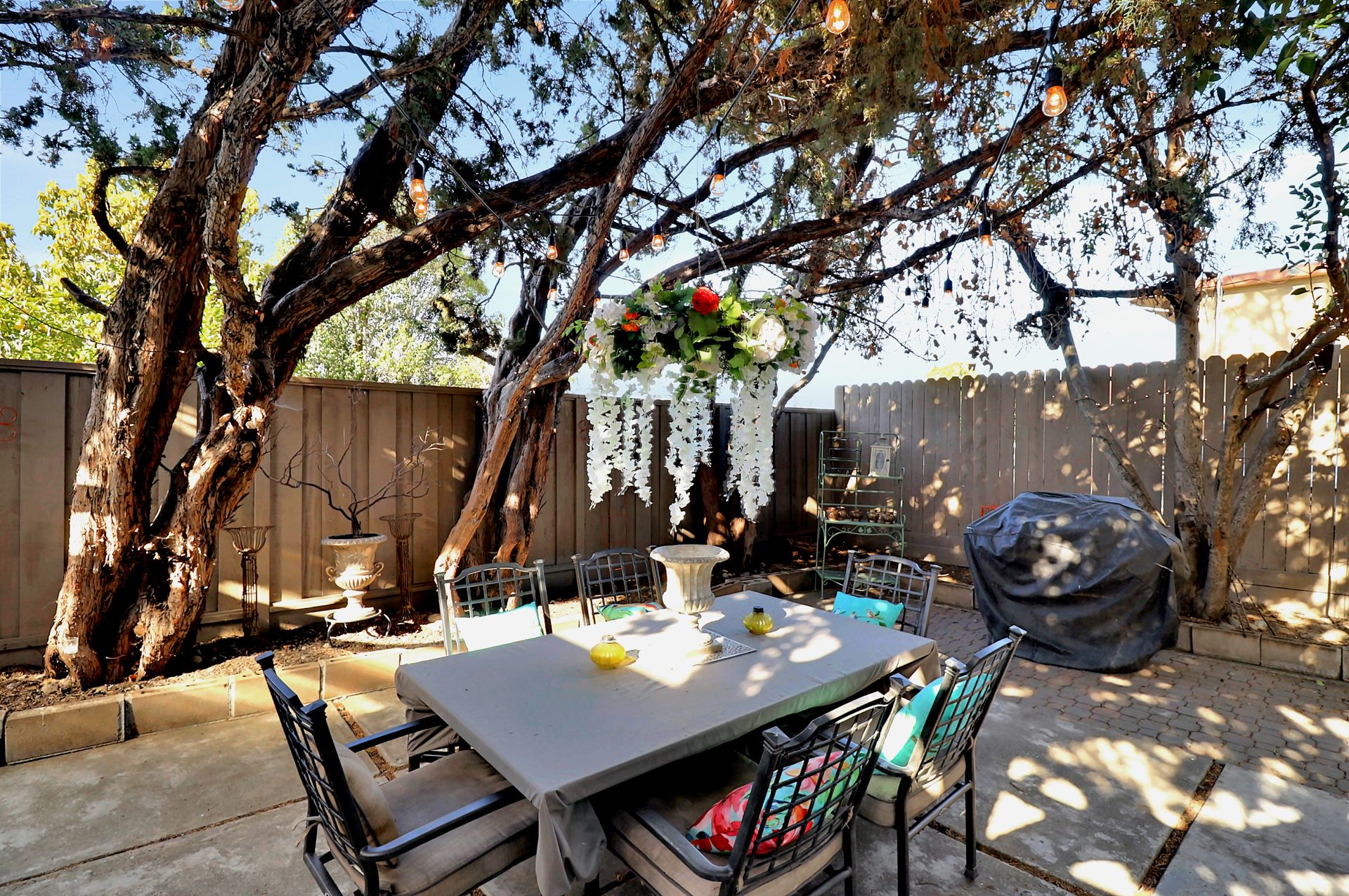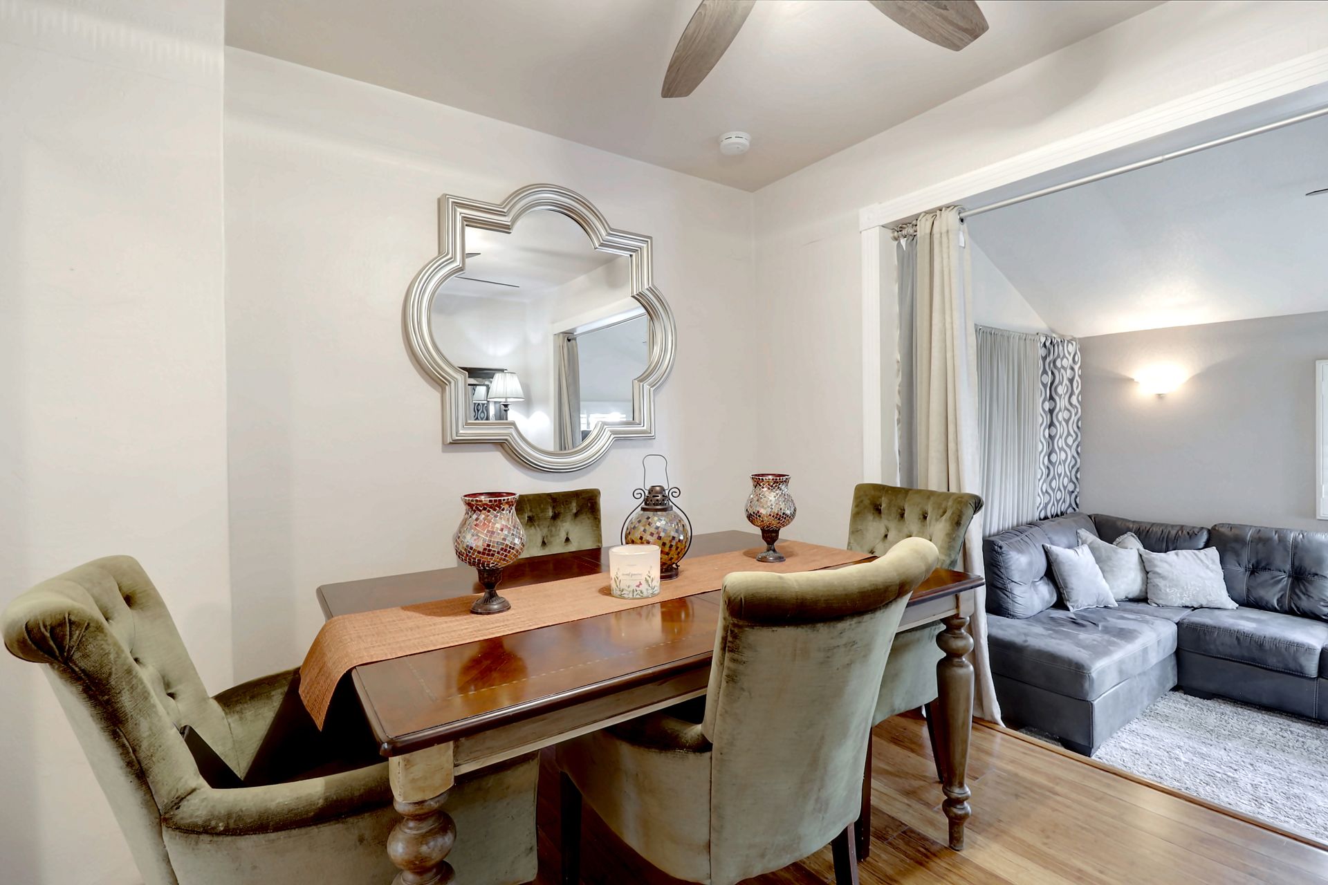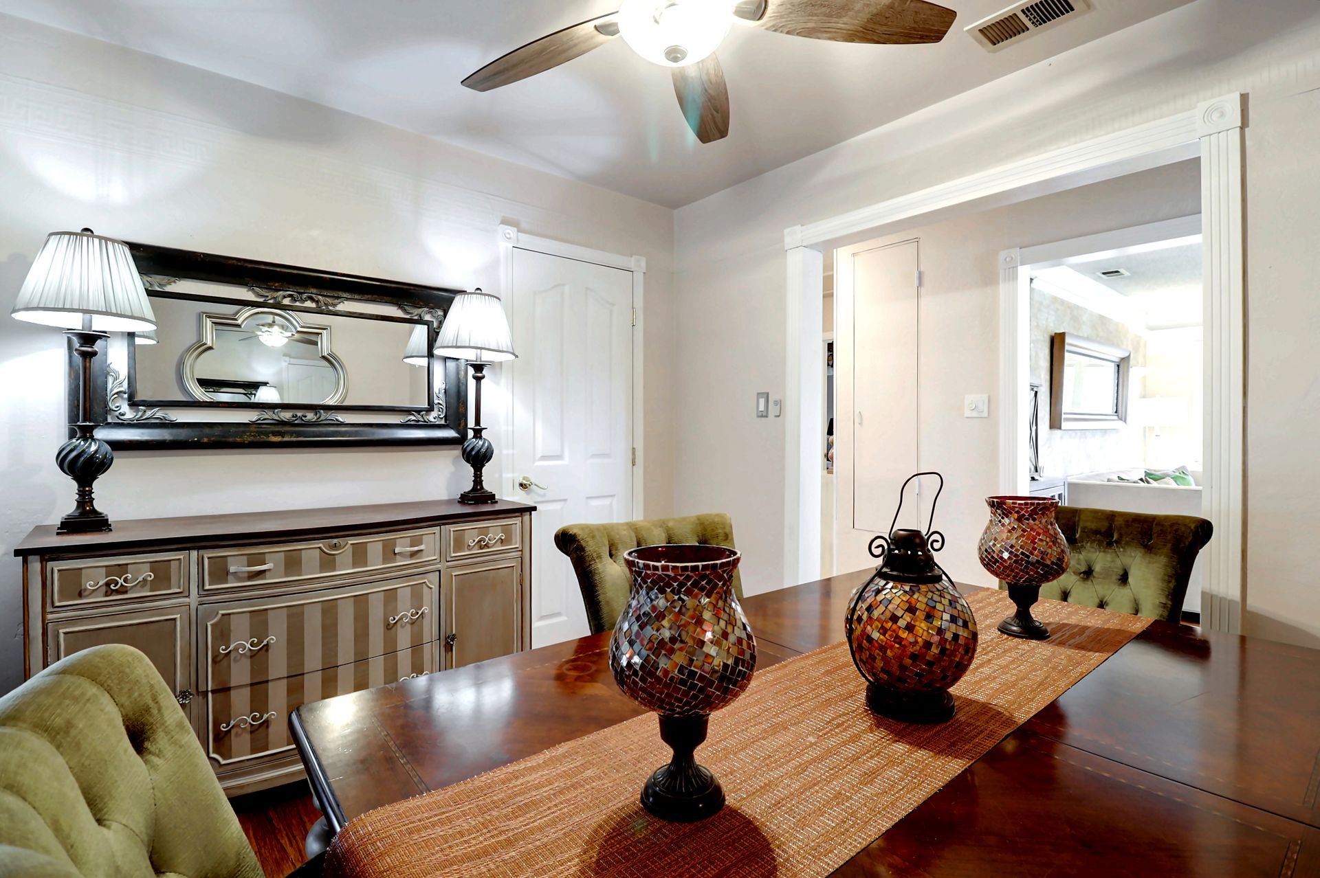 Enter into this home with its beautiful decorator touches throughout. Begin with the landscaped front yard, the living room with canned ceiling lights, Travertine tiled fireplace and mantel and a bumped-out wall giving architectural interest. Crown molding in living area. Dual pane windows with plantation shutters throughout the home. Remodeled kitchen with granite counters and tile floors. Breakfast nook. The main home has bamboo hardwood floors that are in great shape. The first bedroom has been turned into a formal dining room with steps to a lovely family room addition, flooring is a laminate with a slider to the back yard (family room has no permits). Slider also has plantation shutters. Bathroom has been beautifully remodeled with the stately grey colored tile. Notice the master bedroom has an Ikea closet with incredible space saving features. Ceiling fans throughout the home helping you stop stay cool. Beautifully shaded backyard for your summertime entertainment including a built-in bar. Garage walls and ceiling are sheet rocked and textured with canned ceiling lights allowing you to use this area as a garage or as a work area or additional space, a wall air conditioner in this space keeping it cool during our warmer days in the bay. Roof line has been raised for a proper pitch allowing for a composition shingle roof.