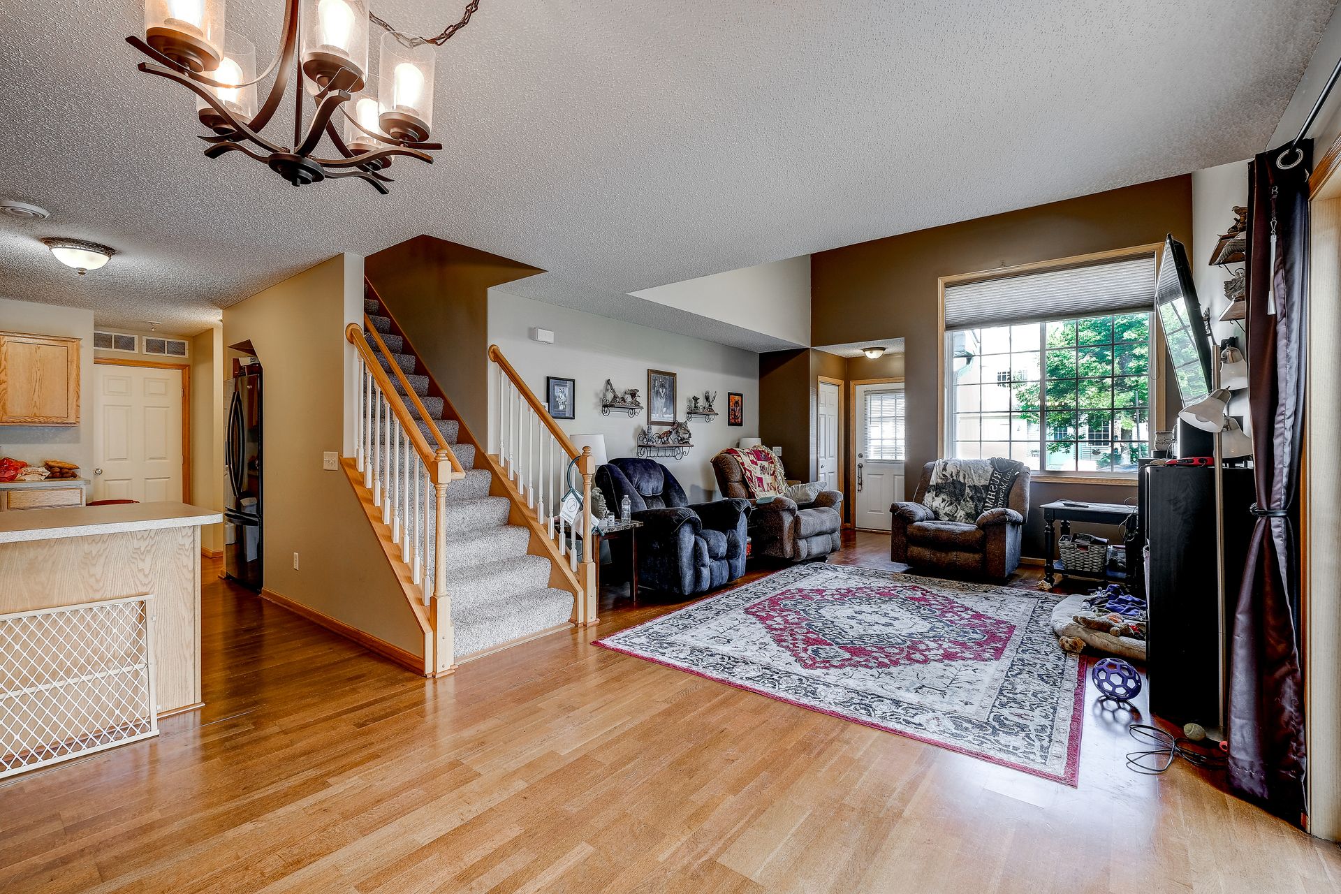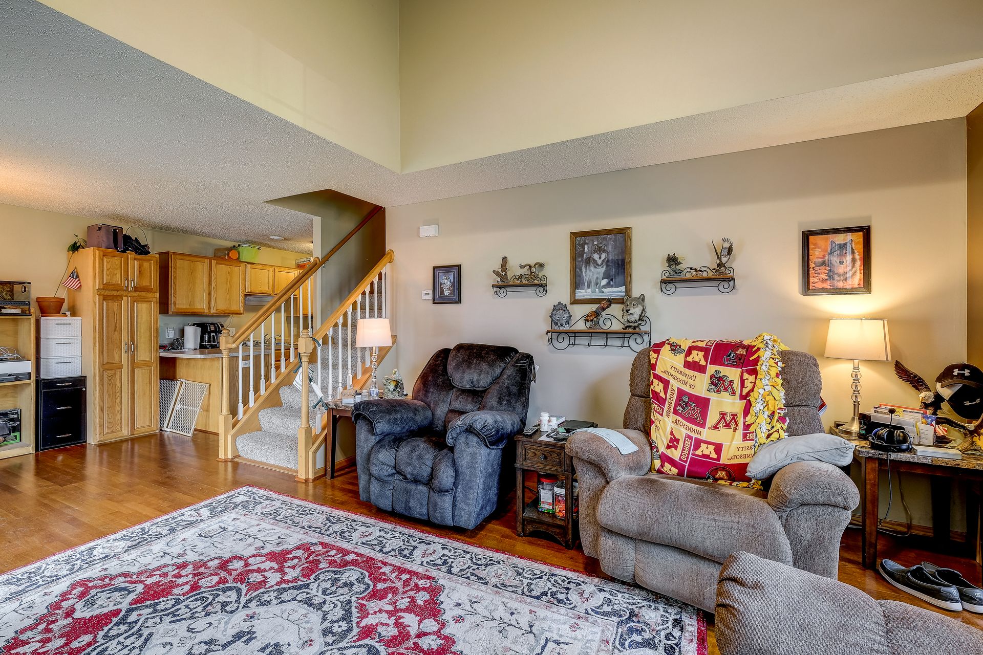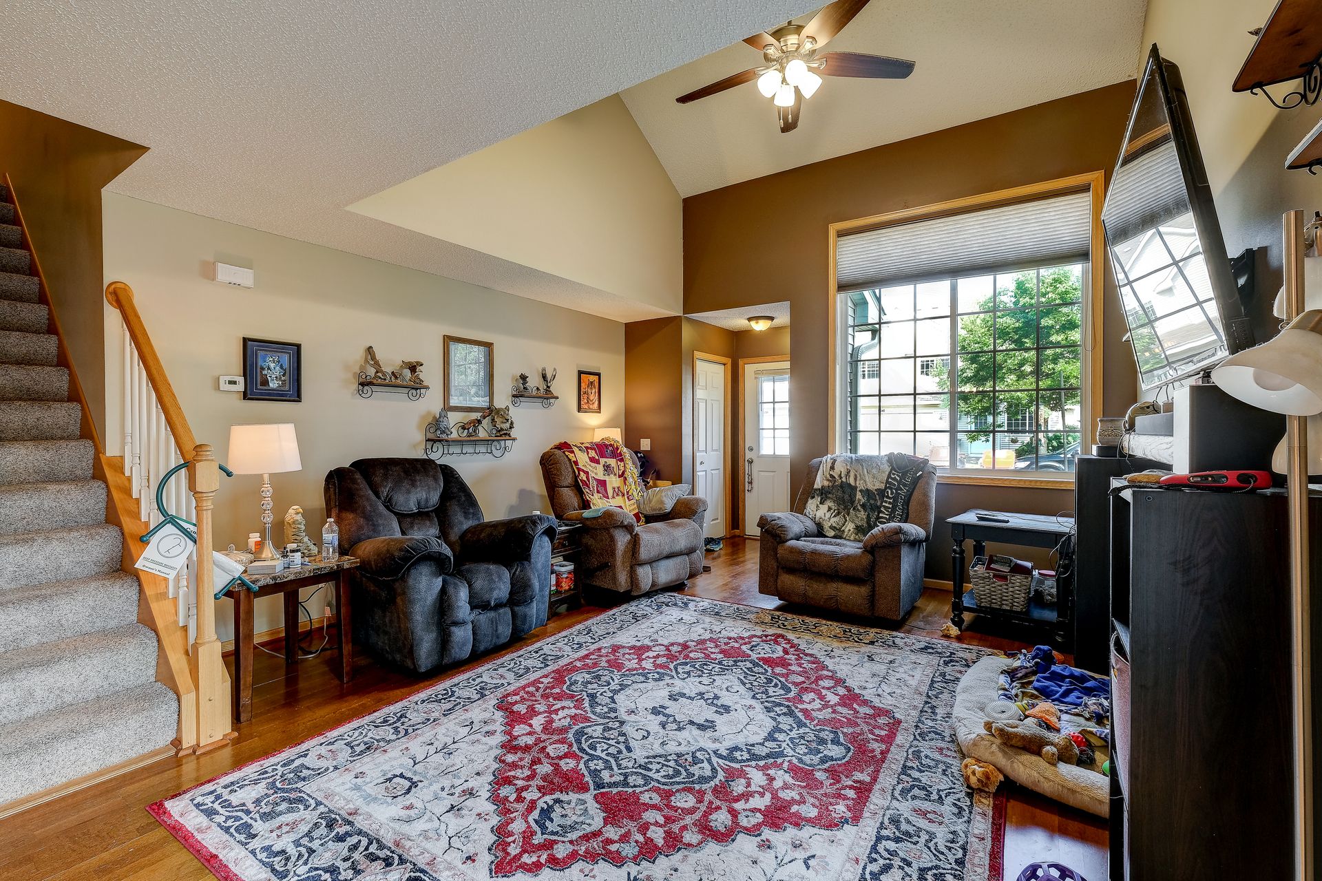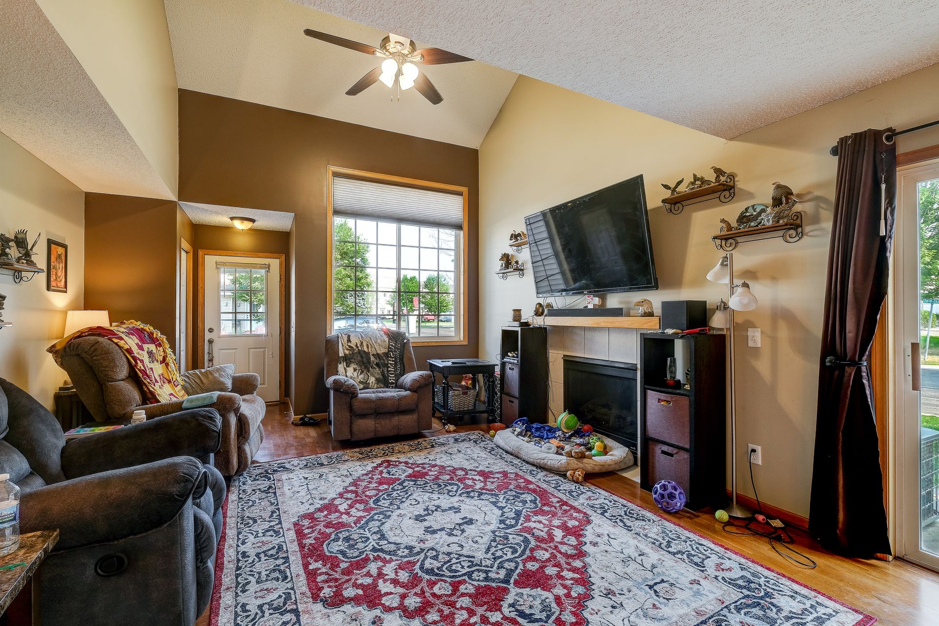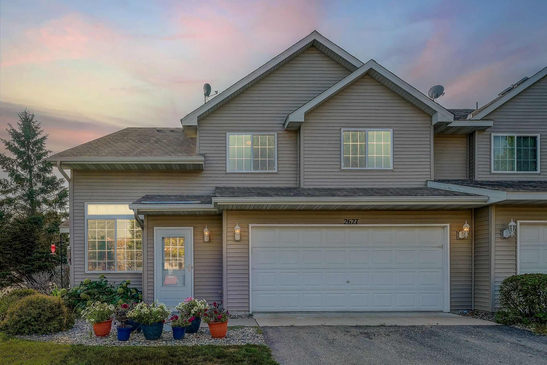 Bright and spacious end unit townhome with vaulted ceilings, gas fireplace, patio and so much more. This home has been well cared for and waiting for the next owner to make it their own. The main floor is open with an informal dining room and large kitchen. Both bedrooms are upstairs, with a large owner's suite.