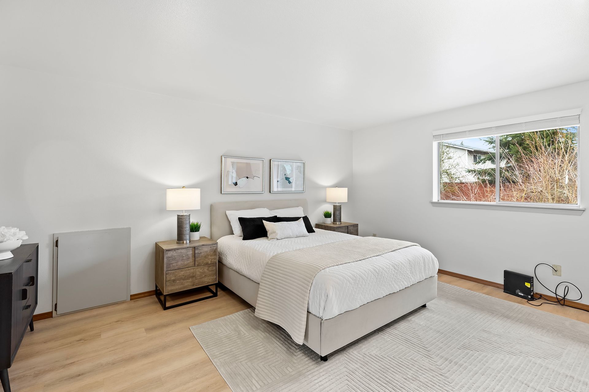 Tucked away on a quiet cul-de-sac, this beautifully maintained home offers both comfort and convenience! Step inside to discover a warm and inviting main level featuring a cozy living room with a wood burning fireplace, a dining area, a well-equipped kitchen with an eating nook and a flexible family room. Upstairs, you’ll find three spacious bedrooms including a primary suite with an ensuite bath. Recent updates include fresh exterior paint, a new roof and a new water heater. Stay comfortable year-round with a gas furnace and central A/C. The expansive backyard, complete with a covered deck, is ideal for entertaining. Located just minutes from Alderwood’s shopping, I-5, 405 and the new Lynnwood Light Rail Station - Welcome home