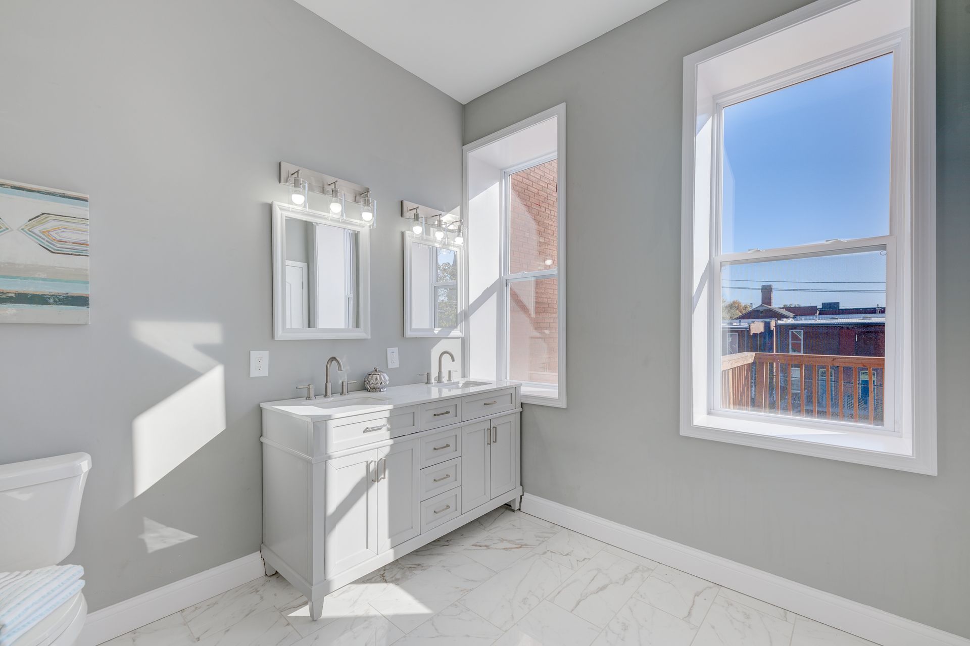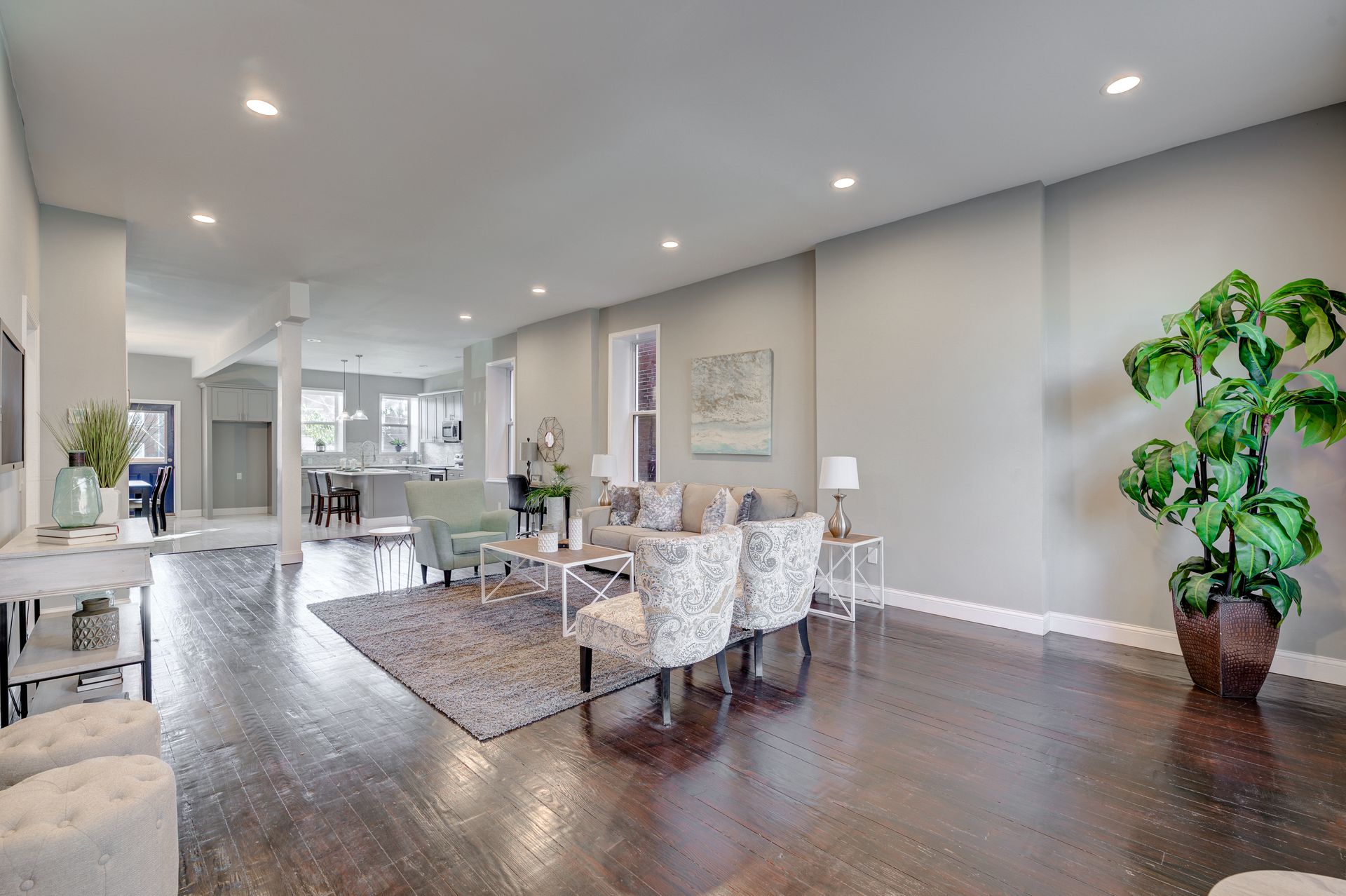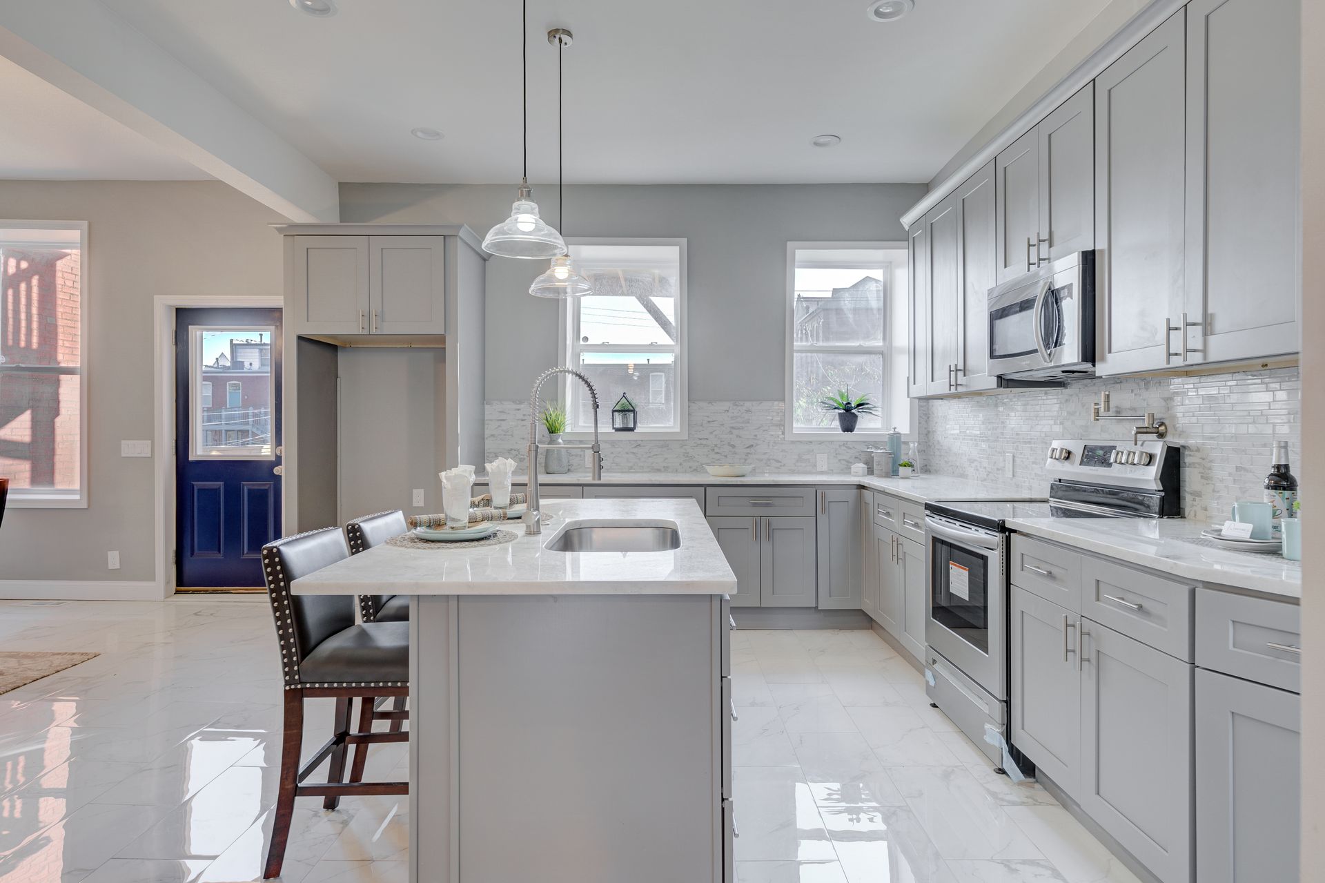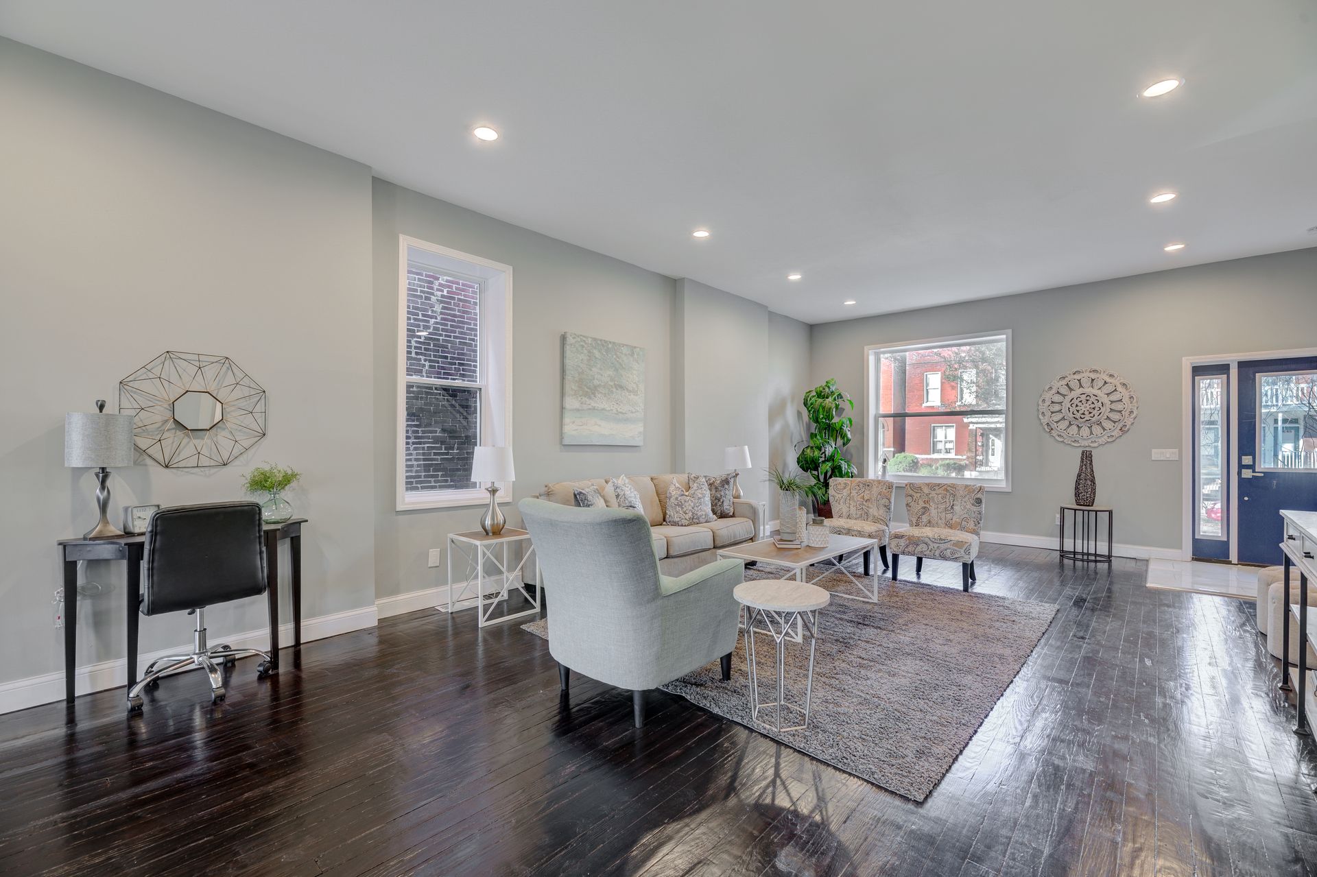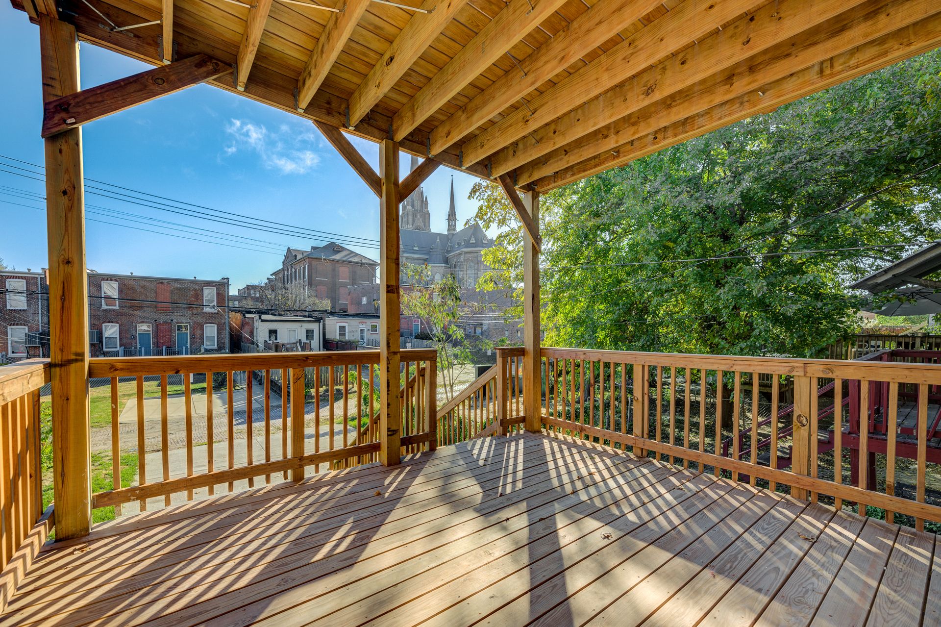 A Fox Park gem. Magnificent original character is preserved with refinished wood floors on the main and a soaring 2-story brick wall. The gourmet kitchen, dining room, living room, and half bath are set off by the 16-foot-high ceiling, quartz counters, tile backsplash, pot filler at the range, stainless steel appliances—nothing has been missed. Your outdoor furniture and grill will complete the deck right off the dining room. The second floor offers 10-foot-high ceilings throughout, large hall bath and a convenient laundry room. Saving the best for last, the master bedroom suite awaits you. Large enough for a king bed, this retreat has two roomy closets, a deluxe spa master bath with a double vanity, and your private deck with views of historical architecture. Near so many great City amenities including Midtown! Enjoy all that this home has to offer, and make it yours today!