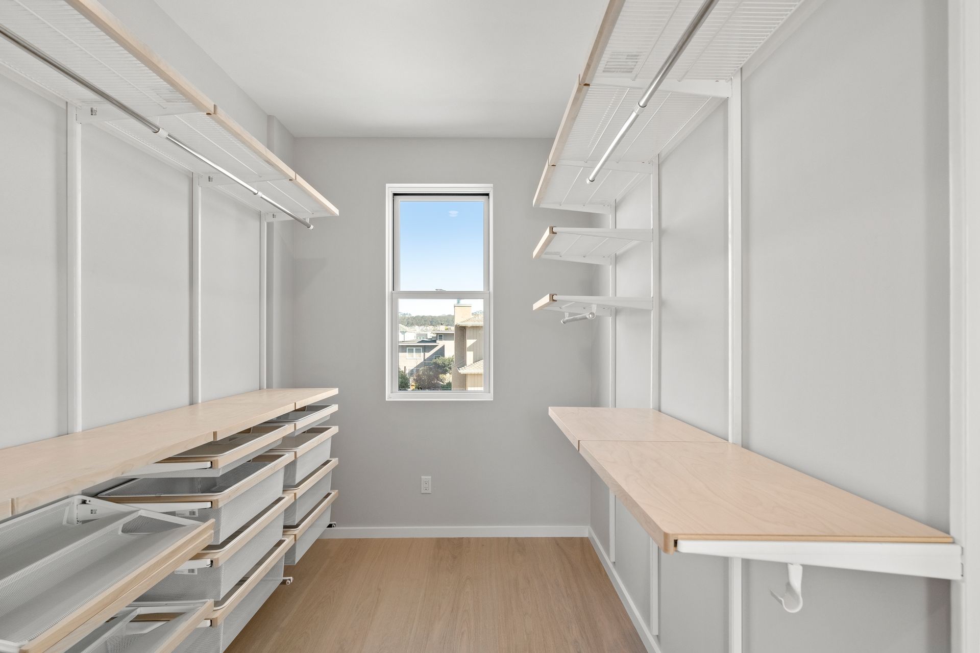 Upper Level hosts the private primary suite with a soaking tub, dual vanities, and two custom walk-in closets. Two additional bedrooms, a full bath, and a laundry closet complete this floor.