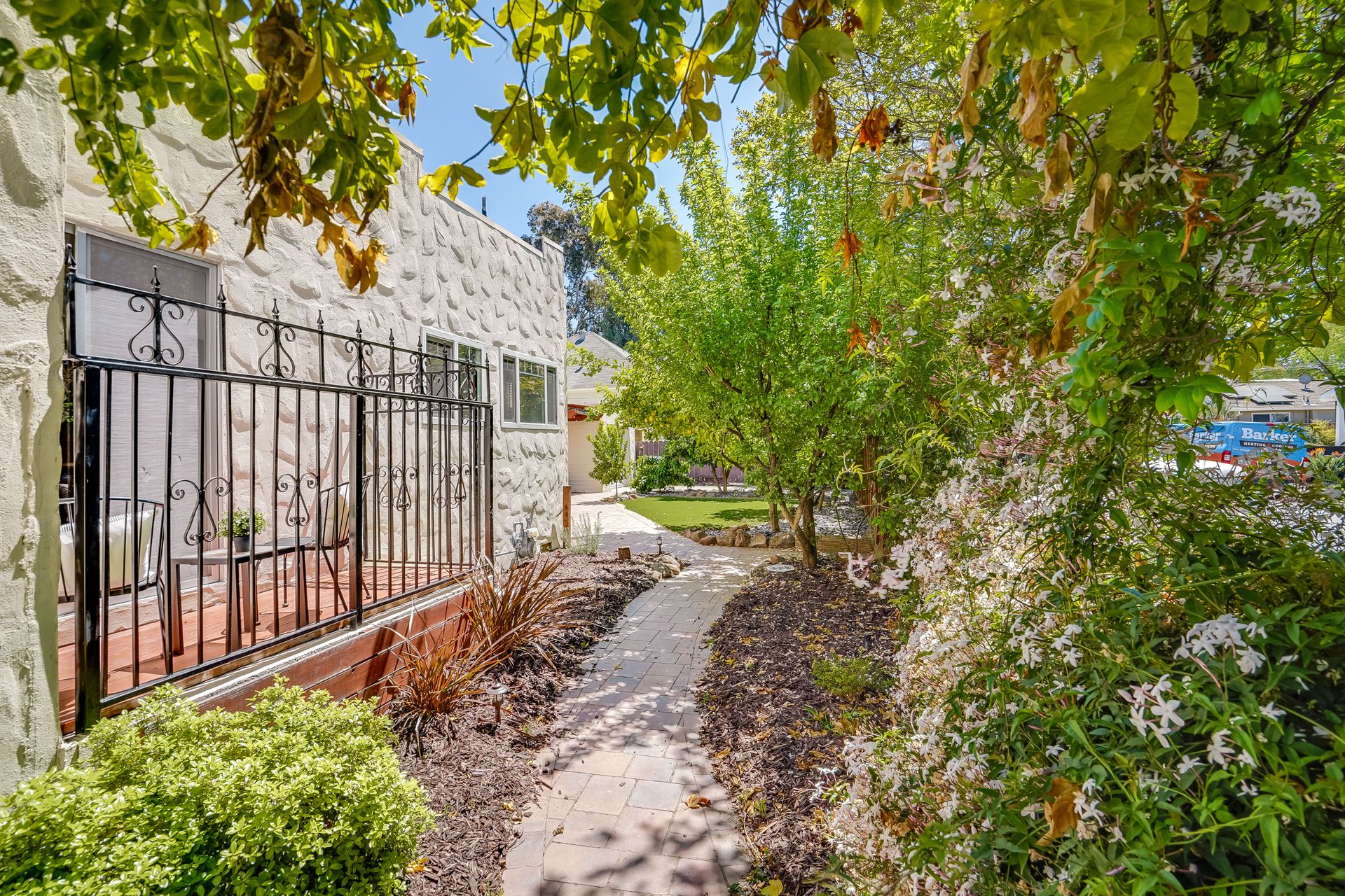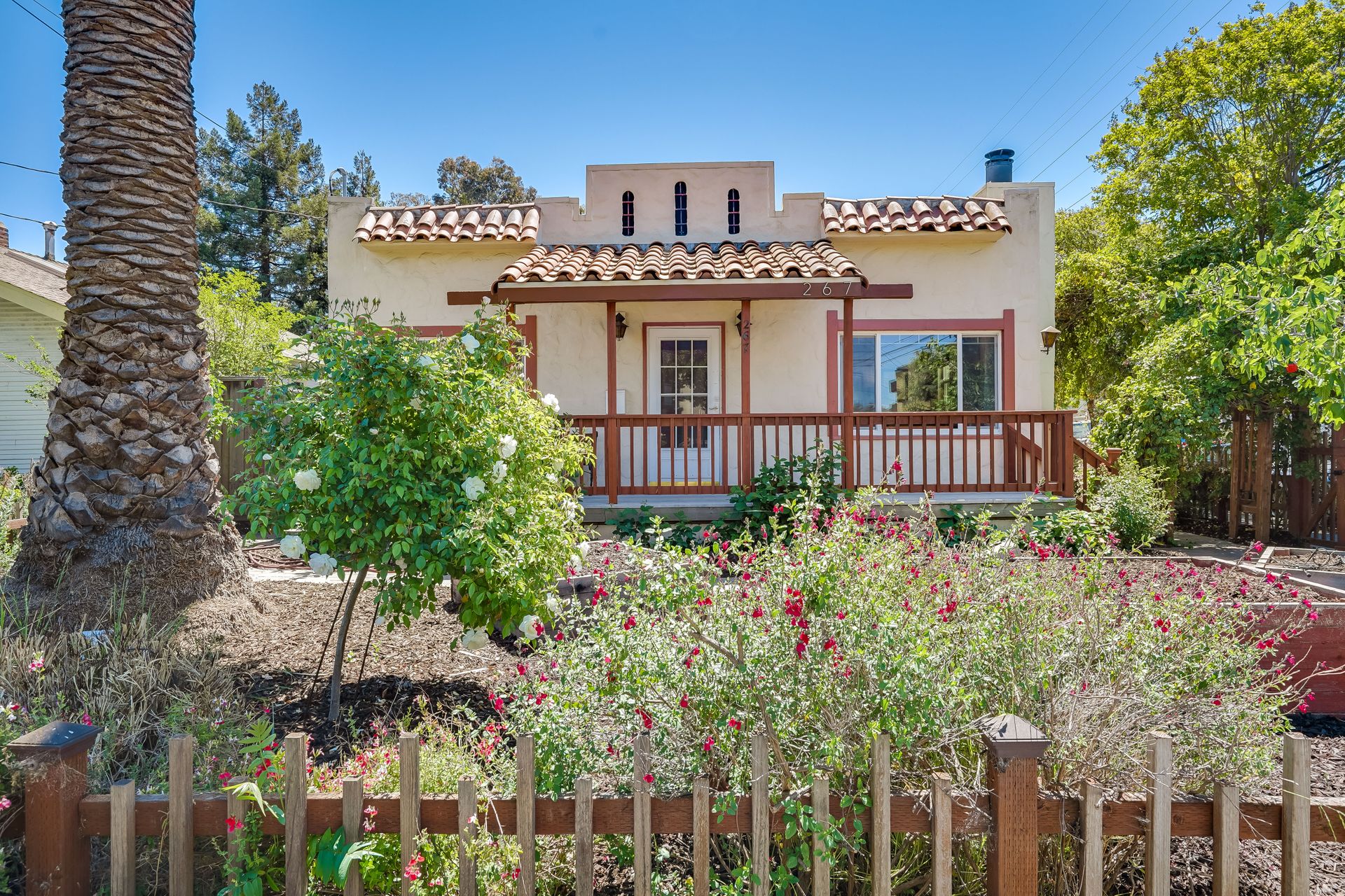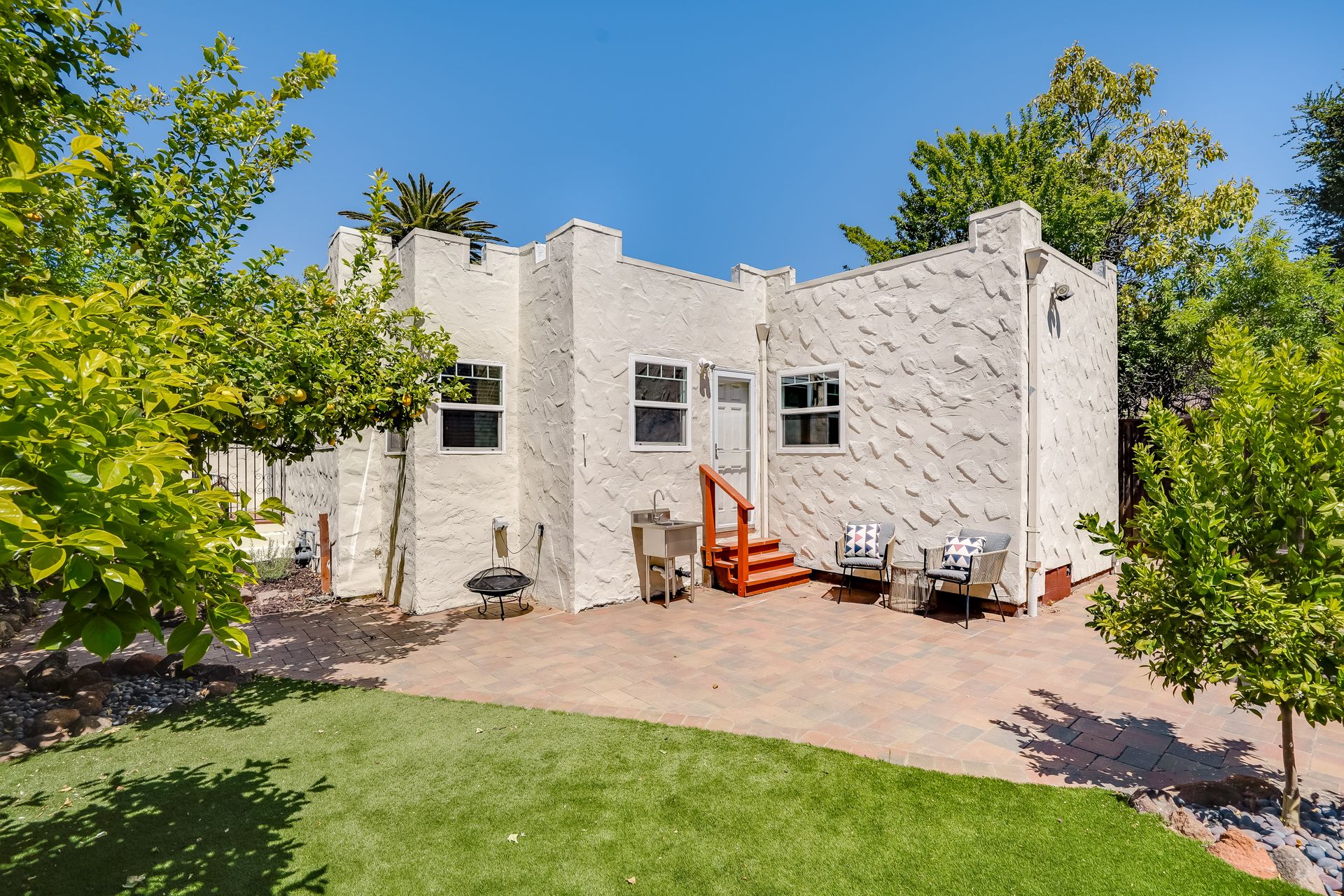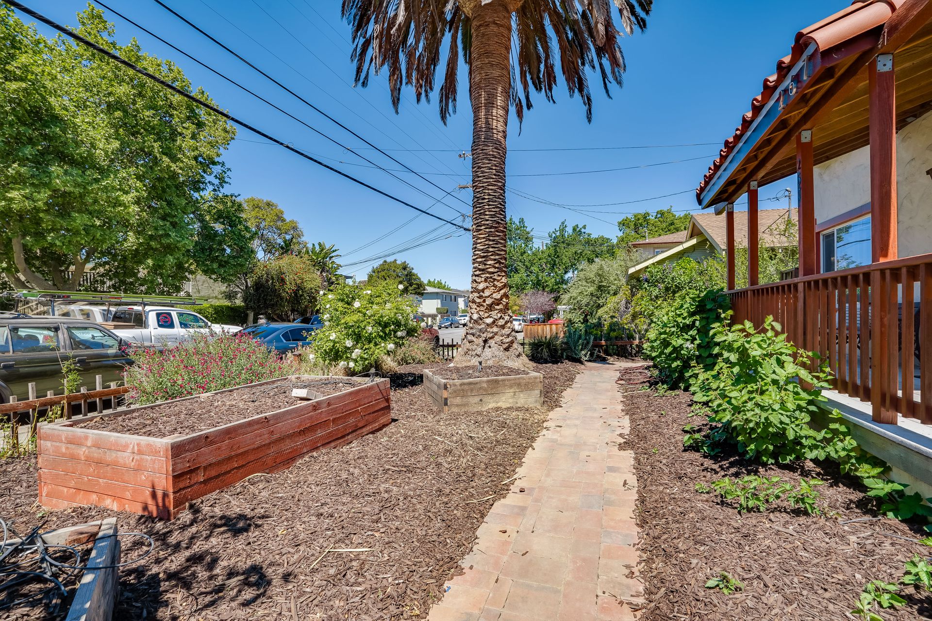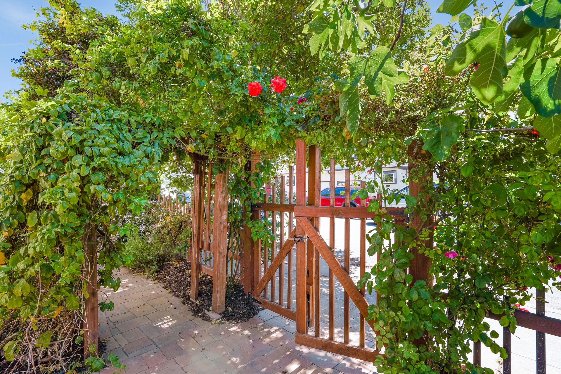 This quant and cozy home boasts newly refinished hardwood floors, updated kitchen, 3 beds, 2 baths and a functional floor plan. A wood burning fireplace in the living room and Mediterranean detailing makes this home shine! A multitude of fruit, citrus, fig, roses and sumptuous gardens transform the yard into your own sunny oasis, while the front yard features a lovely mature palm tree and raised beds to grow vegetables. Gated driveway, detached garage, and outdoor work space for hobbyists.