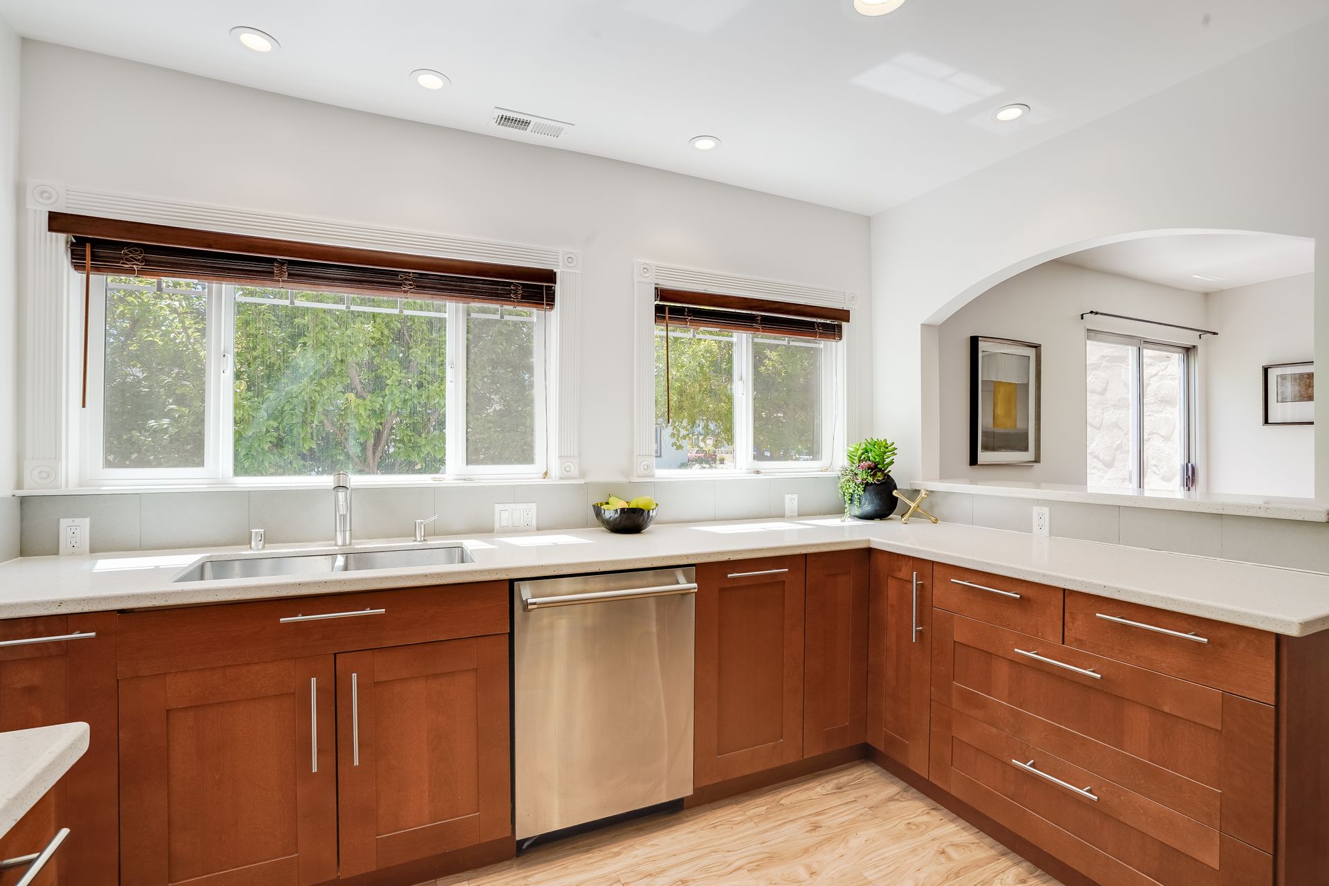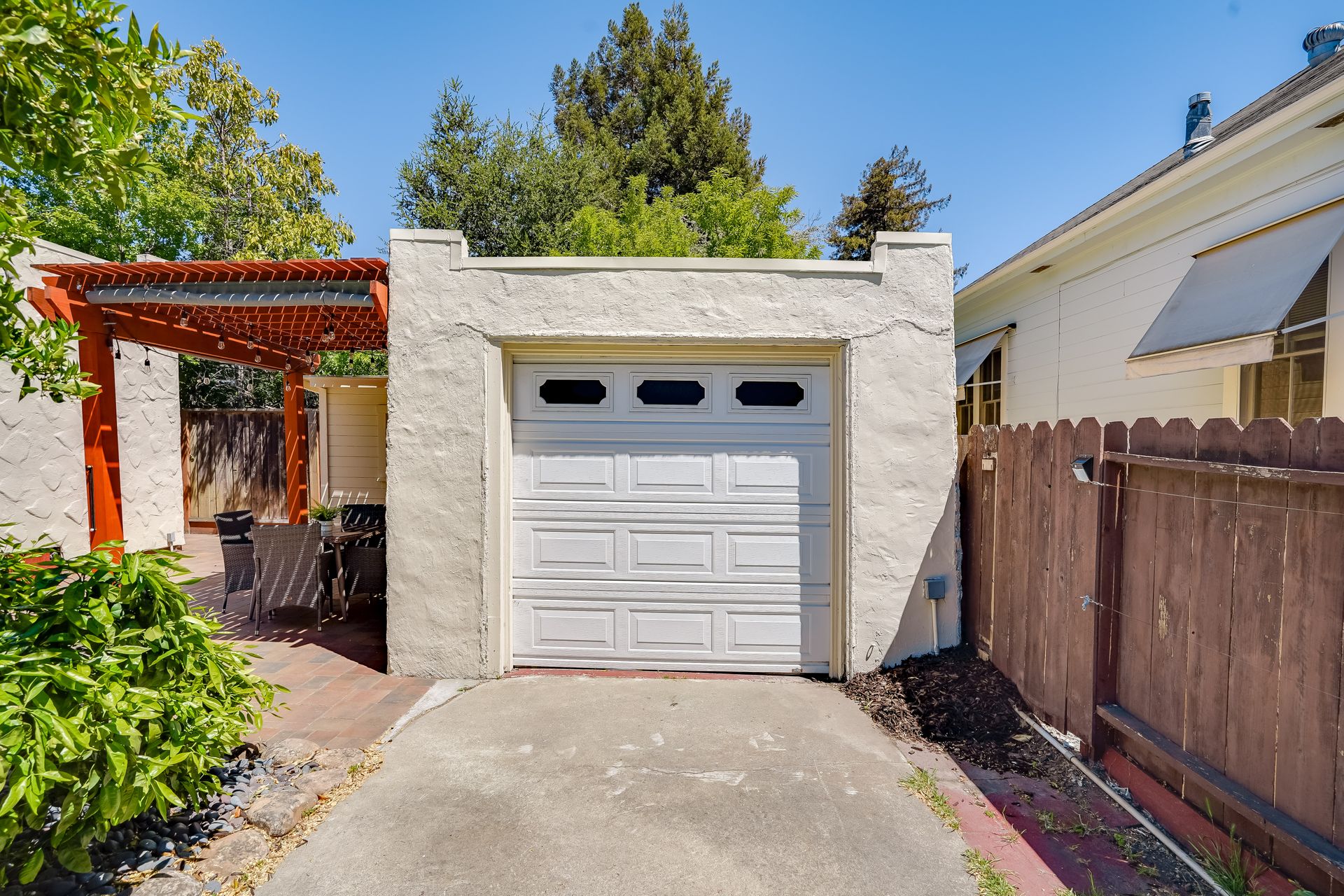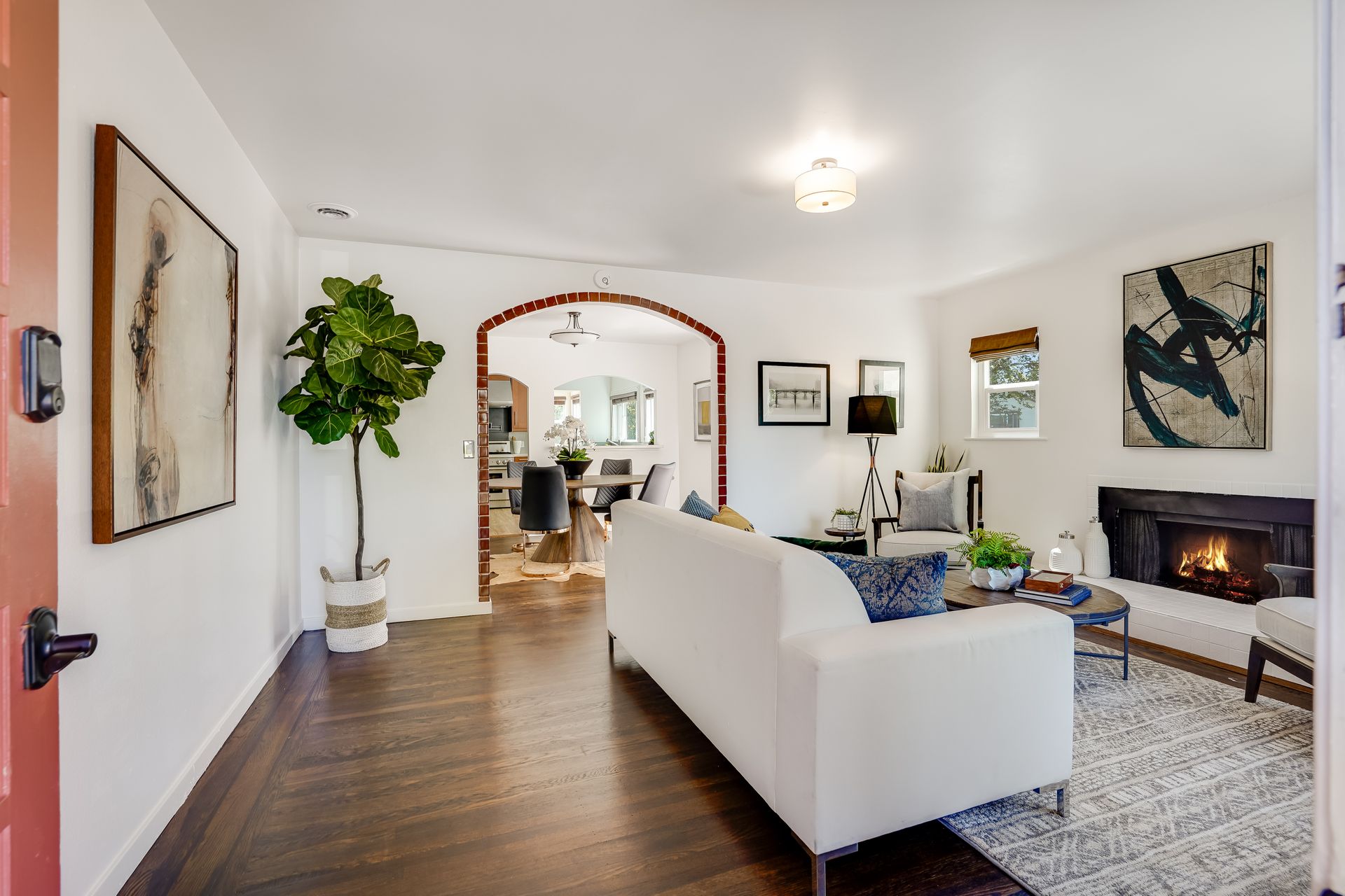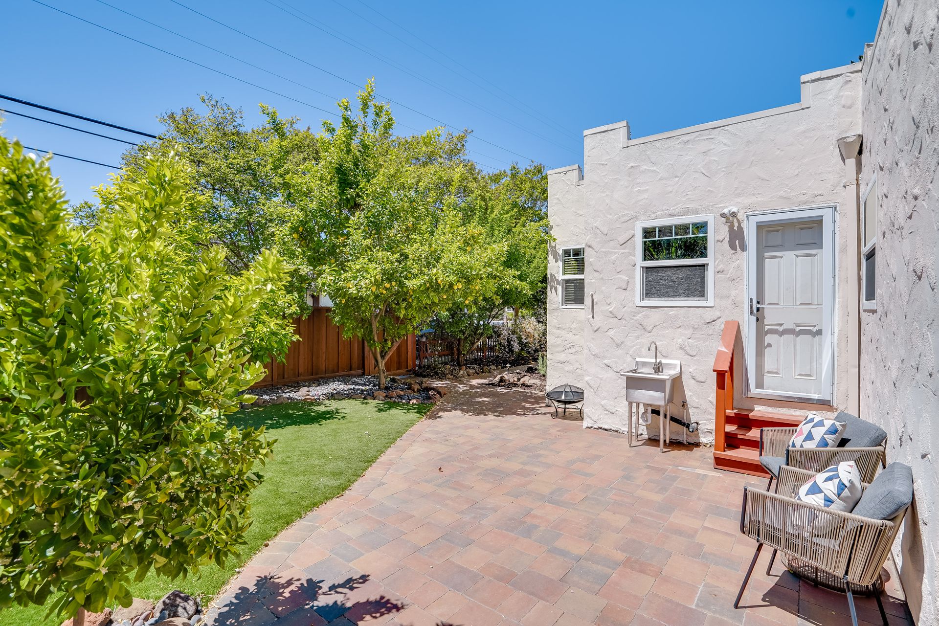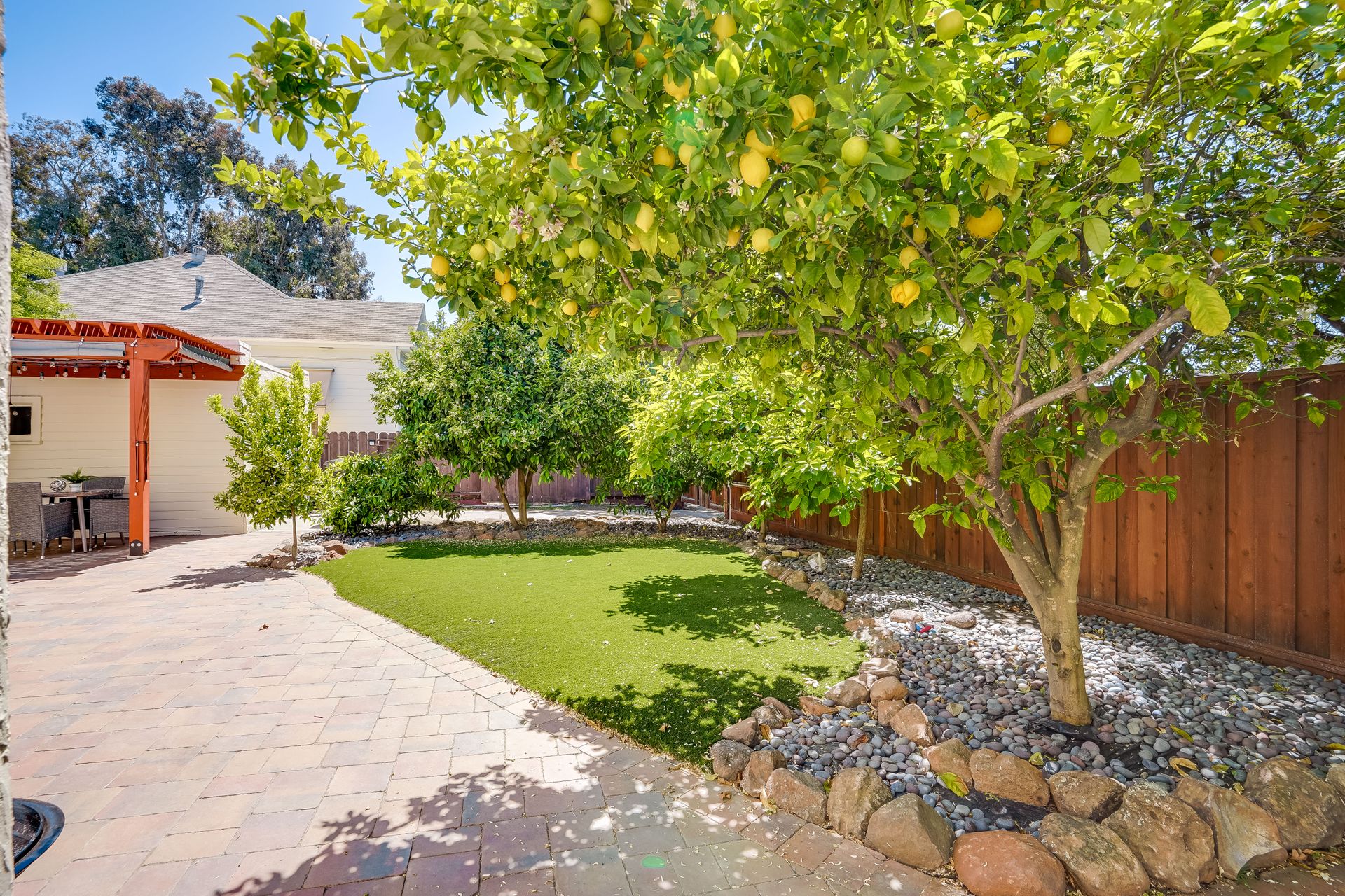 This quant and cozy home boasts newly refinished hardwood floors, updated kitchen, 3 beds, 2 baths and a functional floor plan. A wood burning fireplace in the living room and Mediterranean detailing makes this home shine! A multitude of fruit, citrus, fig, roses and sumptuous gardens transform the yard into your own sunny oasis, while the front yard features a lovely mature palm tree and raised beds to grow vegetables. Gated driveway, detached garage, and outdoor work space for hobbyists.