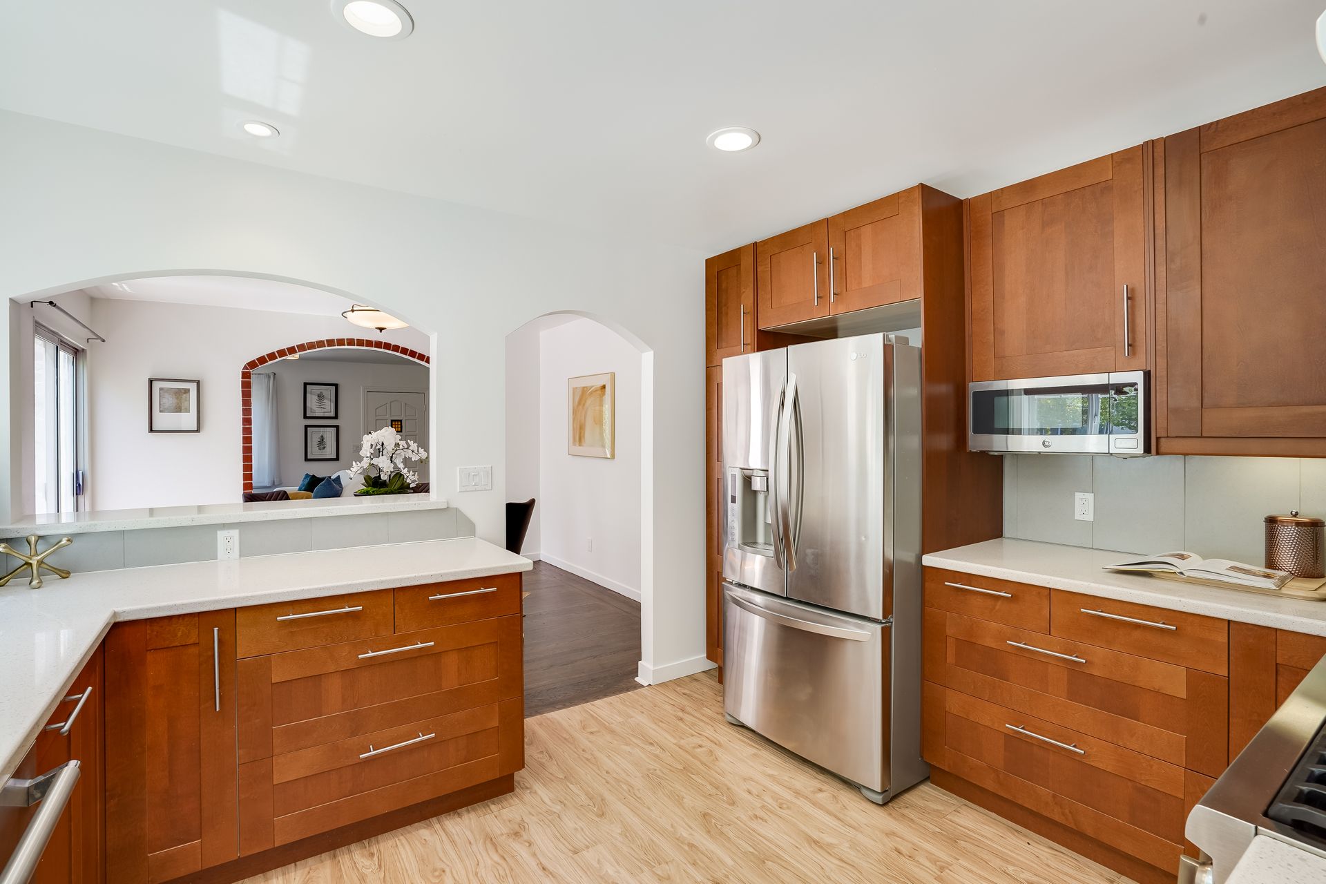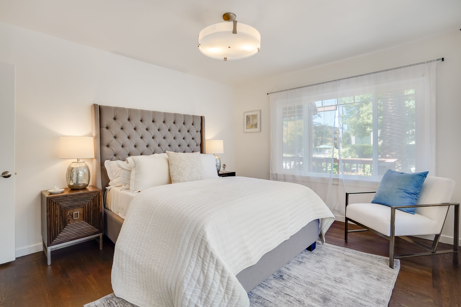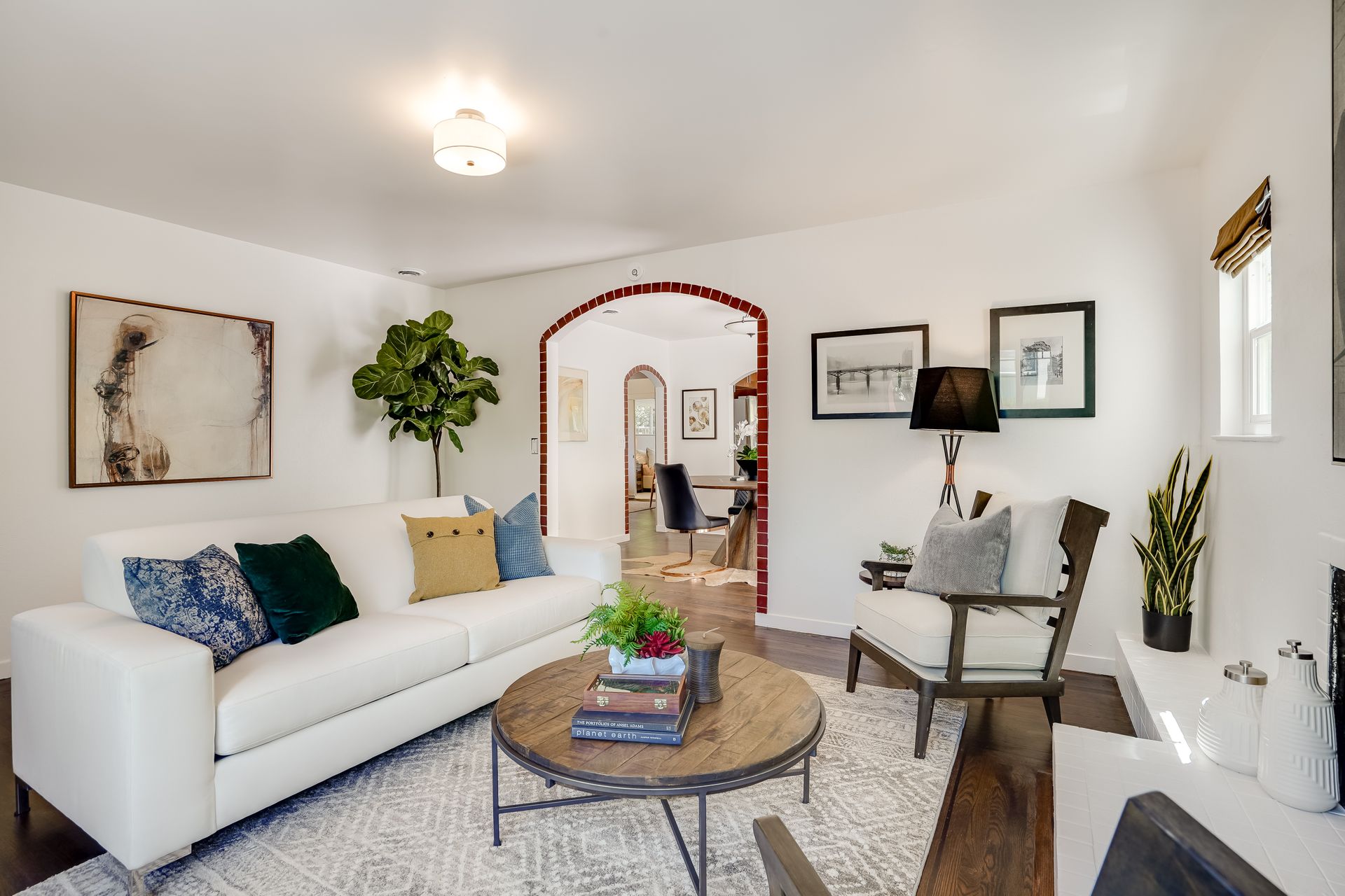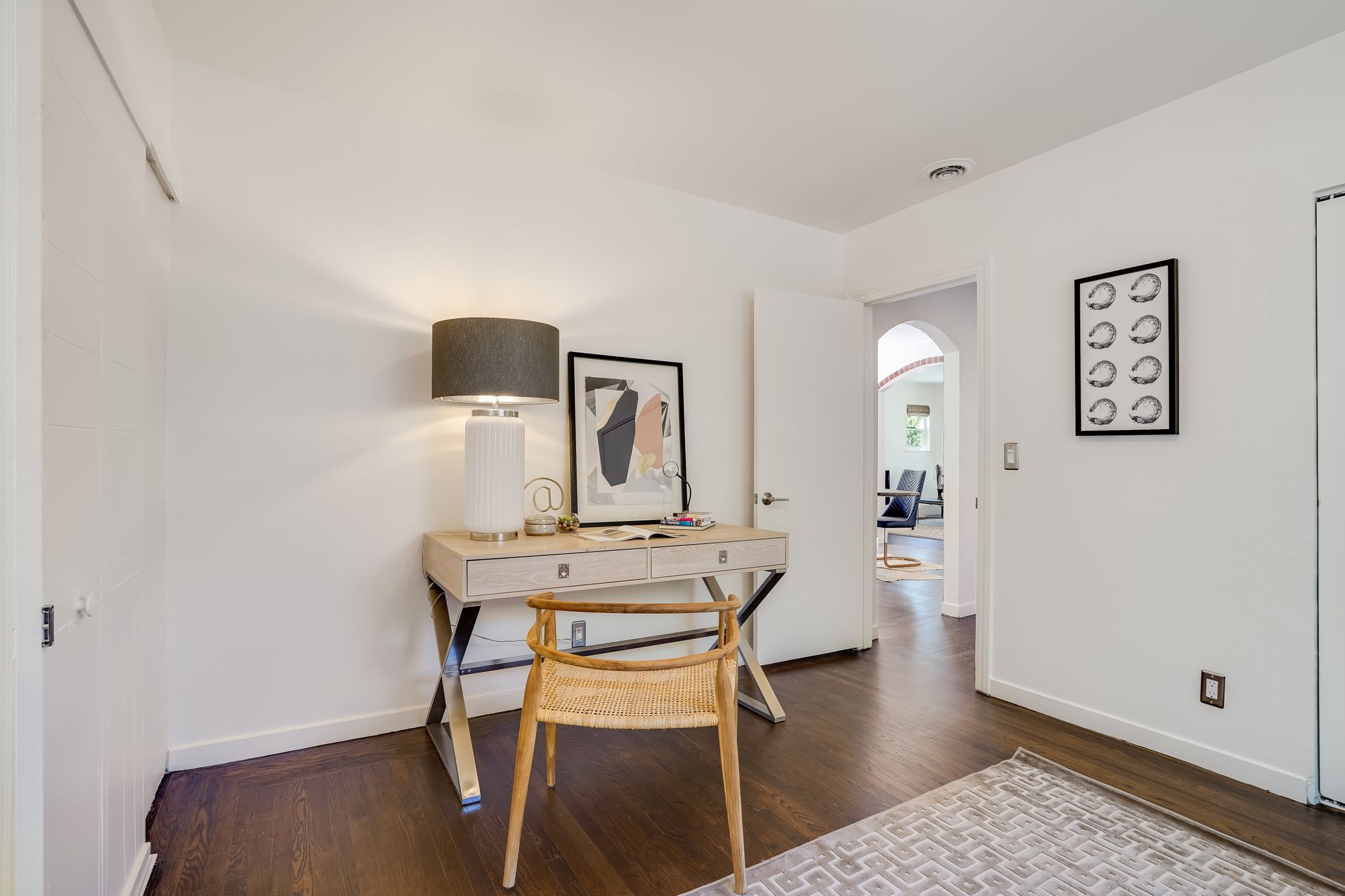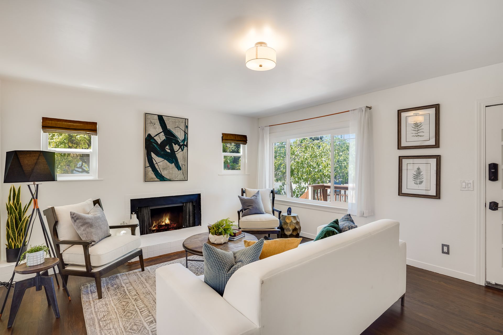 This quant and cozy home boasts newly refinished hardwood floors, updated kitchen, 3 beds, 2 baths and a functional floor plan. A wood burning fireplace in the living room and Mediterranean detailing makes this home shine! A multitude of fruit, citrus, fig, roses and sumptuous gardens transform the yard into your own sunny oasis, while the front yard features a lovely mature palm tree and raised beds to grow vegetables. Gated driveway, detached garage, and outdoor work space for hobbyists.