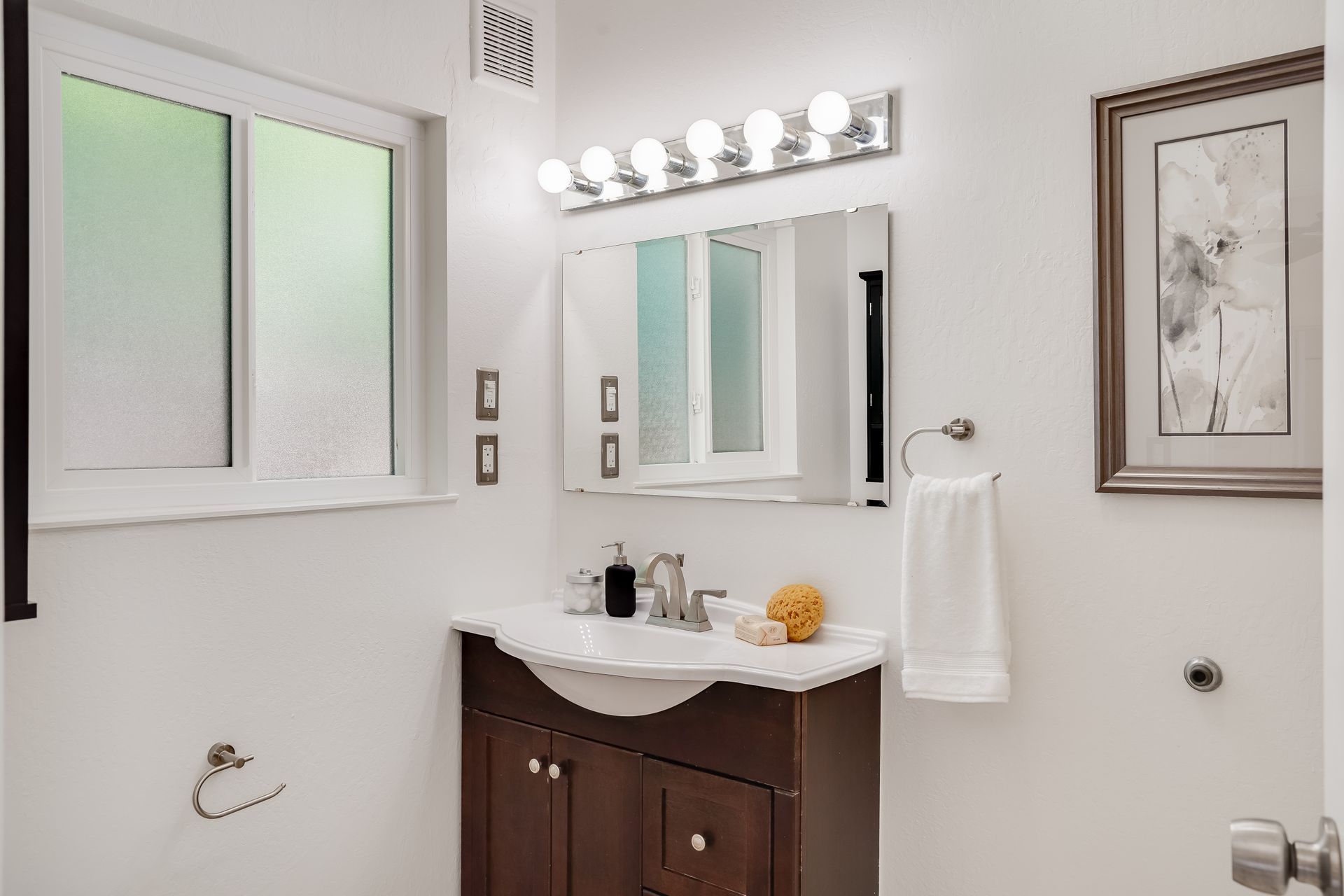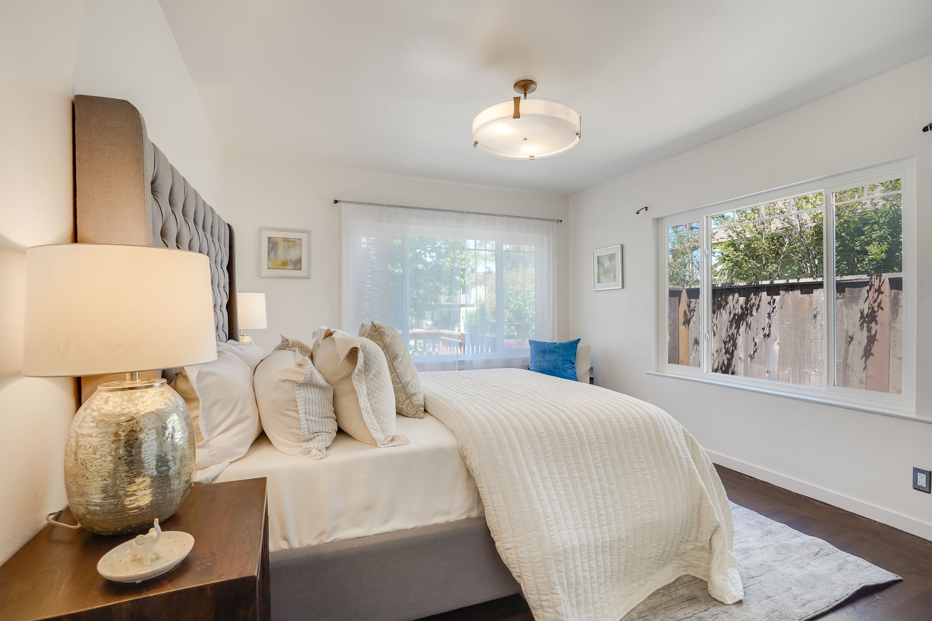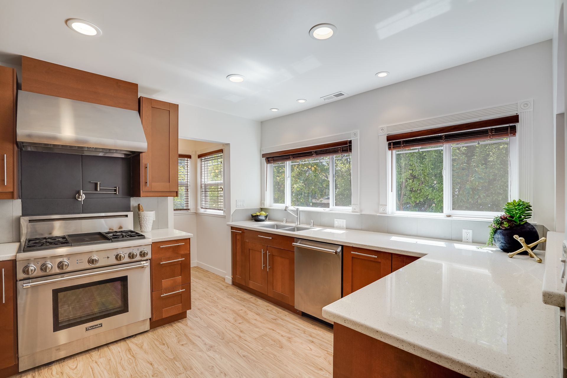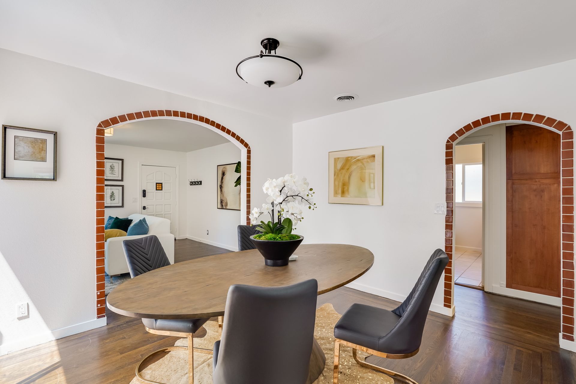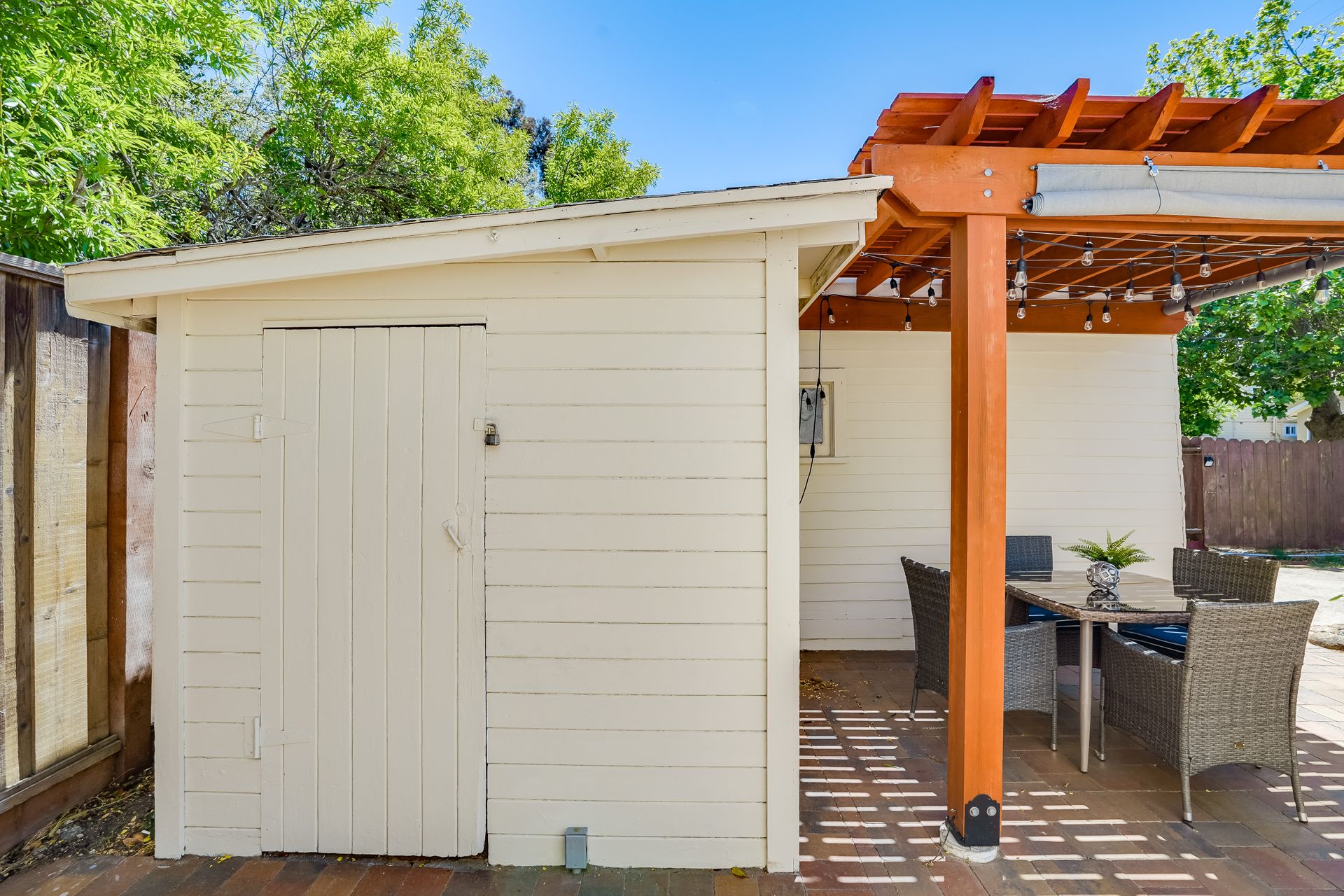 This quant and cozy home boasts newly refinished hardwood floors, updated kitchen, 3 beds, 2 baths and a functional floor plan. A wood burning fireplace in the living room and Mediterranean detailing makes this home shine! A multitude of fruit, citrus, fig, roses and sumptuous gardens transform the yard into your own sunny oasis, while the front yard features a lovely mature palm tree and raised beds to grow vegetables. Gated driveway, detached garage, and outdoor work space for hobbyists.