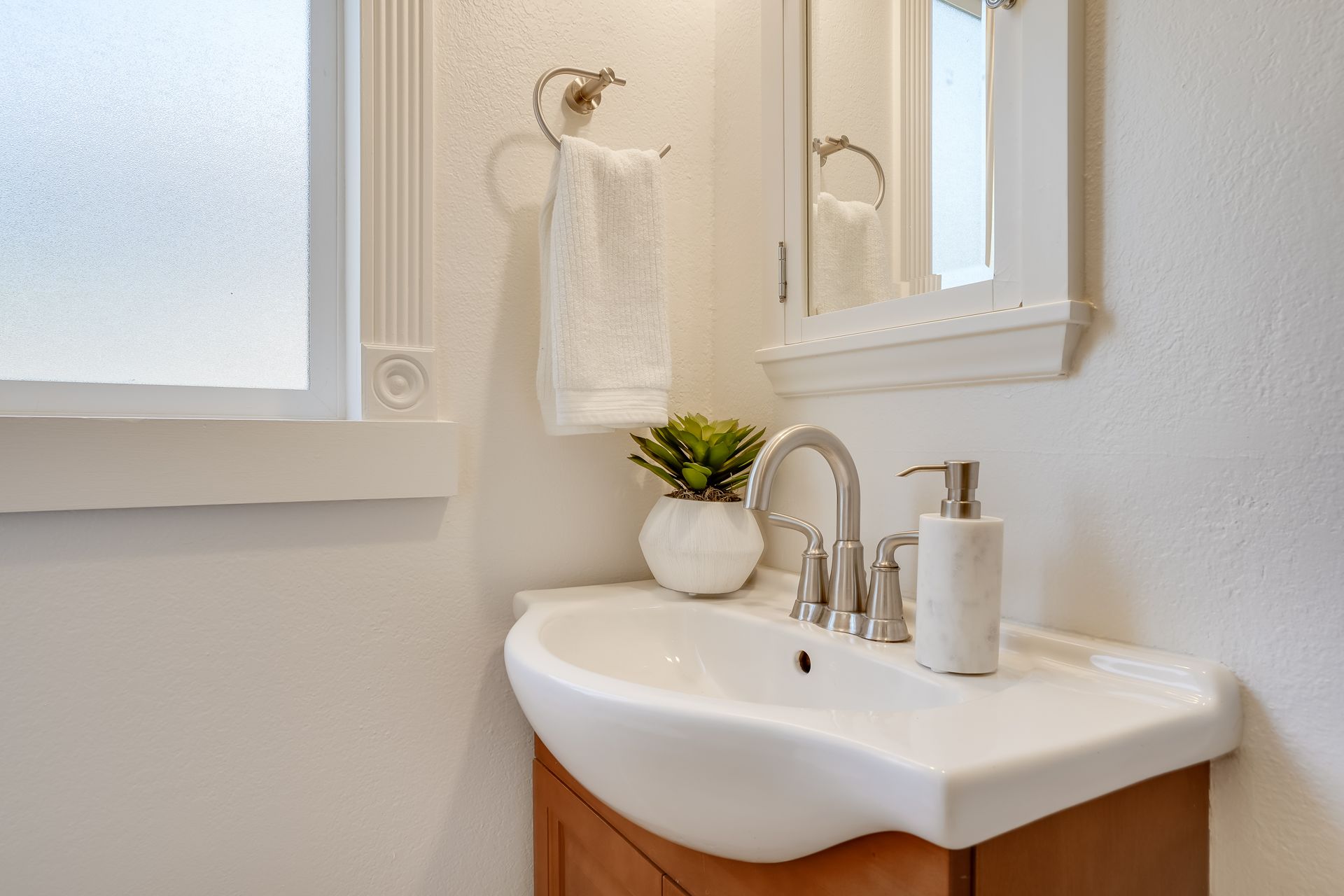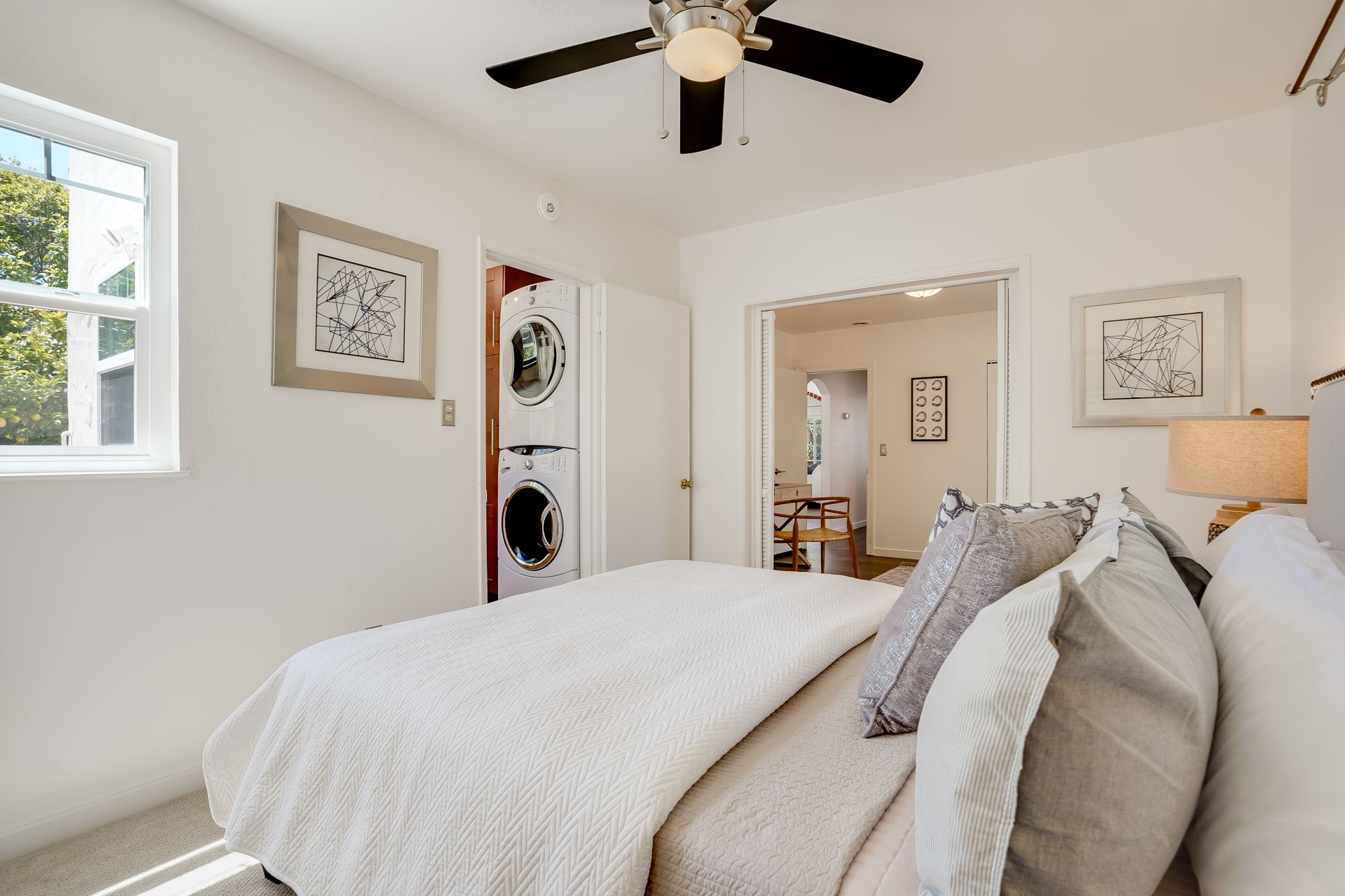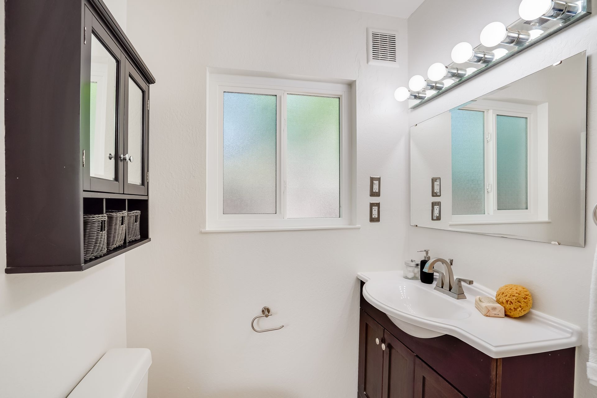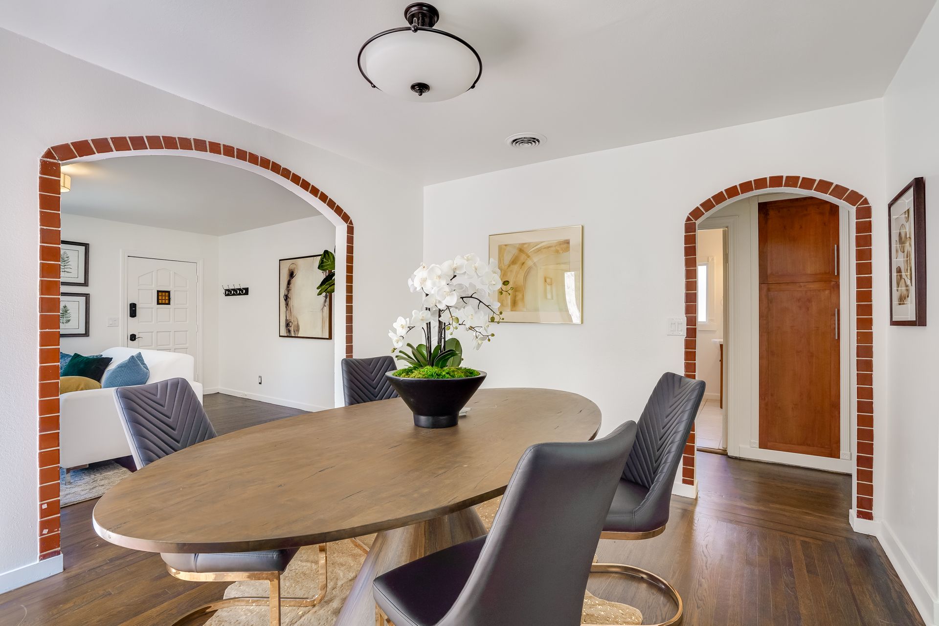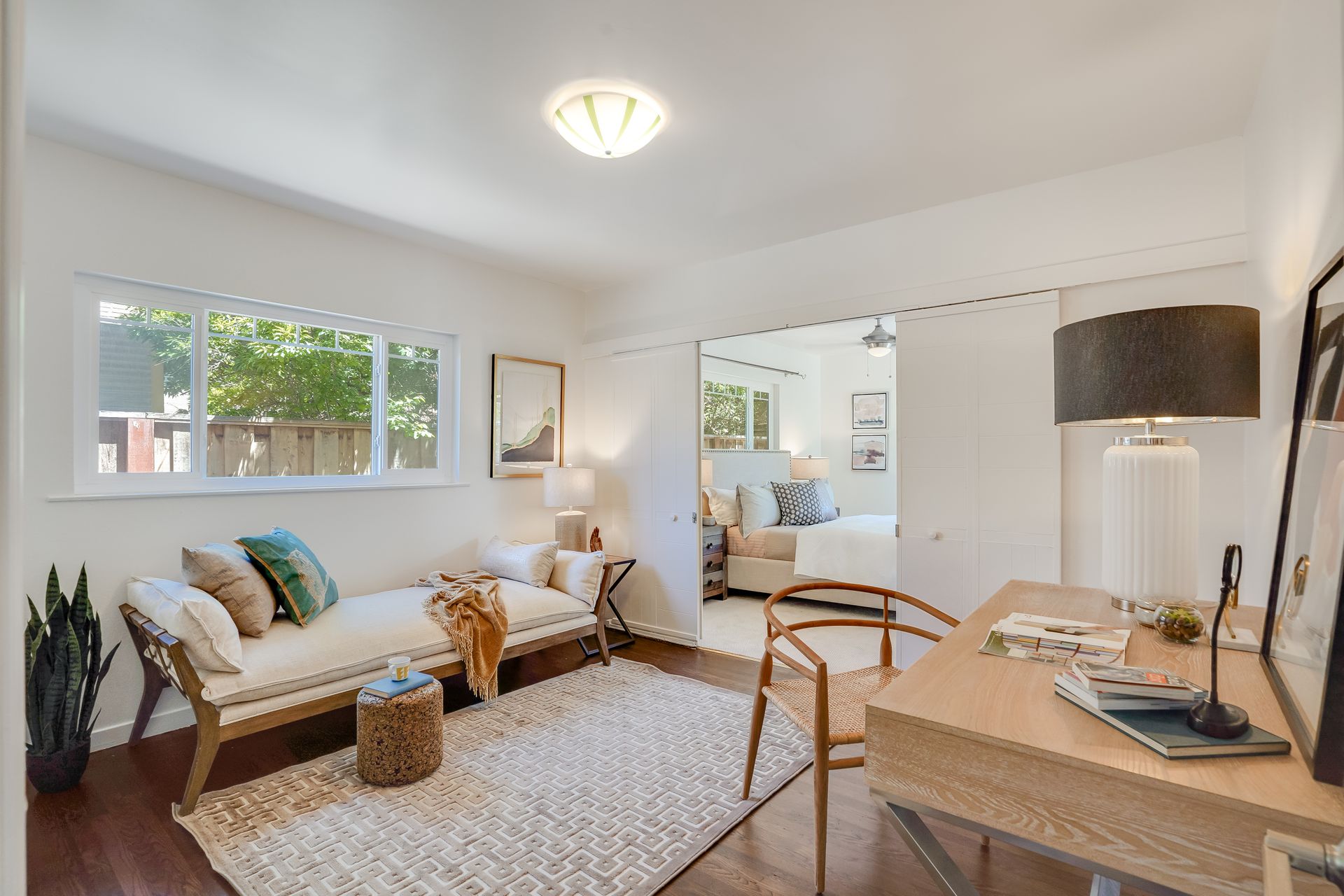 This quant and cozy home boasts newly refinished hardwood floors, updated kitchen, 3 beds, 2 baths and a functional floor plan. A wood burning fireplace in the living room and Mediterranean detailing makes this home shine! A multitude of fruit, citrus, fig, roses and sumptuous gardens transform the yard into your own sunny oasis, while the front yard features a lovely mature palm tree and raised beds to grow vegetables. Gated driveway, detached garage, and outdoor work space for hobbyists.