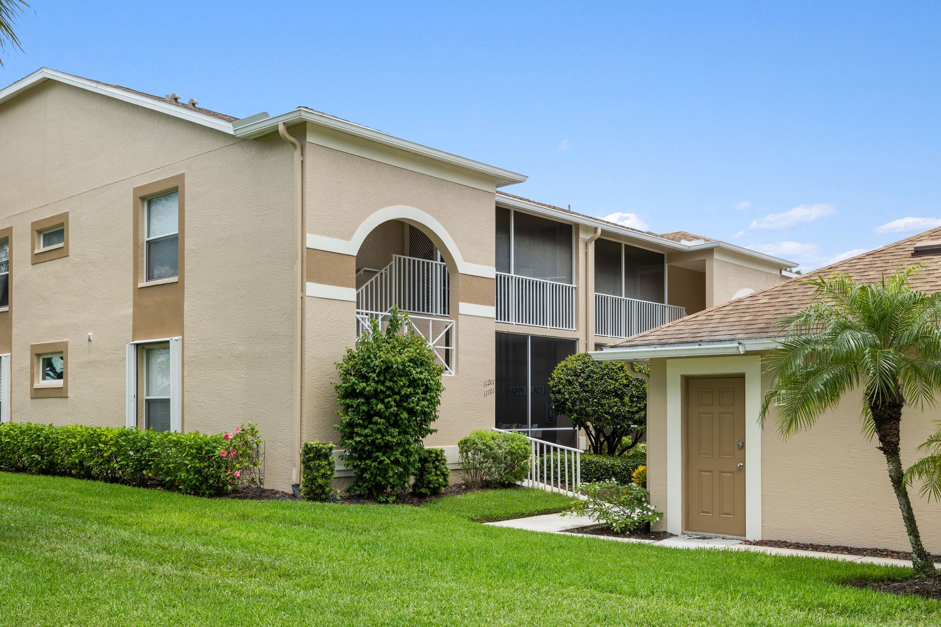 Welcome to the Country Club lifestyle in the high-demand community of Highland Woods. This Abby Veranda is a two-bedroom plus den, two bath, second-floor condo with a one car garage and beautiful views of the 17th hole from the rear screened lanai! Don't miss this private end unit with exceptional views and right next to the pool! The unit boasts an open floor plan, vaulted ceilings, breakfast nook, walk-in laundry, brand new air conditioner in 2021, two screened lanais and a hard-to-beat location! Original owners loved this home and it is now ready for you to come and enjoy. Highland Woods has seven pools for your enjoyment, a full-service restaurant, tennis, bocce ball, new pickleball courts coming with the renovation project, a state-of-the-art exercise facility, and many activities that are sure to please your lifestyle. This superb location is right where everyone wants to be! Right off 41, minutes from shopping, restaurants, white sand beaches and RSW airport. A fully approved and funded improvement project is going to take this resort-style country club community to the next level of superiority.