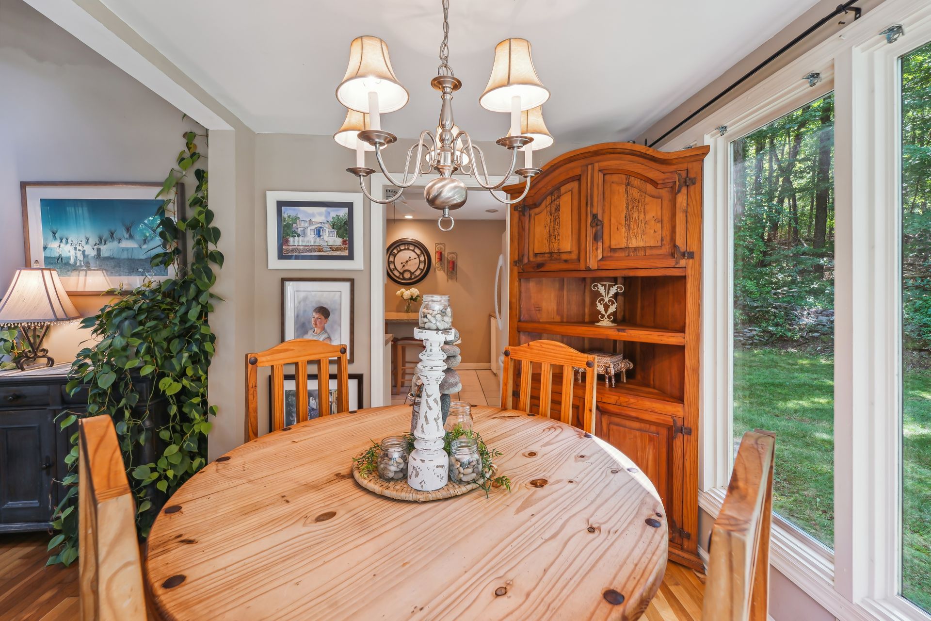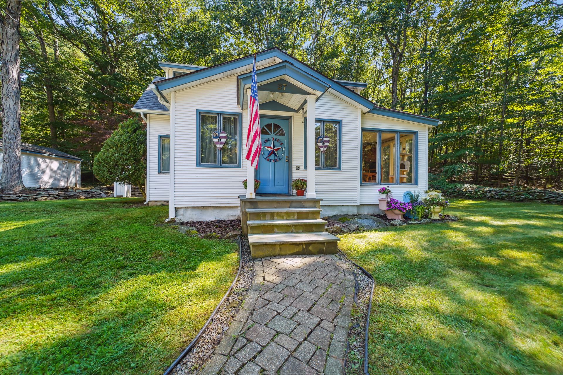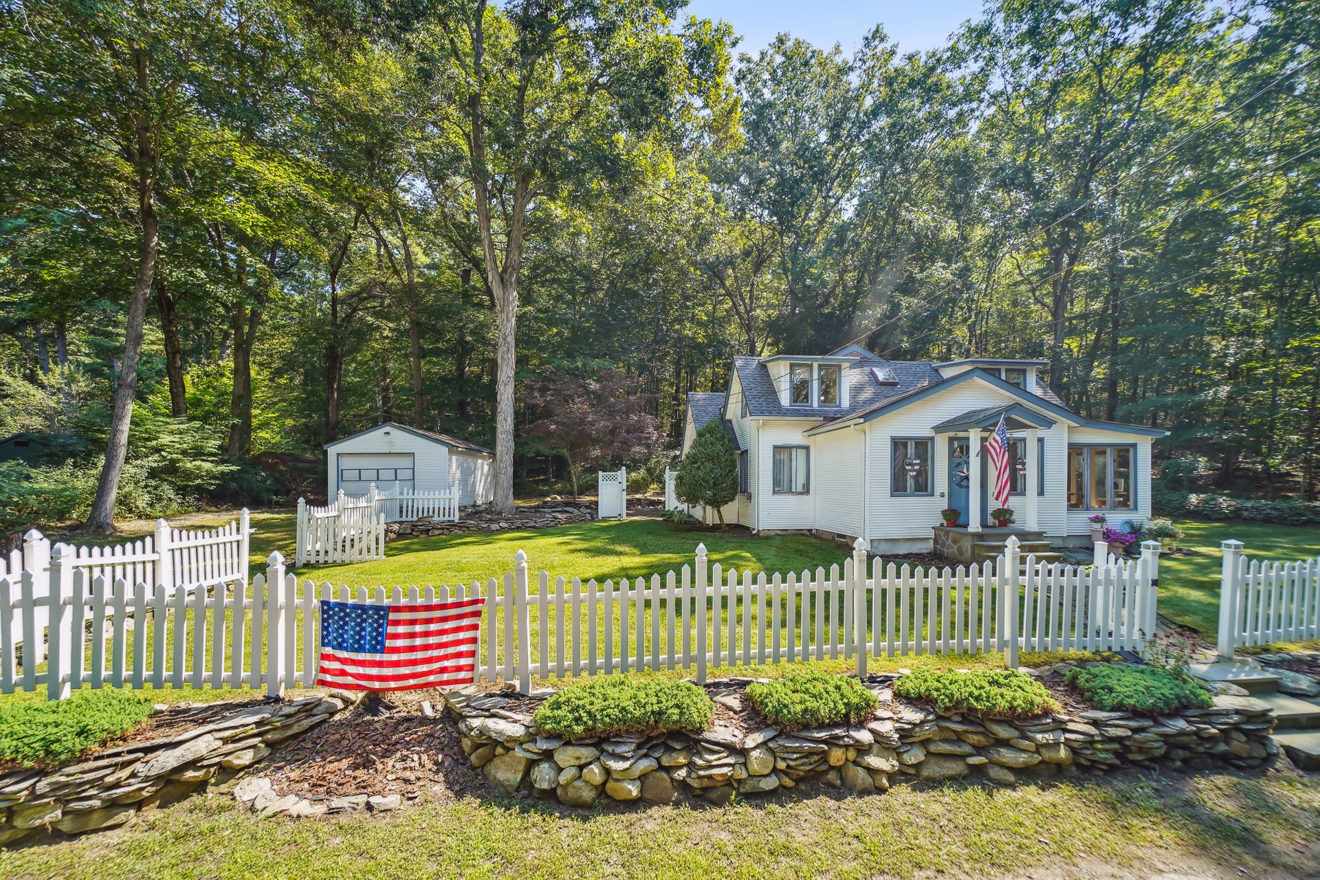 Situated at the end of a little known and quaint cul de sac, the private and level .43 acre yard of this picture-perfect Cape is adorned by stone walls and boarded by neighboring wooded acreage to the right and back-All which blend seamlessly into the home’s peaceful and serene landscape. Outside, the home’s appeal starts from the curb which is introduced by lovely white fencing and an inviting front porch. Inside, the open layout boasts a cathedral ceiling and hardwood floors and consists of a spacious foyer, cozy living room, and a dining area which adds to the convenience and charm. The cheery eat-in-kitchen with breakfast bar is accessible from the dining room and the hallway for easy entertaining and flow. The primary bedroom is located on the main floor and offers access to the uniquely wonderful backyard space and spacious patio. A large full bath with laundry area and ample closet space is conveniently located across the hall. Upstairs are two additional, spacious bedrooms-One boasts a large walk-in closet and access to additional attic storage. The third bonus room can be utilized for a variety of purposes. Enjoy all that Monroe has to offer with this ideal location near the award-winning school system, parks, lake, pool, playgrounds, ball fields, tennis courts, hiking, Rails to Trails and convenience to train station and major routes. Other features include: detached garage, skylights, hardwood floors under carpets on upper level.