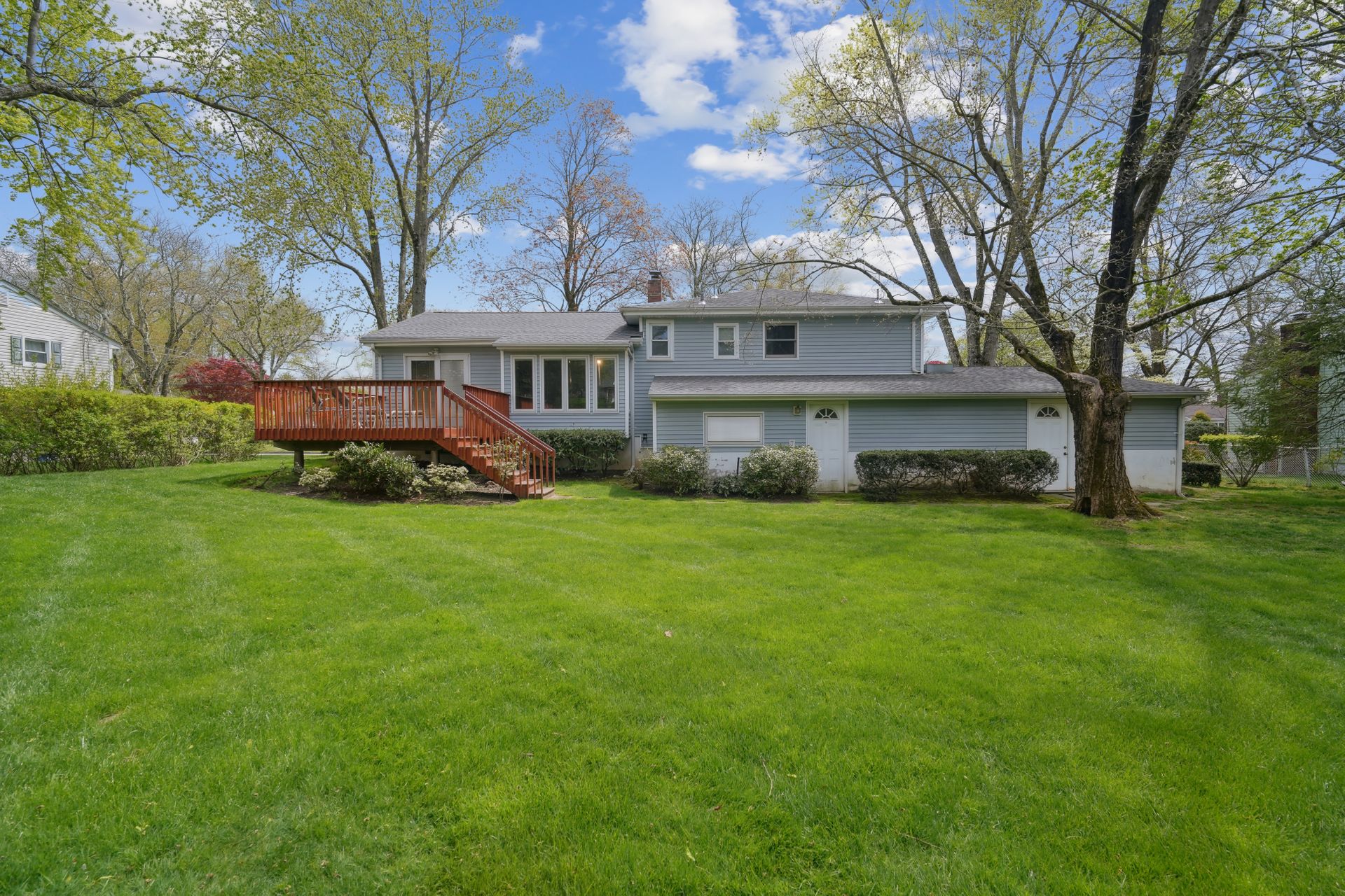 A world of space and expansion possibilities await you in this lovely, four-bedroom, three full bath split level. This home features almost 2,000 square feet of living space, a formal living room, a formal dining room with sliding glass doors to a deck and large, lush yard and a large, eat-in kitchen with plenty of counter space. The lower level features a den, a fourth bedroom/guest room, a third full bath, an entrance to the two-car garage and more. The basement level is partially finished with a recreation room, utilities and storage. The garage is equipped with a receptacle for electric vehicle charging. This is a great home for entertaining and comfortable daily living.