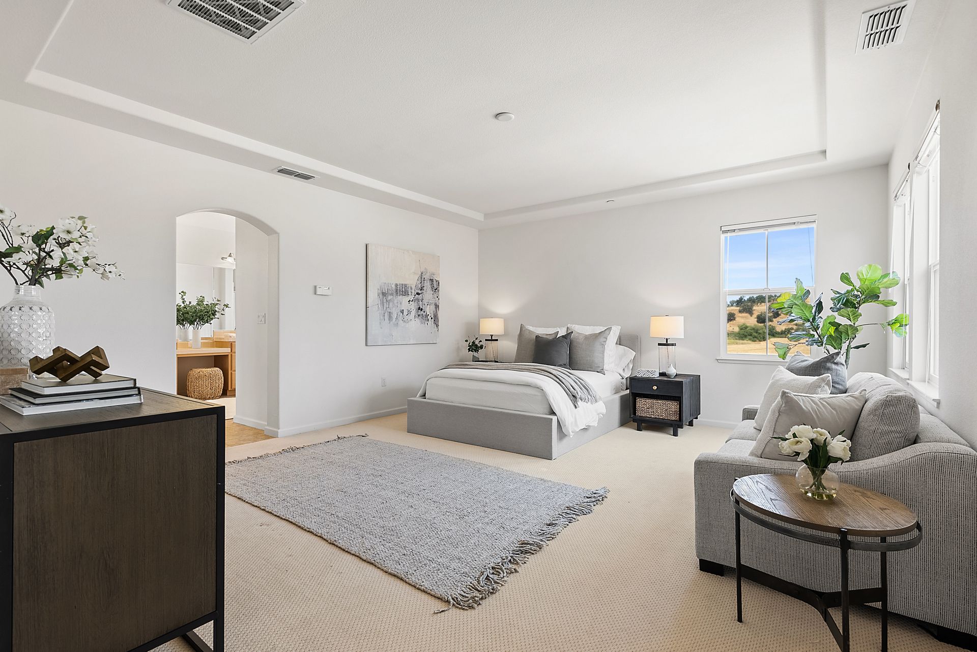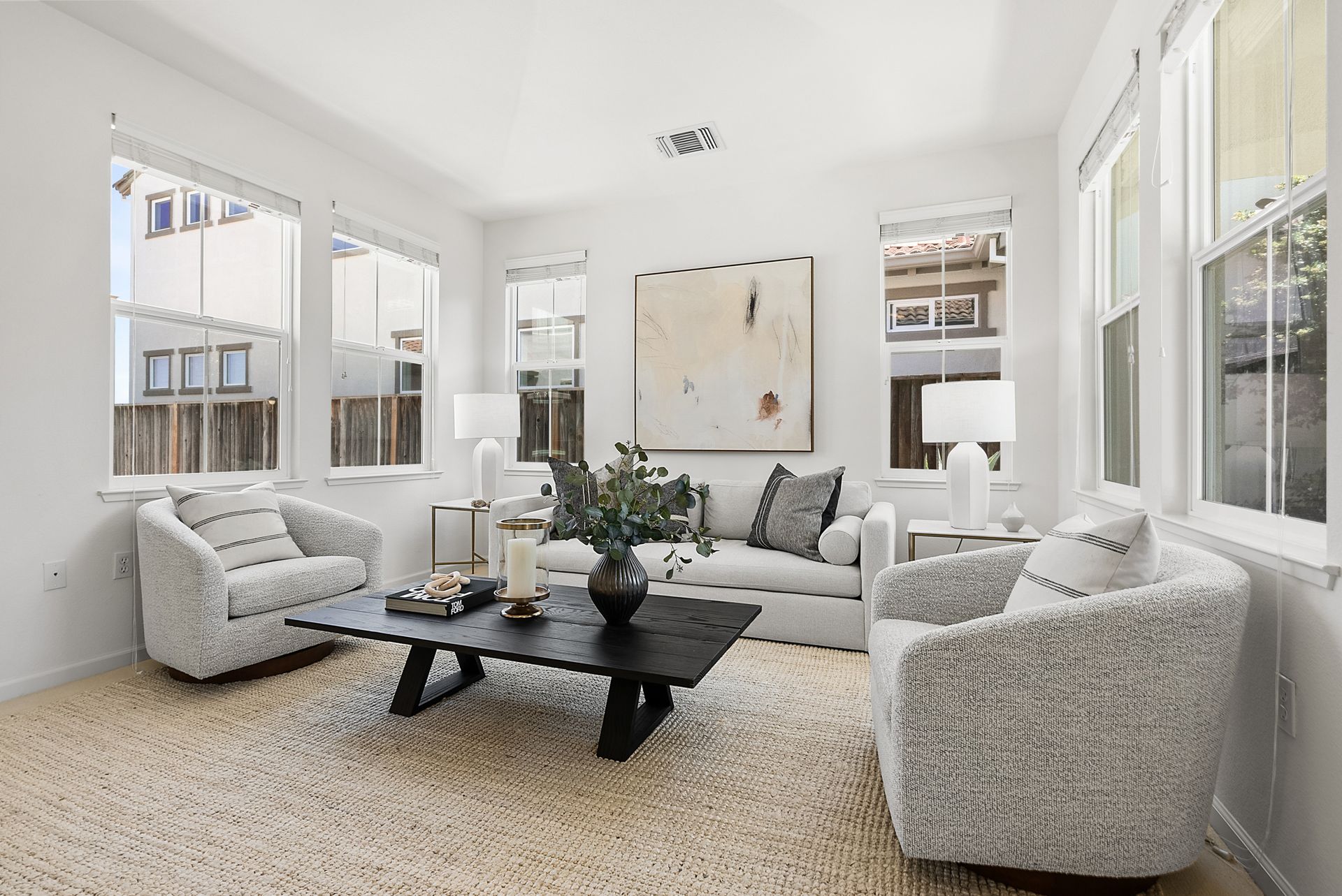 Bordering along expansive fields and hills, this home is located in the highly sought after Hamilton neighborhood. This beautiful home has high ceilings allowing for lots of light. The five bedroom, three bathroom home features an open concept kitchen with a sitting room that has a fireplace and French doors opening up to a private patio. On the main level there is a formal dining room as well as two bedrooms and one bath along with an additional sitting room. Upstairs has a cozy space for an office or TV room, two additional bedrooms and bath as well as a large primary suite with a spa-like bathroom and walk-in closet. The home is also within close proximity to shops, restaurants, schools, parks, the community pool, Highway 101 and the smart train.