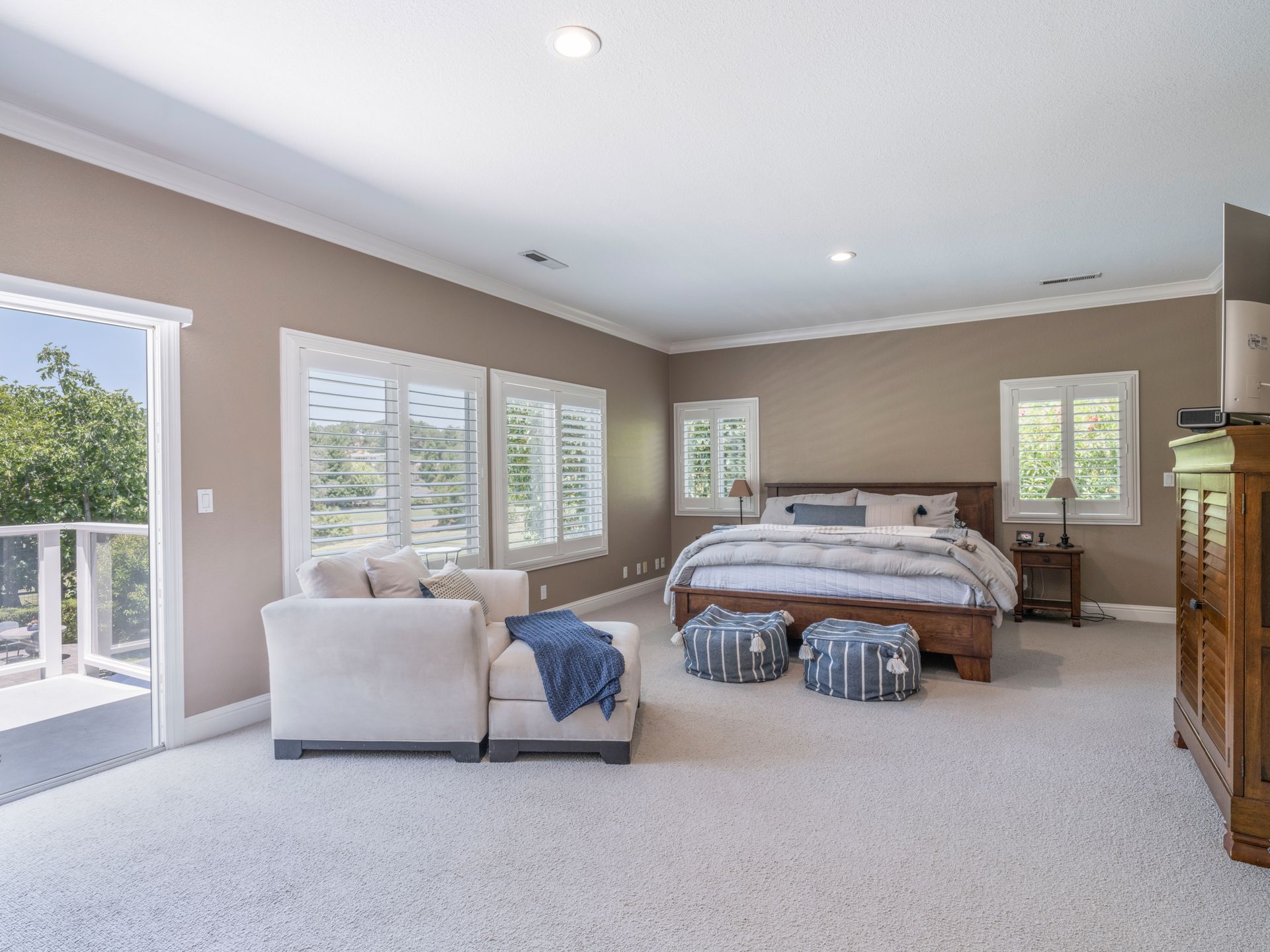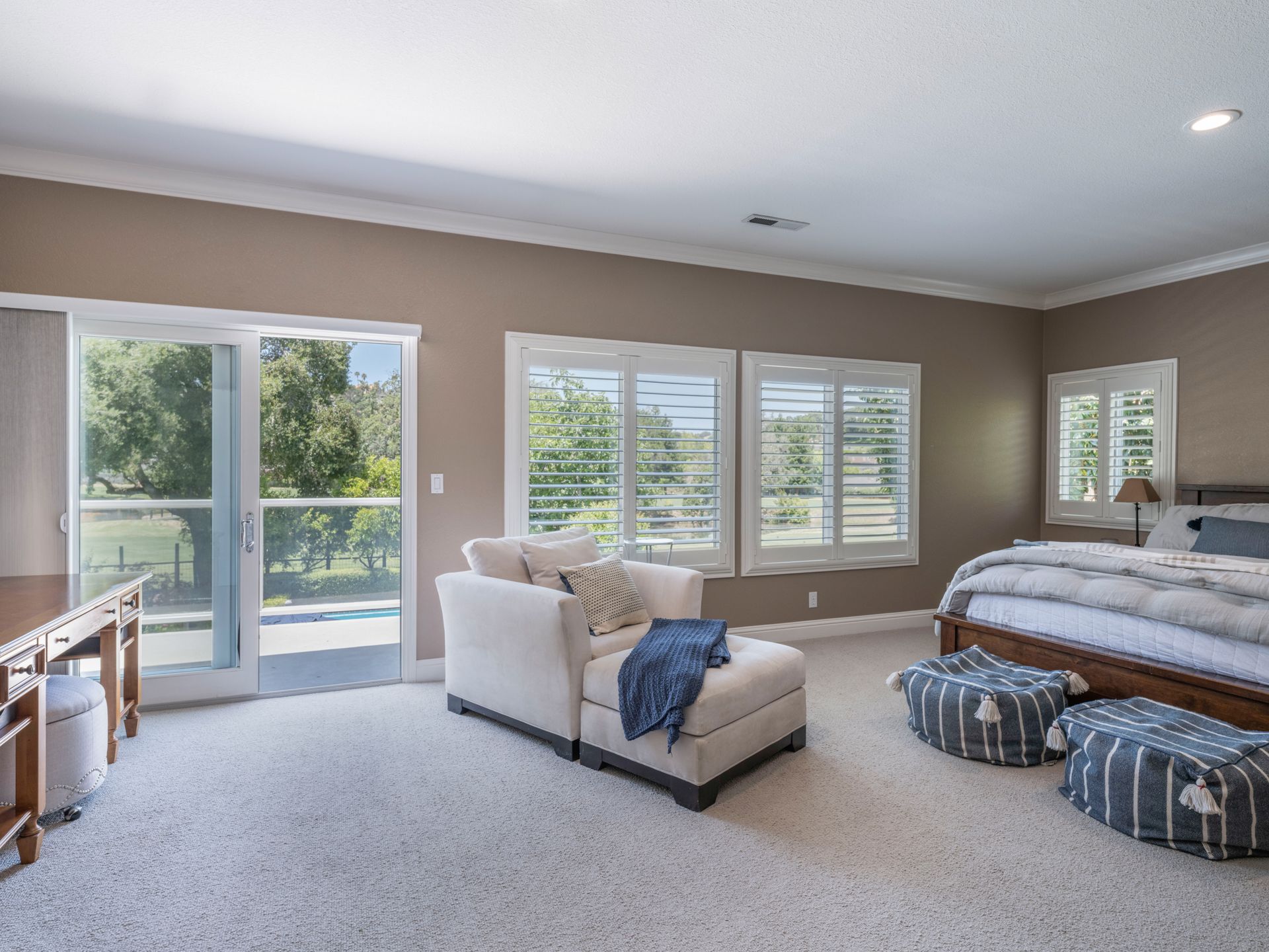 - Balcony with stunning golf course, hillside and pond views accessed thru slider off the primary suite