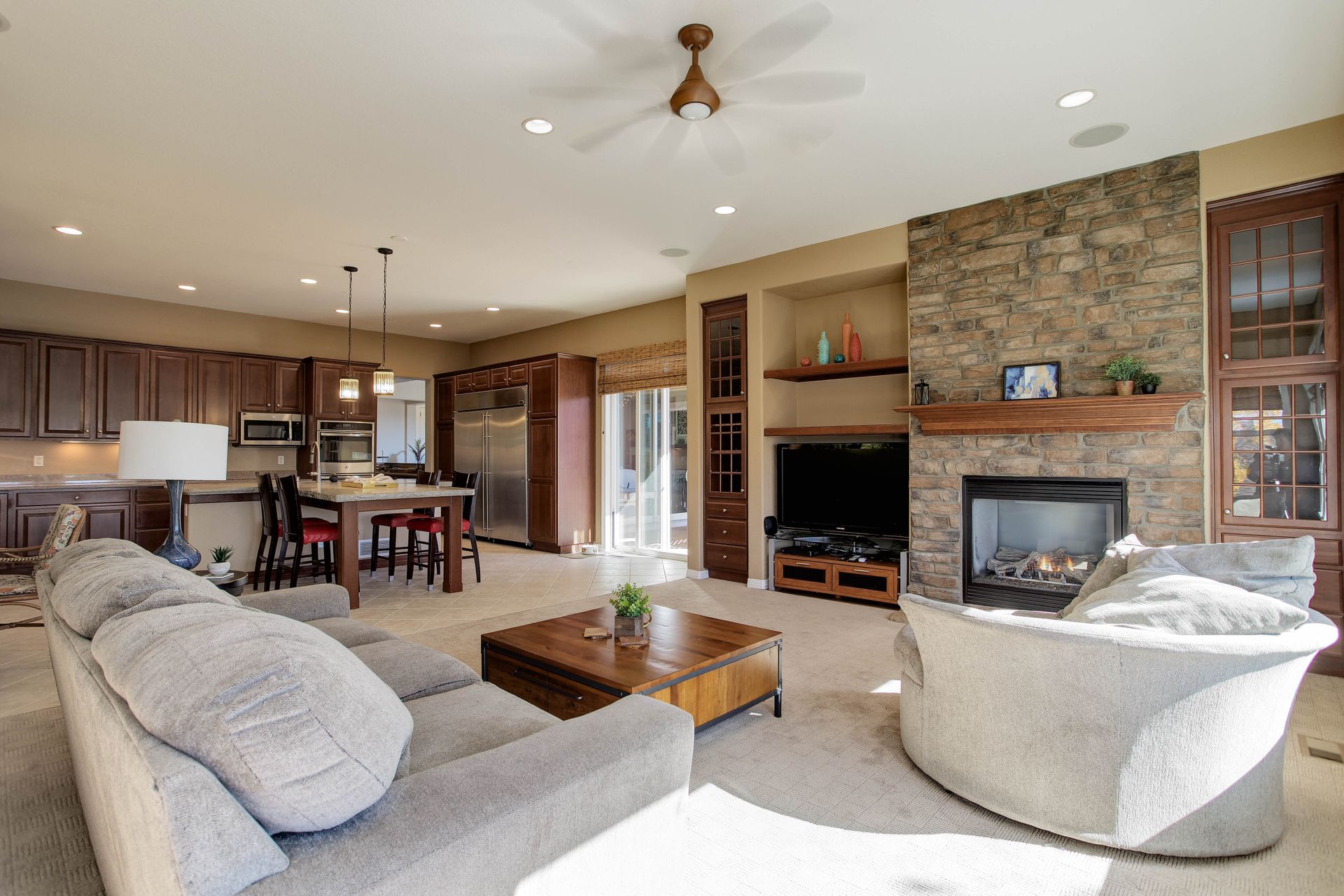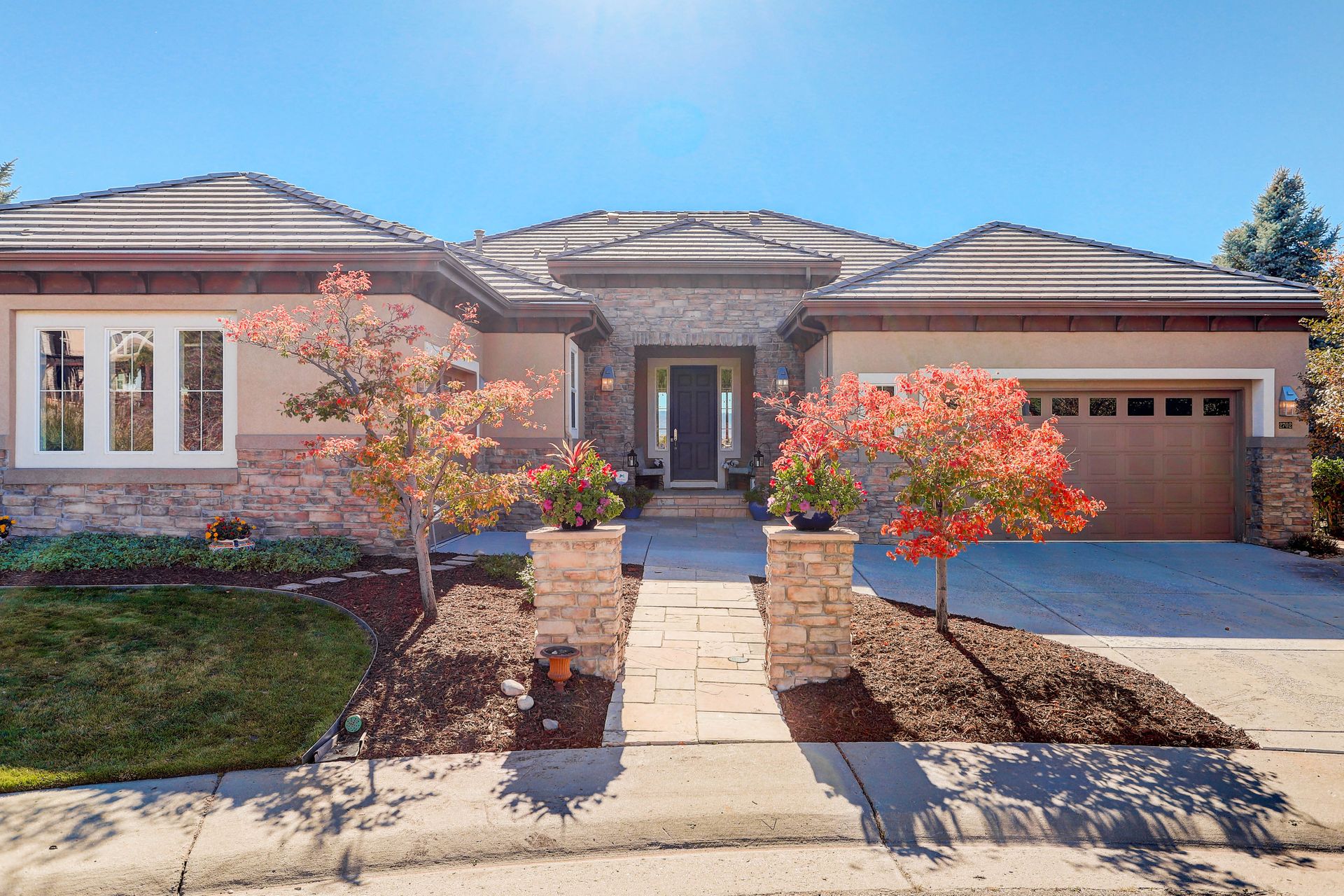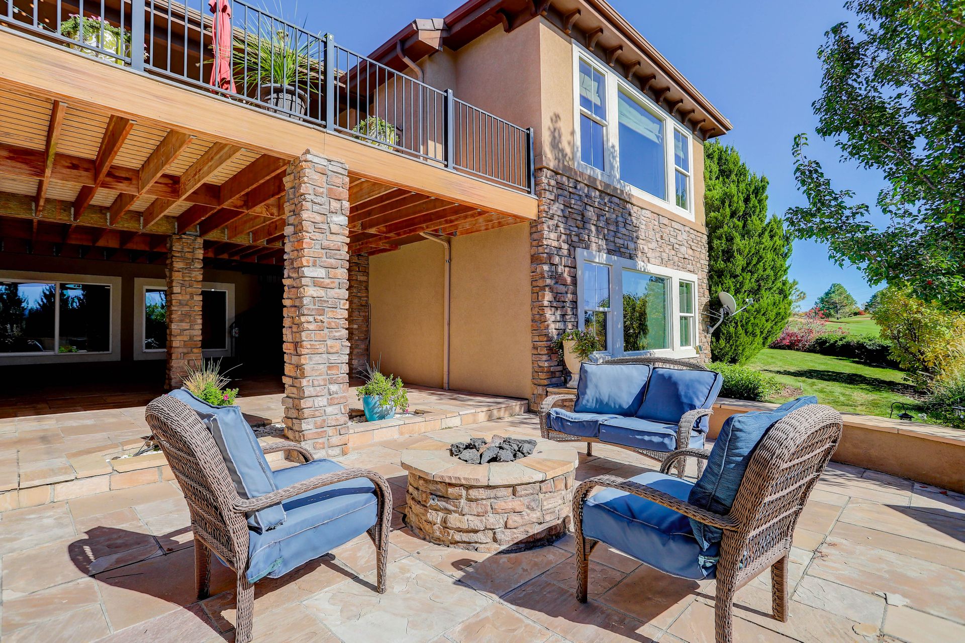 Discover a world of refined living in this exquisite property that overlooks the Highlands Ranch Golf Course. A prime location for those who relish a sense of living in a private retreat while maintaining easy access to highways and shopping. Originally built by Shea Homes in 2002, this Ranch style with full walk out basement Canterwood Model is a rare find! It is one of the only single-story models that backs to the golf course providing both golf course and jaw-dropping mountain views from almost every room. This five-bedroom, five-bathroom executive home boasts 6,714 square feet of a remarkable blend of both indoor and outdoor living spaces. Open up the stackable sliding glass doors to create an open air interior/exterior space. As you come inside, you are greeted with high ceilings and a floor plan that exudes an inviting sense of space. An abundance of windows creates an atmosphere awash with natural light, making every room a bright and welcoming retreat. The heart of this home is undoubtedly the gourmet kitchen. With its custom concrete center island, stainless steel appliances, double ovens, walk-in pantry, and butler's pantry, it's a Chef’s dream. Choose from two private patios, a private area fire pit or enjoy the sunset around a large open air second fire pit area. Game night is a blast in the large basement theatre with a full kitchen to complete the prefect layout for entertaining! Play a game of pool or take a break shooting baskets on the private basketball court. Take a quiet break in the private library or cozy up by one of the four fireplaces. Choose today’s workout in the cardio room or the weightlifting room finish up in the wet-dry sauna. The split two-car and 1 car garage style completes the picture. This is a 10! Make it yours today.