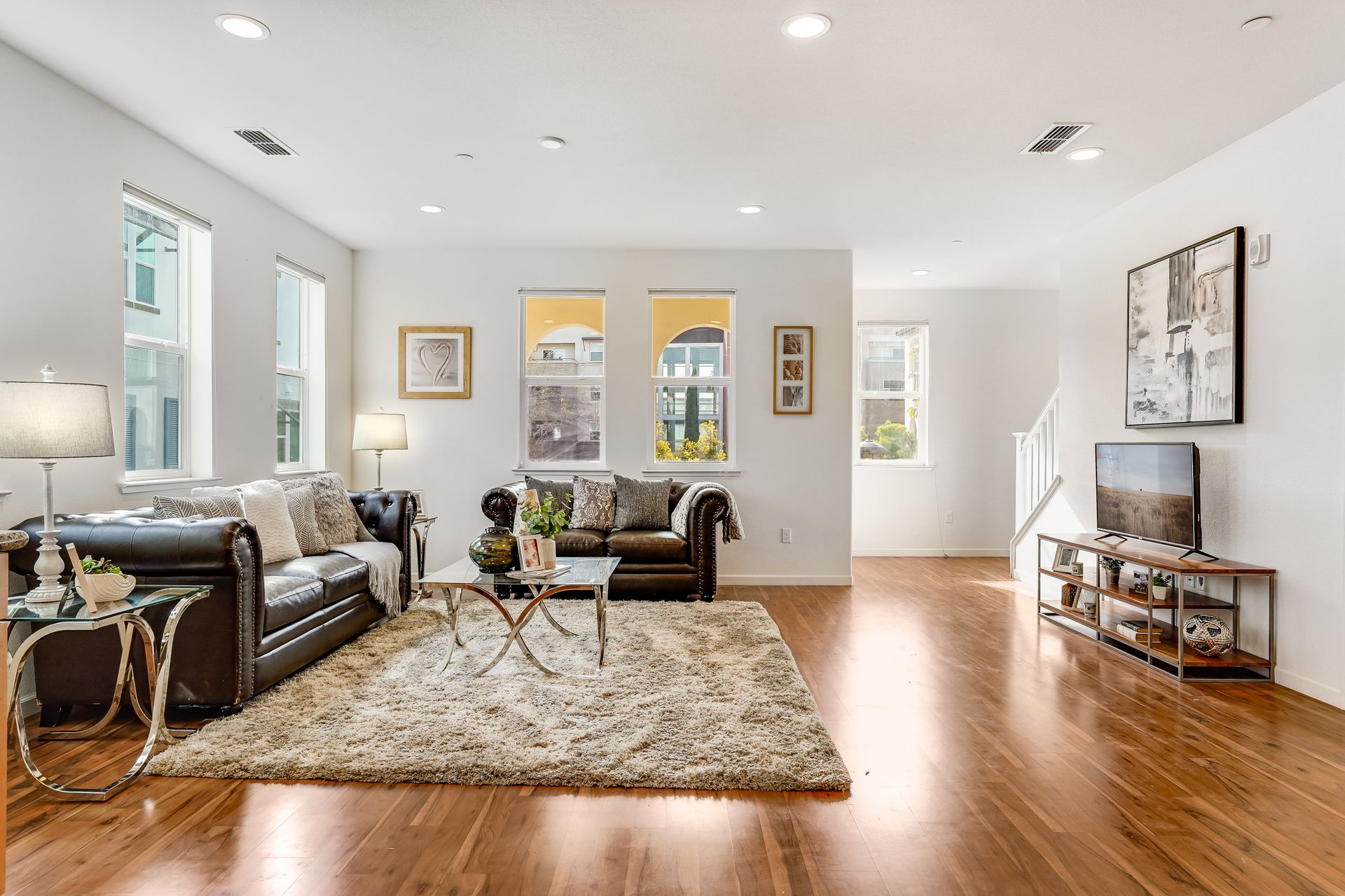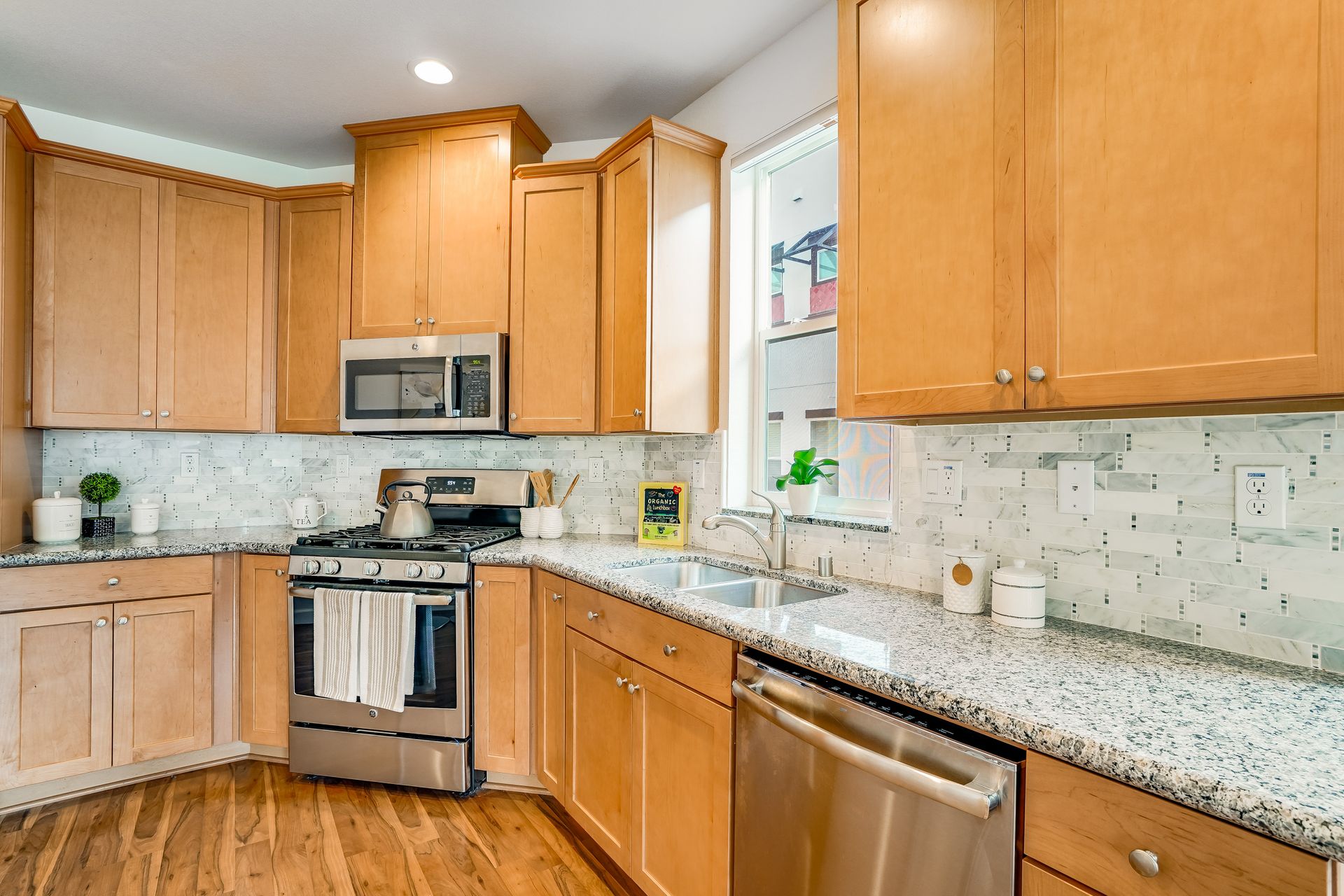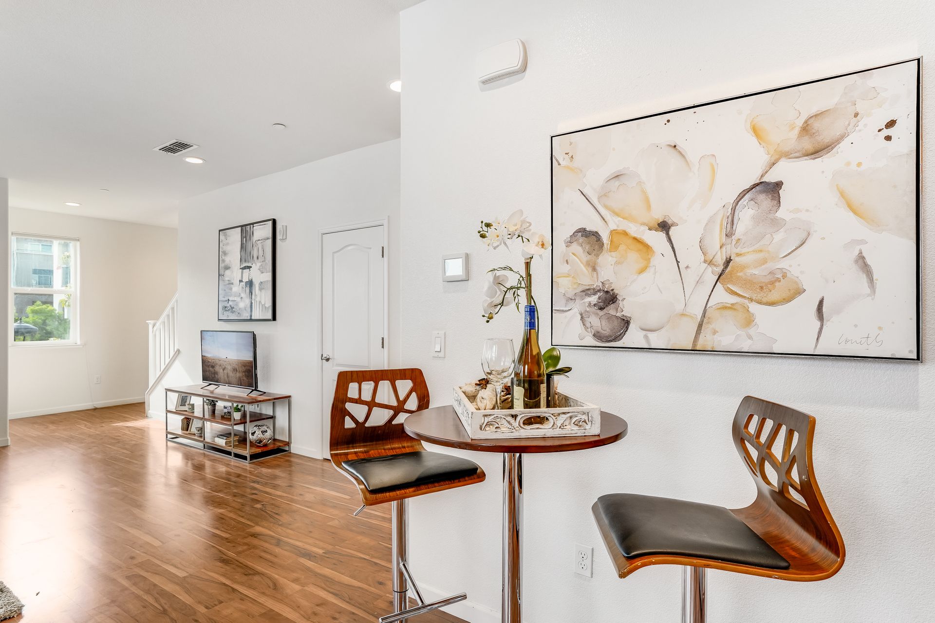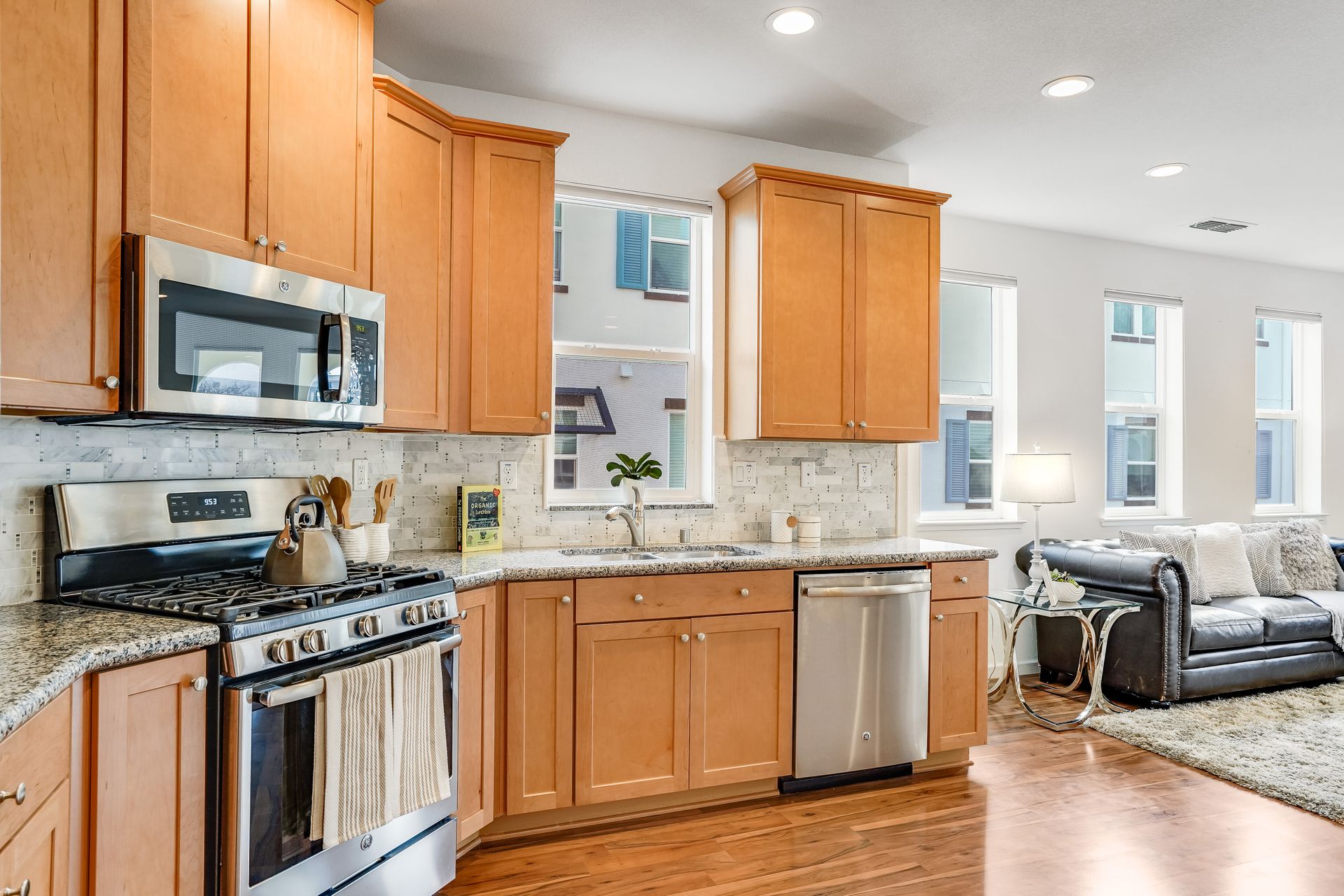 Welcome to this pristine townhome-style condo in the Indigo at Montecito Vista community built by Taylor Morrison. This unit features a spacious, approximately 1303 square feet of livable space with two bedrooms and two and one-half baths. Open main level with living area, dining area, and kitchen with granite counters, upgraded stainless appliances, five-burner gas range, soft close drawers, and custom pull-outs, plus balcony, half bath, large storage closet, upgraded recessed lighting, and laundry area. Upstairs find two bedrooms including a large primary retreat with a private balcony, each with an en-suite bathroom. Attached two-car tandem garage. Beautiful park located just a few feet from the property, with a BBQ area, basketball court, and a playground. Conveniently located to transportation and shopping.