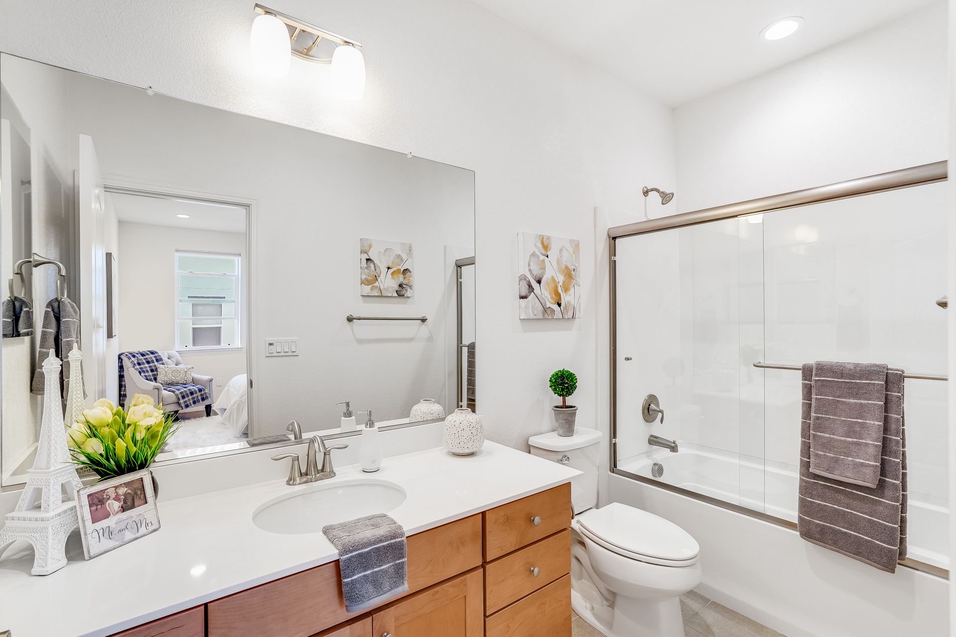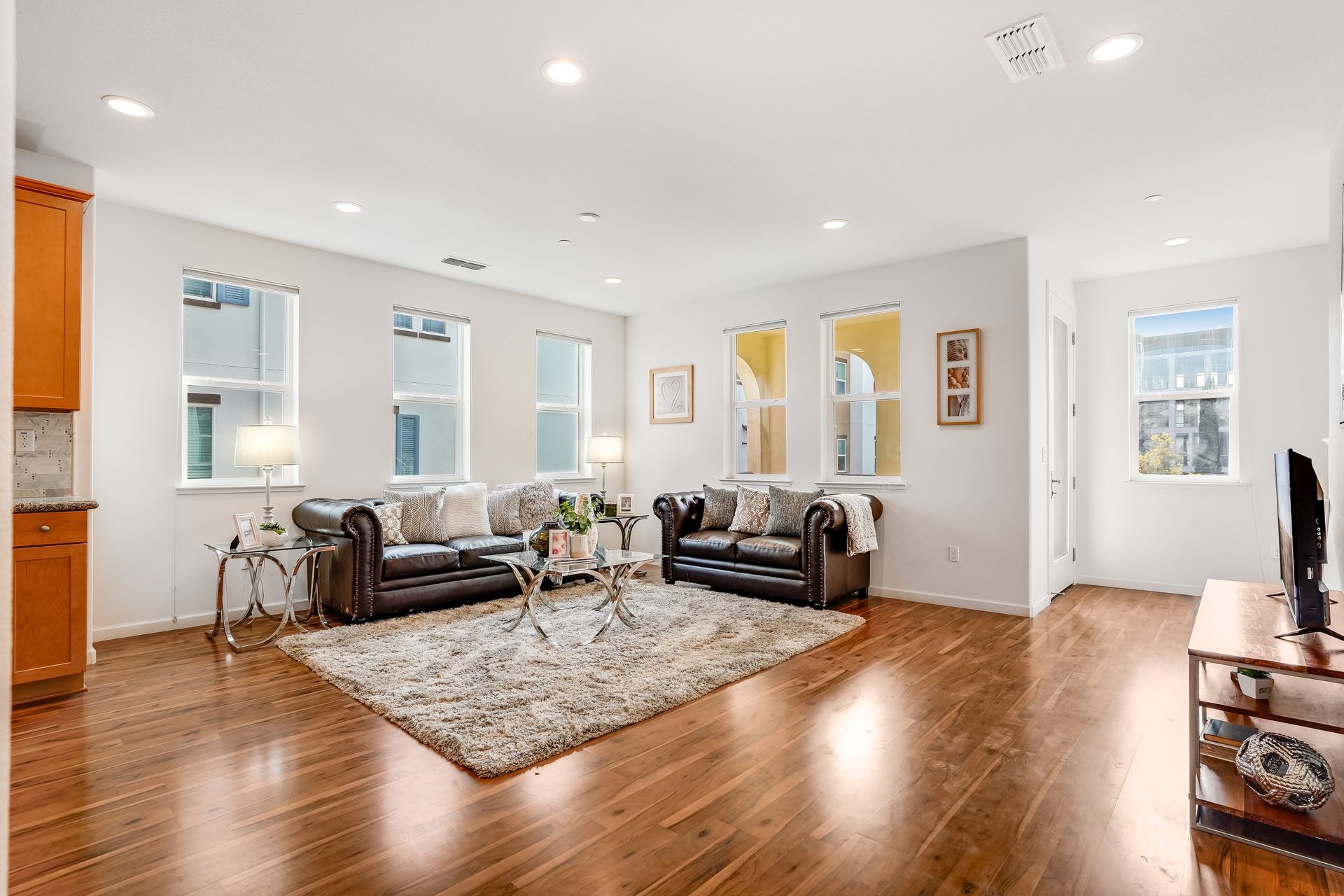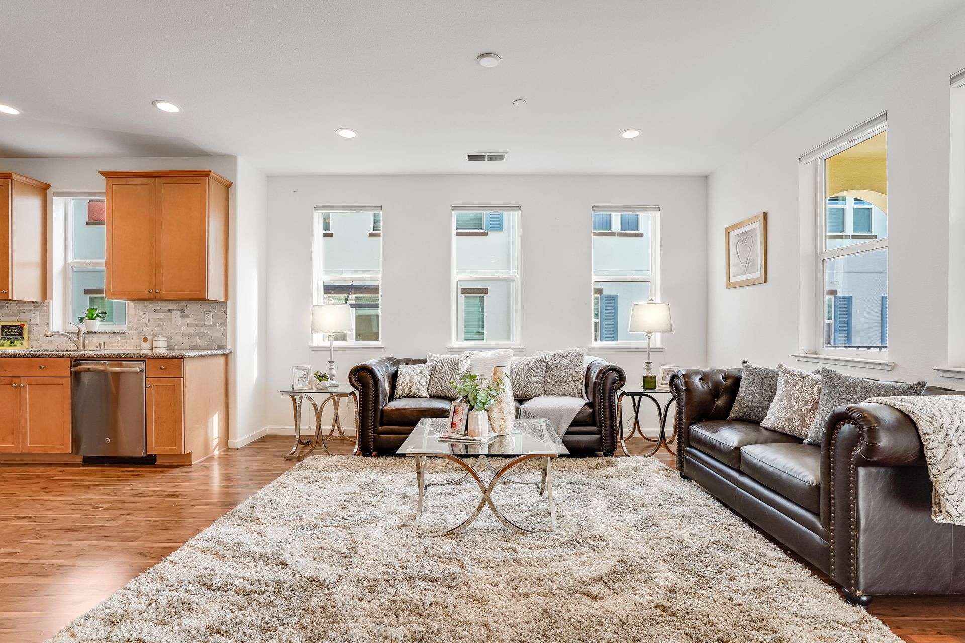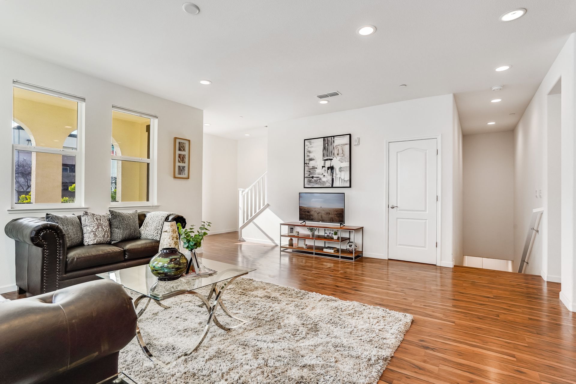 Welcome to this pristine townhome-style condo in the Indigo at Montecito Vista community built by Taylor Morrison. This unit features a spacious, approximately 1303 square feet of livable space with two bedrooms and two and one-half baths. Open main level with living area, dining area, and kitchen with granite counters, upgraded stainless appliances, five-burner gas range, soft close drawers, and custom pull-outs, plus balcony, half bath, large storage closet, upgraded recessed lighting, and laundry area. Upstairs find two bedrooms including a large primary retreat with a private balcony, each with an en-suite bathroom. Attached two-car tandem garage. Beautiful park located just a few feet from the property, with a BBQ area, basketball court, and a playground. Conveniently located to transportation and shopping.