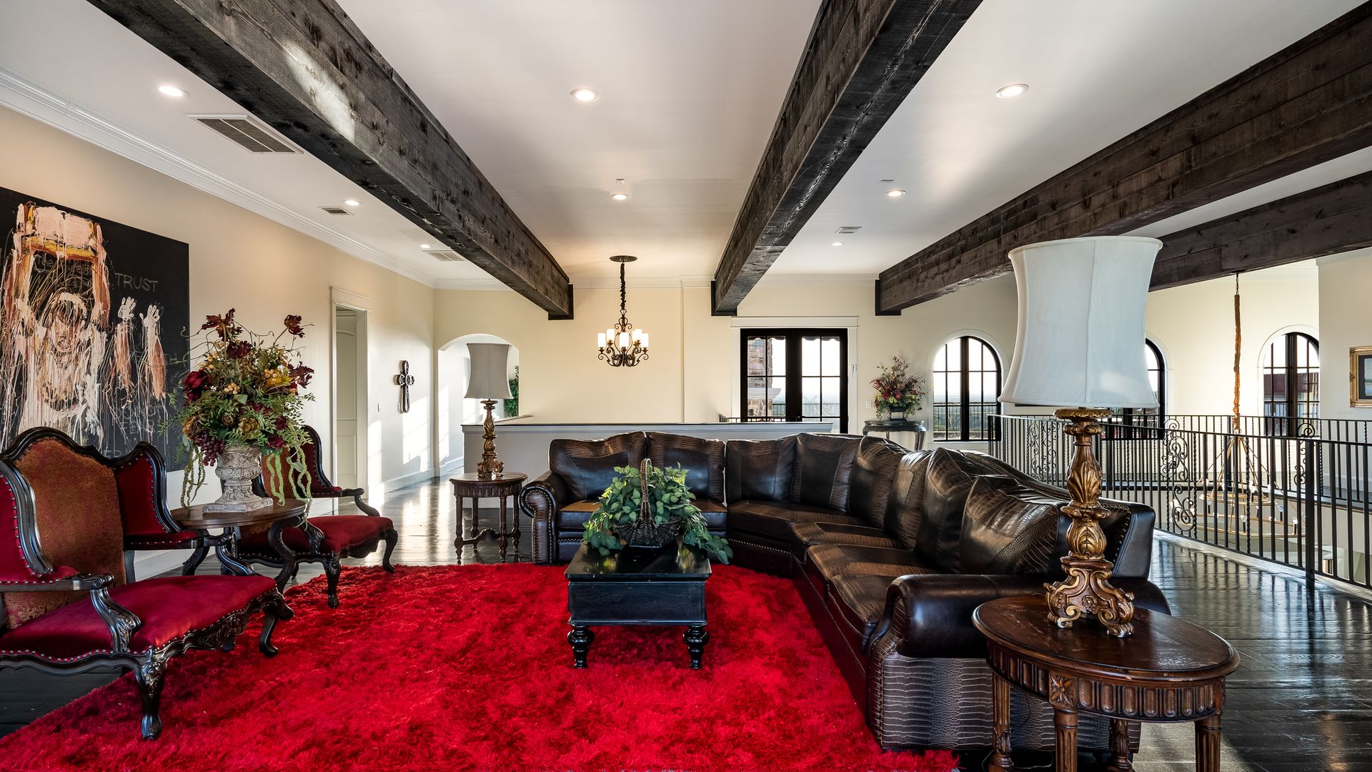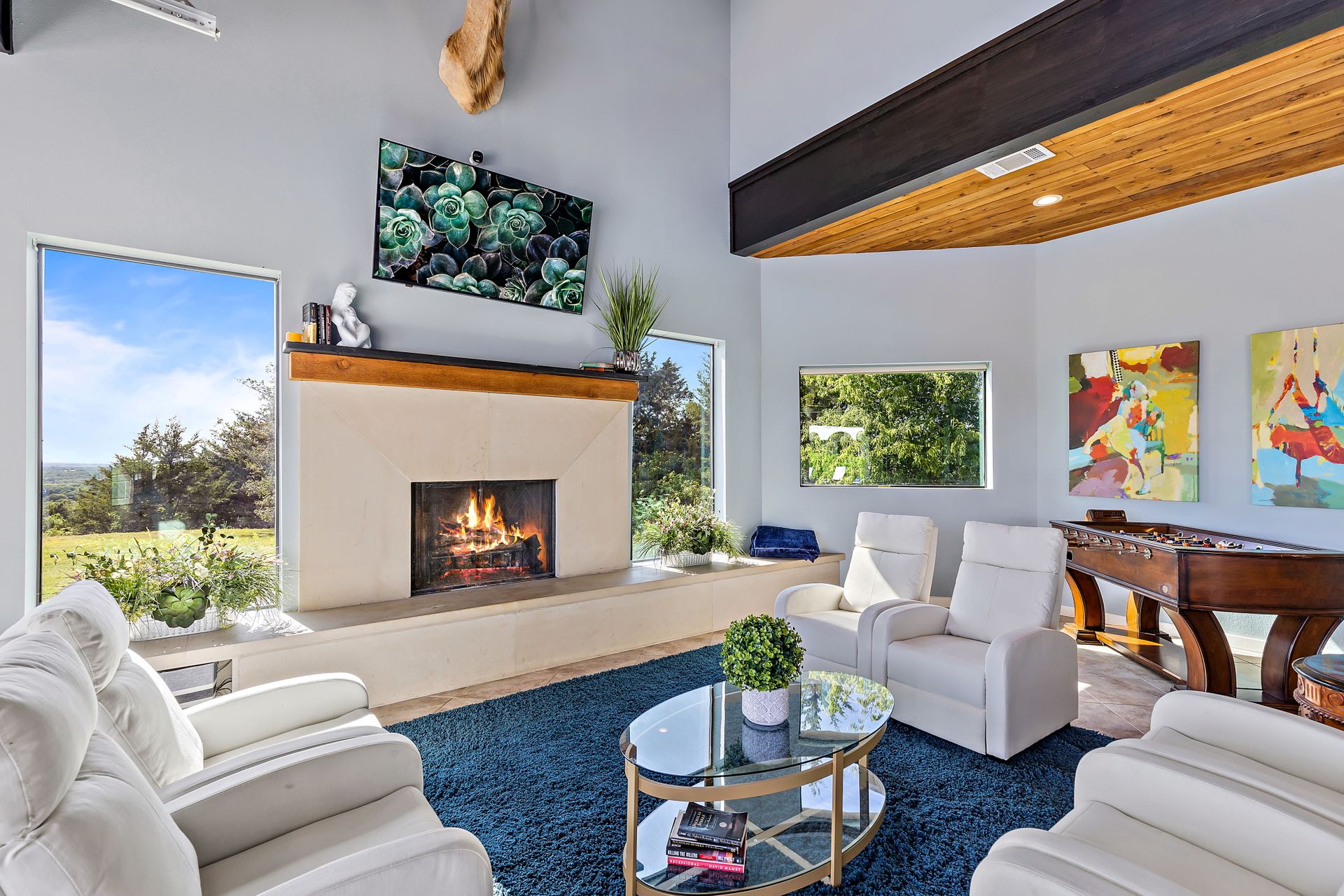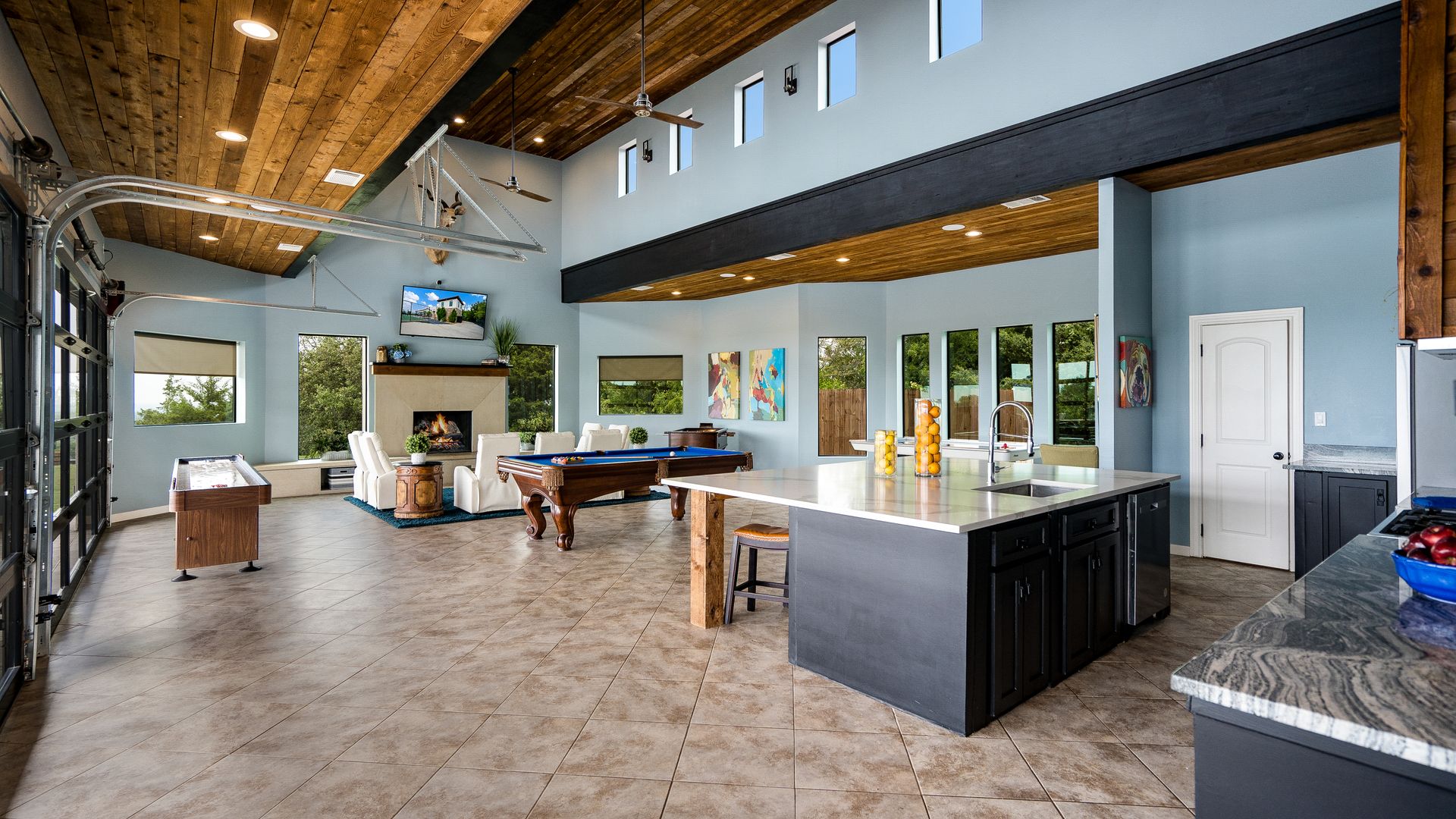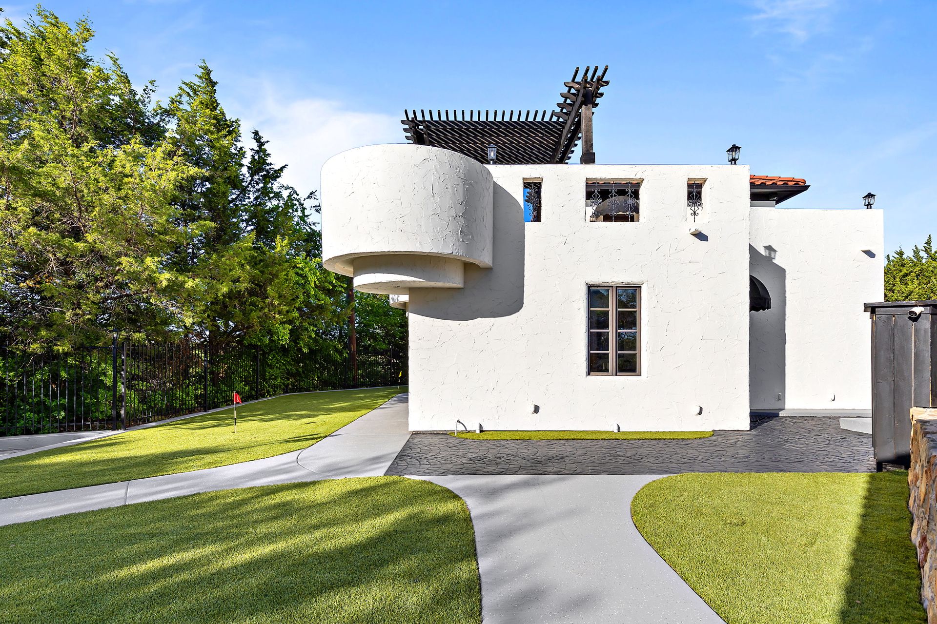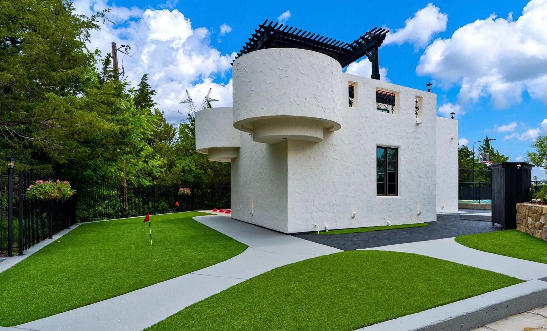 Welcome to La Casa de Fe! This magnificent estate located in the charming city of Decatur, TX. This sprawling property spans an impressive 25 acres, offering an abundance of luxurious amenities and the most breathtaking views you will find in North Texas. This beautiful property presents an incredible opportunity to embrace a serene lifestyle while being conveniently close to urban amenities. The enchanting main house known as "The Spanish Castle" exudes a touch of Old-World charm and elegance, transporting you to a realm of architectural beauty and timeless sophistication. With it's distinctive Spanish-inspired design, this residence offers a truly unique living experience with 5 bedrooms, 8 baths, multiple living and dining areas, cinema room, executive office, resort sized balcony, and resort sized veranda with outdoor commercial grade kitchen and wine bar. The Spanish-style mansion has tastefully appointed interior features such as reclaimed redwood floors, elegant light fixtures, imported tile, and a spectacular view from almost every room. The 3,000-square foot entertainer's dream pool house is flooded with natural light through the custom glass garage doors that open to a resort-style pool with a 32-foot infinity edge and spa area made for relaxing. The pool house also has 2 bedrooms, a loft, and 1 and a half baths, and a 4-car garage with more custom glass doors. The fully equipped Parisian guest villa known as "A Walk in Paris" is ideal for hosting guests in a cozy and intimate space. It will leave your guests feeling like they are on vacation. You will also find a secluded area featuring a putting green, fire pit, and pergola covered custom hot tub. Fitness enthusiasts will appreciate the on-site fitness center, equipped with complete home gym, kitchen, laundry, and half bath. Stay active and maintain a healthy lifestyle day or night on the sports court featuring pickleball, tennis and basketball. Other property amenities include a Helipad situated next to a large hanger or barn ideal for storing helicopters, boats, RVs, or horses. A driving range, hen house, solar farm that produces 74,250 kilowatts of power - the ultimate in energy efficiency, pastures, deck with comfy couch to have a front row seat each day for sunset, multiple outdoor entertaining areas, and a high-flying Texas flag round out this beautiful home. Don't miss the chance to experience the epitome of refined TEXAS living in this exceptional estate!