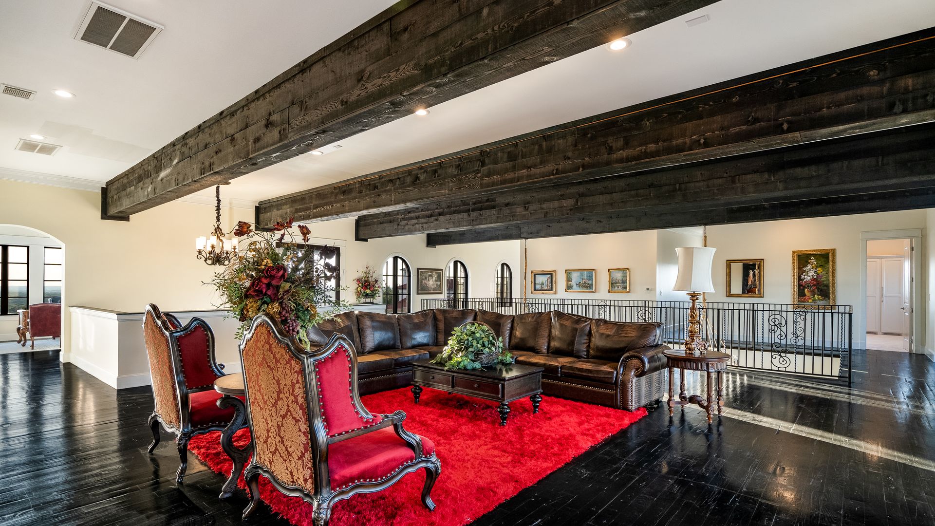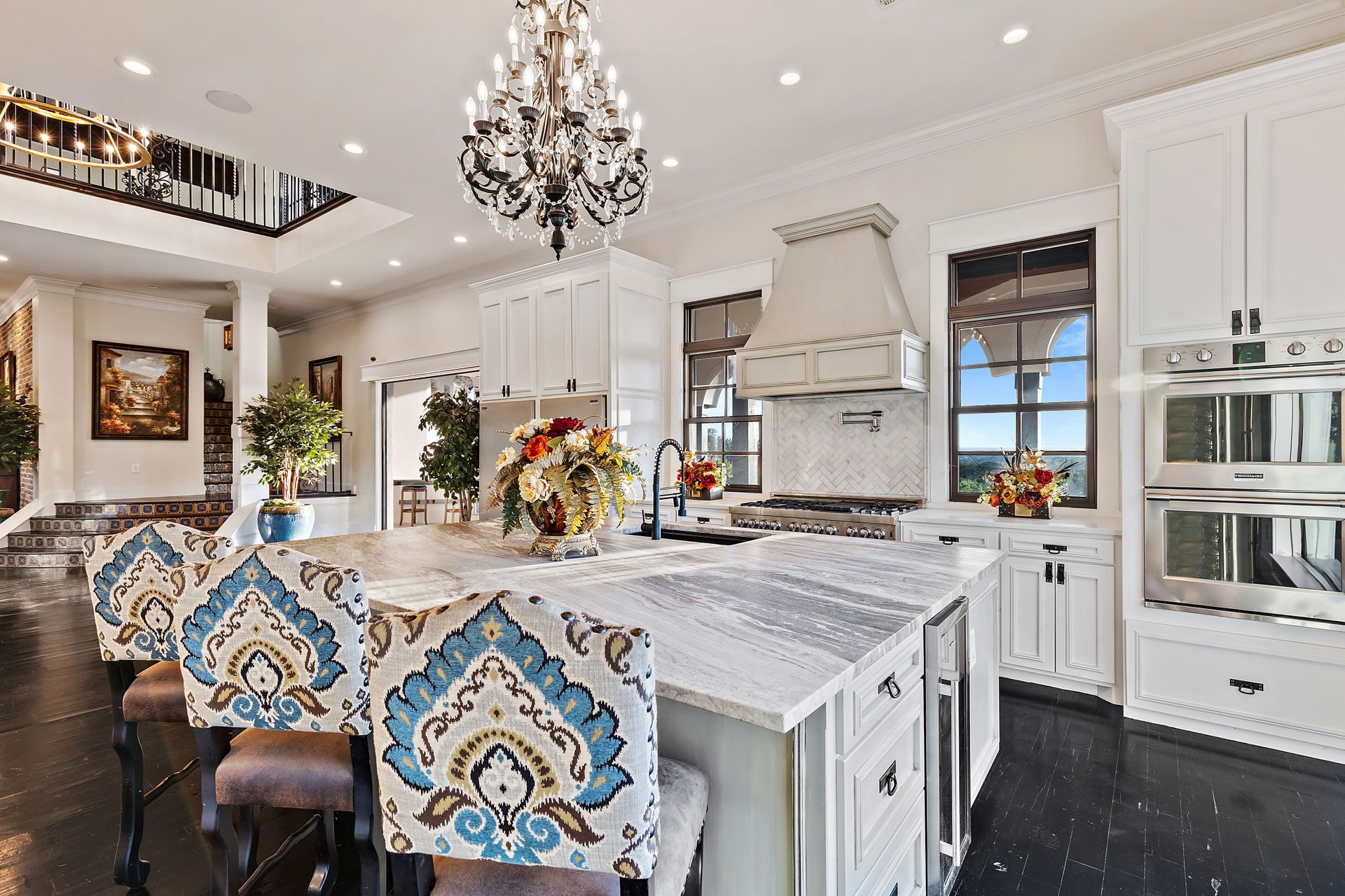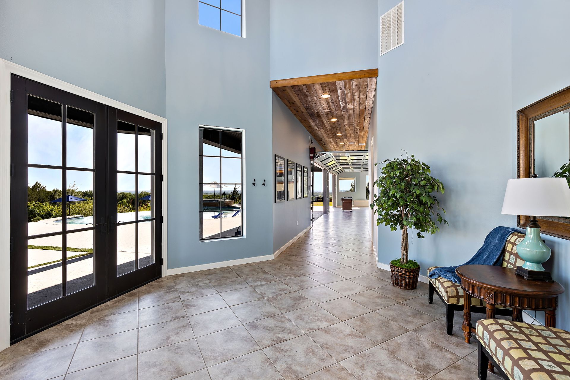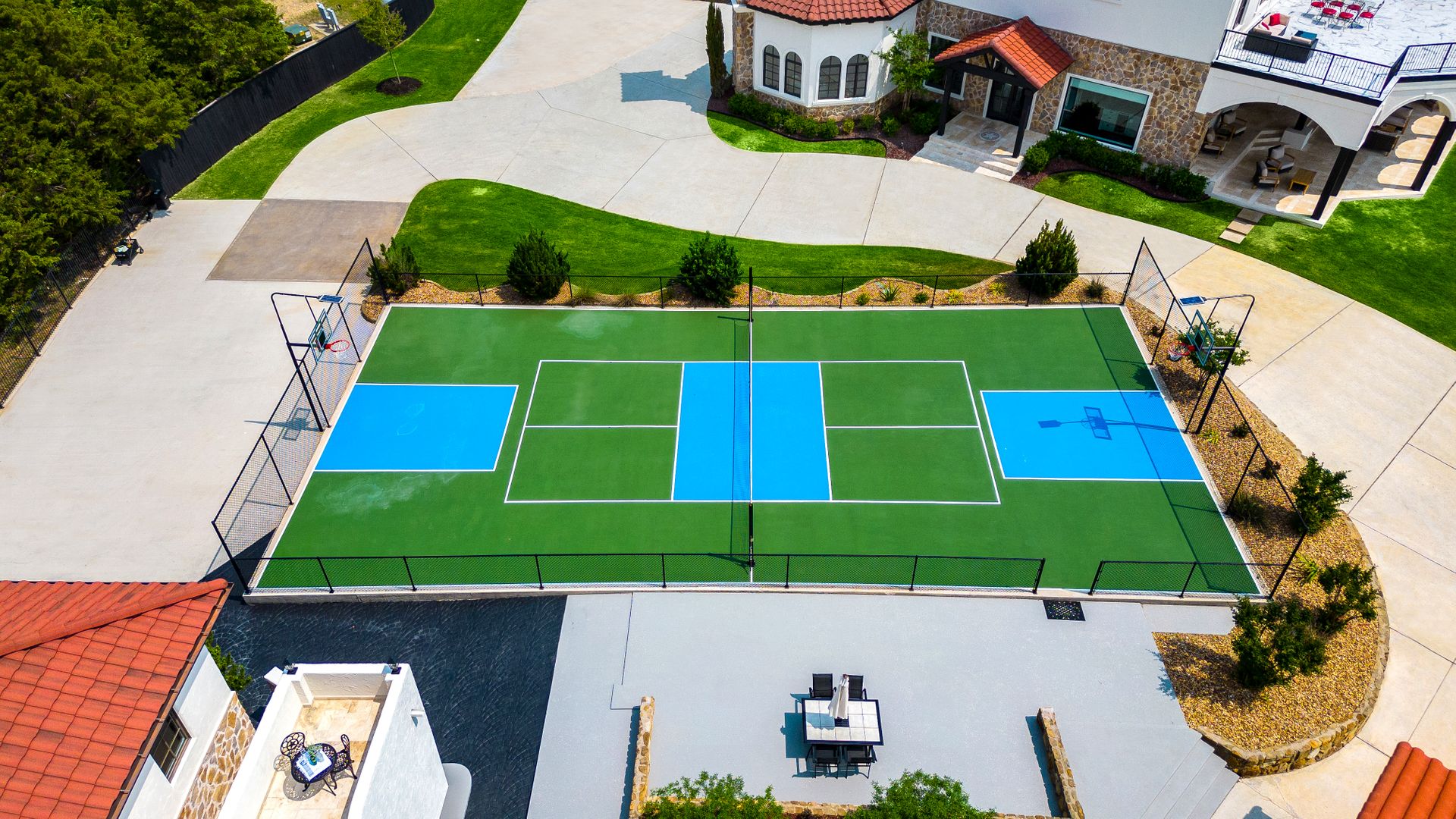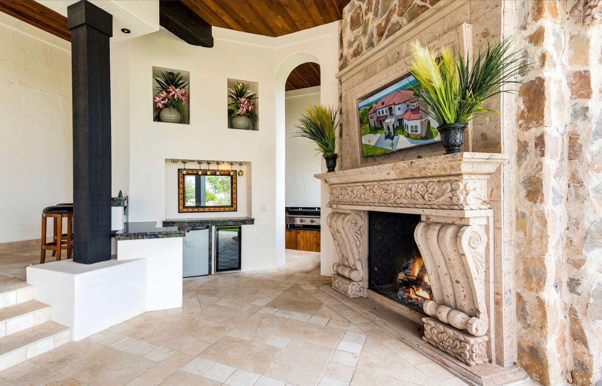 Welcome to La Casa de Fe! This magnificent estate located in the charming city of Decatur, TX. This sprawling property spans an impressive 25 acres, offering an abundance of luxurious amenities and the most breathtaking views you will find in North Texas. This beautiful property presents an incredible opportunity to embrace a serene lifestyle while being conveniently close to urban amenities. The enchanting main house known as "The Spanish Castle" exudes a touch of Old-World charm and elegance, transporting you to a realm of architectural beauty and timeless sophistication. With it's distinctive Spanish-inspired design, this residence offers a truly unique living experience with 5 bedrooms, 8 baths, multiple living and dining areas, cinema room, executive office, resort sized balcony, and resort sized veranda with outdoor commercial grade kitchen and wine bar. The Spanish-style mansion has tastefully appointed interior features such as reclaimed redwood floors, elegant light fixtures, imported tile, and a spectacular view from almost every room. The 3,000-square foot entertainer's dream pool house is flooded with natural light through the custom glass garage doors that open to a resort-style pool with a 32-foot infinity edge and spa area made for relaxing. The pool house also has 2 bedrooms, a loft, and 1 and a half baths, and a 4-car garage with more custom glass doors. The fully equipped Parisian guest villa known as "A Walk in Paris" is ideal for hosting guests in a cozy and intimate space. It will leave your guests feeling like they are on vacation. You will also find a secluded area featuring a putting green, fire pit, and pergola covered custom hot tub. Fitness enthusiasts will appreciate the on-site fitness center, equipped with complete home gym, kitchen, laundry, and half bath. Stay active and maintain a healthy lifestyle day or night on the sports court featuring pickleball, tennis and basketball. Other property amenities include a Helipad situated next to a large hanger or barn ideal for storing helicopters, boats, RVs, or horses. A driving range, hen house, solar farm that produces 74,250 kilowatts of power - the ultimate in energy efficiency, pastures, deck with comfy couch to have a front row seat each day for sunset, multiple outdoor entertaining areas, and a high-flying Texas flag round out this beautiful home. Don't miss the chance to experience the epitome of refined TEXAS living in this exceptional estate!