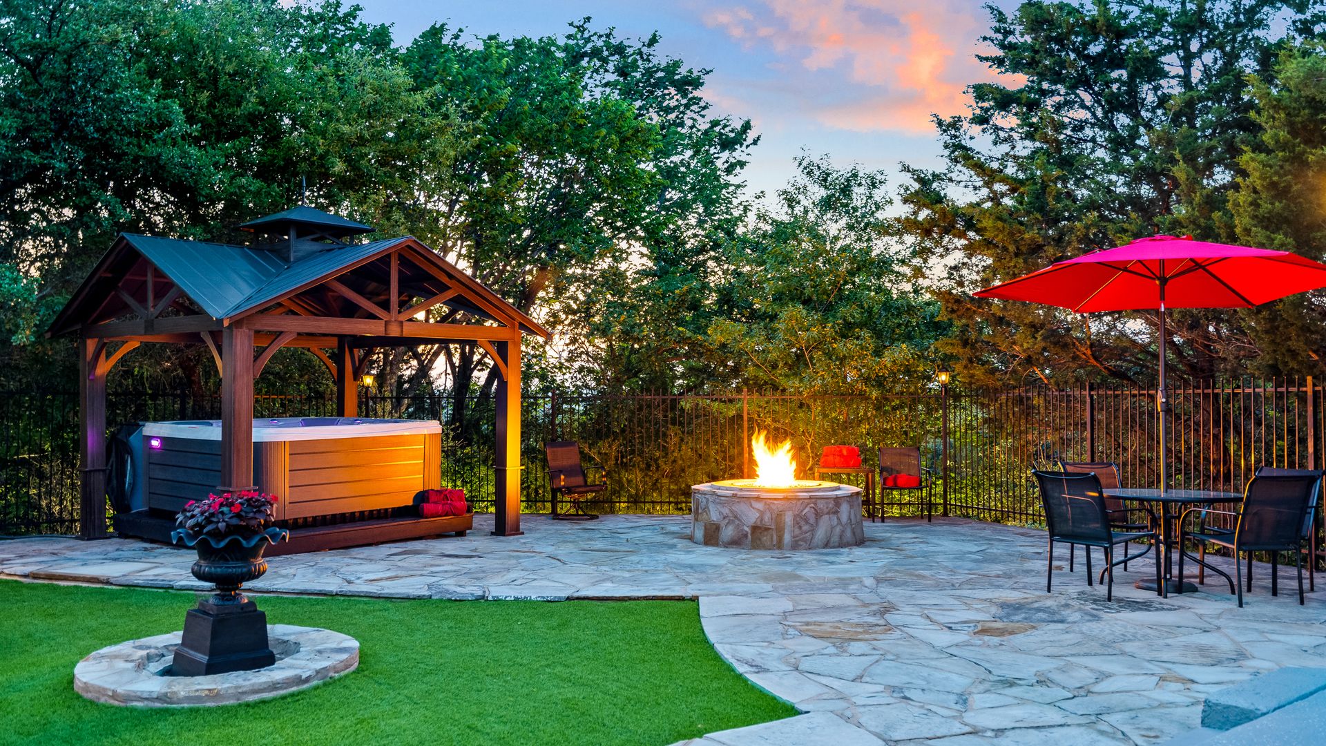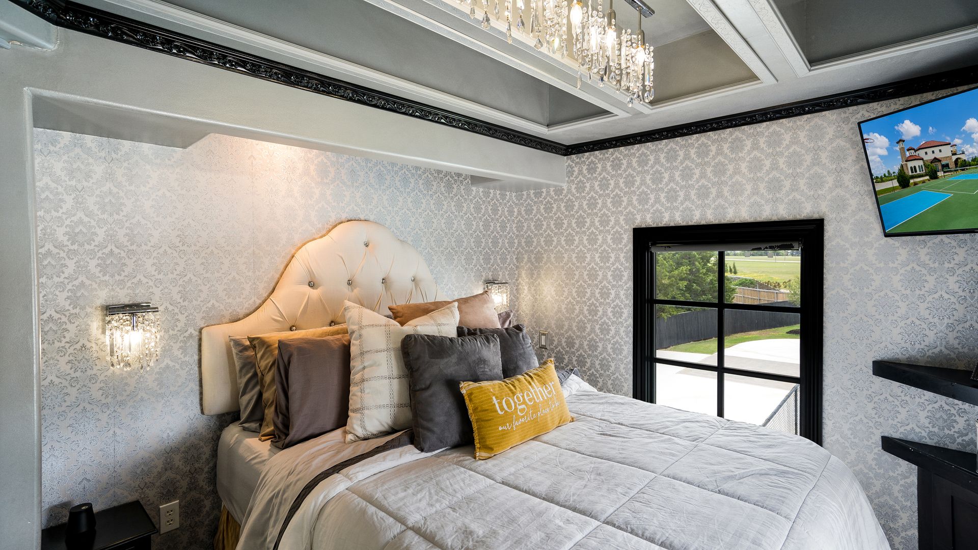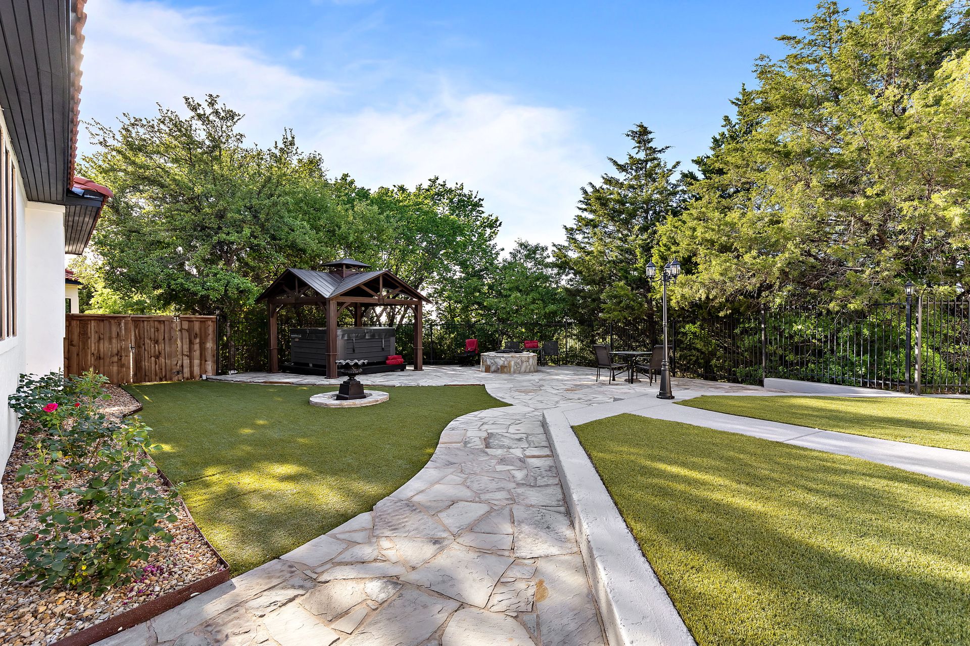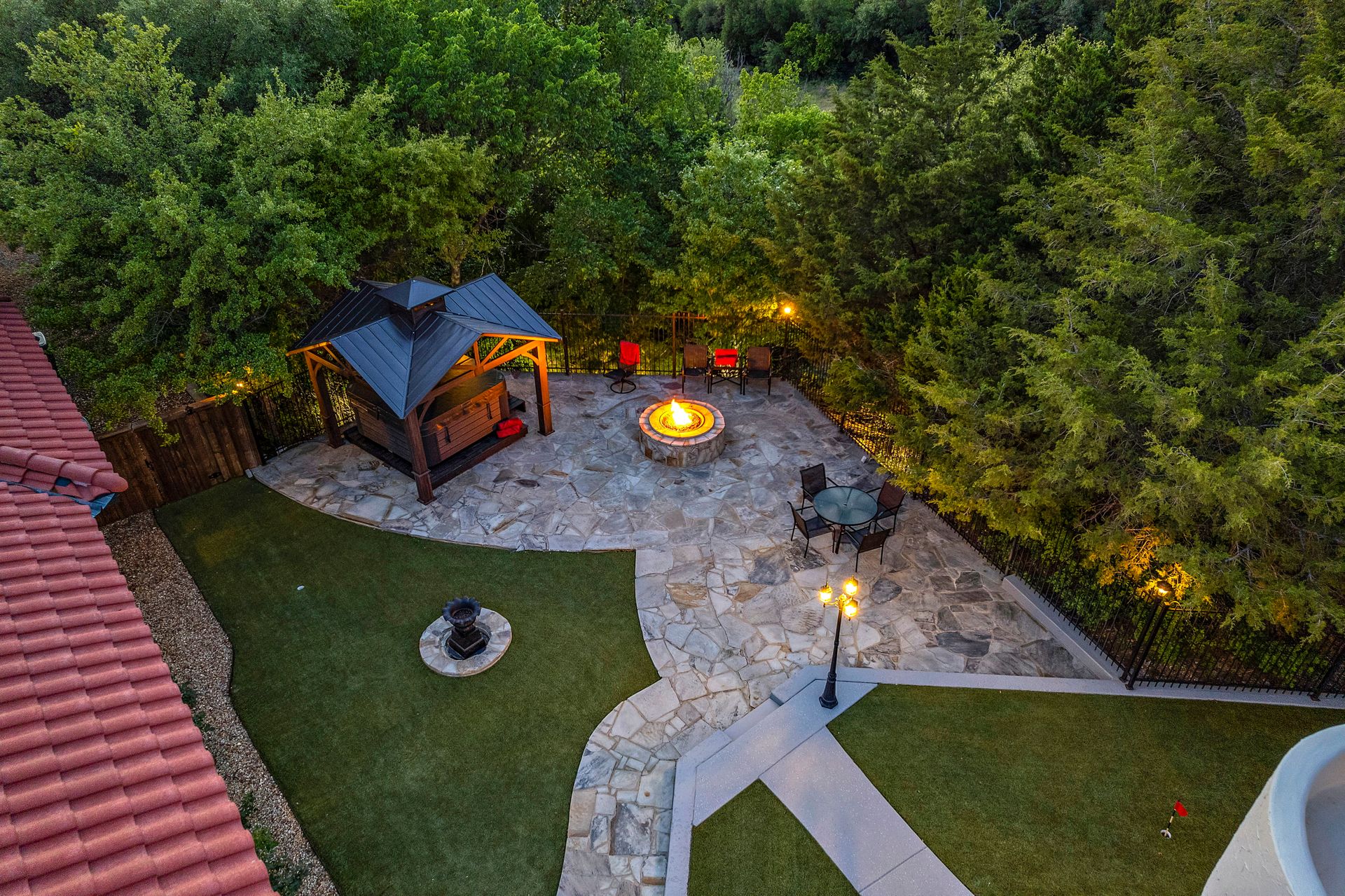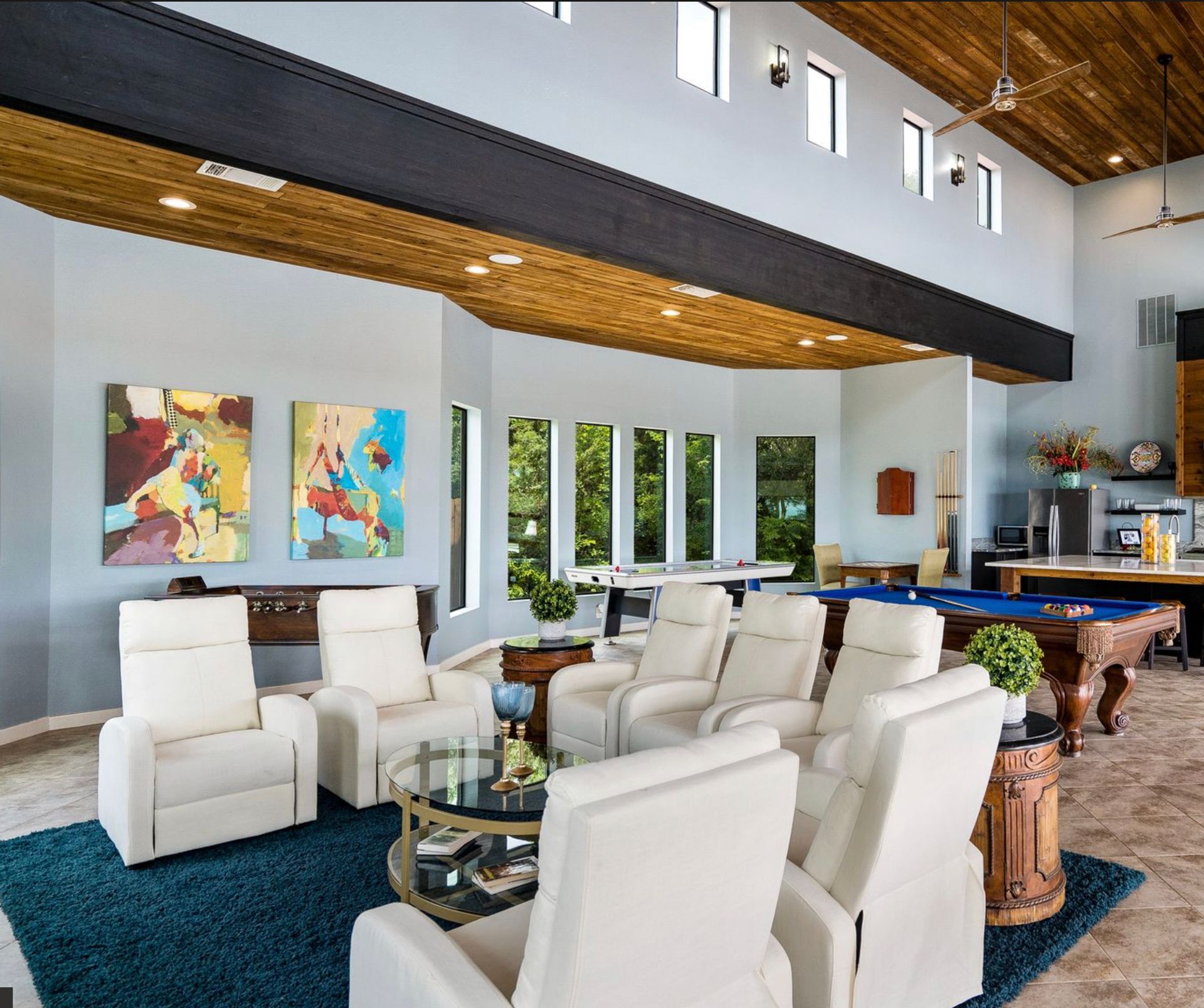 Welcome to La Casa de Fe! This magnificent estate located in the charming city of Decatur, TX. This sprawling property spans an impressive 25 acres, offering an abundance of luxurious amenities and the most breathtaking views you will find in North Texas. This beautiful property presents an incredible opportunity to embrace a serene lifestyle while being conveniently close to urban amenities. The enchanting main house known as "The Spanish Castle" exudes a touch of Old-World charm and elegance, transporting you to a realm of architectural beauty and timeless sophistication. With it's distinctive Spanish-inspired design, this residence offers a truly unique living experience with 5 bedrooms, 8 baths, multiple living and dining areas, cinema room, executive office, resort sized balcony, and resort sized veranda with outdoor commercial grade kitchen and wine bar. The Spanish-style mansion has tastefully appointed interior features such as reclaimed redwood floors, elegant light fixtures, imported tile, and a spectacular view from almost every room. The 3,000-square foot entertainer's dream pool house is flooded with natural light through the custom glass garage doors that open to a resort-style pool with a 32-foot infinity edge and spa area made for relaxing. The pool house also has 2 bedrooms, a loft, and 1 and a half baths, and a 4-car garage with more custom glass doors. The fully equipped Parisian guest villa known as "A Walk in Paris" is ideal for hosting guests in a cozy and intimate space. It will leave your guests feeling like they are on vacation. You will also find a secluded area featuring a putting green, fire pit, and pergola covered custom hot tub. Fitness enthusiasts will appreciate the on-site fitness center, equipped with complete home gym, kitchen, laundry, and half bath. Stay active and maintain a healthy lifestyle day or night on the sports court featuring pickleball, tennis and basketball. Other property amenities include a Helipad situated next to a large hanger or barn ideal for storing helicopters, boats, RVs, or horses. A driving range, hen house, solar farm that produces 74,250 kilowatts of power - the ultimate in energy efficiency, pastures, deck with comfy couch to have a front row seat each day for sunset, multiple outdoor entertaining areas, and a high-flying Texas flag round out this beautiful home. Don't miss the chance to experience the epitome of refined TEXAS living in this exceptional estate!