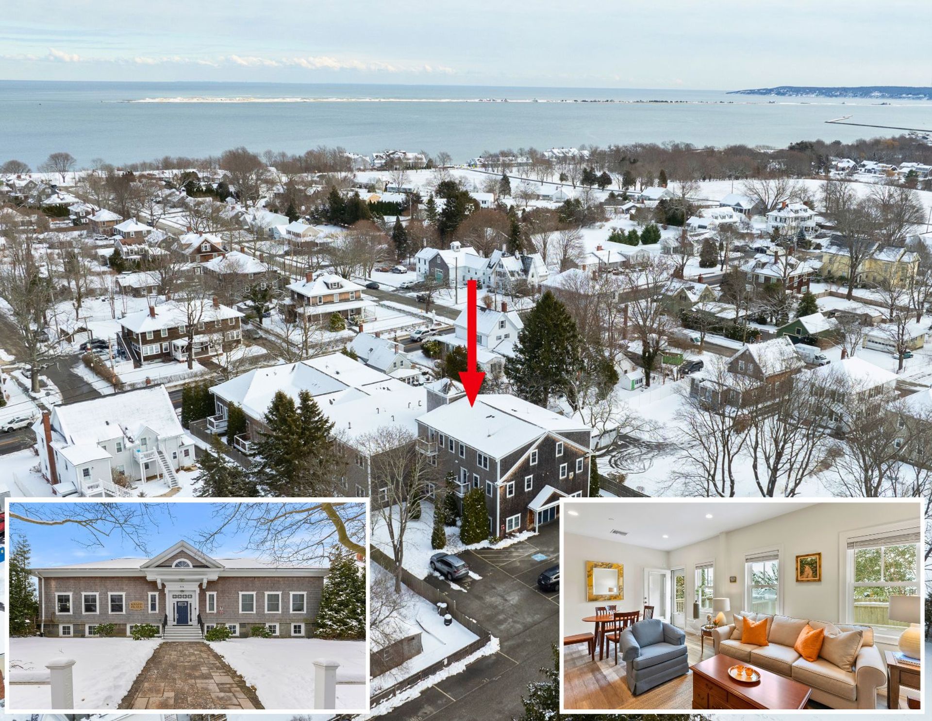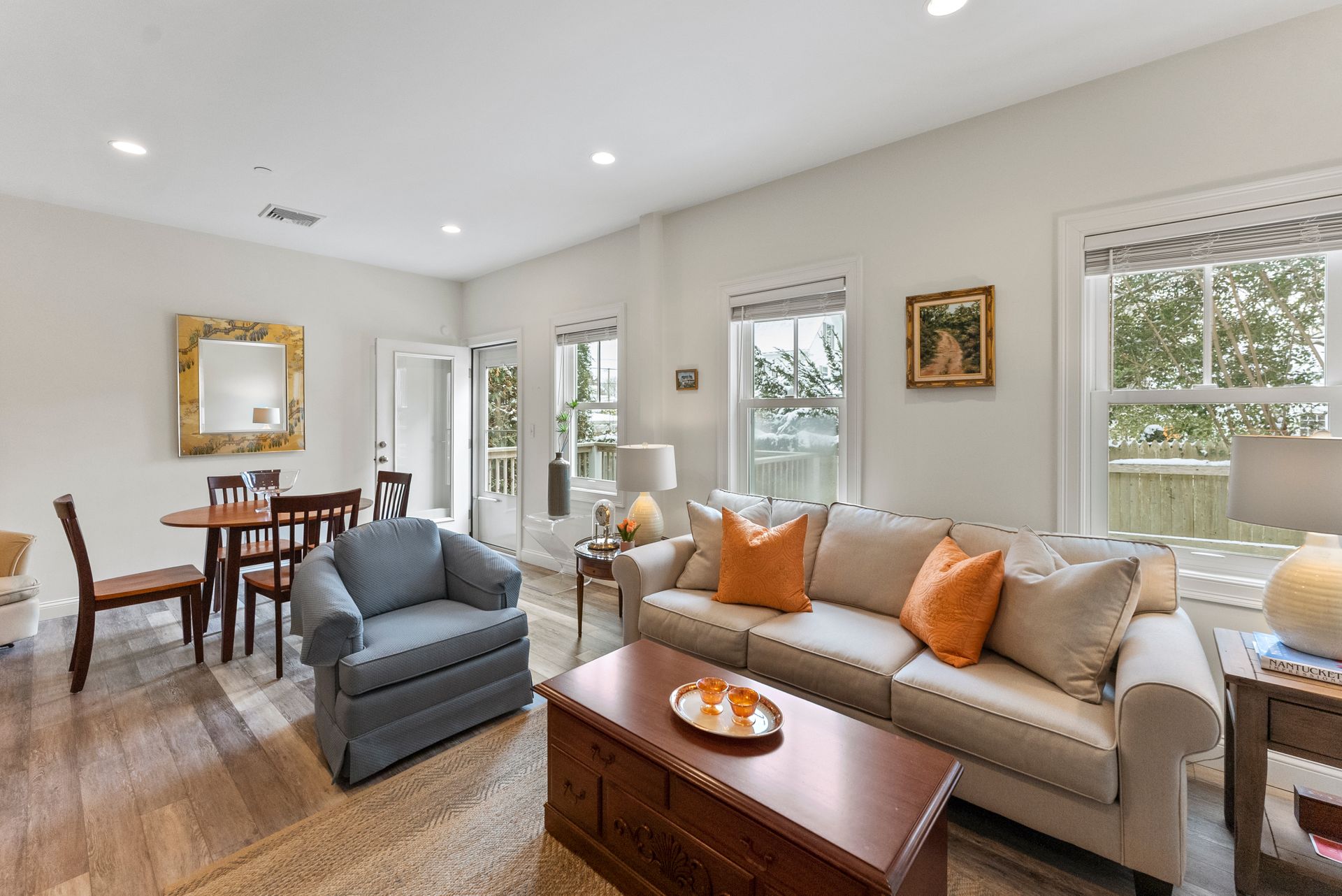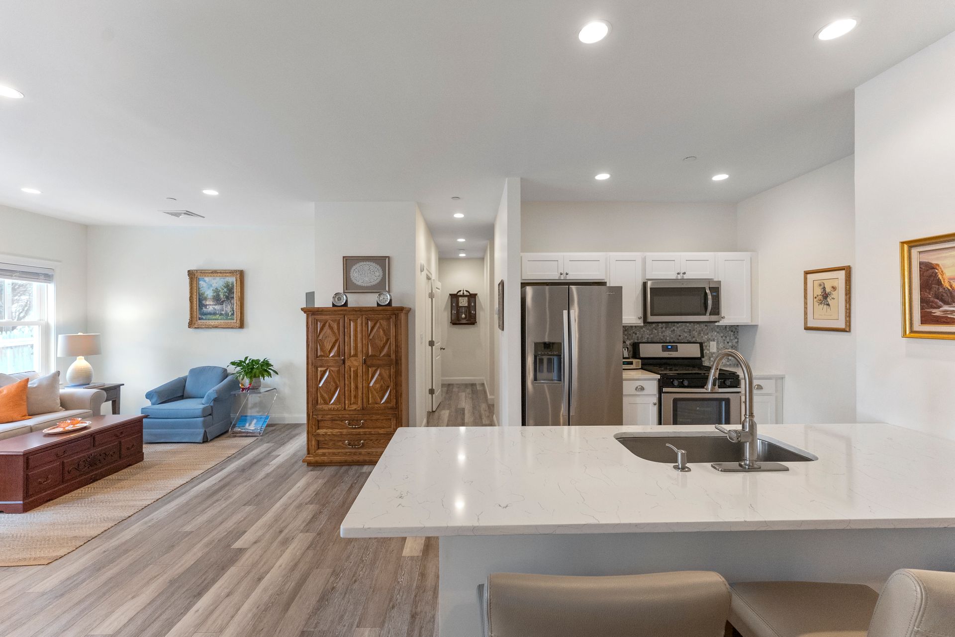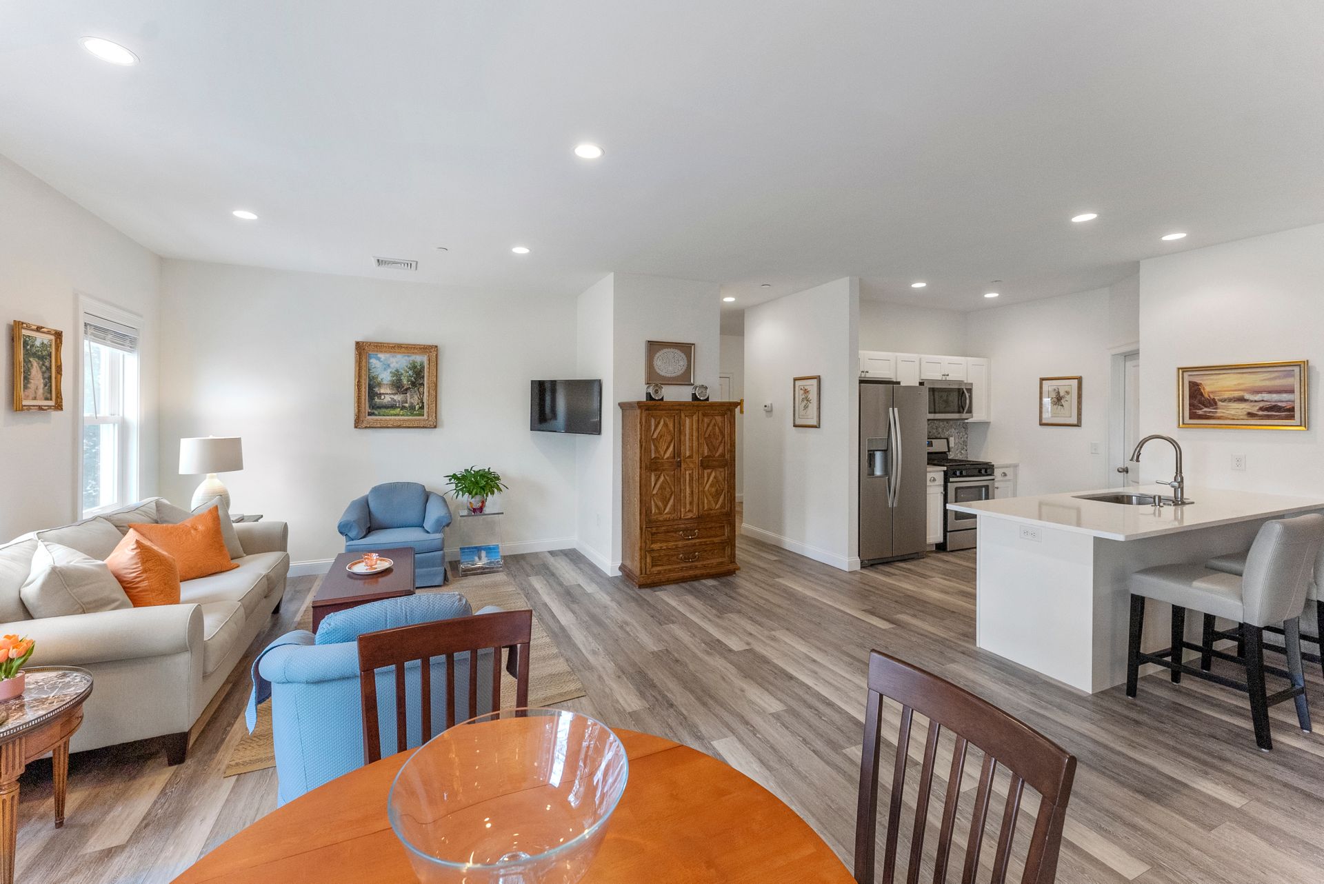 Knapp Place Condominiums, named after the old Knapp Elementary school, has been beautifully renovated into an 18-unit community, offering modern, one-level living with ample natural light throughout. This pristine condo features an open floor plan, creating a bright and inviting atmosphere. The spacious kitchen is equipped with energy-efficient stainless steel appliances, quartz countertops, custom cabinetry, and a large walk-in pantry. The living room seamlessly flows into the dining area and private deck, perfect for entertaining. The generous primary bedroom boasts an en-suite bathroom with a double vanity. Enjoy the added conveniences of a home office / flex space / guest area, half bath with tile floor, large storage closet and in-unit washer and dryer. The home is equipped with E&L smart home security monitoring, central air, natural gas, and town water/sewer for ultimate comfort and efficiency. Outside you will find a vast lawn and fire pit amenities. One designated parking space is included, with additional guest parking available. Located in the northern village of Historic Downtown Plymouth, Knapp Place offers an unbeatable location close to the ocean, walking and bike paths, Nelson park / beach, conservation areas, marina, and a variety of shops and restaurants. Experience the ease of living in a thoughtfully designed community and all the charm that downtown Plymouth has to offer!