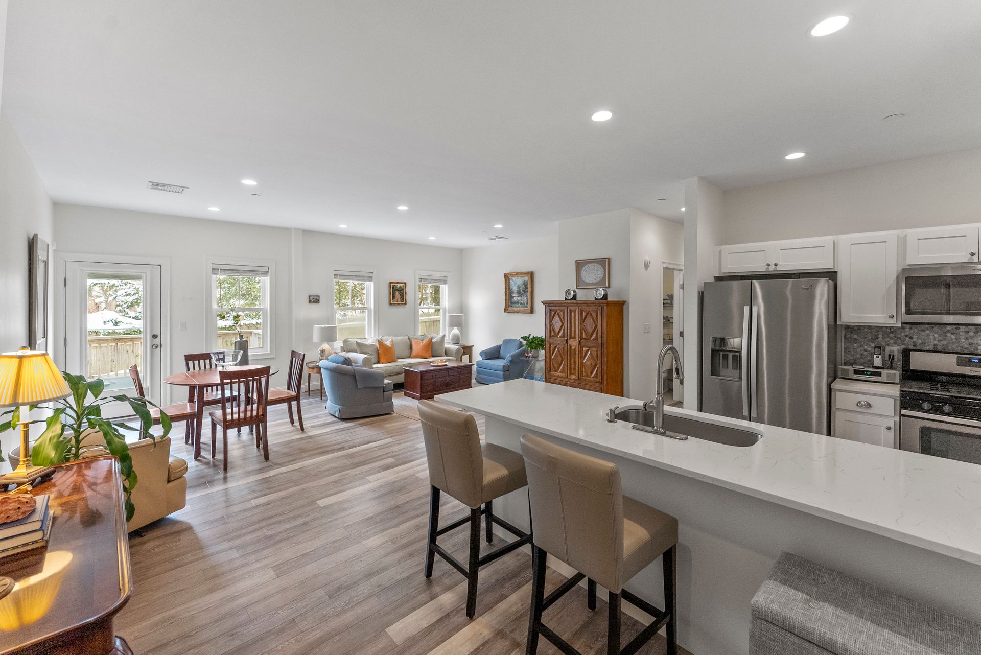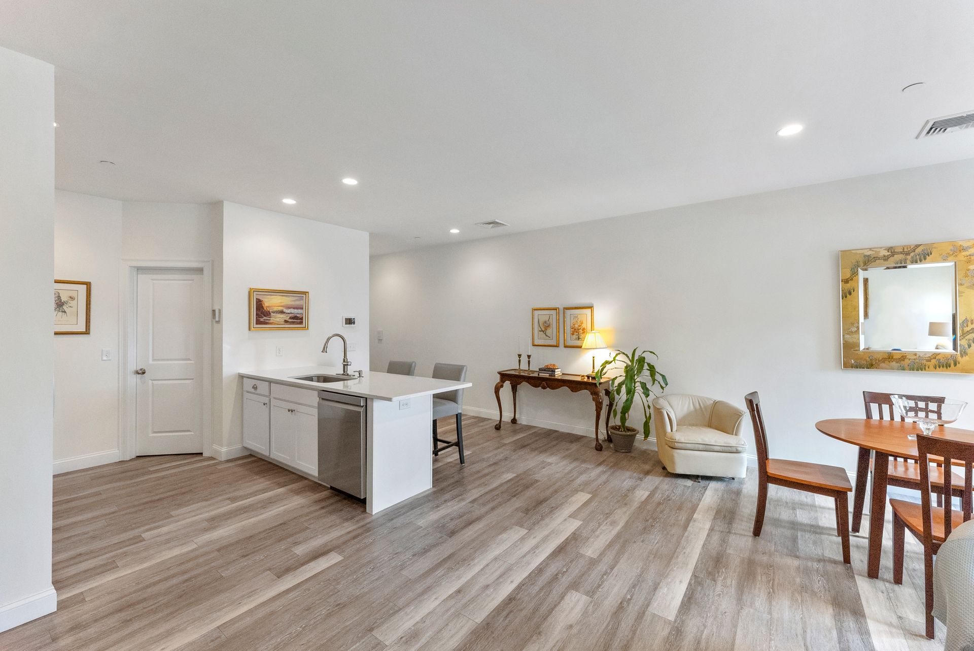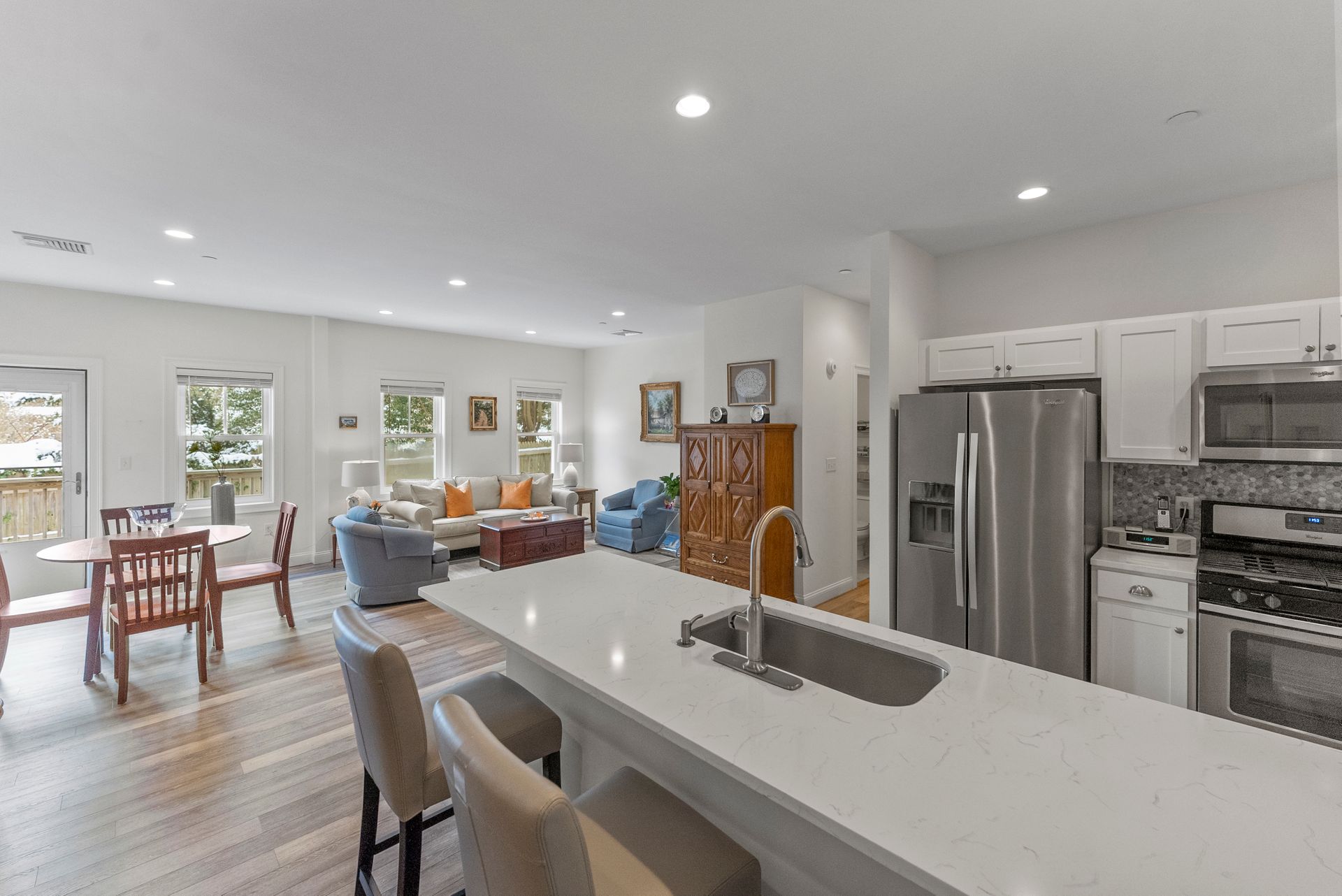 Knapp Place Condominiums, named after the old Knapp Elementary school, has been beautifully renovated into an 18-unit community, offering modern, one-level living with ample natural light throughout. This pristine condo features an open floor plan, creating a bright and inviting atmosphere. The spacious kitchen is equipped with energy-efficient stainless steel appliances, quartz countertops, custom cabinetry, and a large walk-in pantry. The living room seamlessly flows into the dining area and private deck, perfect for entertaining. The generous primary bedroom boasts an en-suite bathroom with a double vanity. Enjoy the added conveniences of a home office / flex space / guest area, half bath with tile floor, large storage closet and in-unit washer and dryer. The home is equipped with E&L smart home security monitoring, central air, natural gas, and town water/sewer for ultimate comfort and efficiency. Outside you will find a vast lawn and fire pit amenities. One designated parking space is included, with additional guest parking available. Located in the northern village of Historic Downtown Plymouth, Knapp Place offers an unbeatable location close to the ocean, walking and bike paths, Nelson park / beach, conservation areas, marina, and a variety of shops and restaurants. Experience the ease of living in a thoughtfully designed community and all the charm that downtown Plymouth has to offer!