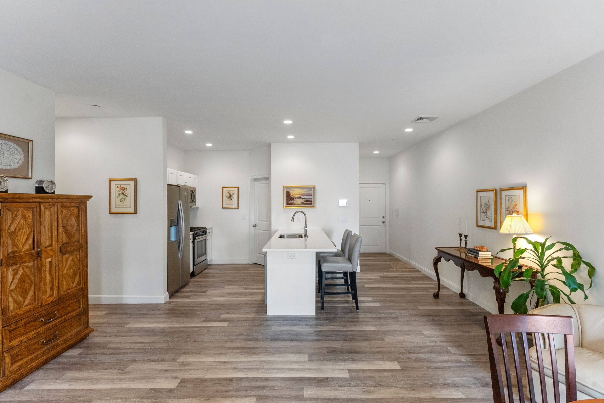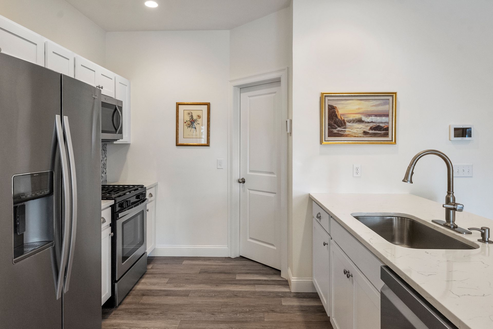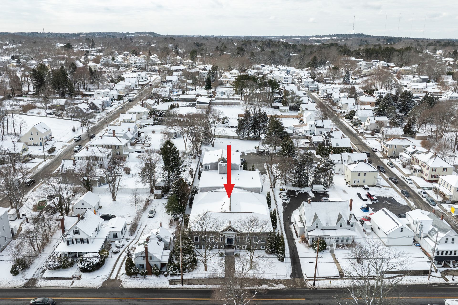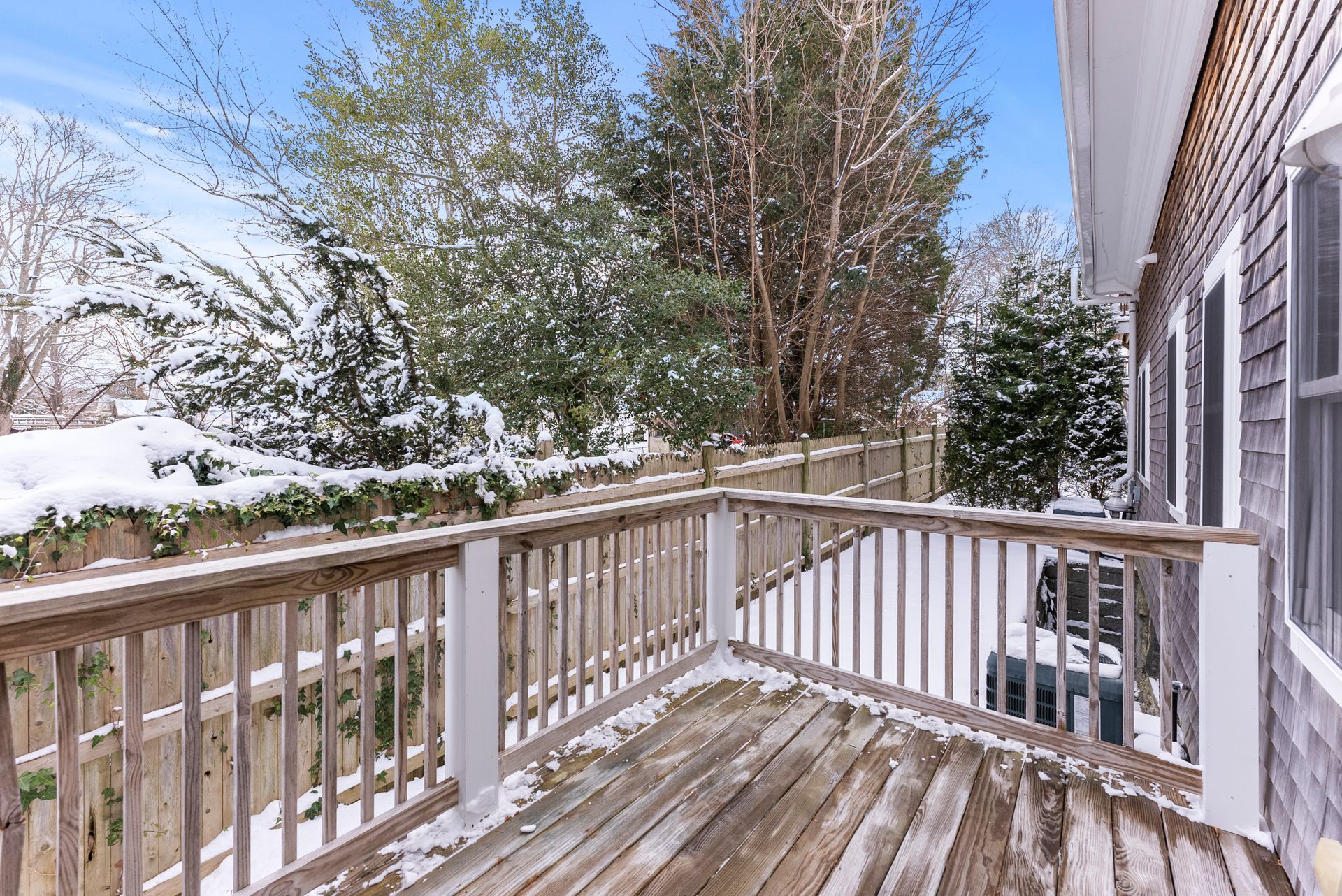 Knapp Place Condominiums, named after the old Knapp Elementary school, has been beautifully renovated into an 18-unit community, offering modern, one-level living with ample natural light throughout. This pristine condo features an open floor plan, creating a bright and inviting atmosphere. The spacious kitchen is equipped with energy-efficient stainless steel appliances, quartz countertops, custom cabinetry, and a large walk-in pantry. The living room seamlessly flows into the dining area and private deck, perfect for entertaining. The generous primary bedroom boasts an en-suite bathroom with a double vanity. Enjoy the added conveniences of a home office / flex space / guest area, half bath with tile floor, large storage closet and in-unit washer and dryer. The home is equipped with E&L smart home security monitoring, central air, natural gas, and town water/sewer for ultimate comfort and efficiency. Outside you will find a vast lawn and fire pit amenities. One designated parking space is included, with additional guest parking available. Located in the northern village of Historic Downtown Plymouth, Knapp Place offers an unbeatable location close to the ocean, walking and bike paths, Nelson park / beach, conservation areas, marina, and a variety of shops and restaurants. Experience the ease of living in a thoughtfully designed community and all the charm that downtown Plymouth has to offer!