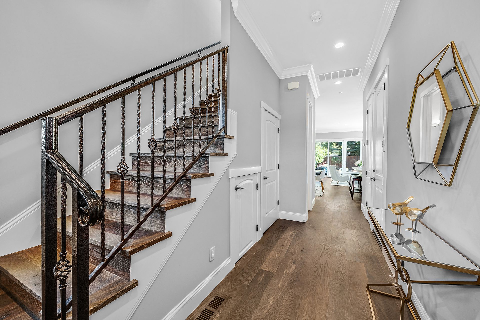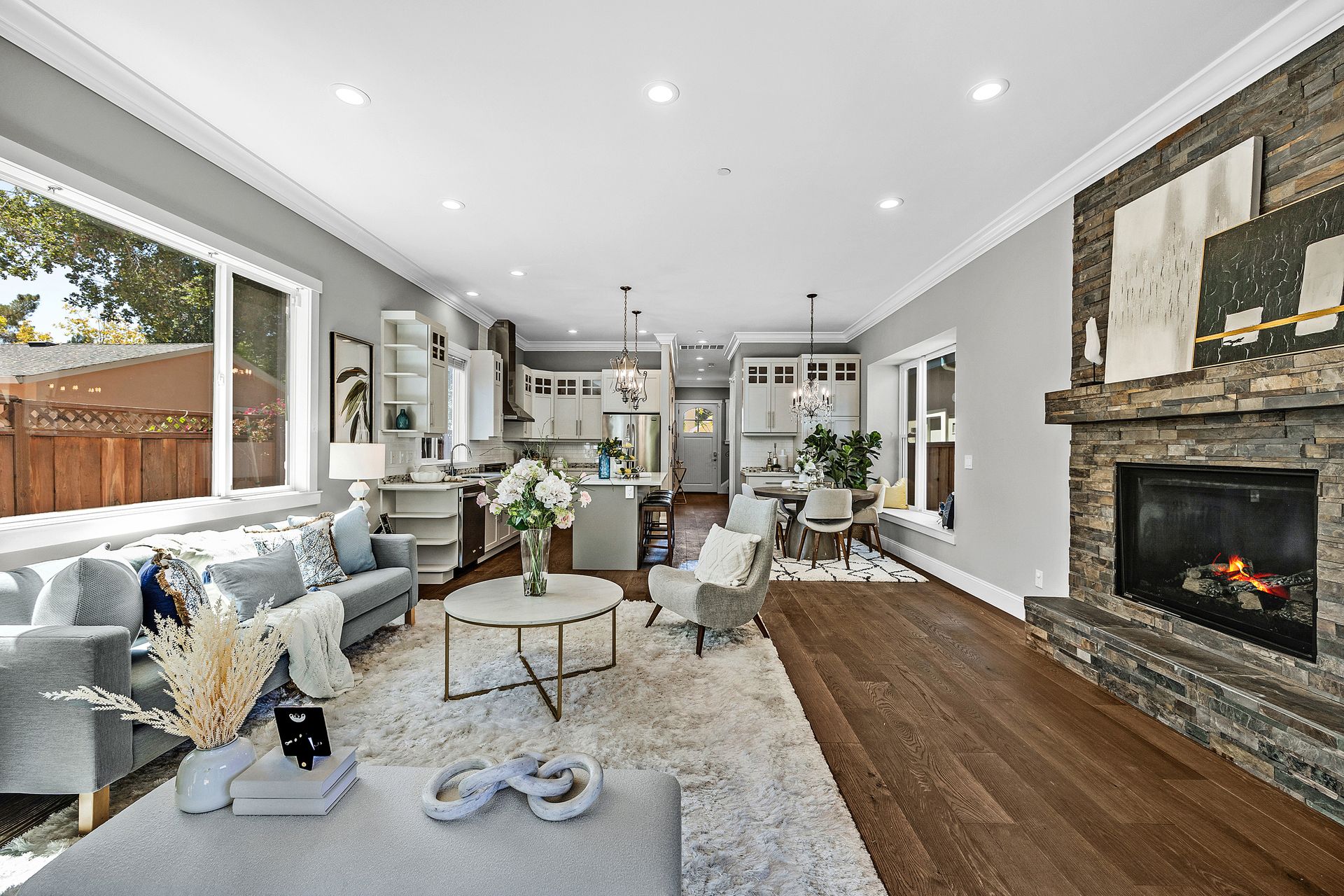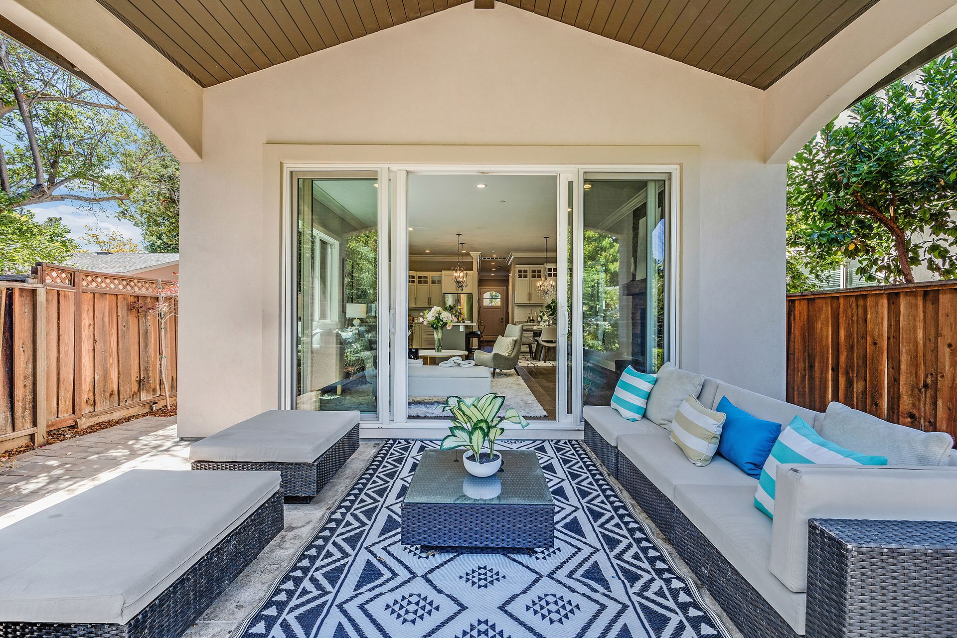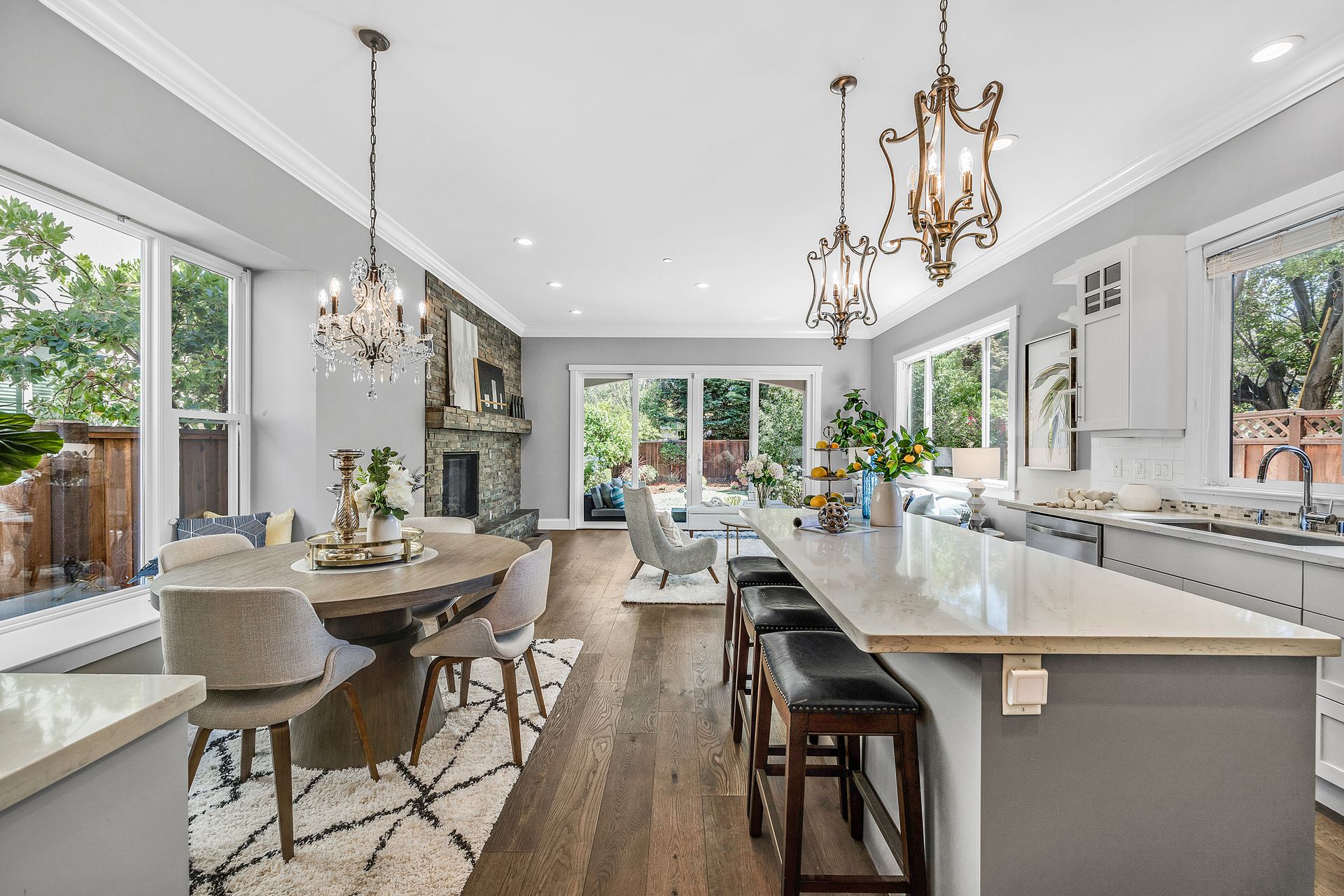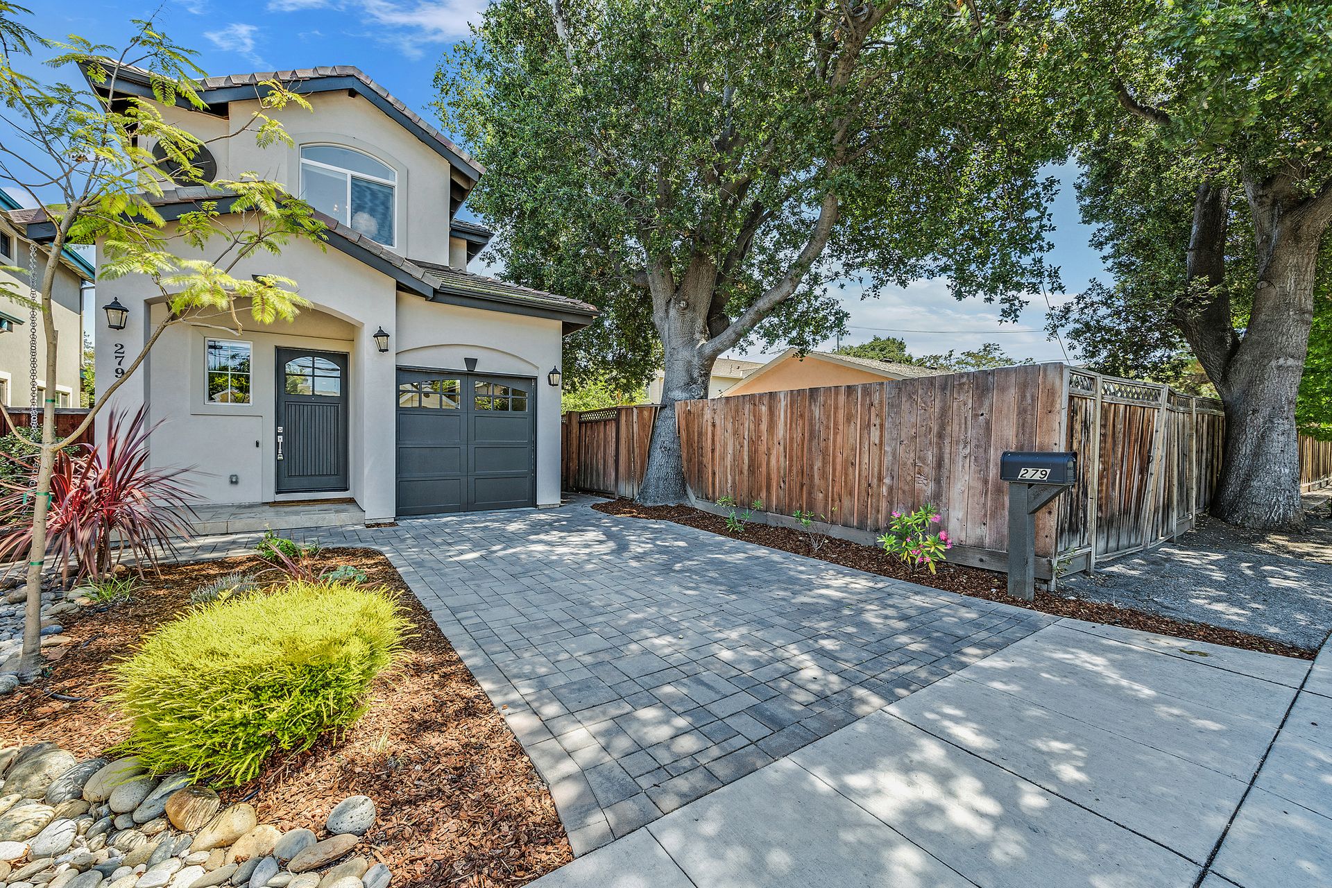 Welcome to this refined and stylish six-year newly constructed home in a prime Mountain View location. Mature oak trees greet you alongside a fresh paver driveway with wrap-around pathways to the rear of the home. The lower level includes a conveniently located one-half bath, beautiful wide-plank oak flooring with high ceilings, crown molding and designer lighting. The open concept kitchen boasts a quartz island with seating, stainless steel appliances, high-end cabinetry and a dining area with a bay window. Enjoy seamless indoor-outdoor living with an expansive double pane slider that takes you out into the private rear yard oasis. The home features a large California room ideal for alfresco dining and entertaining, privacy with mature landscaping and multiple fruit trees. Upstairs find a full hall bath and three well-appointed bedrooms with vaulted ceilings. The large primary bedroom overlooks the rear yard and includes an extensive walk-in closet. The tastefully updated primary bath features a sizeable, tiled step-in shower and dual sinks. This home is conveniently located to nearby downtown Mountain View, major tech employers and commute routes. Schools include the highly sought-after Los Altos High School. Come see it for yourself to experience it all!