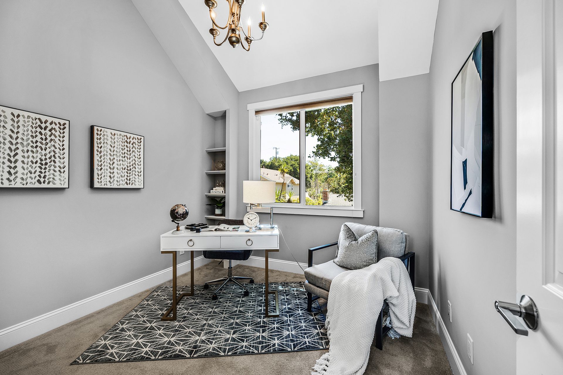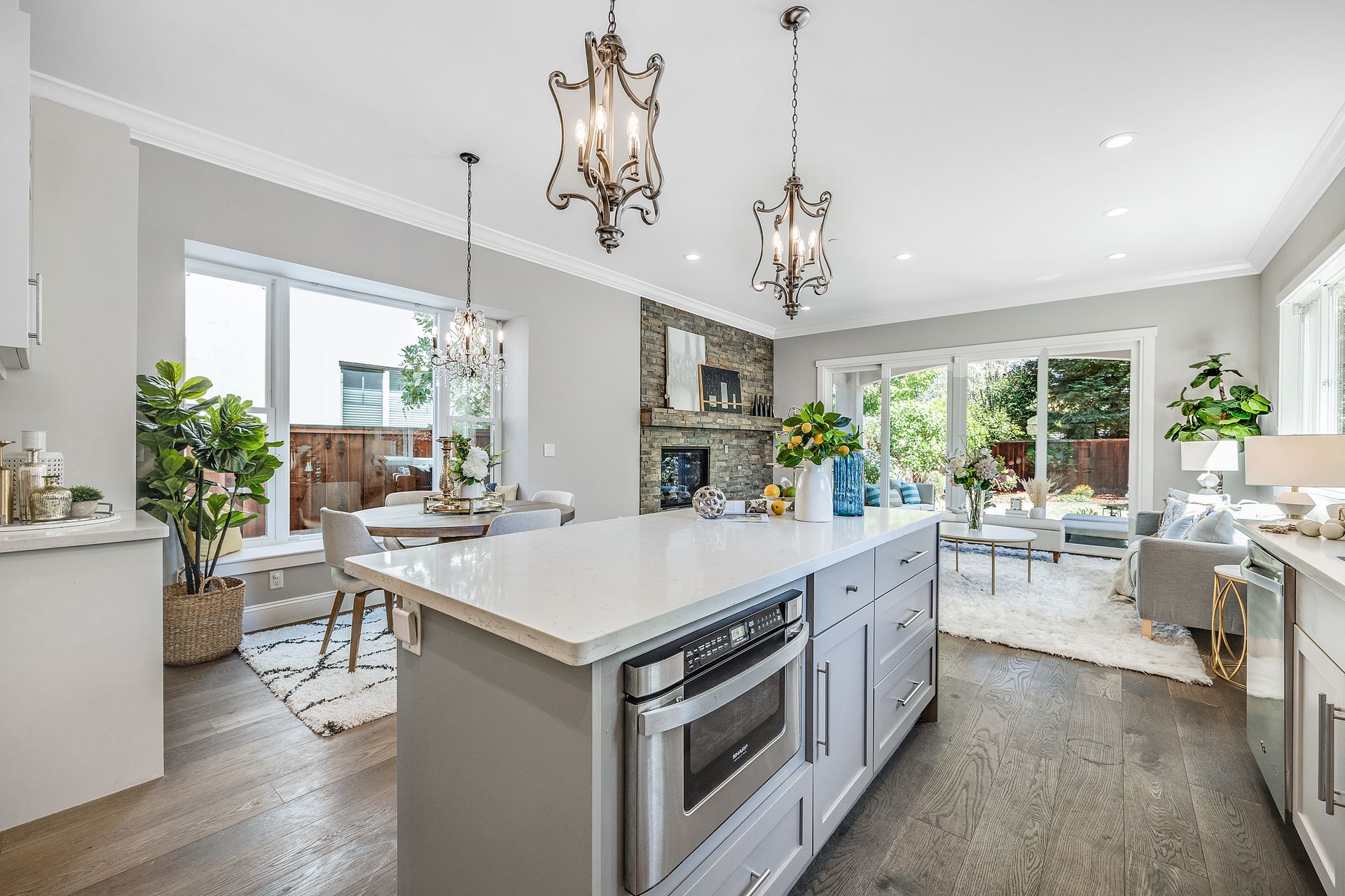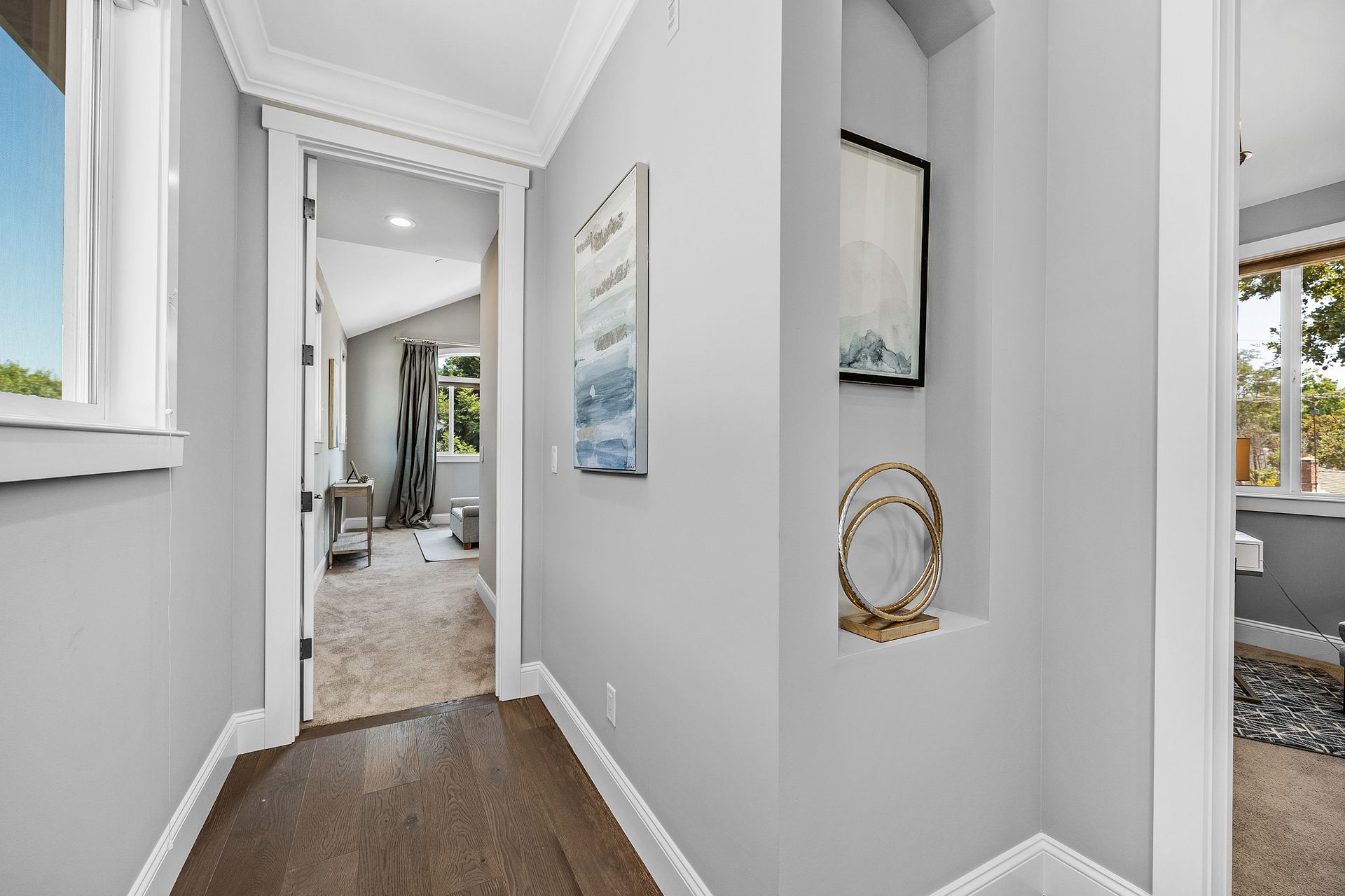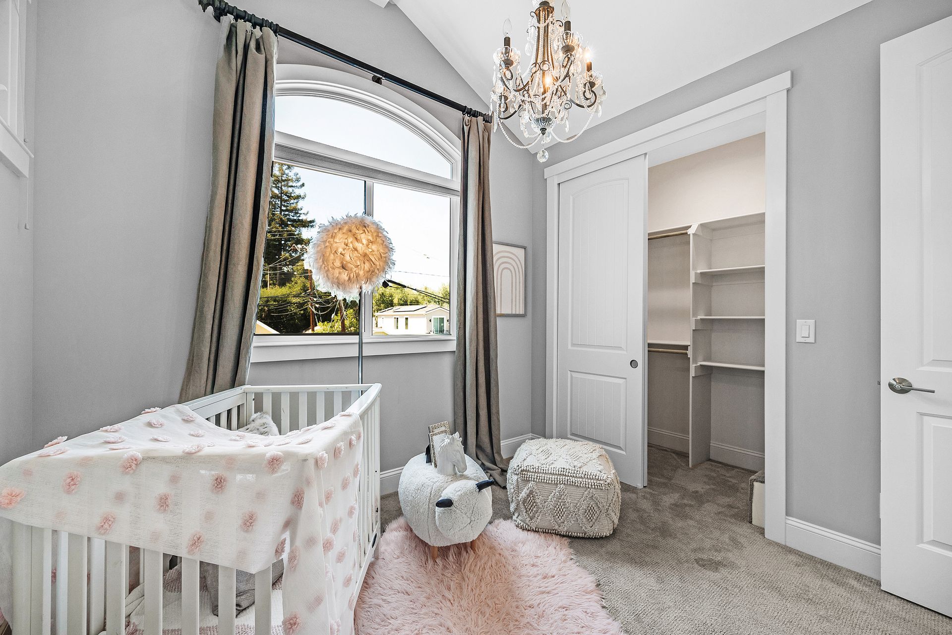 Welcome to this refined and stylish six-year newly constructed home in a prime Mountain View location. Mature oak trees greet you alongside a fresh paver driveway with wrap-around pathways to the rear of the home. The lower level includes a conveniently located one-half bath, beautiful wide-plank oak flooring with high ceilings, crown molding and designer lighting. The open concept kitchen boasts a quartz island with seating, stainless steel appliances, high-end cabinetry and a dining area with a bay window. Enjoy seamless indoor-outdoor living with an expansive double pane slider that takes you out into the private rear yard oasis. The home features a large California room ideal for alfresco dining and entertaining, privacy with mature landscaping and multiple fruit trees. Upstairs find a full hall bath and three well-appointed bedrooms with vaulted ceilings. The large primary bedroom overlooks the rear yard and includes an extensive walk-in closet. The tastefully updated primary bath features a sizeable, tiled step-in shower and dual sinks. This home is conveniently located to nearby downtown Mountain View, major tech employers and commute routes. Schools include the highly sought-after Los Altos High School. Come see it for yourself to experience it all!