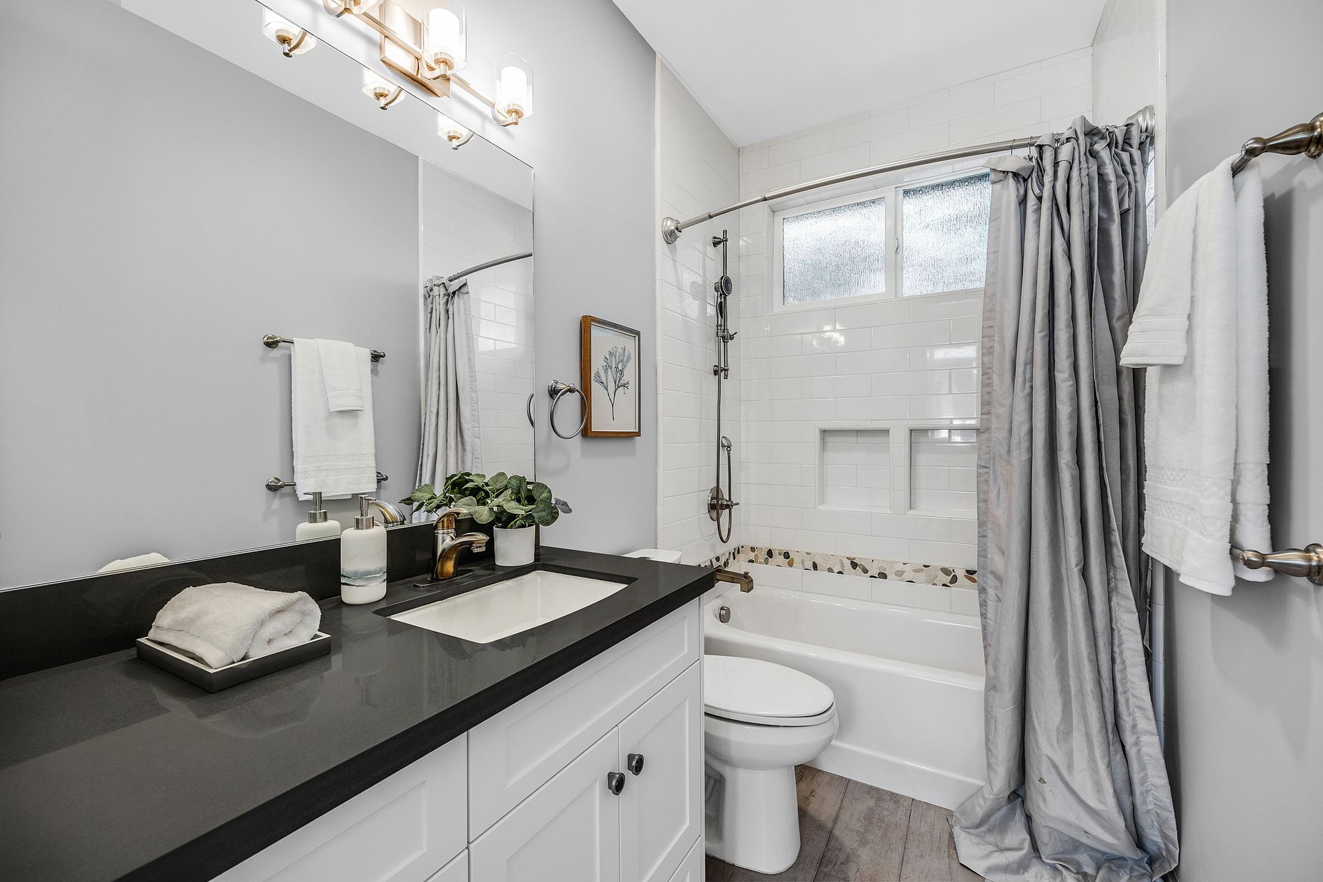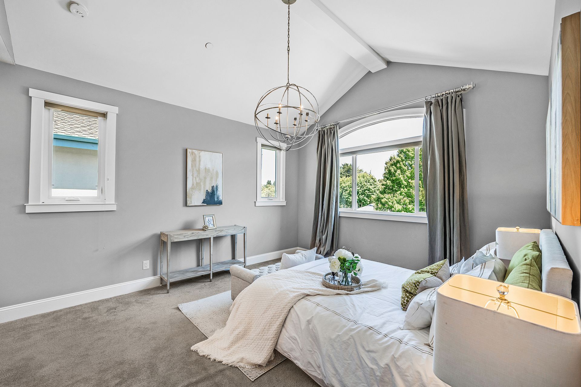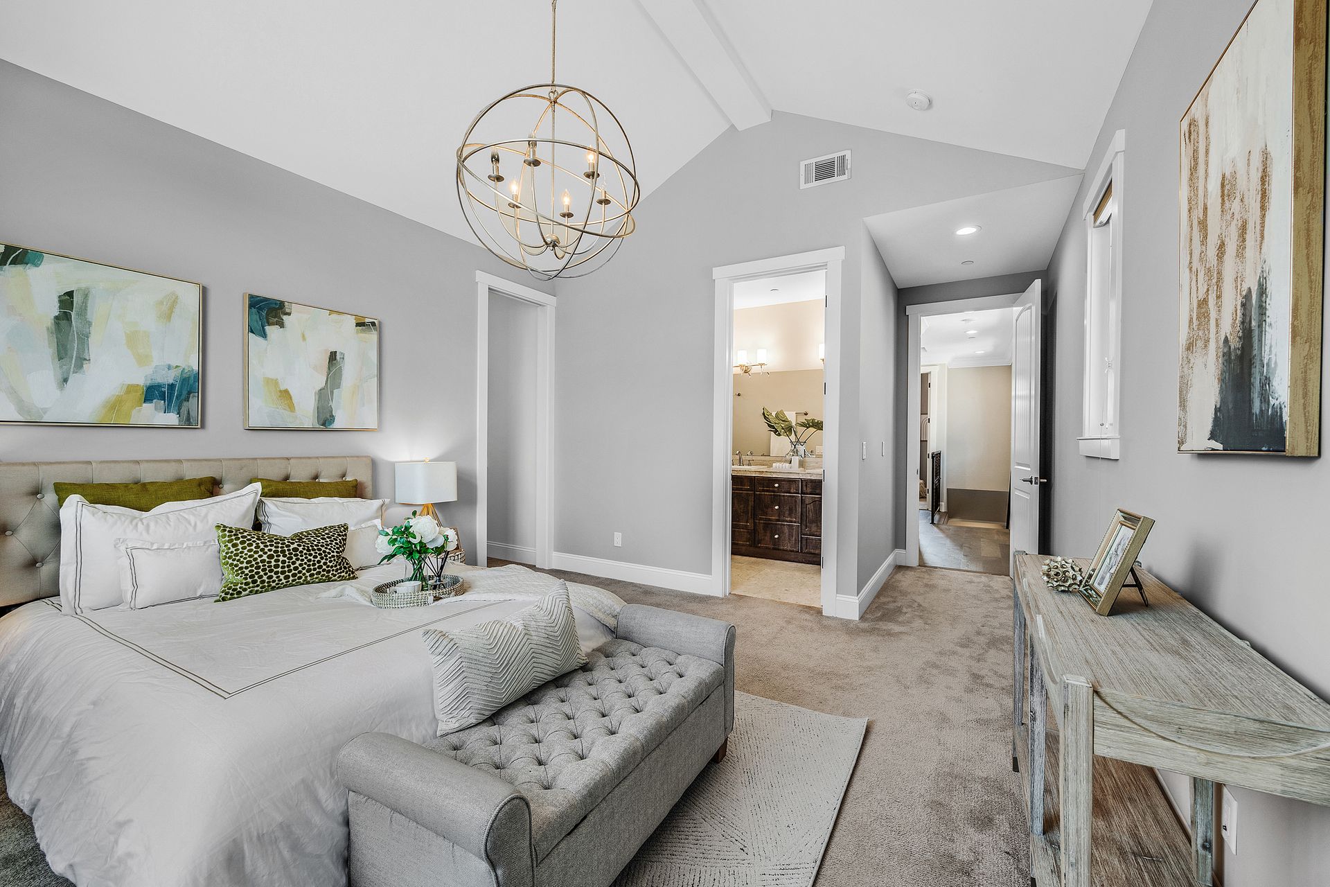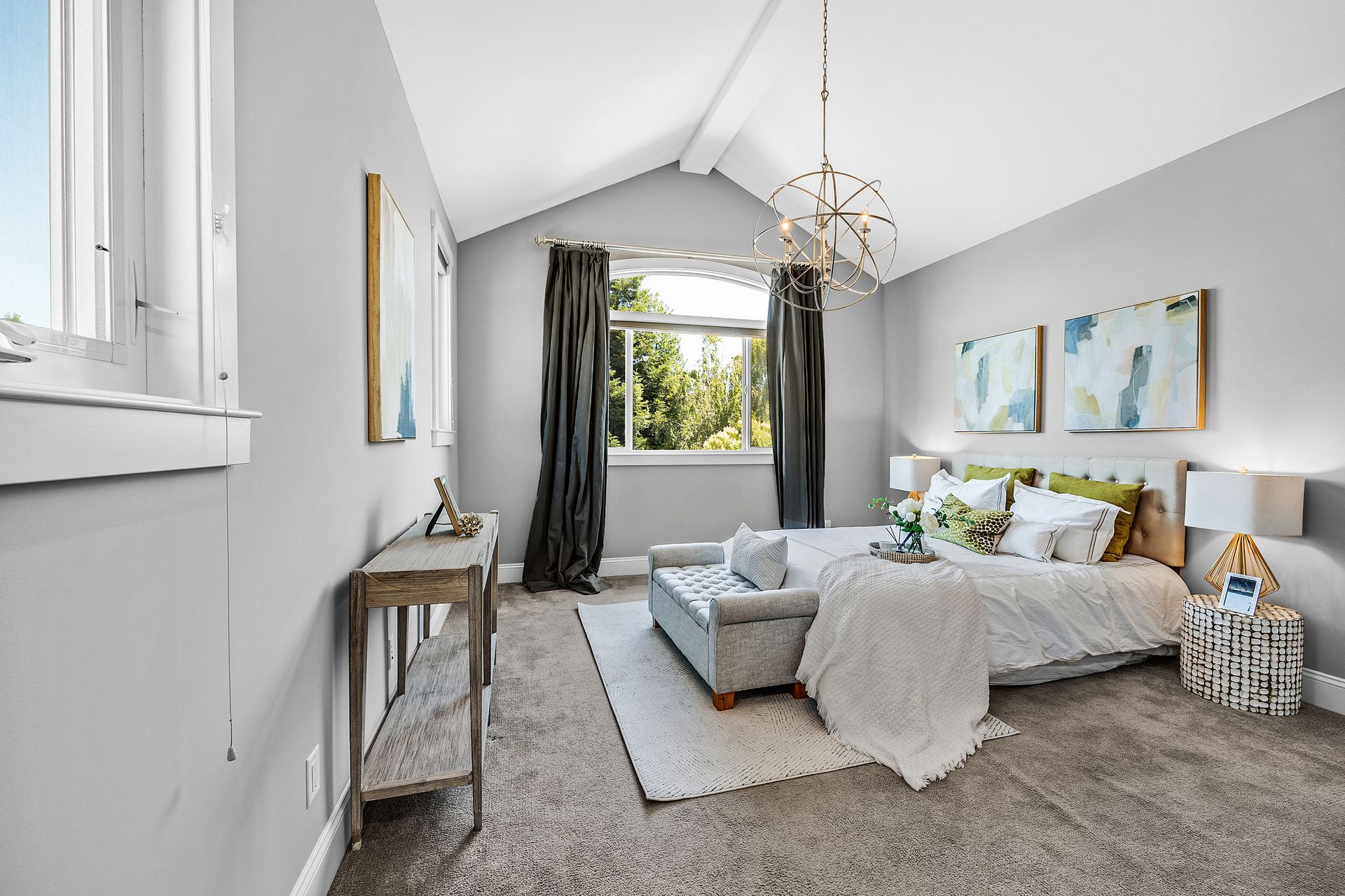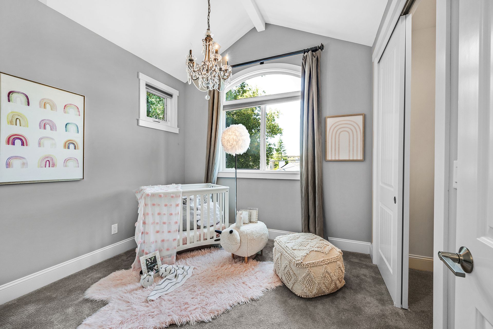Welcome to this refined and stylish six-year newly constructed home in a prime Mountain View location. Mature oak trees greet you alongside a fresh paver driveway with wrap-around pathways to the rear of the home. The lower level includes a conveniently located one-half bath, beautiful wide-plank oak flooring with high ceilings, crown molding and designer lighting. The open concept kitchen boasts a quartz island with seating, stainless steel appliances, high-end cabinetry and a dining area with a bay window. Enjoy seamless indoor-outdoor living with an expansive double pane slider that takes you out into the private rear yard oasis. The home features a large California room ideal for alfresco dining and entertaining, privacy with mature landscaping and multiple fruit trees. Upstairs find a full hall bath and three well-appointed bedrooms with vaulted ceilings. The large primary bedroom overlooks the rear yard and includes an extensive walk-in closet. The tastefully updated primary bath features a sizeable, tiled step-in shower and dual sinks. This home is conveniently located to nearby downtown Mountain View, major tech employers and commute routes. Schools include the highly sought-after Los Altos High School. Come see it for yourself to experience it all!