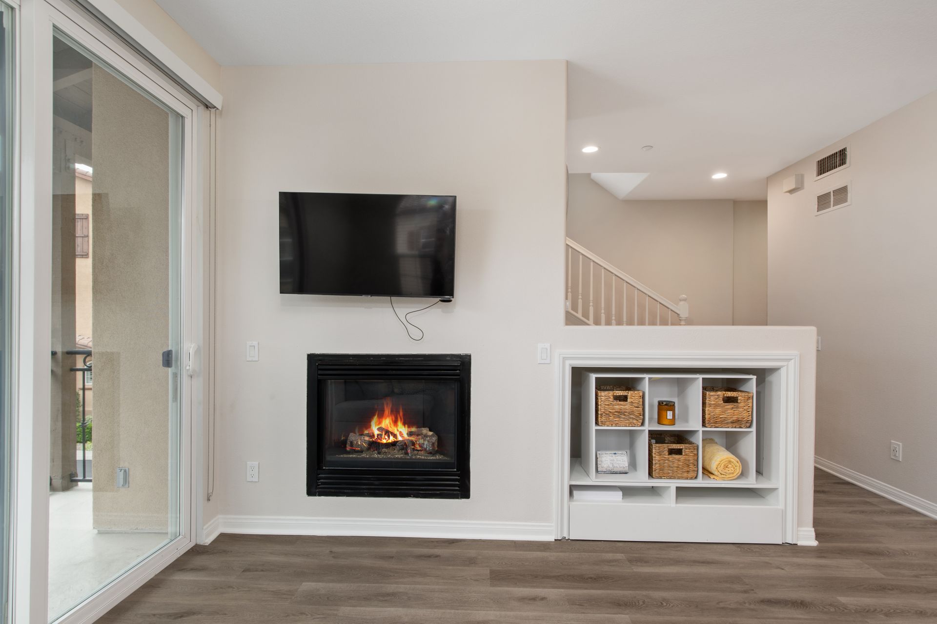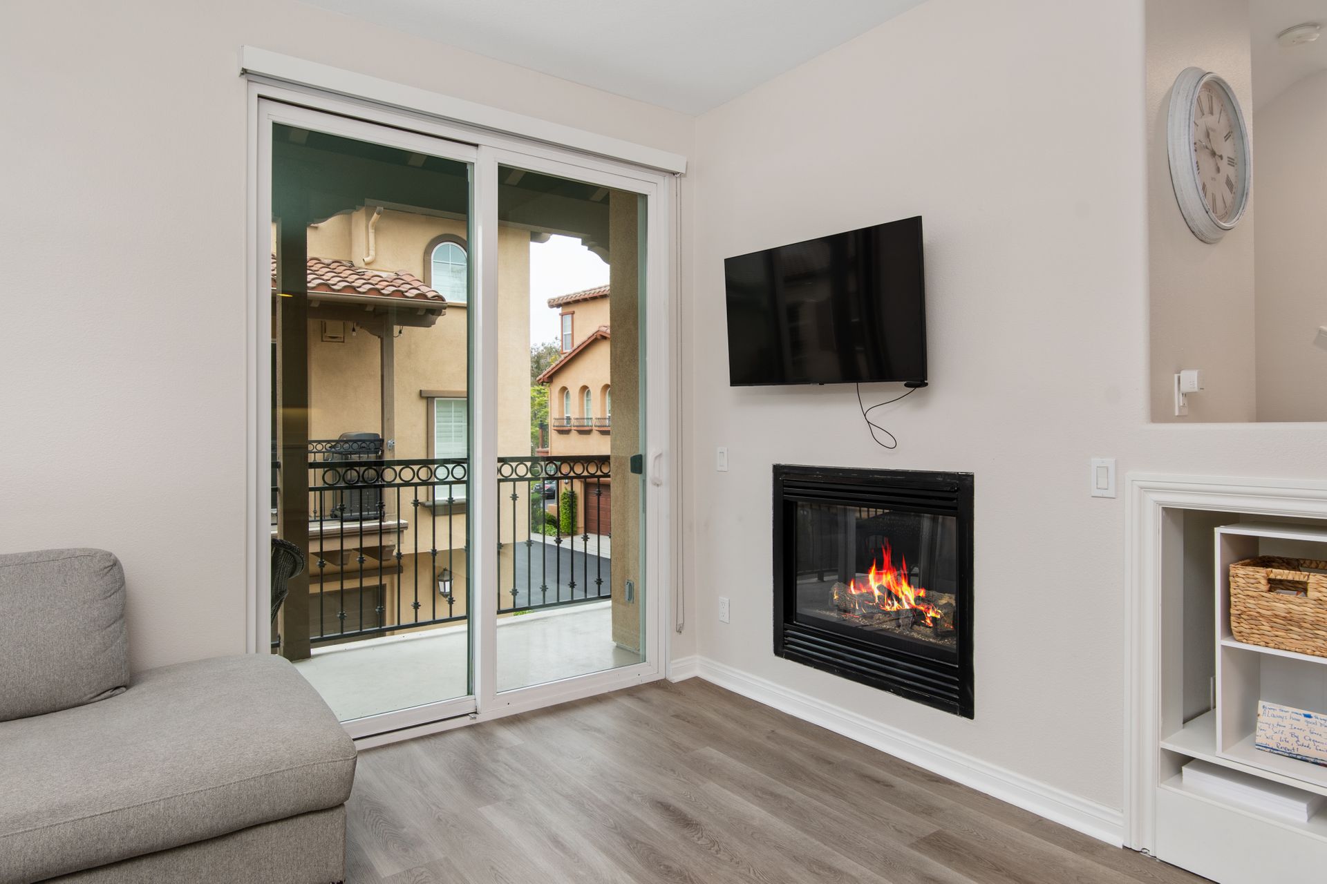 The living area is equipped with a one-touch operation gas fireplace, adding a dash of coziness to the ambiance. The sliding doors lead to a private balcony, perfect for BBQ enthusiasts. The kitchen is a chef's dream with its Corian counter-tops, shining stainless-steel appliances, ample counter space, and a spacious island. Imagine savoring the sight of your personal chef preparing delicious meals right before your eyes!