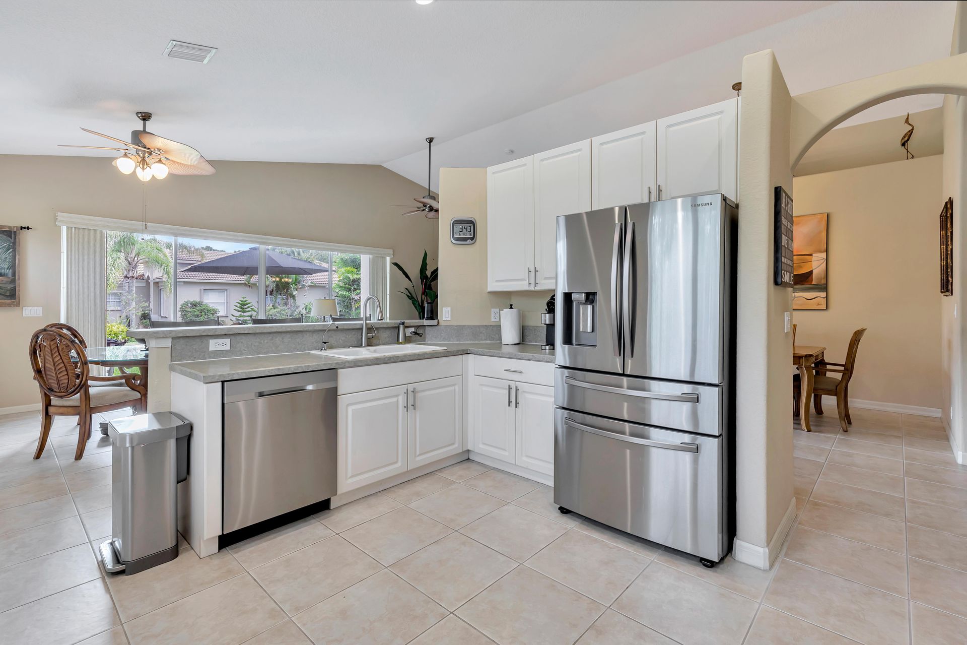Beautiful home located in Summerfield, a gated, golf course community. Located on a corner lot close to the 17th tee, this three bedroom and two bath home has a brand new roof, only a year old, fresh exterior paint, and well-maintained landscape. Once you open the large double doors you are greeted by an open floor plan beaming with tons of natural light due to the large sliding glass doors. With a large and spacious open kitchen with matching stainless-steel appliances. This house offers a split-wing floor plan with the primary suite separated from the other two bedrooms by a sweeping combination of a formal dining area and living room. The primary suite has bay windows, tray ceilings equipped with two large walk-in closets, and a bright and spacious ensuite bathroom. This ensuite bathroom encompasses double sinks, a soaking tub, and a spacious shower. The guest bedrooms are generous in size with a second full bathroom in between. This gated community has pickleball courts, professional clay tennis courts, pool, exercise facility, and club house.