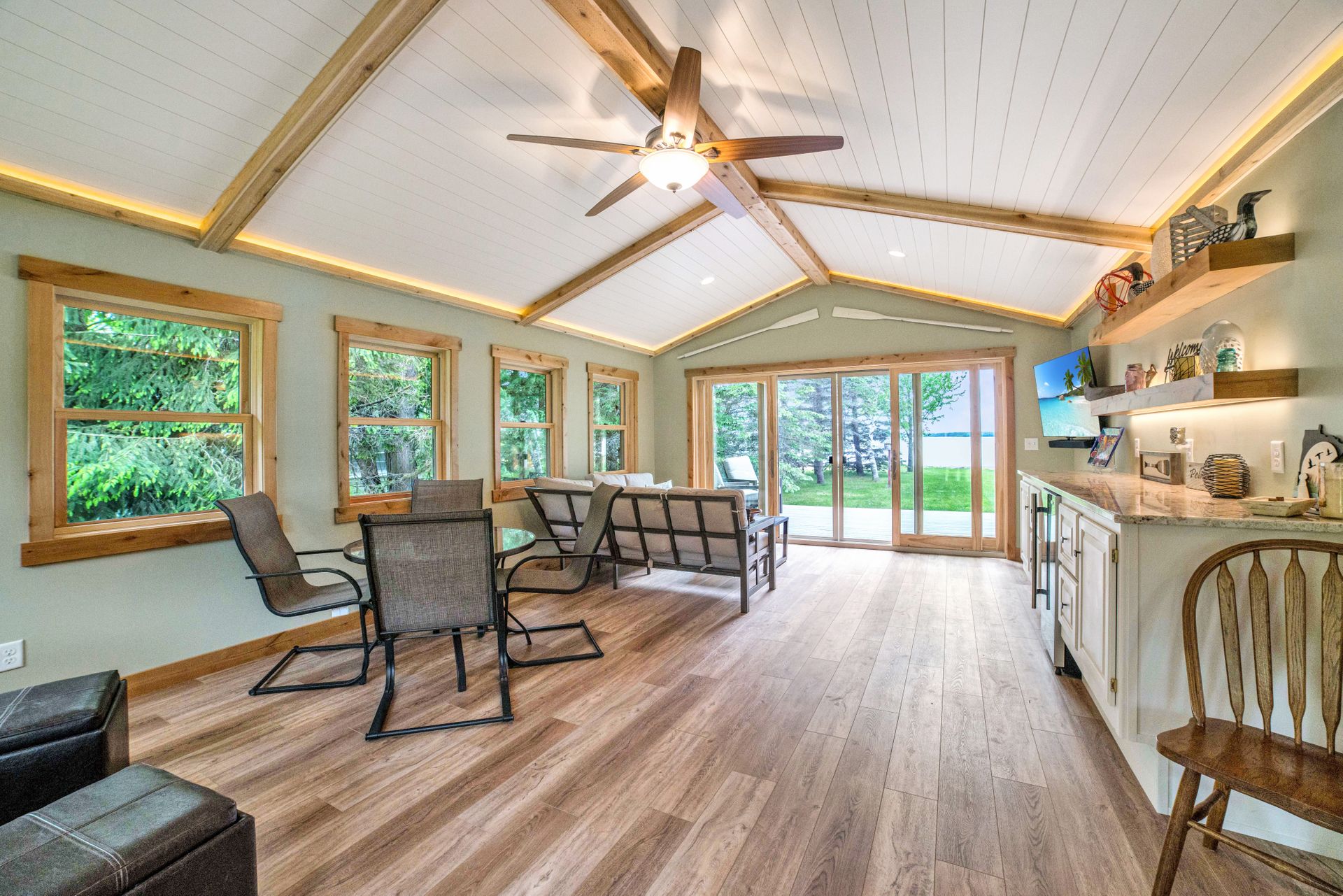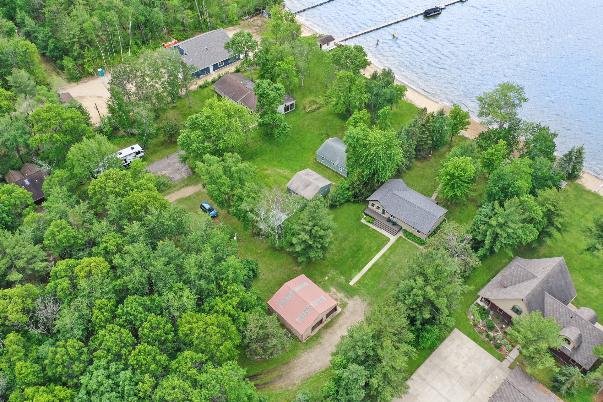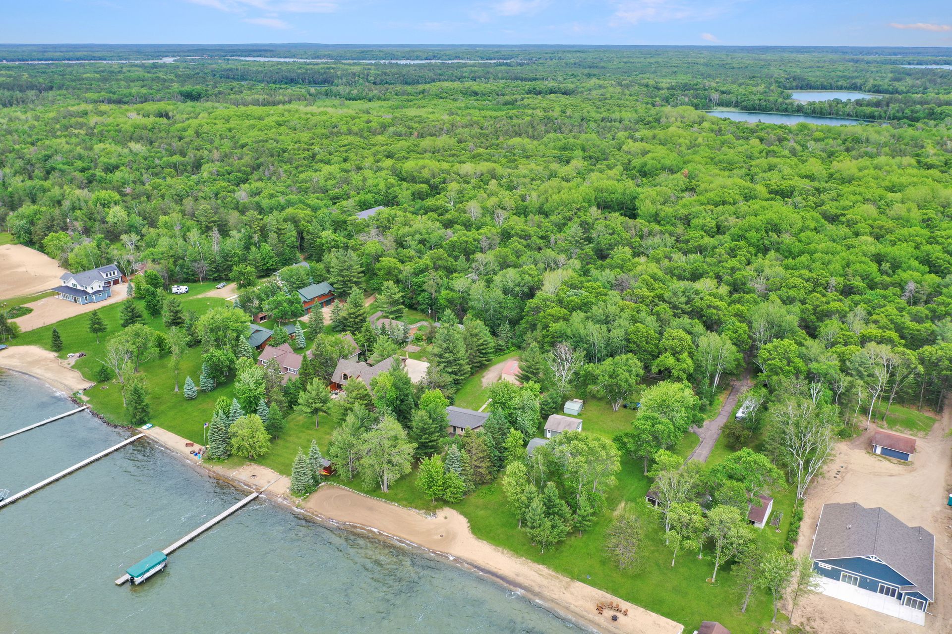 Two Bedroom, One Bathroom, Two Stall Garage on approximately 4.21 Acres with 101 Feet of West Facing Lakeshore. This Dream Property Features Granite Countertops, Stainless Steel Appliances, LP Siding, Composite Decking, Six Bed Bunkhouse, Storage Shed/Garage for the Lake Toys and a Level Lot Down to the Beautiful Sandy Beach. Recently Renovated to incorporate a 416 Square Foot Room for Entertaining with Panoramic French Sliding Glass Doors Overlooking the Well Maintained Yard Down to the Lake. All this Provides an escape to the Lake and enjoy all the amenities of Pelican Lake like Breezy Point Resort with Dockside Lounge, Golfing and Gooseberry Island. Plenty of Storage for all the Toys Lake Life has to Offer plus Acreage to add more if needed. Once in a Lifetime Opportunity to Join All the Fun! Schedule a Showing Before it's Gone!