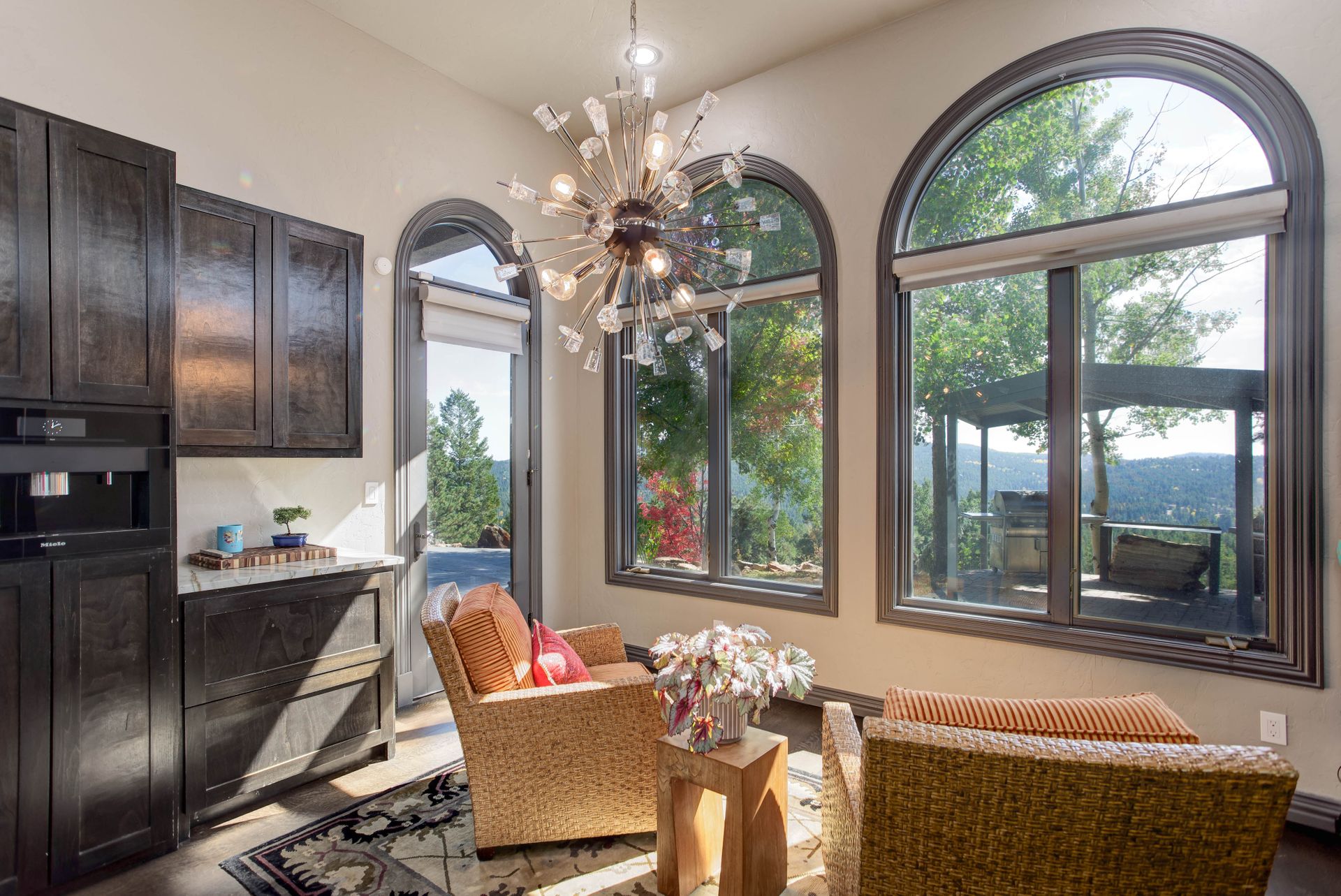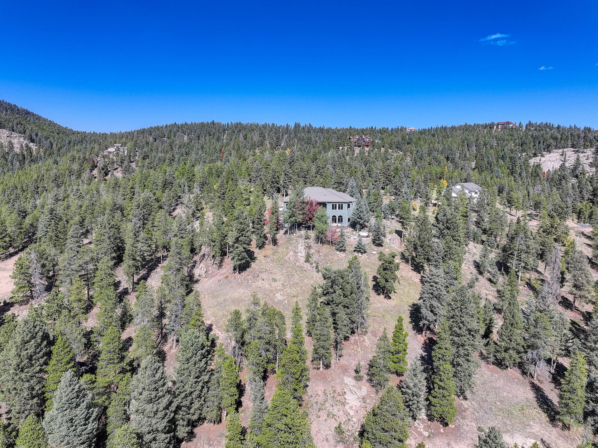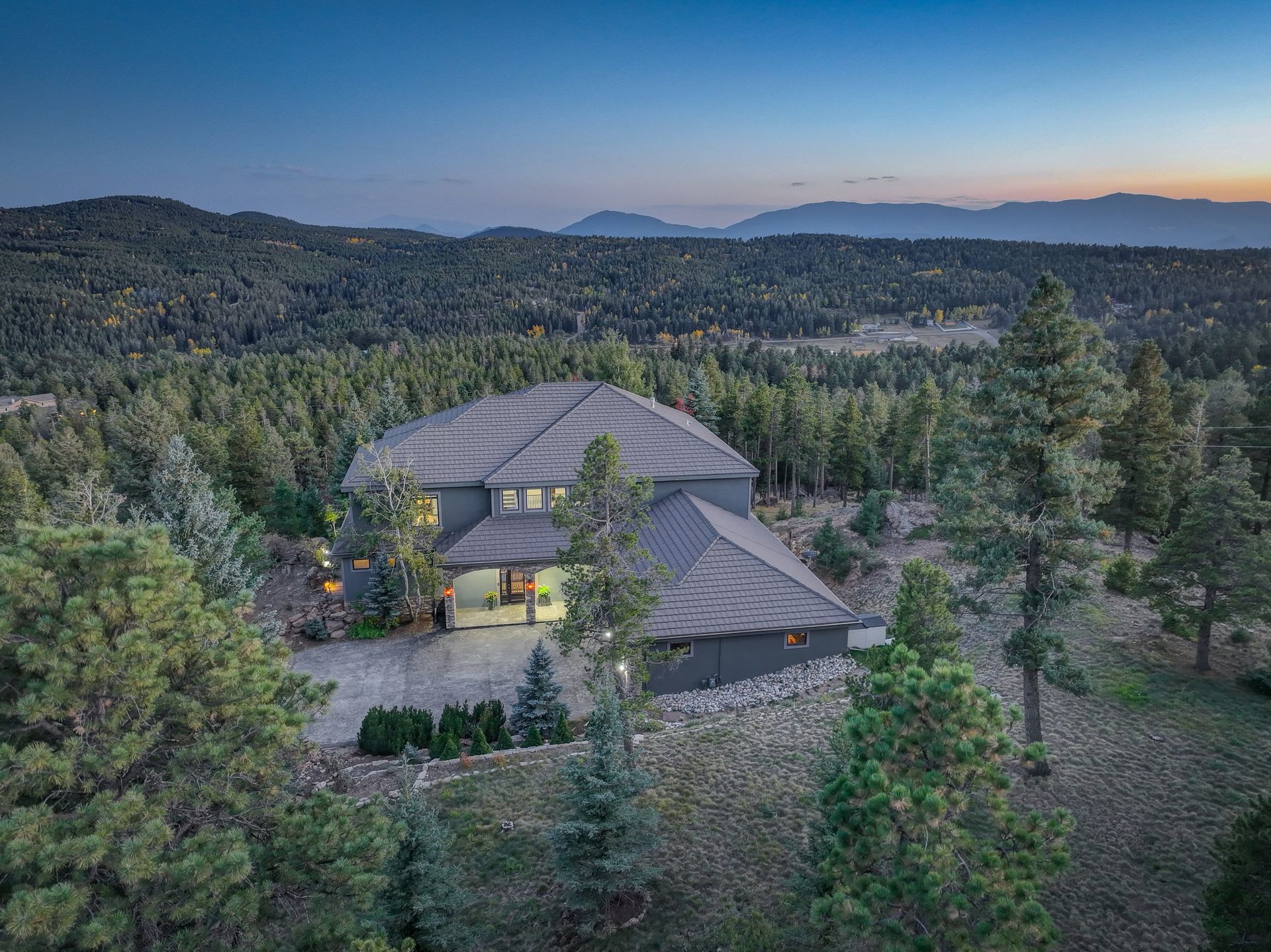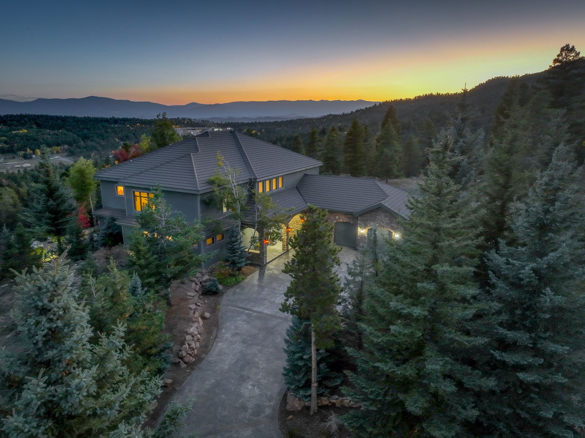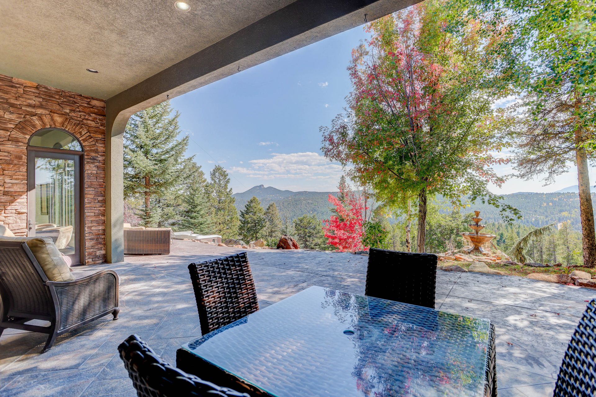This luxurious, contemporary estate offers the perfect blend of elegance, design & functionality in the exclusive Belle Meade executive community. Spanning over 10-acres, this 4 bed, 6 bath, 6,346 sq ft home boasts spectacular views of Pikes Peak, Riley Peak & more. No expense was spared in the renovation of the kitchen, primary bath & primary closet. The open-concept layout is highlighted by soaring ceilings & abundant windows, allowing ample natural light & showcasing the breathtaking mountain views.