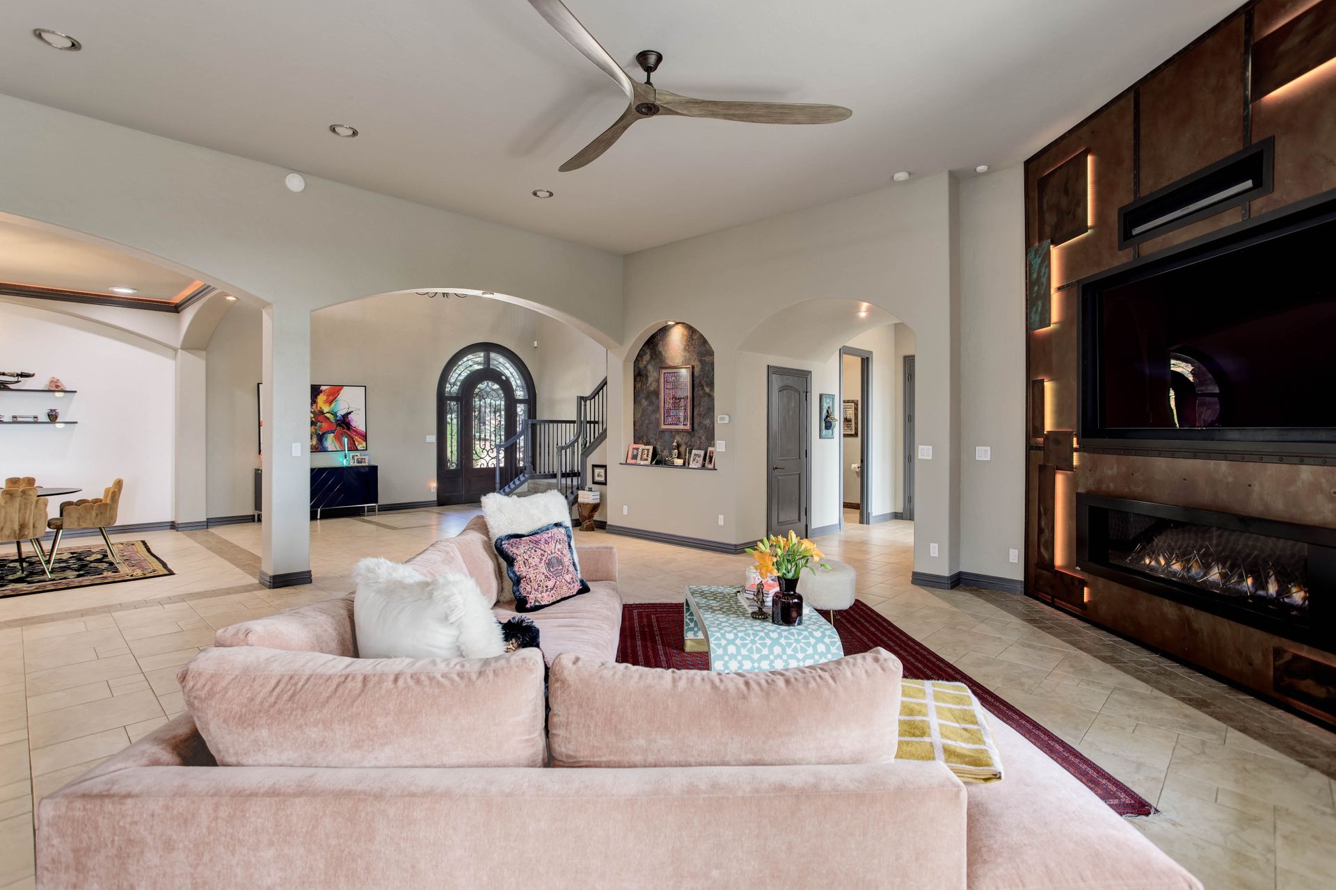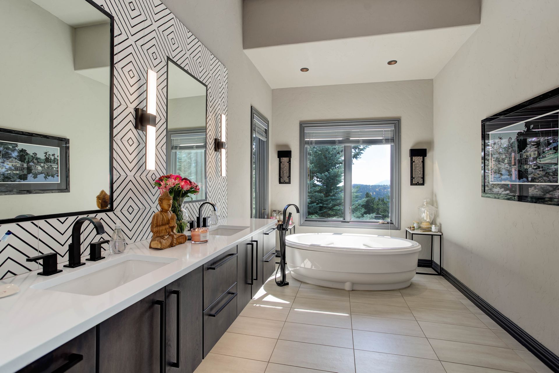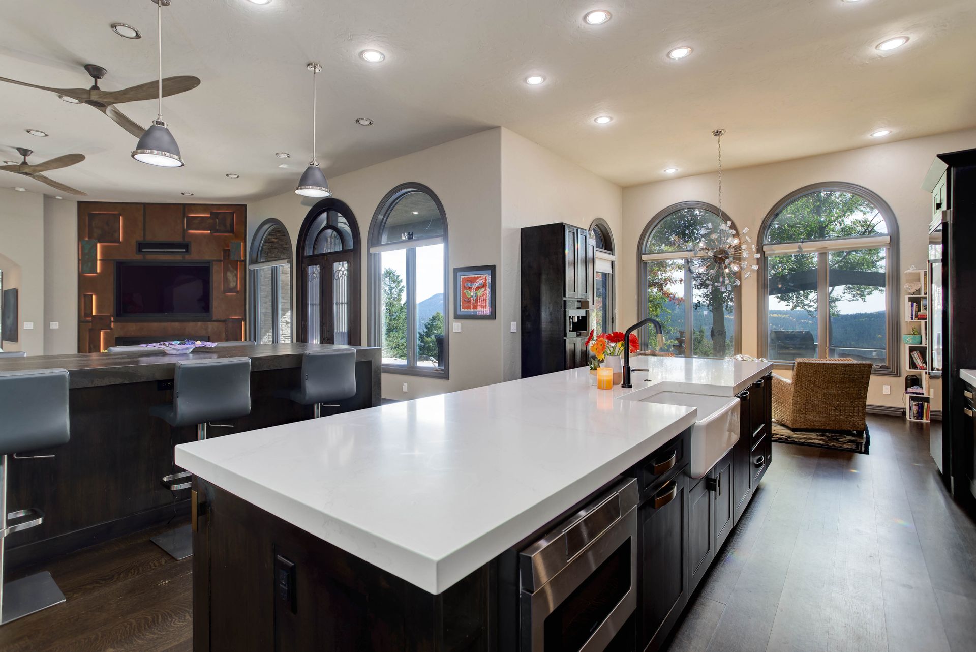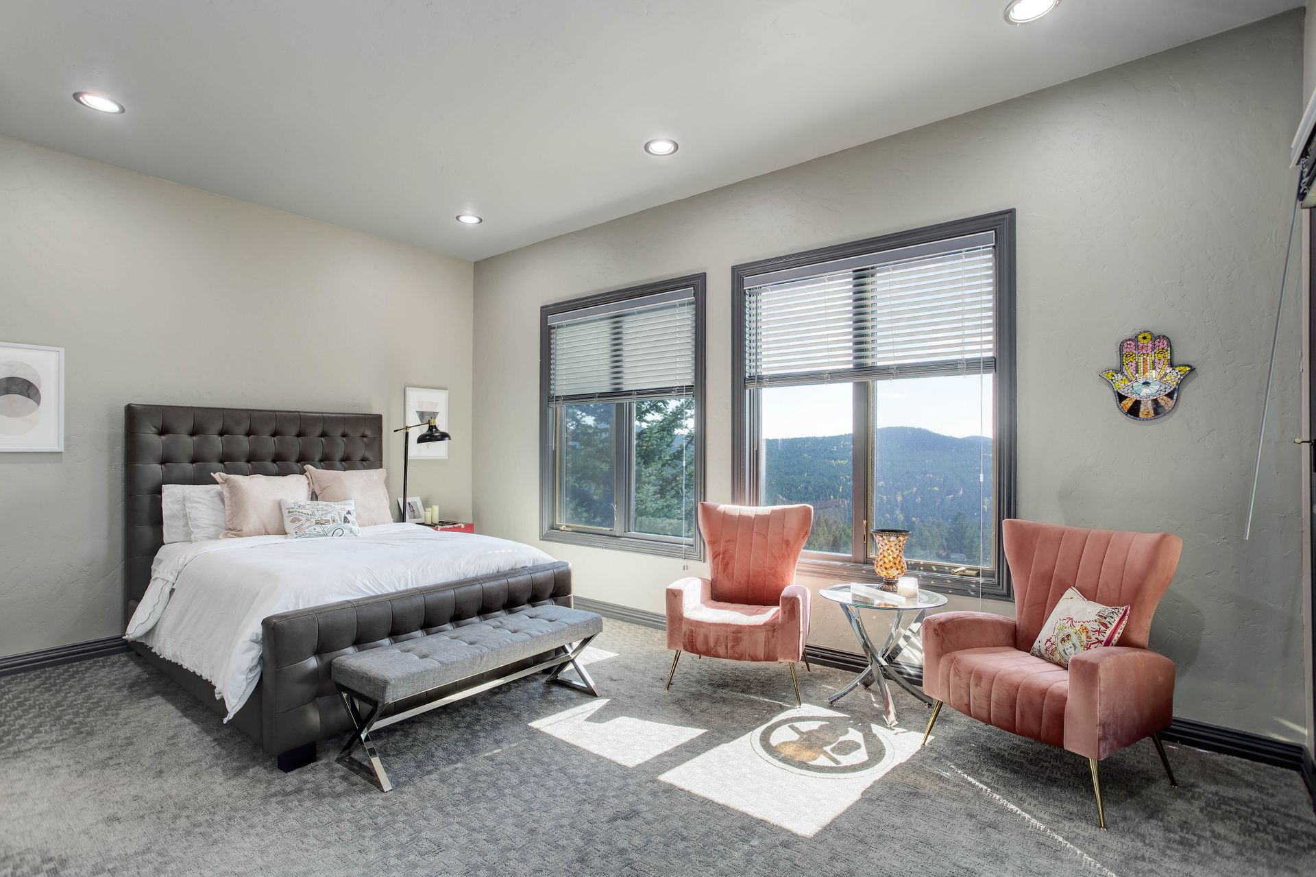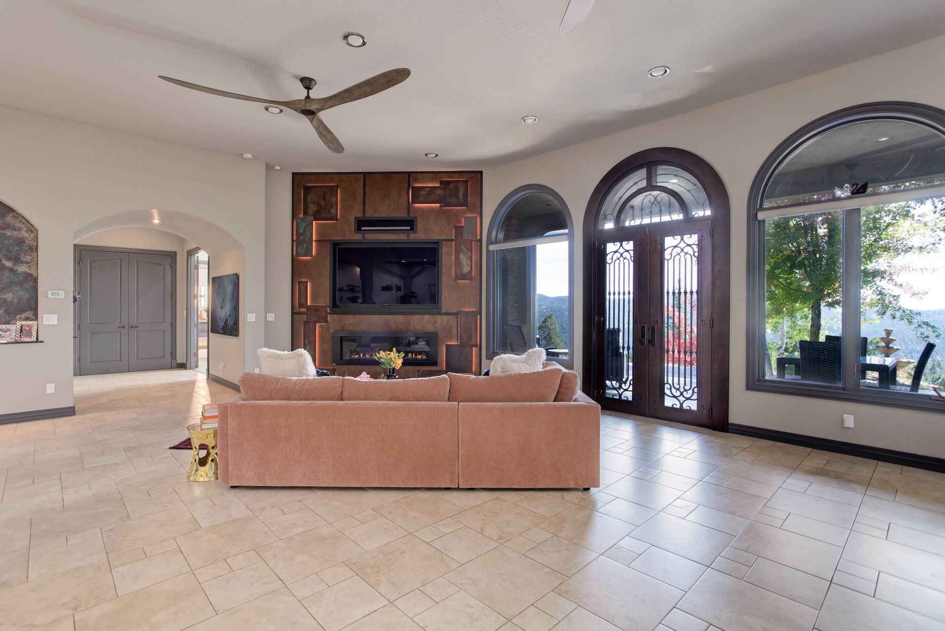 This luxurious, contemporary estate offers the perfect blend of elegance, design & functionality in the exclusive Belle Meade executive community. Spanning over 10-acres, this 4 bed, 6 bath, 6,346 sq ft home boasts spectacular views of Pikes Peak, Riley Peak & more. No expense was spared in the renovation of the kitchen, primary bath & primary closet. The open-concept layout is highlighted by soaring ceilings & abundant windows, allowing ample natural light & showcasing the breathtaking mountain views.