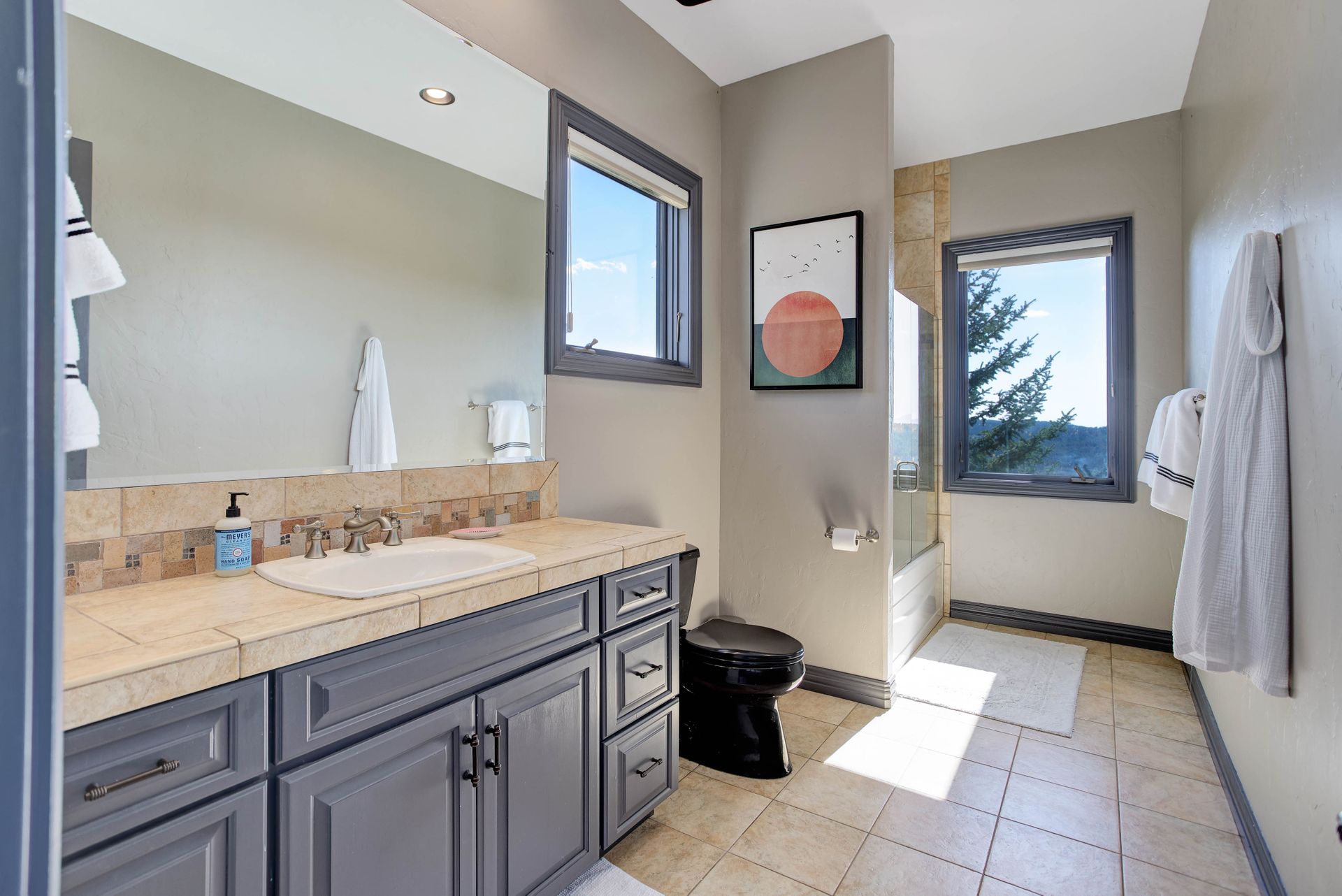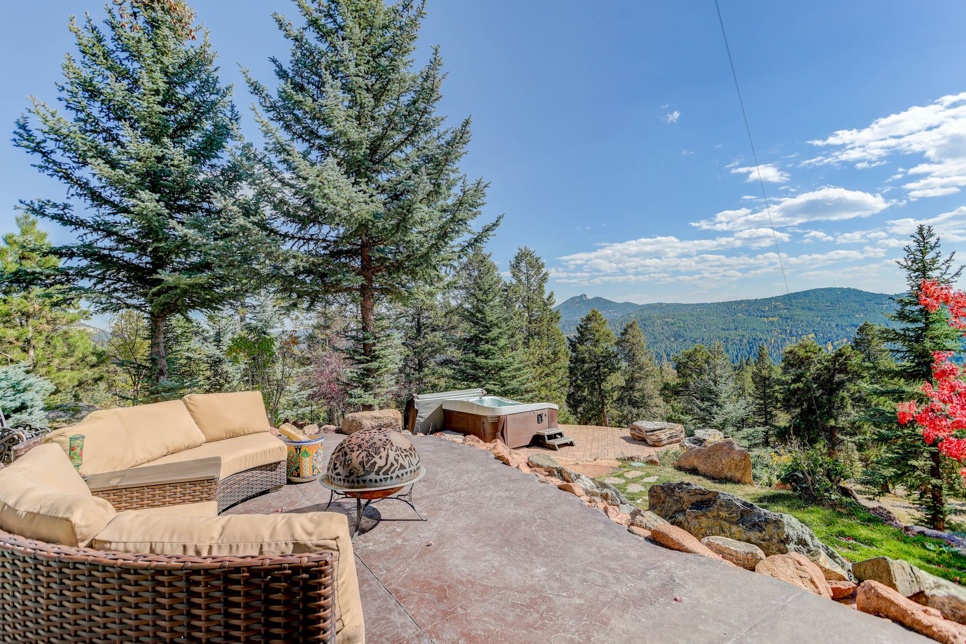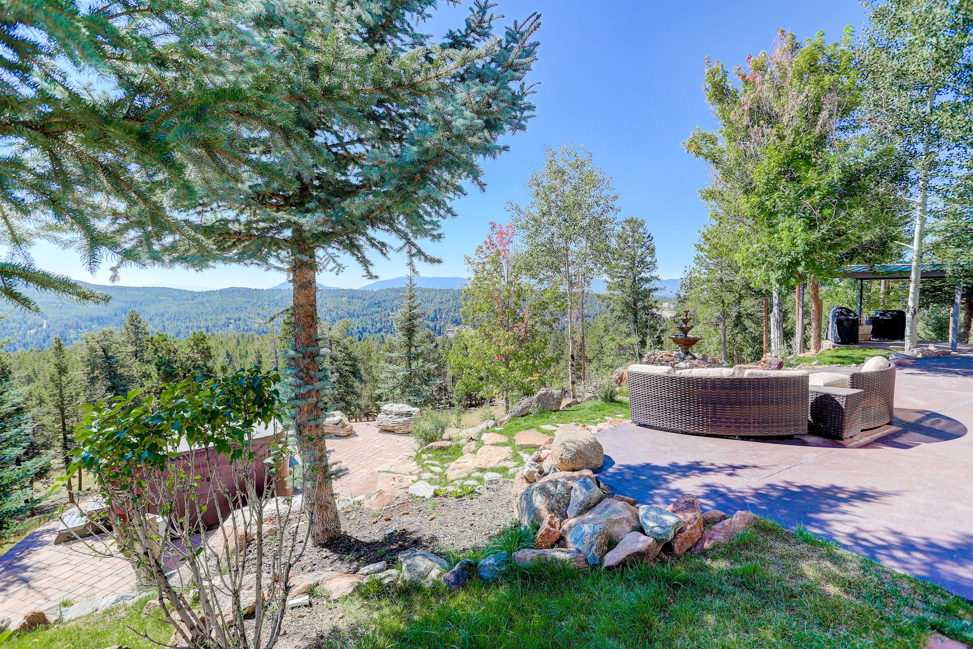 Upstairs, you'll find a large flex space with wet bar & gas fireplace, 3 ensuite bedrooms, a versatile bonus room for a gym, theater, office or 5th bedroom, powder room & loft area. The outdoor entertaining options are exceptional, with a custom cooking pergola featuring a gas grill & smoker & a relaxing hot tub for unwinding & enjoying the breathtaking mountain views. The 3-car garage with electric vehicle charger, cabinets & workbench area offers plenty of room for your mountain toys. Located just off 285, this property offers the perfect balance of private mountain living close to convenient amenities. Click here for a virtual tour.
