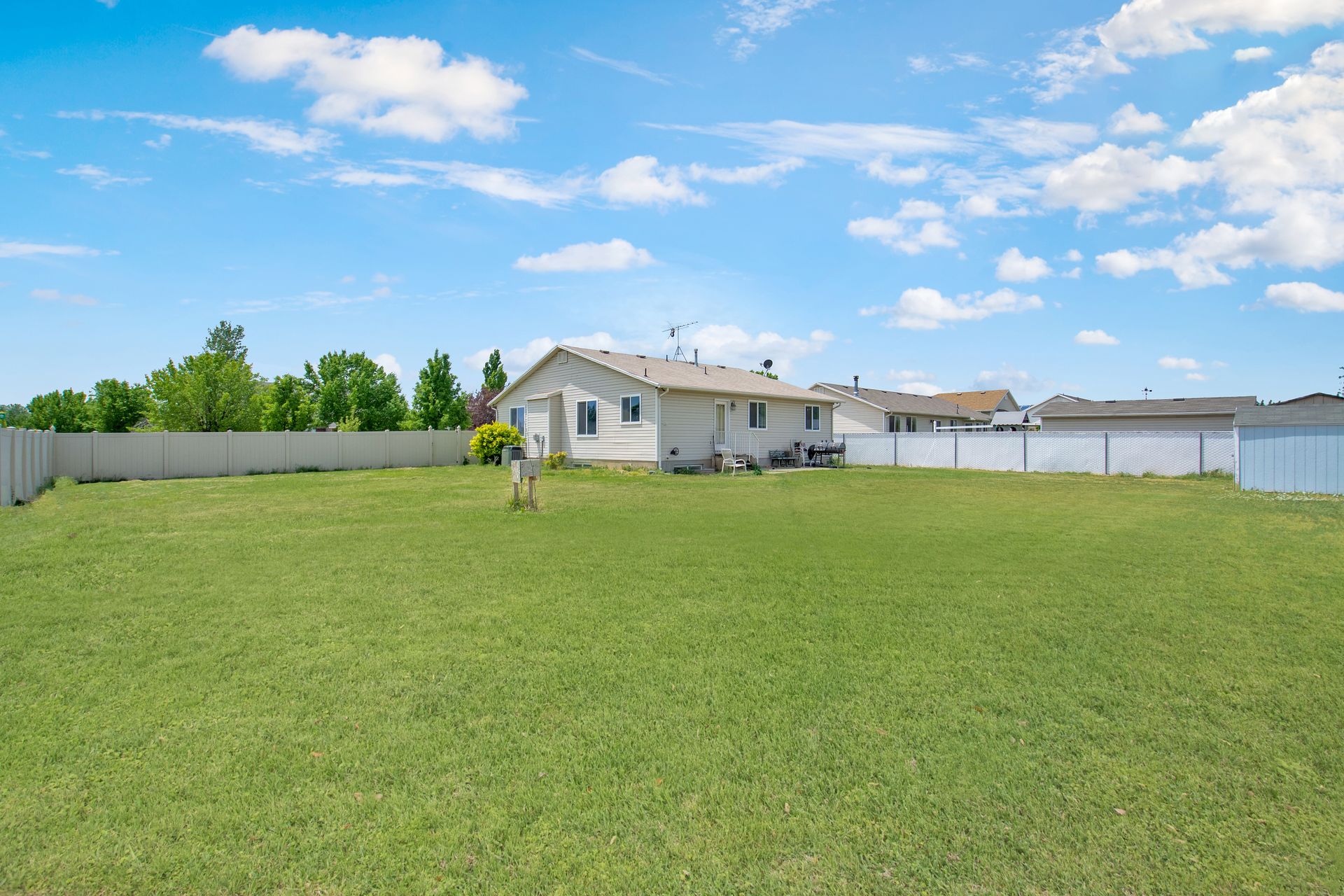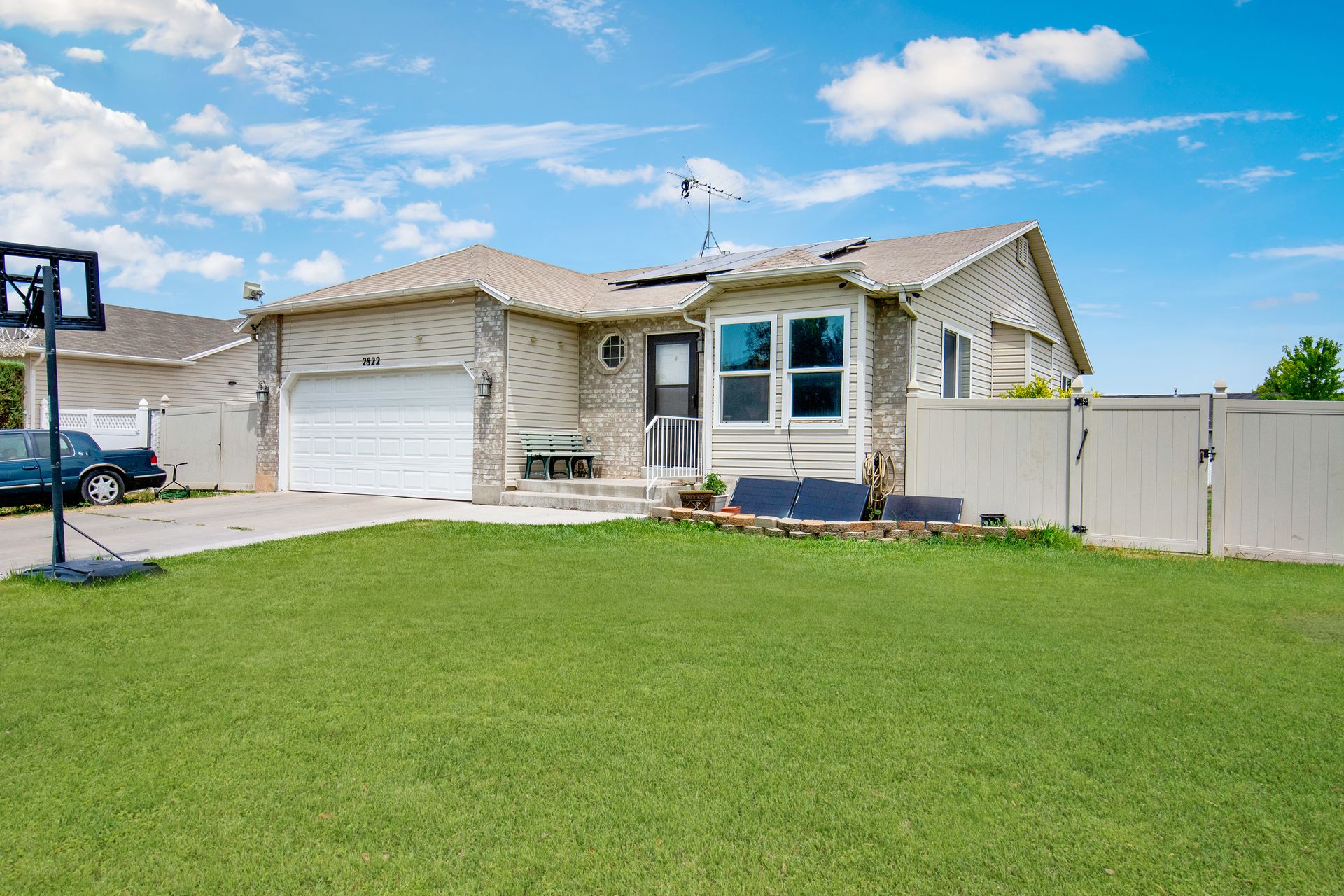 Welcome home to this spacious five bedroom rambler nestled on a fenced corner lot. From the open concept kitchen and living space to the large backyard, there is plenty of room for everyone to enjoy. This great house has two primary bedrooms to choose from, one with a jetted tub to relax in after a long day. Recent updates include newer carpet on the main floor, windows and one-third offset owned solar panel system.