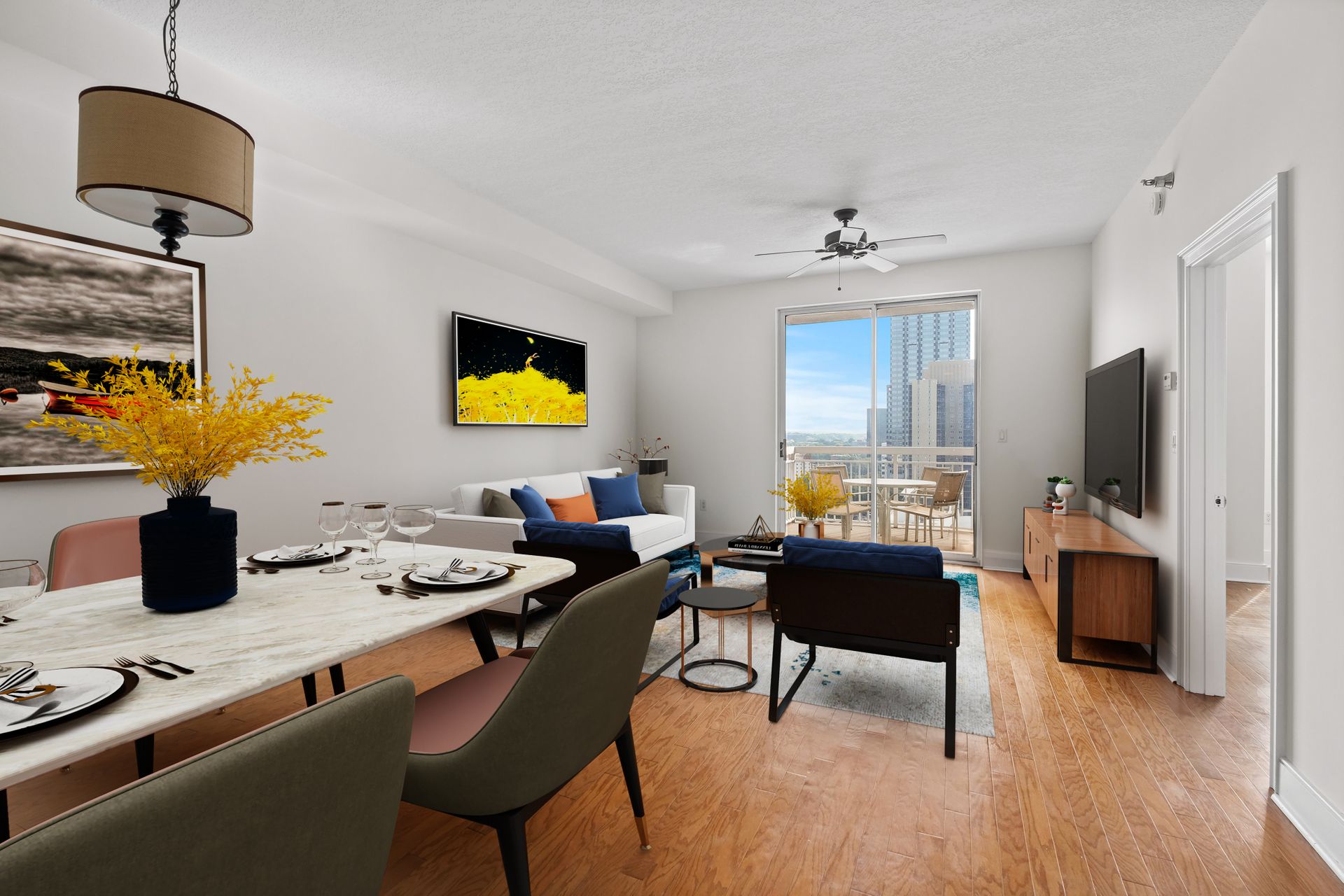 Welcome to urban living at its finest! This meticulously maintained, one-bedroom condo in Museum Tower offers the ideal blend of modern elegance and cityscape charm, all nestled right in the heart of downtown Atlanta. Go inside and be greeted by the warmth and sophistication of beautiful hardwood floors that flow seamlessly throughout the living space. The kitchen boasts sleek granite countertops that provide ample space for meal preparation. From sunrise to sunset, this condo offers a front-row seat to the city's vibrant energy below! LOCATION, LOCATION, LOCATION! The generously sized bedroom provides a peaceful retreat after a long day. The building amenities add great toppings to this delicious condo. Enjoy peace of mind with secure access and 24/7 concierge service, a designated parking spot, a fully equipped fitness center, a ROOF-TOP pool, conference room access, and guest suite availability.