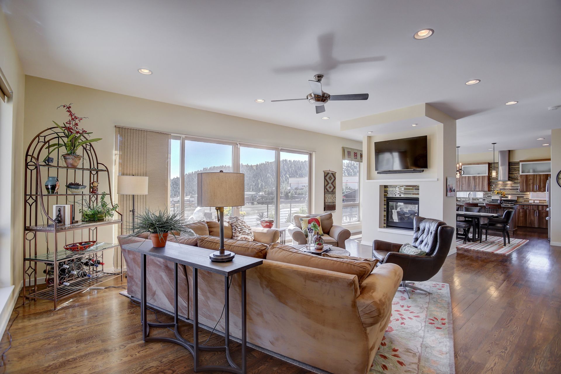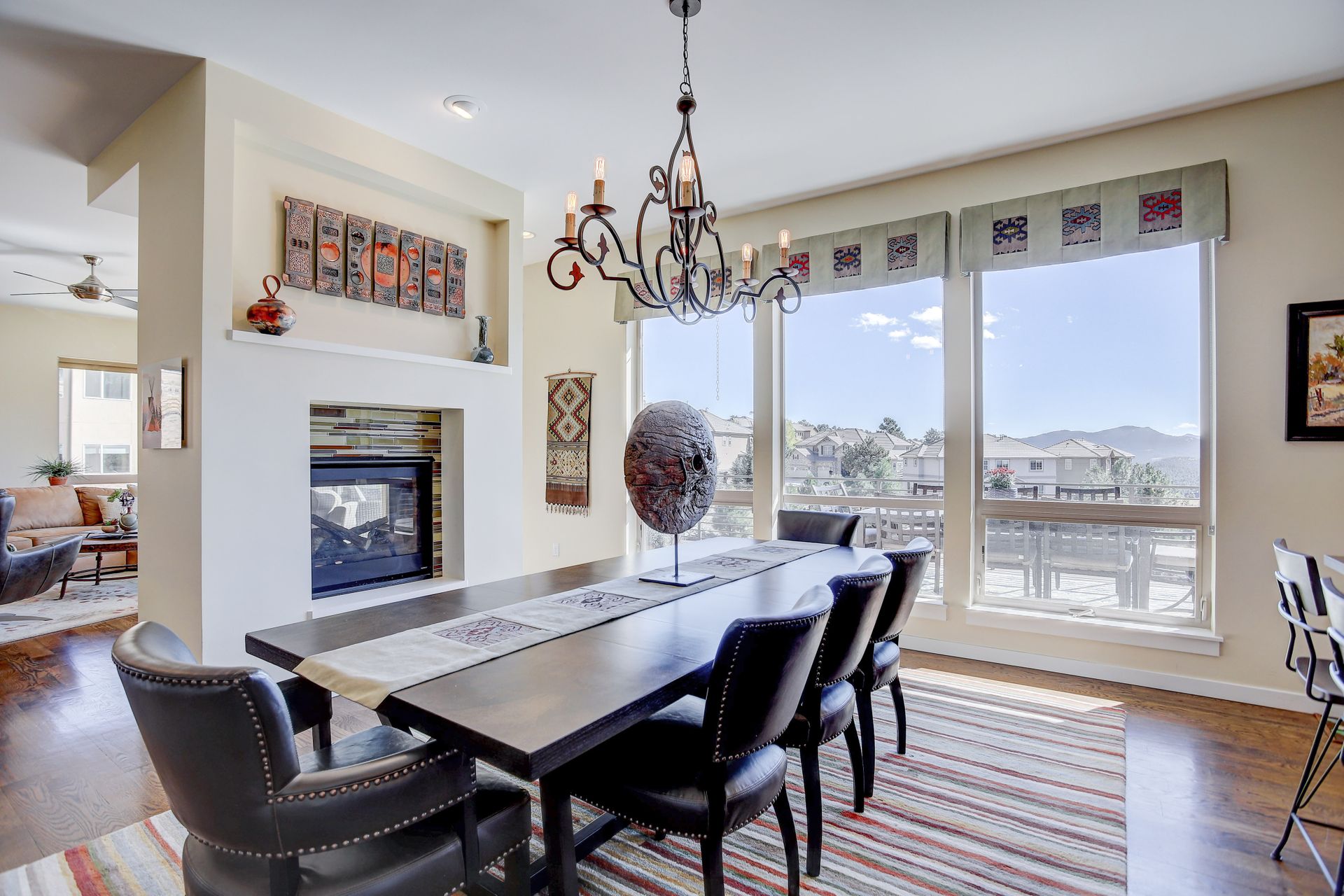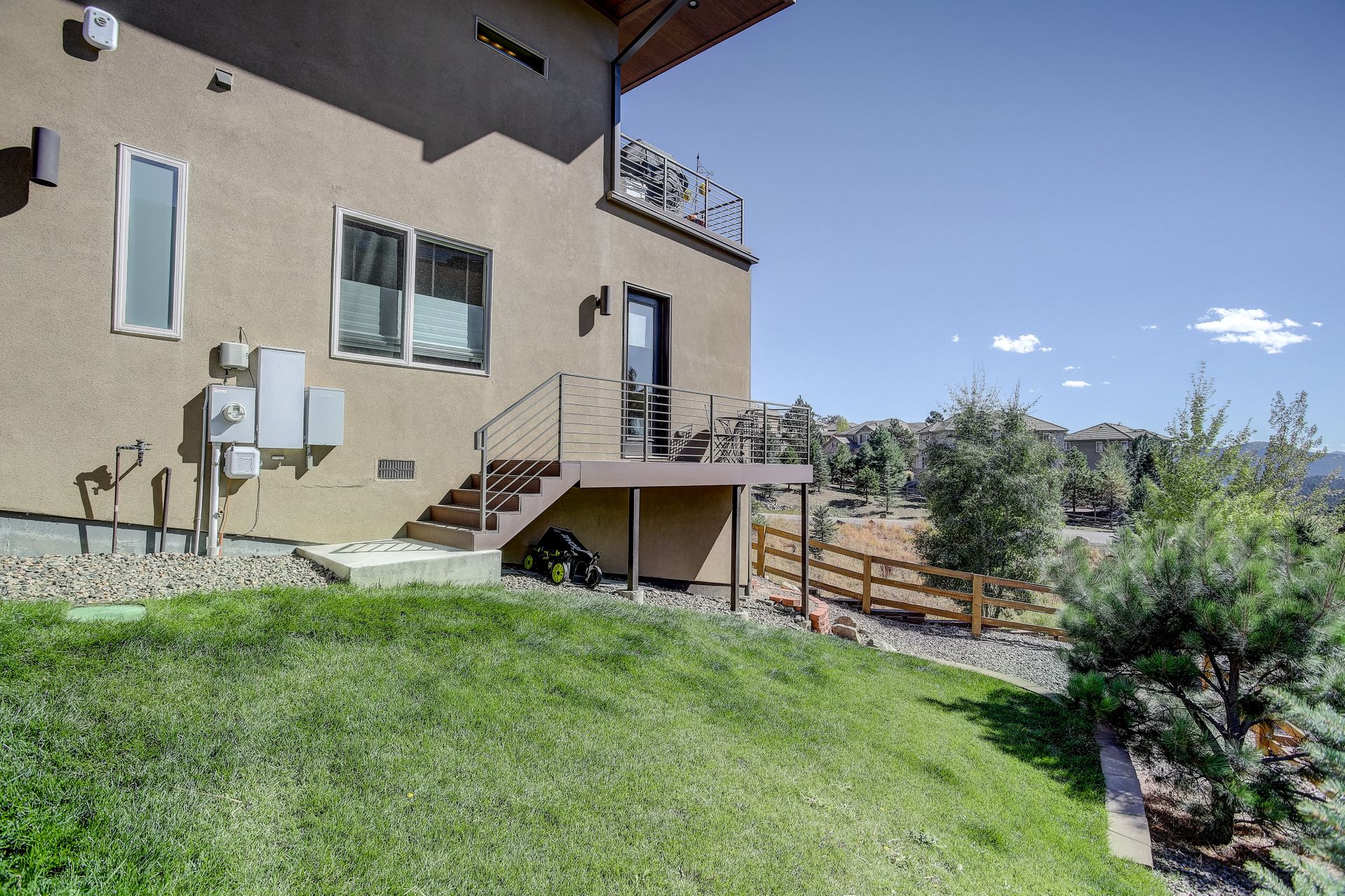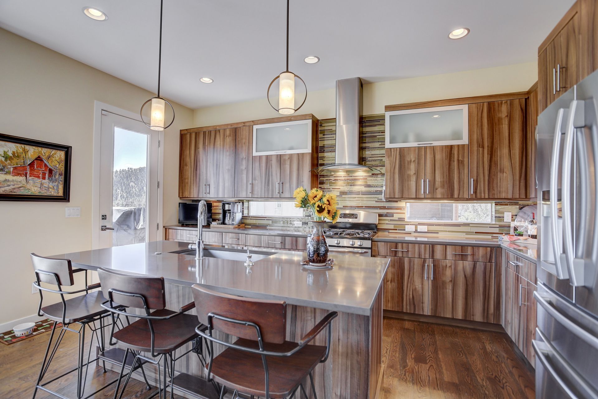 A chic urban townhome with the joys of mountain living–views, easy access to I-70 and all Evergreen has to offer. This exquisitely maintained home has a second story open floor plan featuring hard wood floors, floor to ceiling windows with mountain views and a gorgeous modern kitchen with stainless appliances and quartz countertops. Experience the sunrise and mountain breezes when you exit out onto the outstanding deck to dine or relax. On the third level, a gracious primary suite with a private deck and a spa-like bath including a free-standing tub and two separate vanities and closets. Two bedrooms–one presently an office showcasing the fabulous view, custom office built-ins– a shared bath and a laundry closet complete this floor. Take the stairs to the fourth level deck for peace, quiet and 180° views of the stars-wired and structured for a hot tub. The first floor has a welcoming entry, a fourth bedroom, a beautiful, updated bath and an additional living space with great views, perfect for TV, exercise, music, whatever you want or need. You can head out to a fenced-in, just the right size landscaped yard. This level has newly installed heated tile floors in the entry and bath and new elegant, forced air registers in the living space.