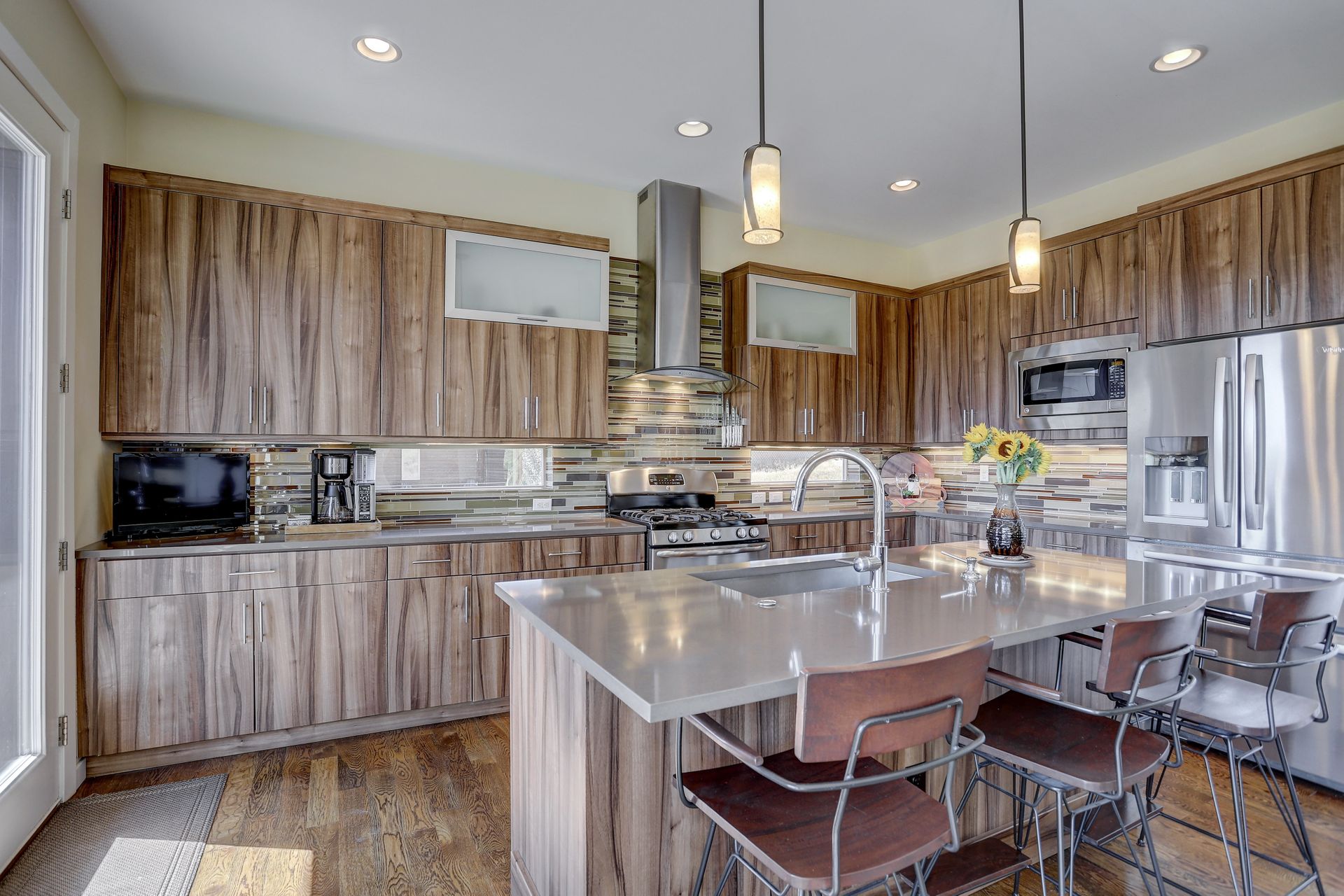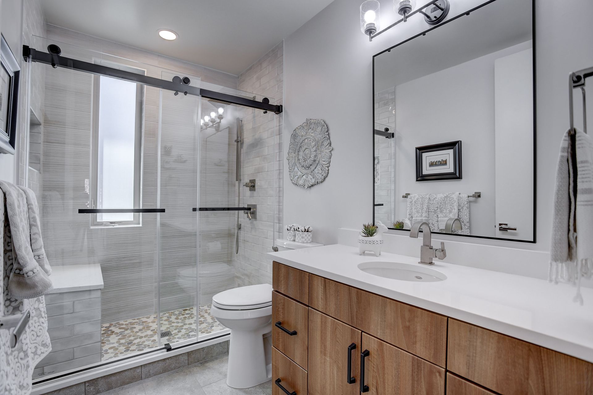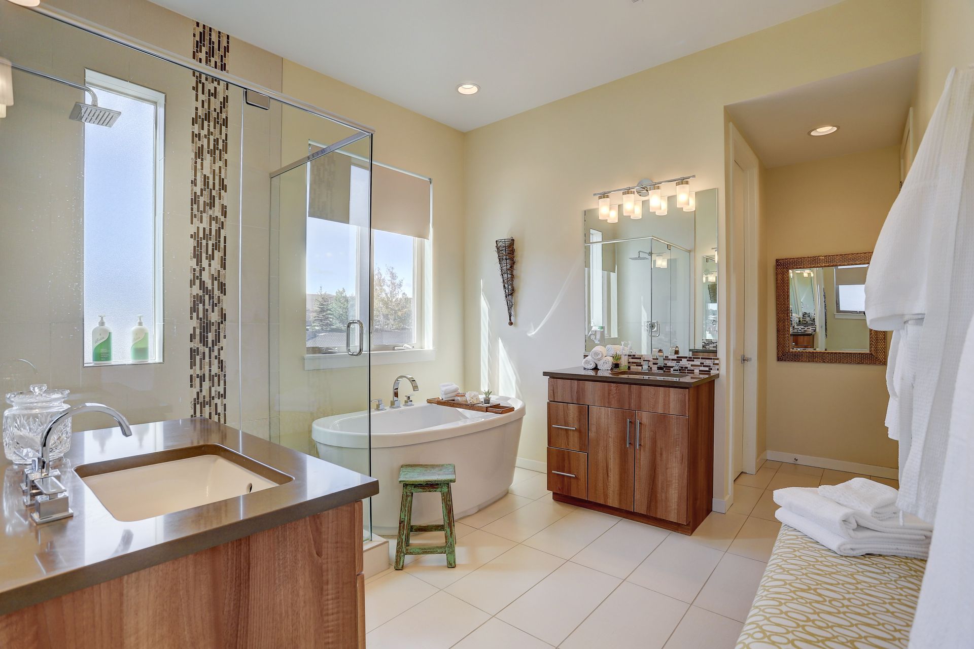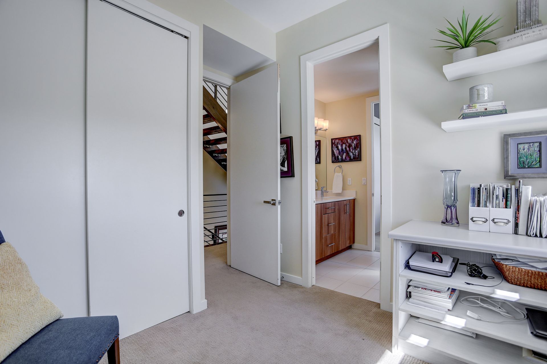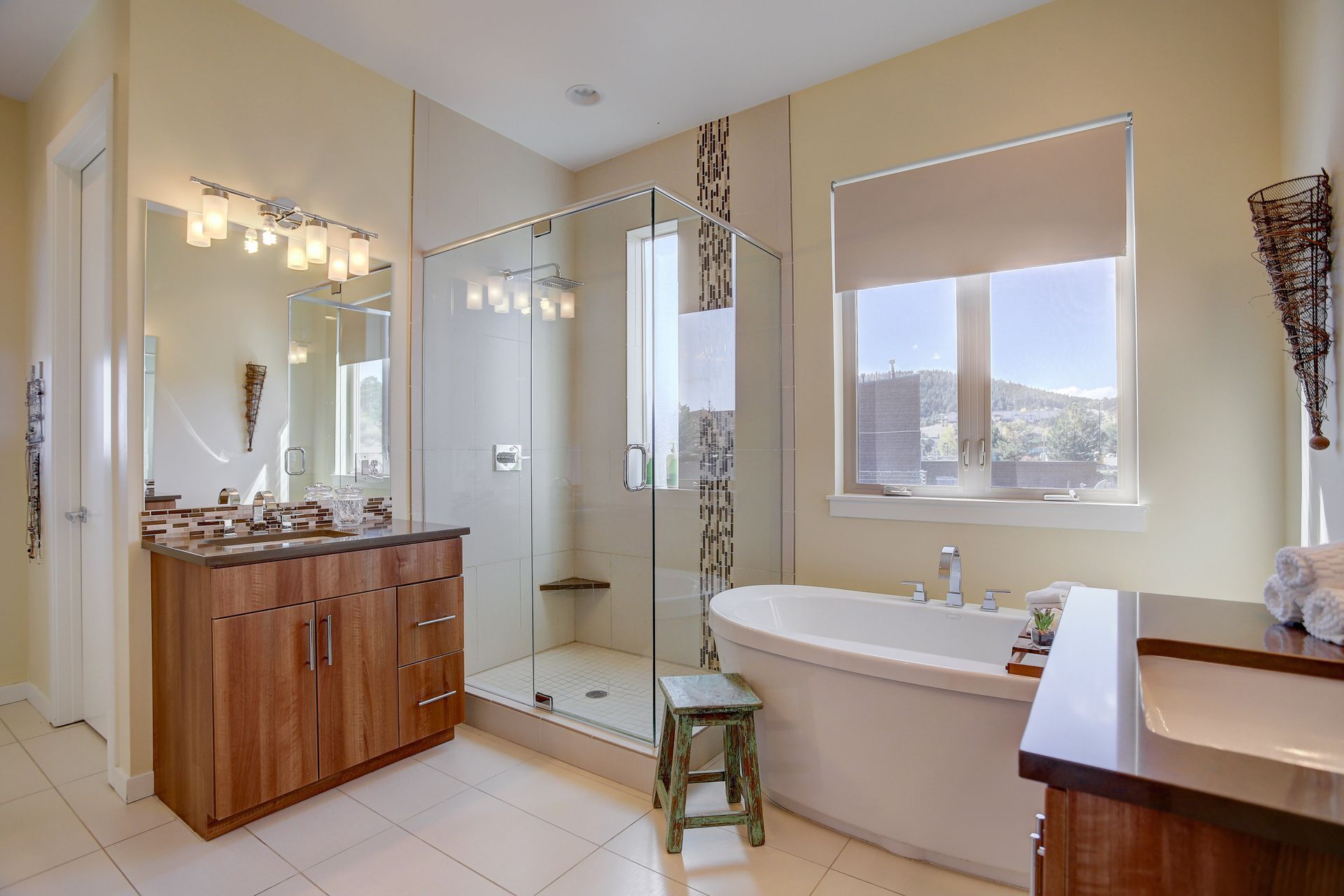 A chic urban townhome with the joys of mountain living–views, easy access to I-70 and all Evergreen has to offer. This exquisitely maintained home has a second story open floor plan featuring hard wood floors, floor to ceiling windows with mountain views and a gorgeous modern kitchen with stainless appliances and quartz countertops. Experience the sunrise and mountain breezes when you exit out onto the outstanding deck to dine or relax. On the third level, a gracious primary suite with a private deck and a spa-like bath including a free-standing tub and two separate vanities and closets. Two bedrooms–one presently an office showcasing the fabulous view, custom office built-ins– a shared bath and a laundry closet complete this floor. Take the stairs to the fourth level deck for peace, quiet and 180° views of the stars-wired and structured for a hot tub. The first floor has a welcoming entry, a fourth bedroom, a beautiful, updated bath and an additional living space with great views, perfect for TV, exercise, music, whatever you want or need. You can head out to a fenced-in, just the right size landscaped yard. This level has newly installed heated tile floors in the entry and bath and new elegant, forced air registers in the living space.