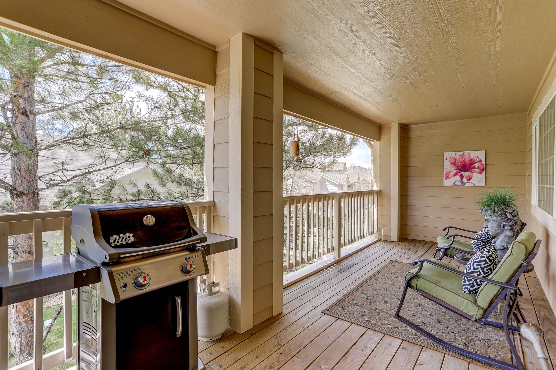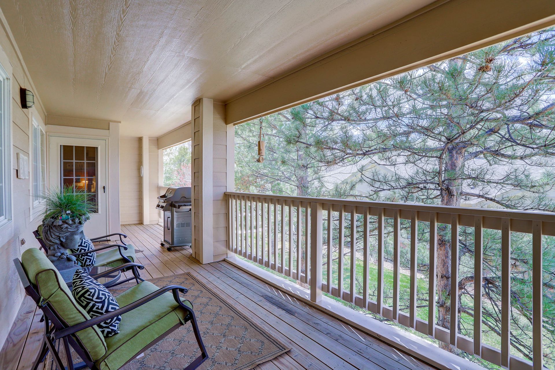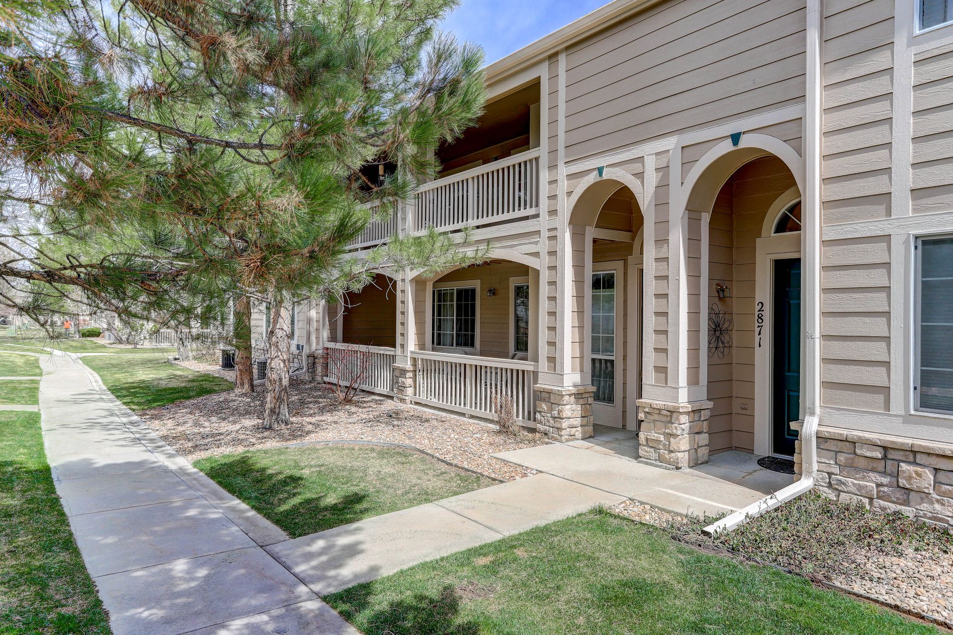 IMMACULATE and UPDATED! Private two-level ranch condo with a 30-foot covered balcony and a two-car attached garage. Highly upgraded throughout. Feels like new! Slab granite counters, stainless steel appliances, LED lighting throughout and updated bathrooms. The spacious primary suite includes a five-piece bathroom and a large walk-in closet. This unit has a laundry closet with a newer washer and dryer. Enjoy the convenience of an attached garage that is finished, heated and includes a workbench with lots of shelving. Water and sewer are included in the HOA fee! Area amenities include a community swimming pool and the beautiful Whitetail Park next door with tennis courts, a park and trails. Welcome home!