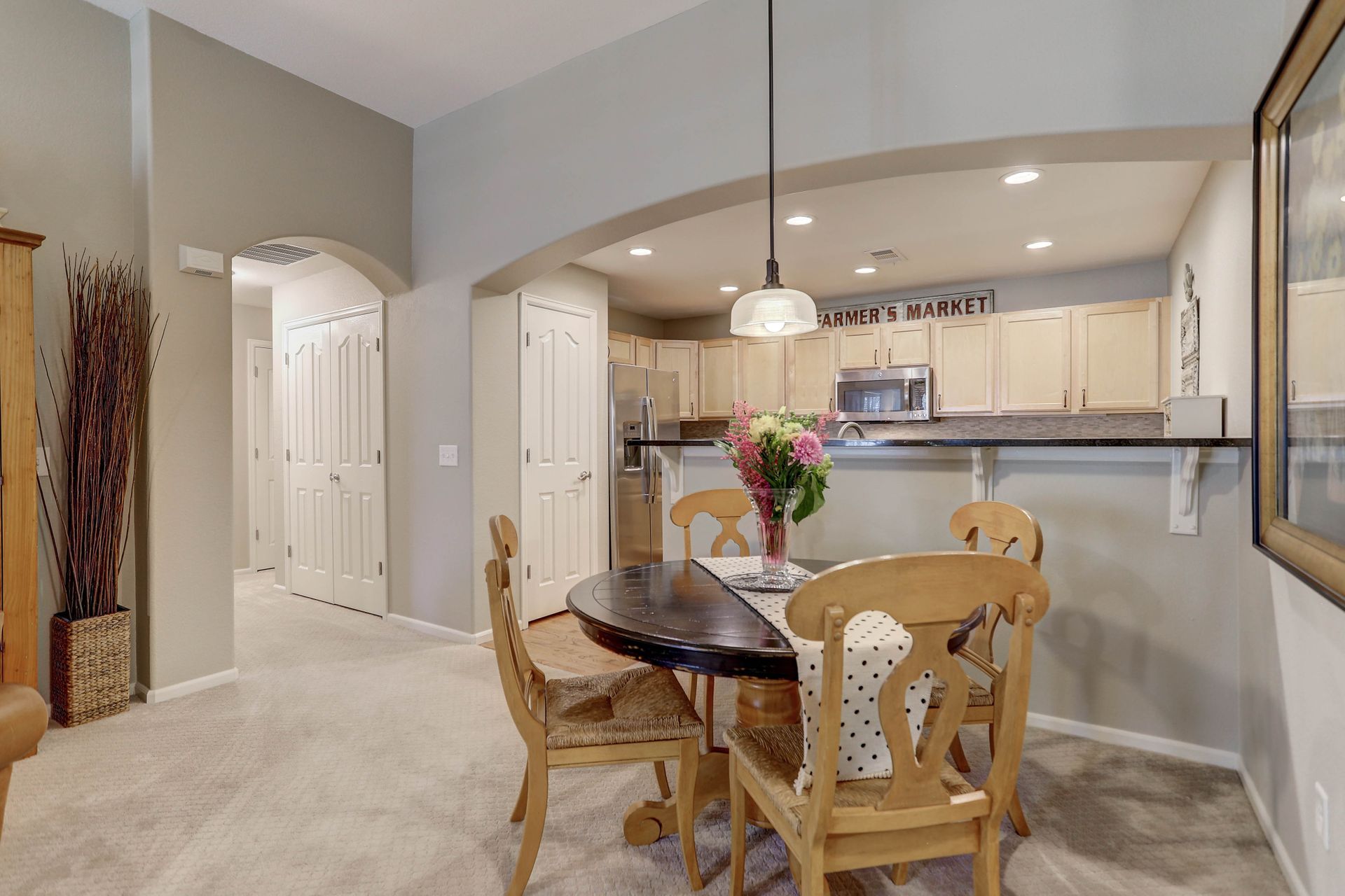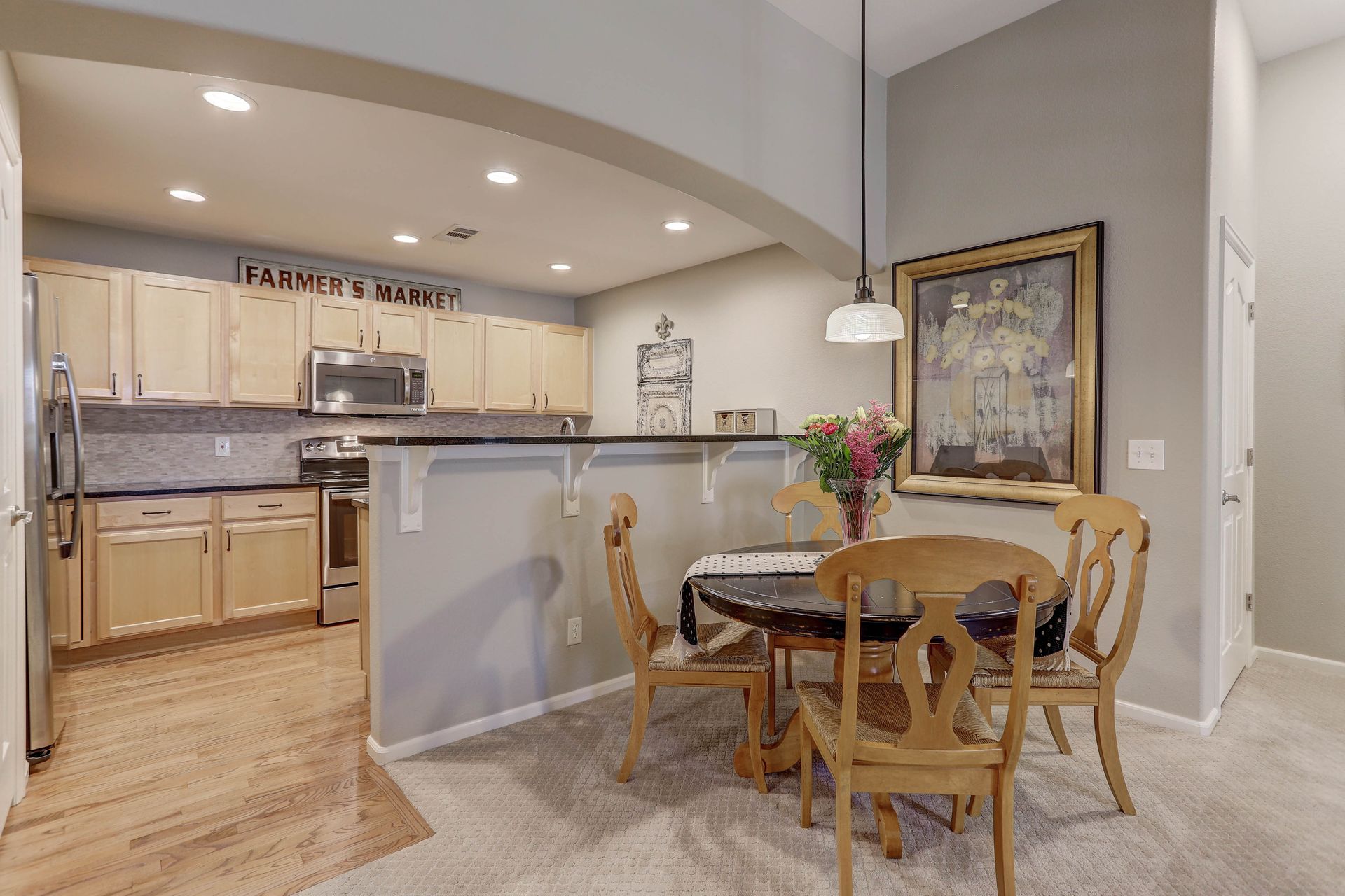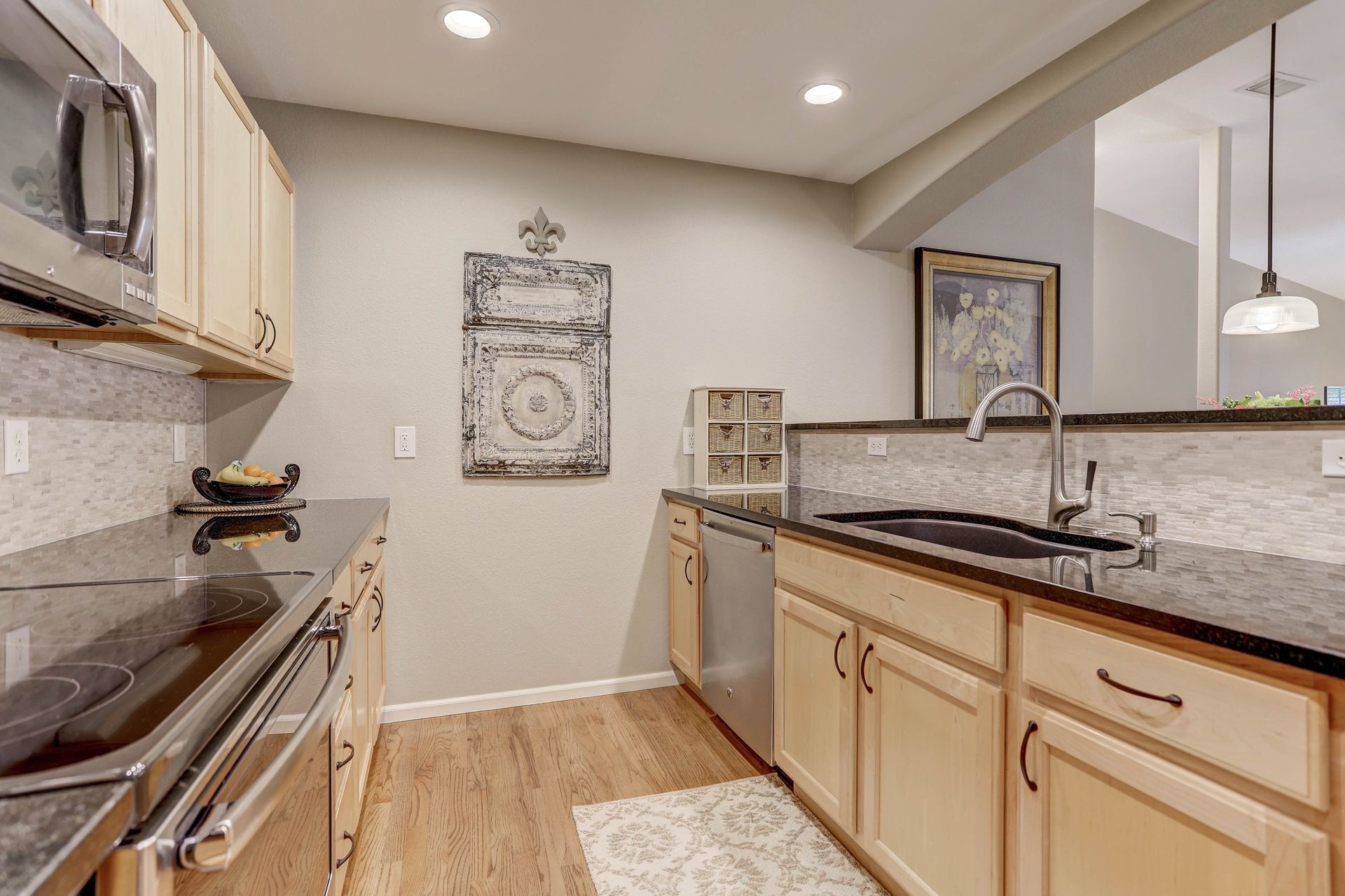IMMACULATE and UPDATED! Private two-level ranch condo with a 30-foot covered balcony and a two-car attached garage. Highly upgraded throughout. Feels like new! Slab granite counters, stainless steel appliances, LED lighting throughout and updated bathrooms. The spacious primary suite includes a five-piece bathroom and a large walk-in closet. This unit has a laundry closet with a newer washer and dryer. Enjoy the convenience of an attached garage that is finished, heated and includes a workbench with lots of shelving. Water and sewer are included in the HOA fee! Area amenities include a community swimming pool and the beautiful Whitetail Park next door with tennis courts, a park and trails. Welcome home!