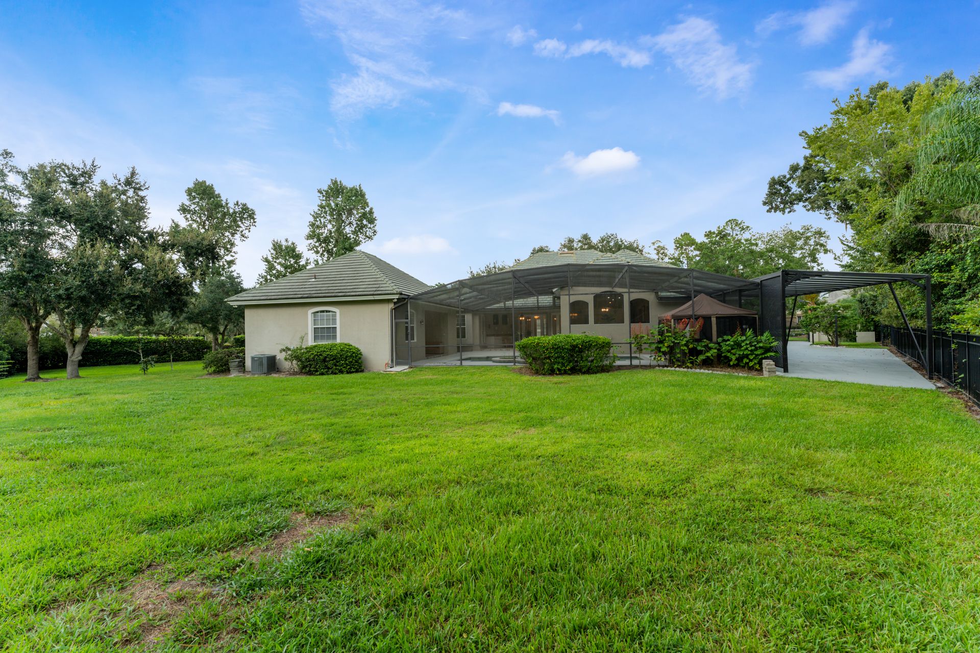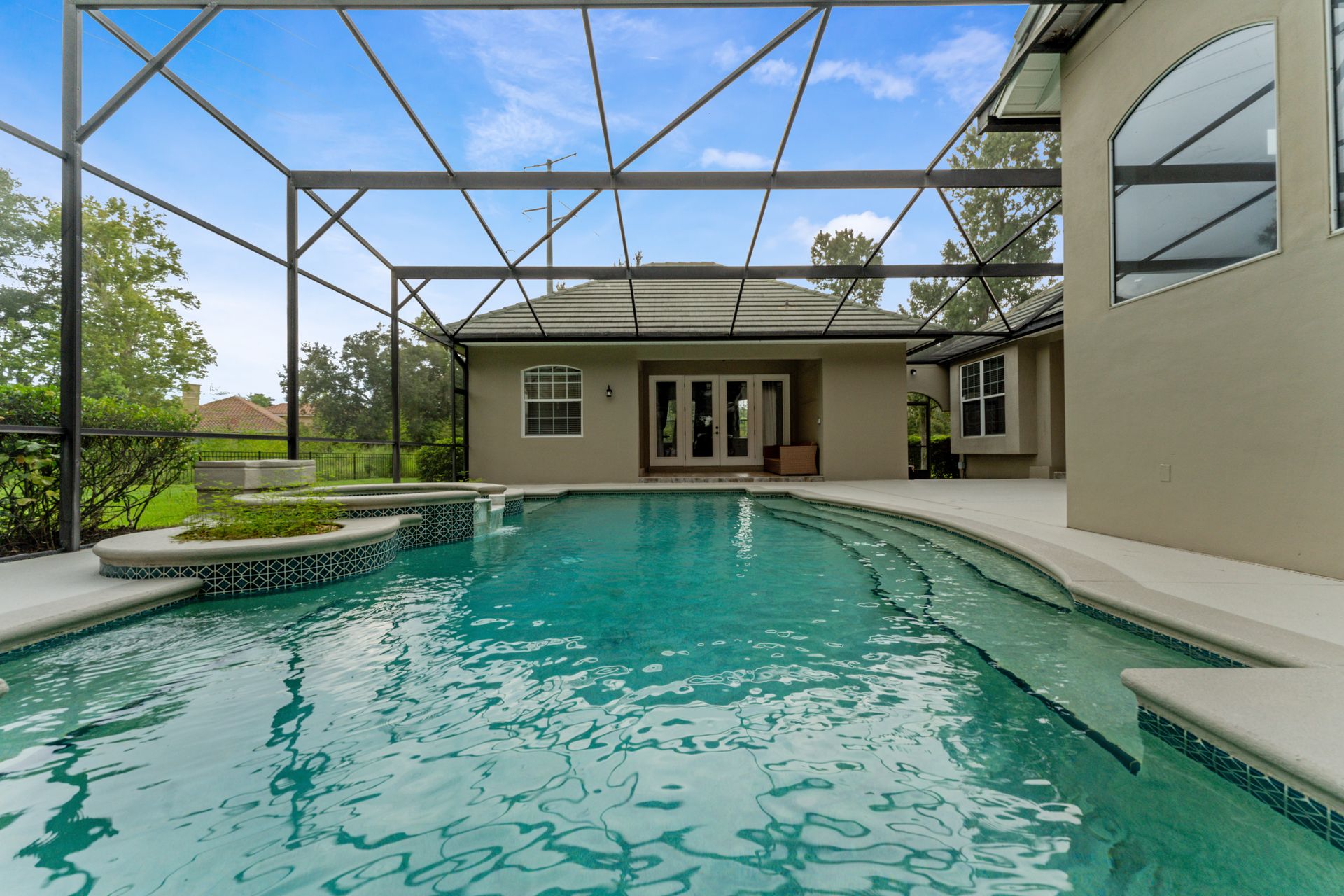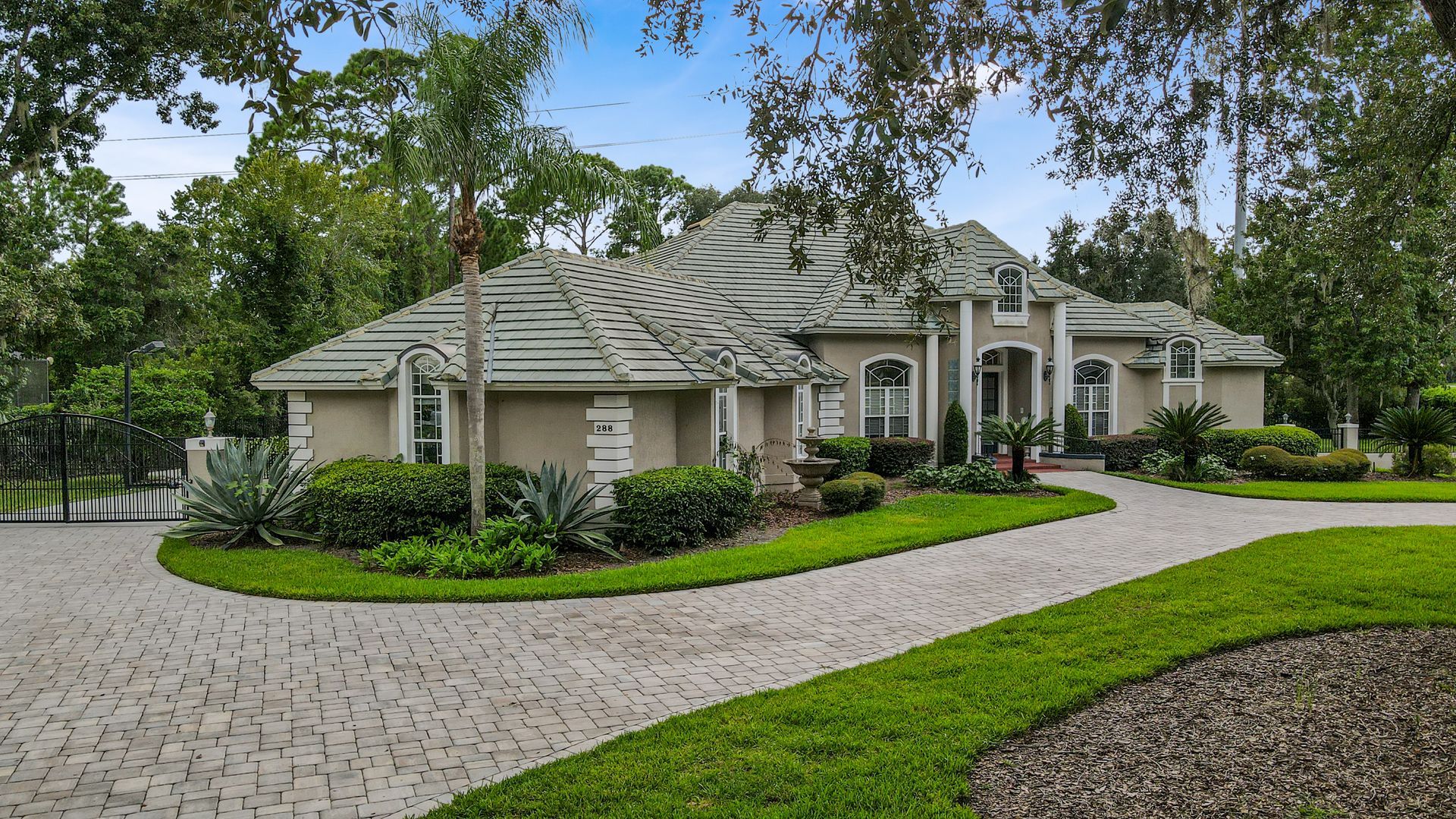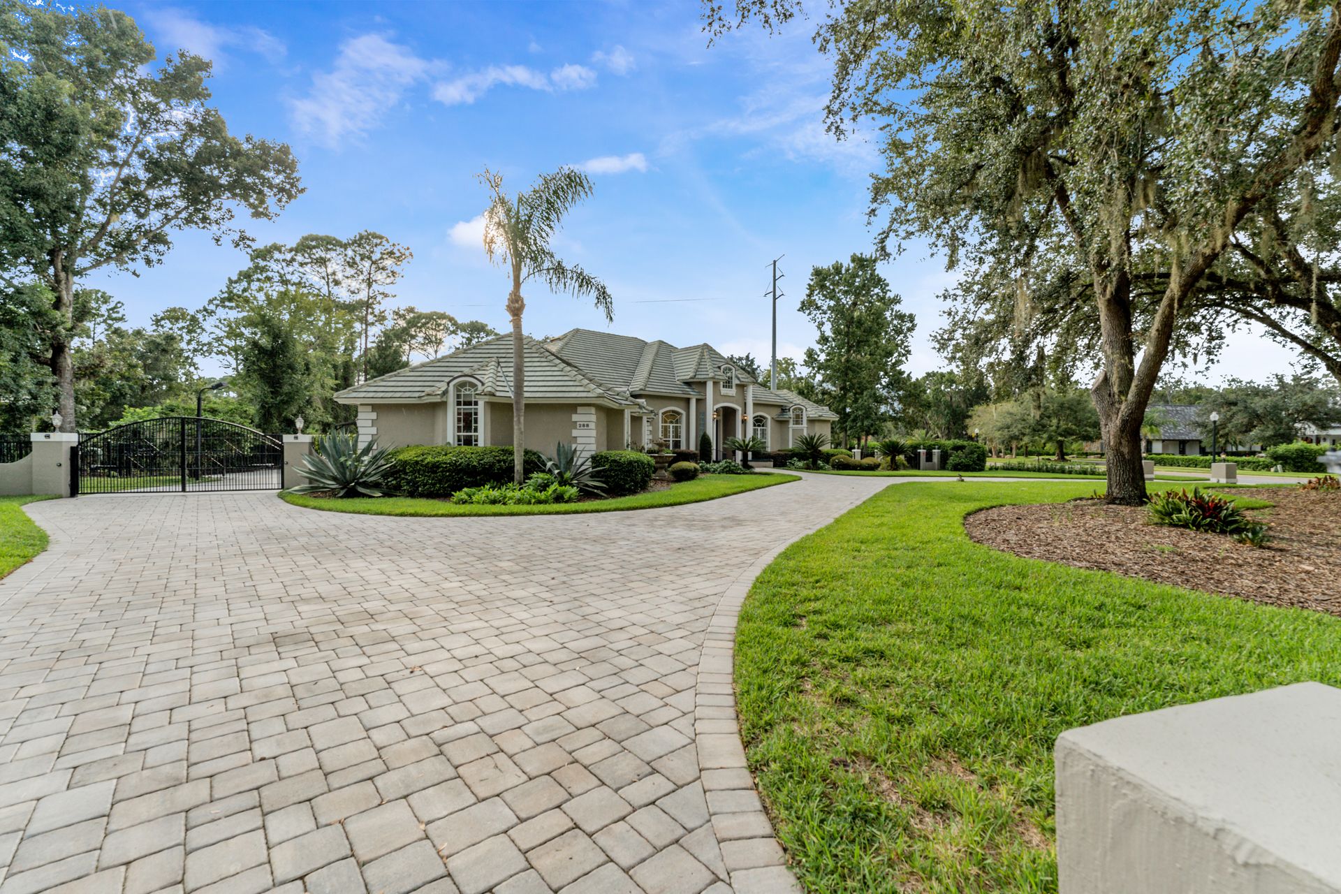 Welcome to Heathrow Woods and this Private Custom Estate located on an Acre Lot. Featuring 5 Bedrooms and 6 Baths with 4,244 SF. Executive Office with custom woodwork to the right as you enter the foyer. Fully fenced backyard and corner lot with tree line views. Well maintained main home with newer guest house added. Marble and hardwood flooring. Split floorplan. Main house has 4 Bedrooms plus an executive office. Guest house has bedroom with full bath including a steam room and a bonus room with a kitchenette and half bath. Gourmet kitchen with granite countertops, white cabinetry, and separate kitchen nook with additional counter space. Kitchen opens to the family room with large windows, gas fireplace, and doors to the lanai. Relax in the screened lanai with pool, fountain, and a separate spa with covered and tiled seating areas. Plenty of parking space with a circular driveway and a private motorized gated 3 car side entry garage. Additional electrical outlets for RV and boat. Extended polycarbonate roof cover off the pool area for shaded parking or entertaining. Walk in attic with lighting for storage above the garage.  Heathrow is a highly desired gated golf course community with an exclusive Country Club. 18 hole Golf course designed by Ron Garl just minutes from your front door. Highly rated School System. Heathrow Woods is a private 24 hour guard gated community with all homes on at least one acre lots.
