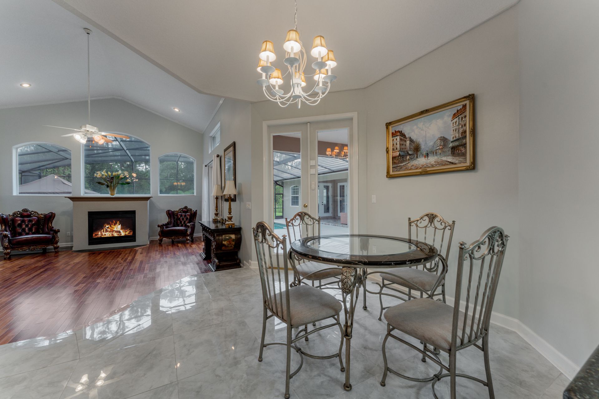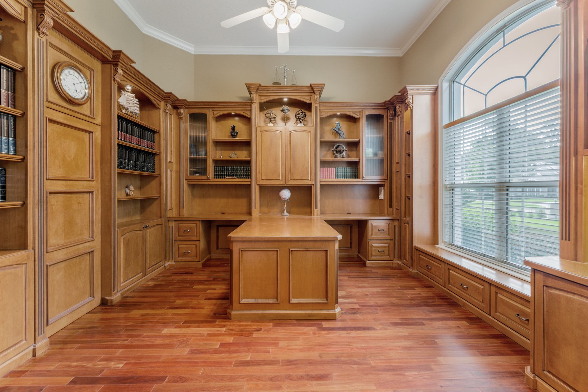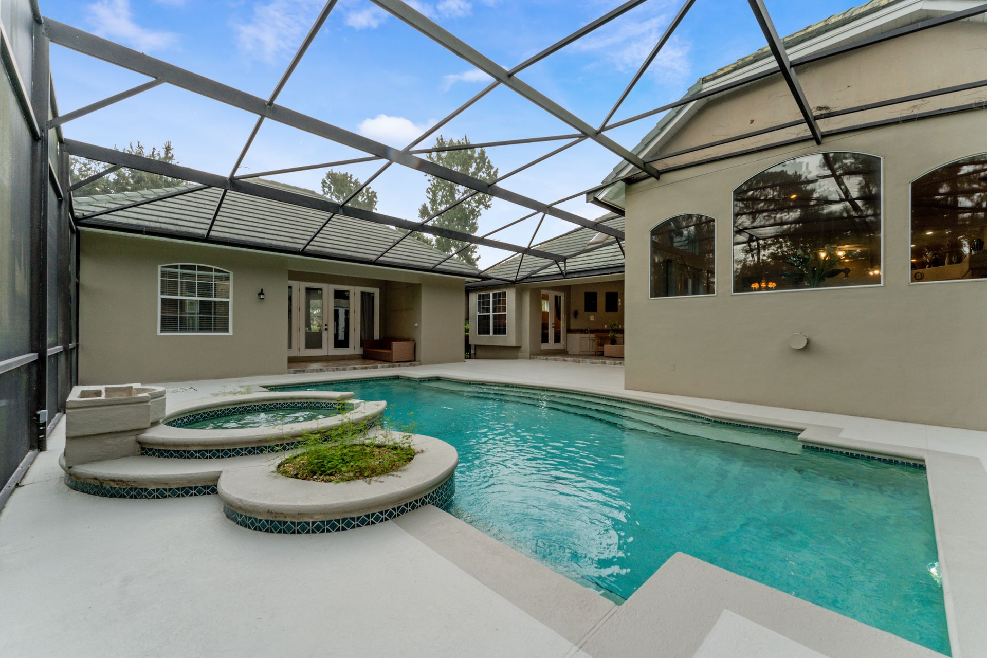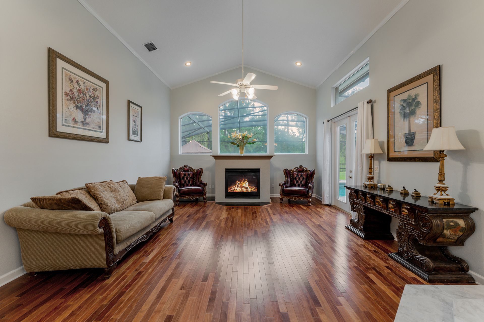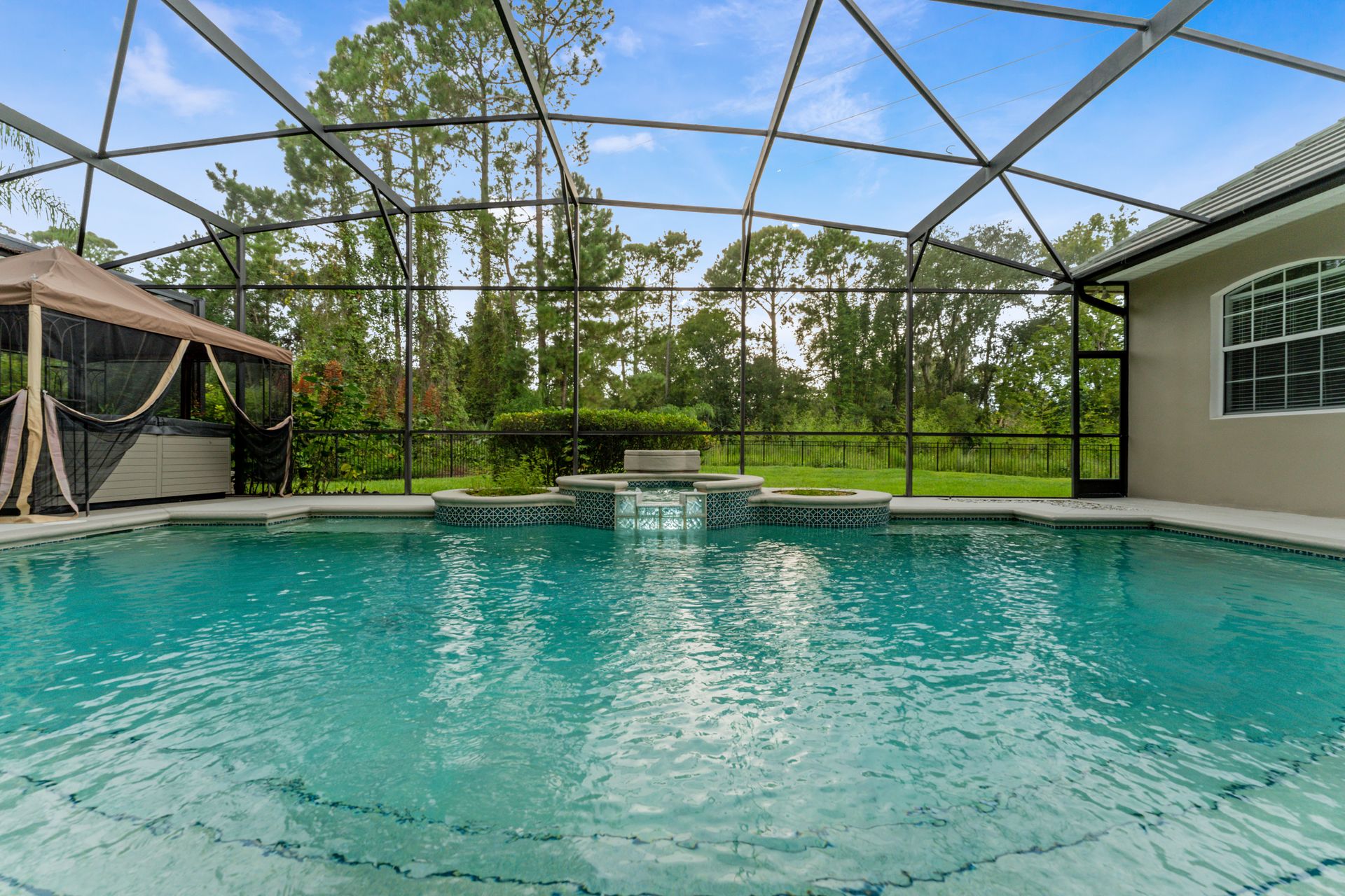 Welcome to Heathrow Woods and this Private Custom Estate located on an Acre Lot. Featuring 5 Bedrooms and 6 Baths with 4,244 SF. Executive Office with custom woodwork to the right as you enter the foyer. Fully fenced backyard and corner lot with tree line views. Well maintained main home with newer guest house added. Marble and hardwood flooring. Split floorplan. Main house has 4 Bedrooms plus an executive office. Guest house has bedroom with full bath including a steam room and a bonus room with a kitchenette and half bath. Gourmet kitchen with granite countertops, white cabinetry, and separate kitchen nook with additional counter space. Kitchen opens to the family room with large windows, gas fireplace, and doors to the lanai. Relax in the screened lanai with pool, fountain, and a separate spa with covered and tiled seating areas. Plenty of parking space with a circular driveway and a private motorized gated 3 car side entry garage. Additional electrical outlets for RV and boat. Extended polycarbonate roof cover off the pool area for shaded parking or entertaining. Walk in attic with lighting for storage above the garage.  Heathrow is a highly desired gated golf course community with an exclusive Country Club. 18 hole Golf course designed by Ron Garl just minutes from your front door. Highly rated School System. Heathrow Woods is a private 24 hour guard gated community with all homes on at least one acre lots.