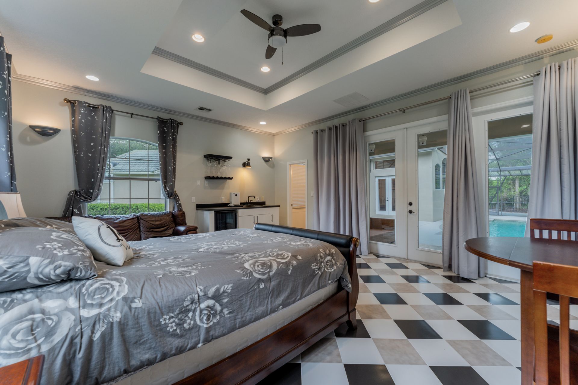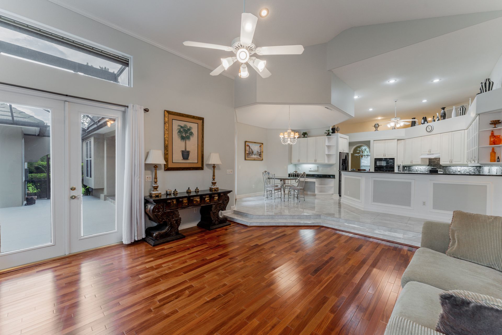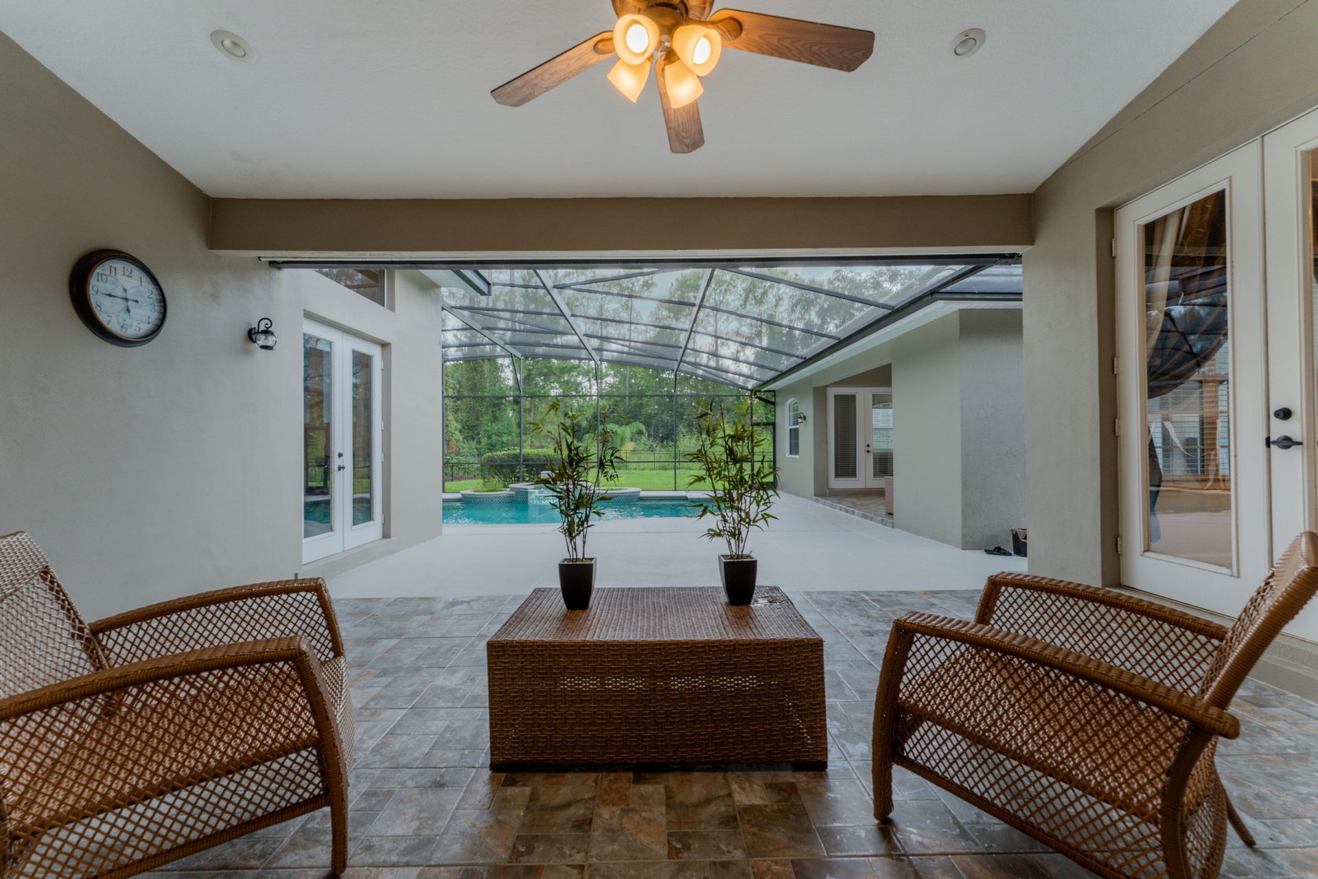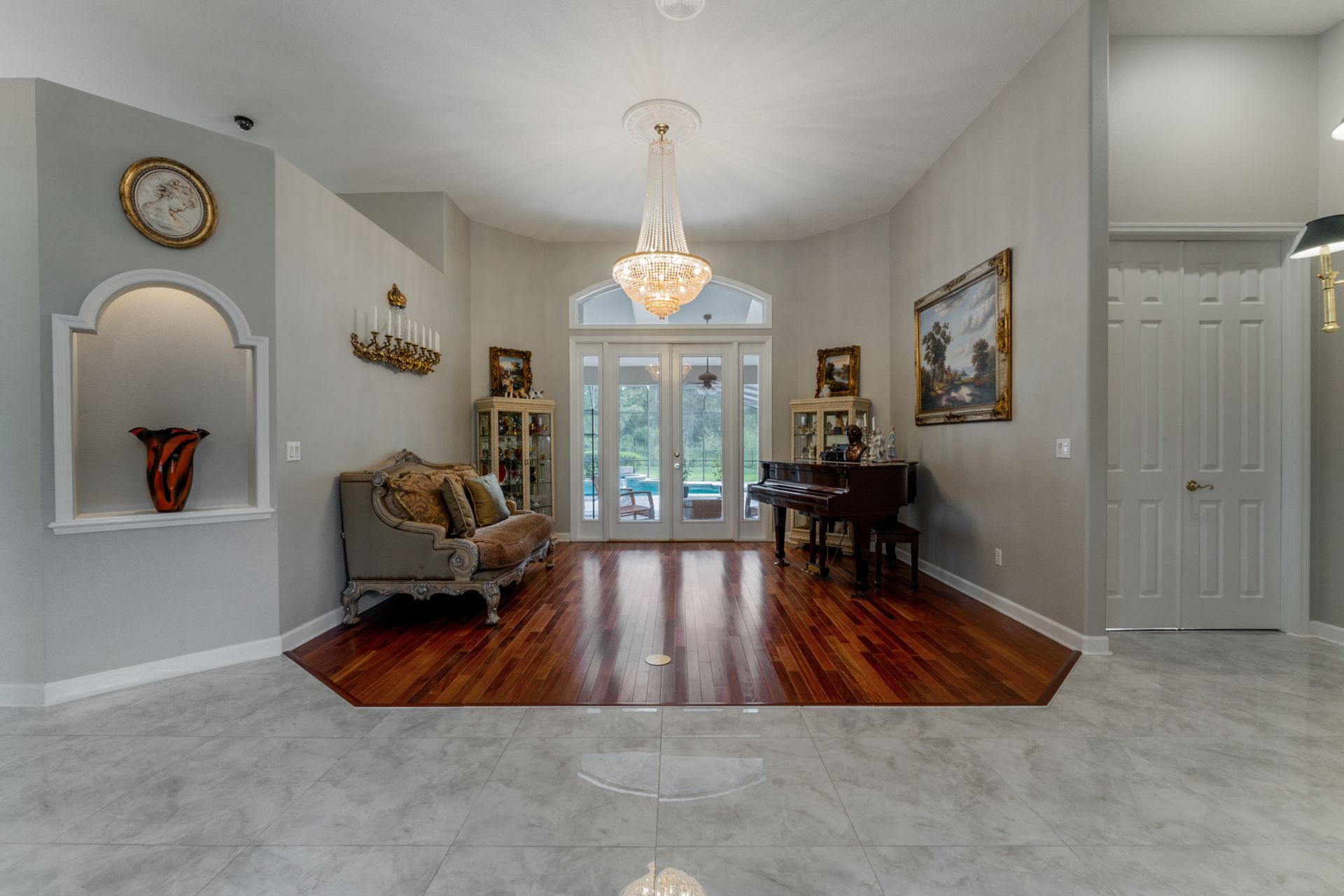 Welcome to Heathrow Woods and this Private Custom Estate located on an Acre Lot. Featuring 5 Bedrooms and 6 Baths with 4,244 SF. Executive Office with custom woodwork to the right as you enter the foyer. Fully fenced backyard and corner lot with tree line views. Well maintained main home with newer guest house added. Marble and hardwood flooring. Split floorplan. Main house has 4 Bedrooms plus an executive office. Guest house has bedroom with full bath including a steam room and a bonus room with a kitchenette and half bath. Gourmet kitchen with granite countertops, white cabinetry, and separate kitchen nook with additional counter space. Kitchen opens to the family room with large windows, gas fireplace, and doors to the lanai. Relax in the screened lanai with pool, fountain, and a separate spa with covered and tiled seating areas. Plenty of parking space with a circular driveway and a private motorized gated 3 car side entry garage. Additional electrical outlets for RV and boat. Extended polycarbonate roof cover off the pool area for shaded parking or entertaining. Walk in attic with lighting for storage above the garage.  Heathrow is a highly desired gated golf course community with an exclusive Country Club. 18 hole Golf course designed by Ron Garl just minutes from your front door. Highly rated School System. Heathrow Woods is a private 24 hour guard gated community with all homes on at least one acre lots.
