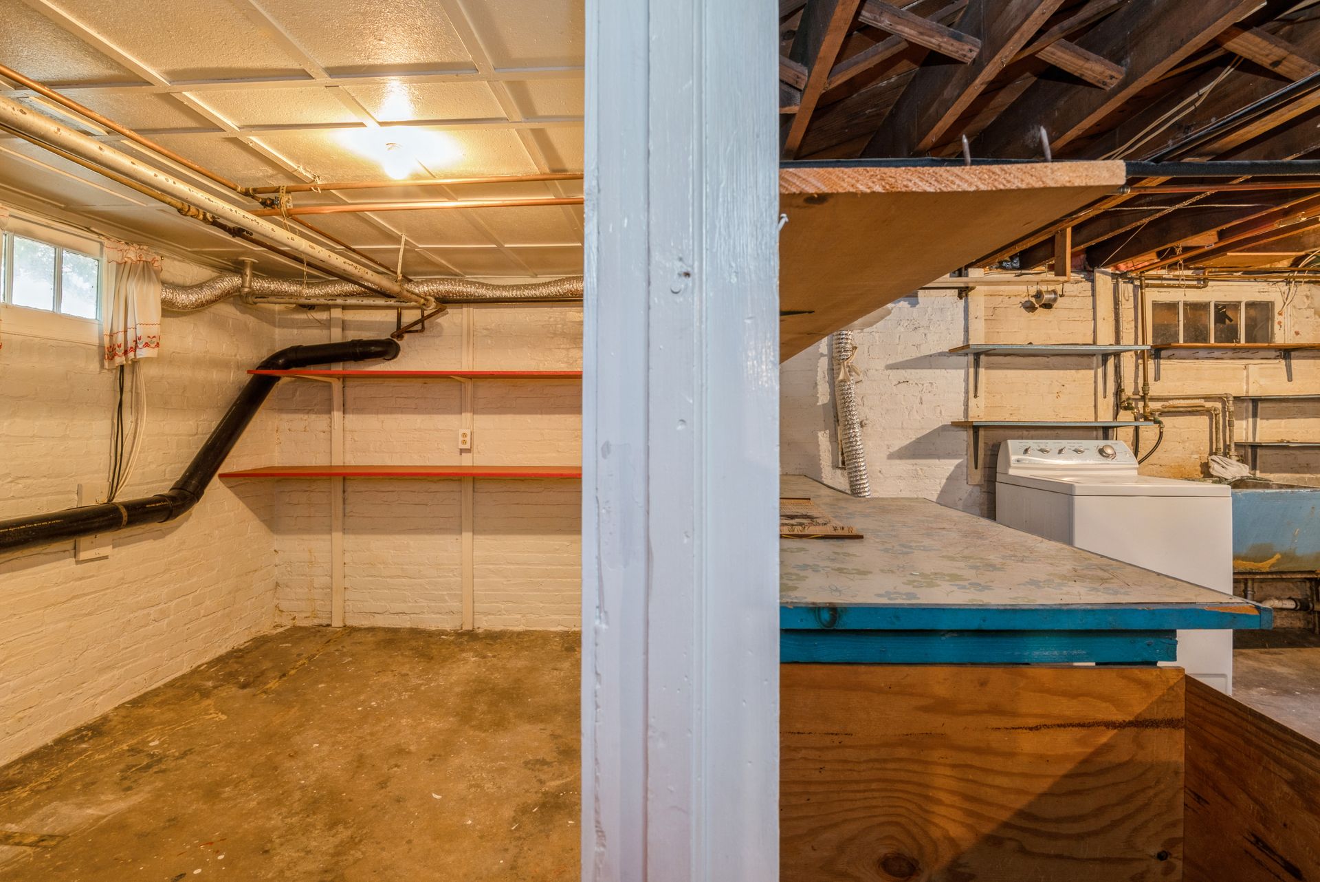 The walkout basement is huge at approximately 1,073 square feet of unfinished space. There are bookshelves, laundry with original cement sink and a bathroom.
