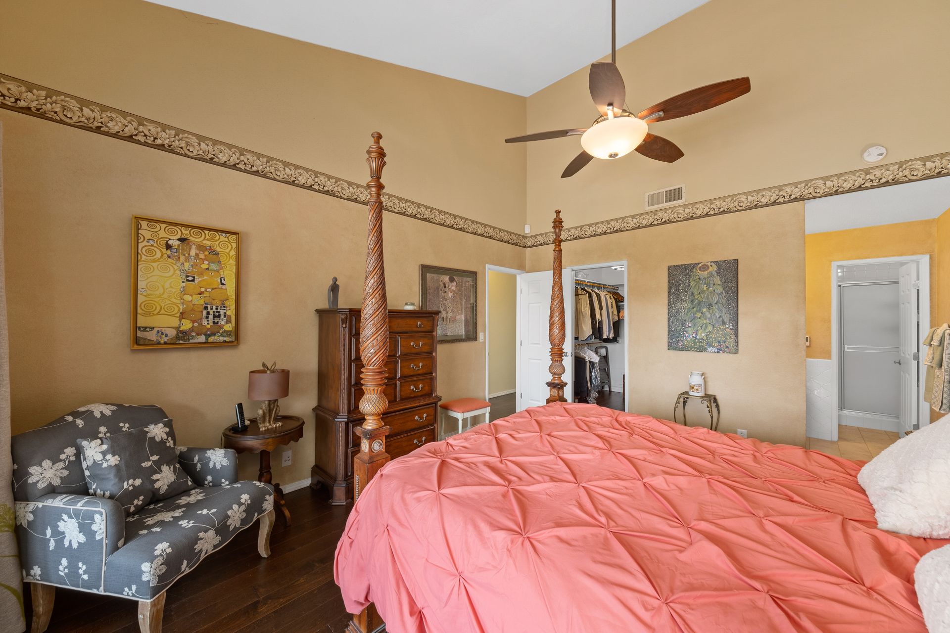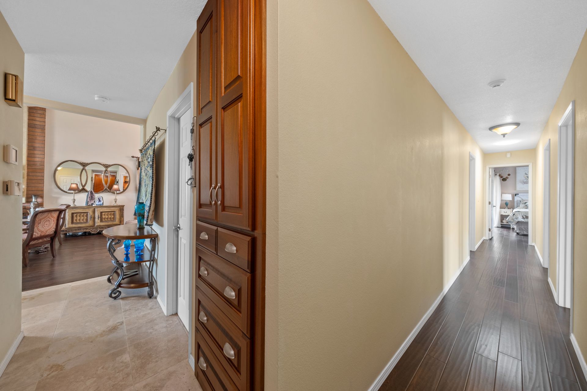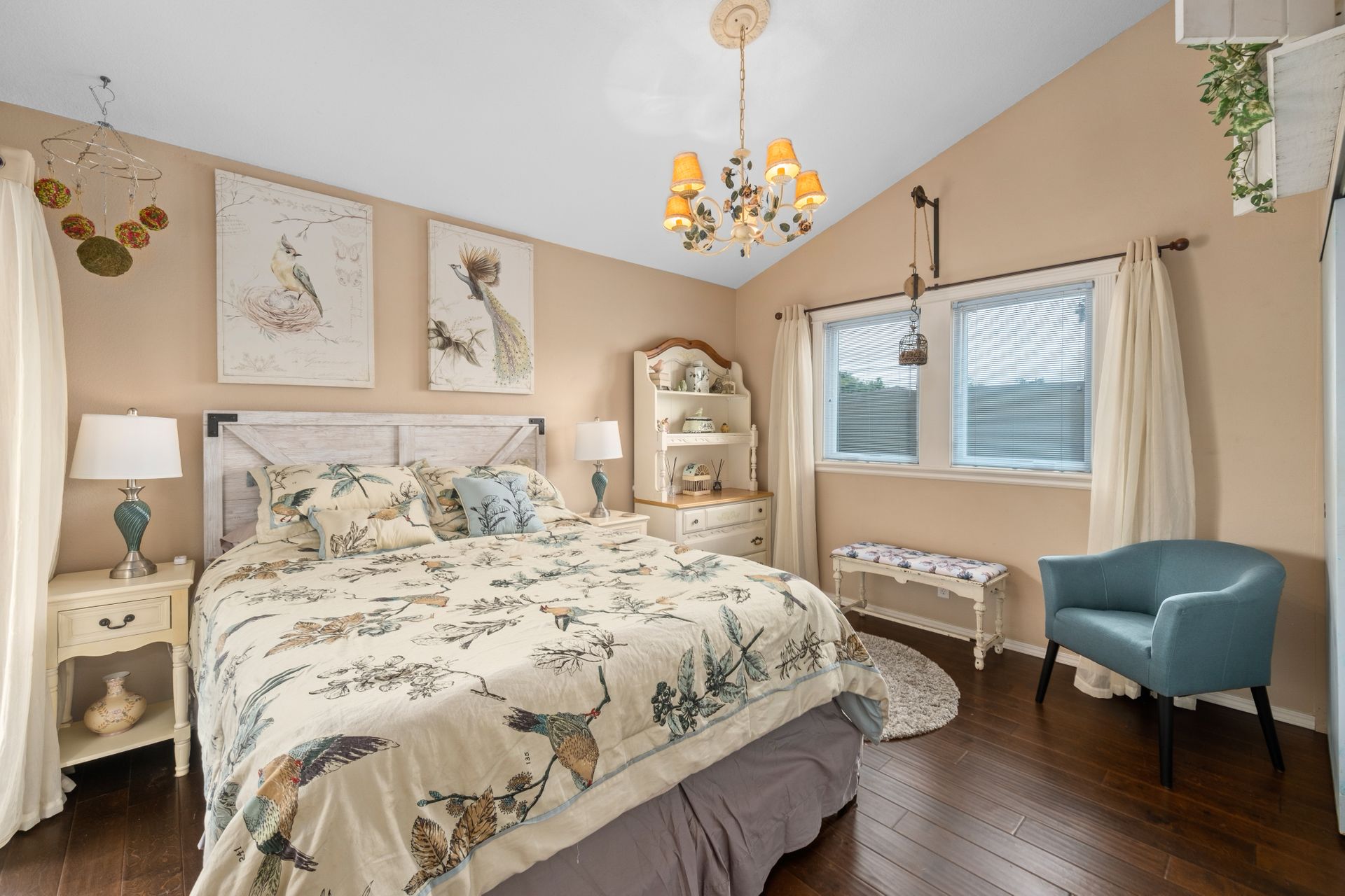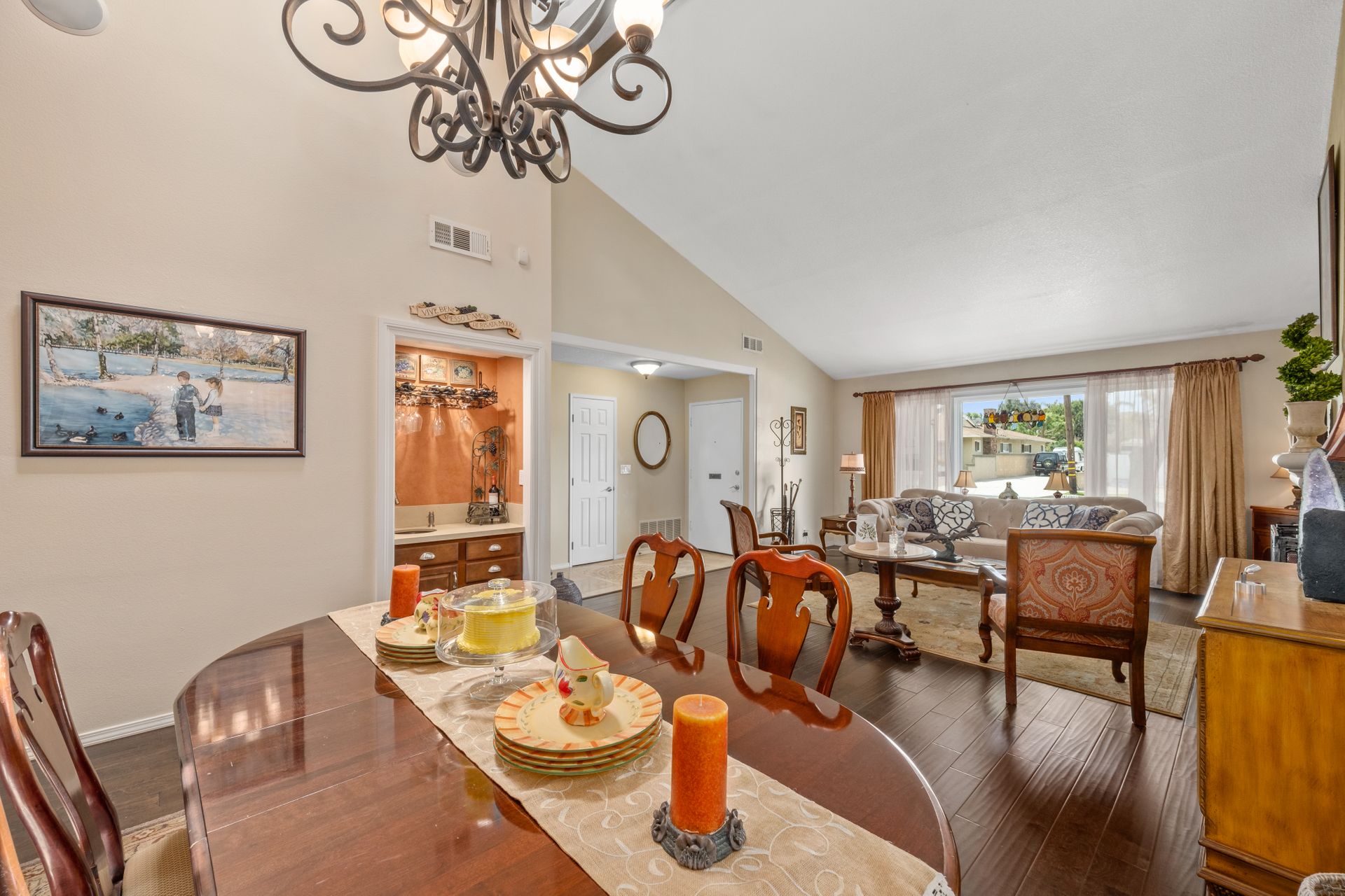 Welcome to this lovingly cared for four bedroom, two bath home in desirable Torrance Gardens! Direct access from the primary bedroom, family room and additional bedroom to an exceptional and huge backyard (approximately 8,600 square feet). It will be your own private sanctuary. The kitchen was stylishly remodeled a few years ago with hickory cabinets, pull-out drawers, quartz counters and stainless steel appliances, plus a custom four-foot wide pantry, a quartz farmhouse sink and a garden window. The kitchen is adjacent to the family room which shares natural stone travertine tile and showcases a vaulted ceiling and bar. The open living room has a gas fireplace, a vaulted beamed ceiling and is integrated with the dining area which features a lovely alcove wet bar with matching hickory cabinets and a quartz countertop. The primary bath and second bathroom include radiant heat travertine floors, hardwood cabinets with marble counter tops and unique custom wall tile. Beautiful flooring throughout the entire house in either travertine or birch hardwood. The roof was recently replaced and provides skylights! Most windows are Pella dual pane casement windows. Lots of extra storage in attic. Don't miss out on this fabulous opportunity!